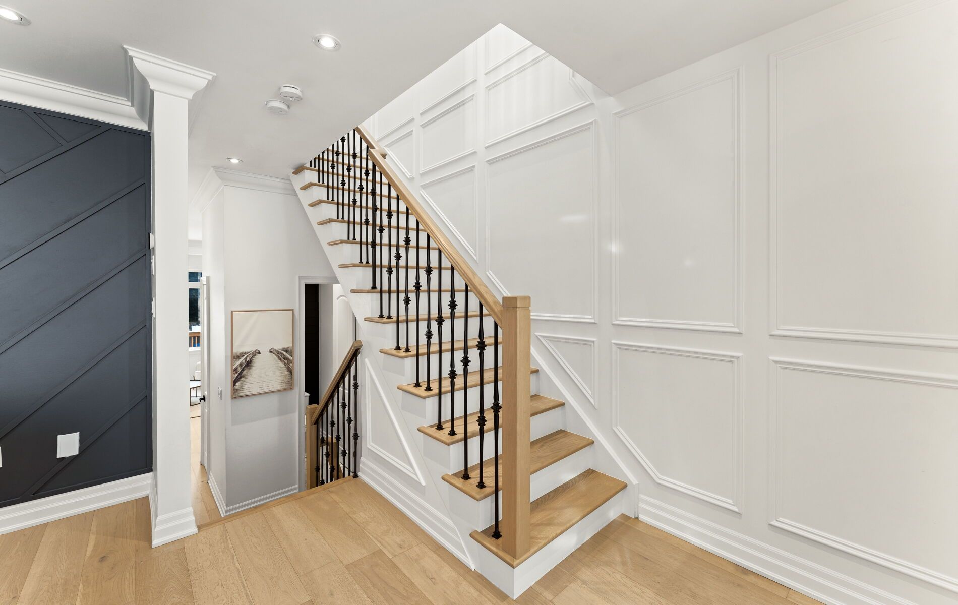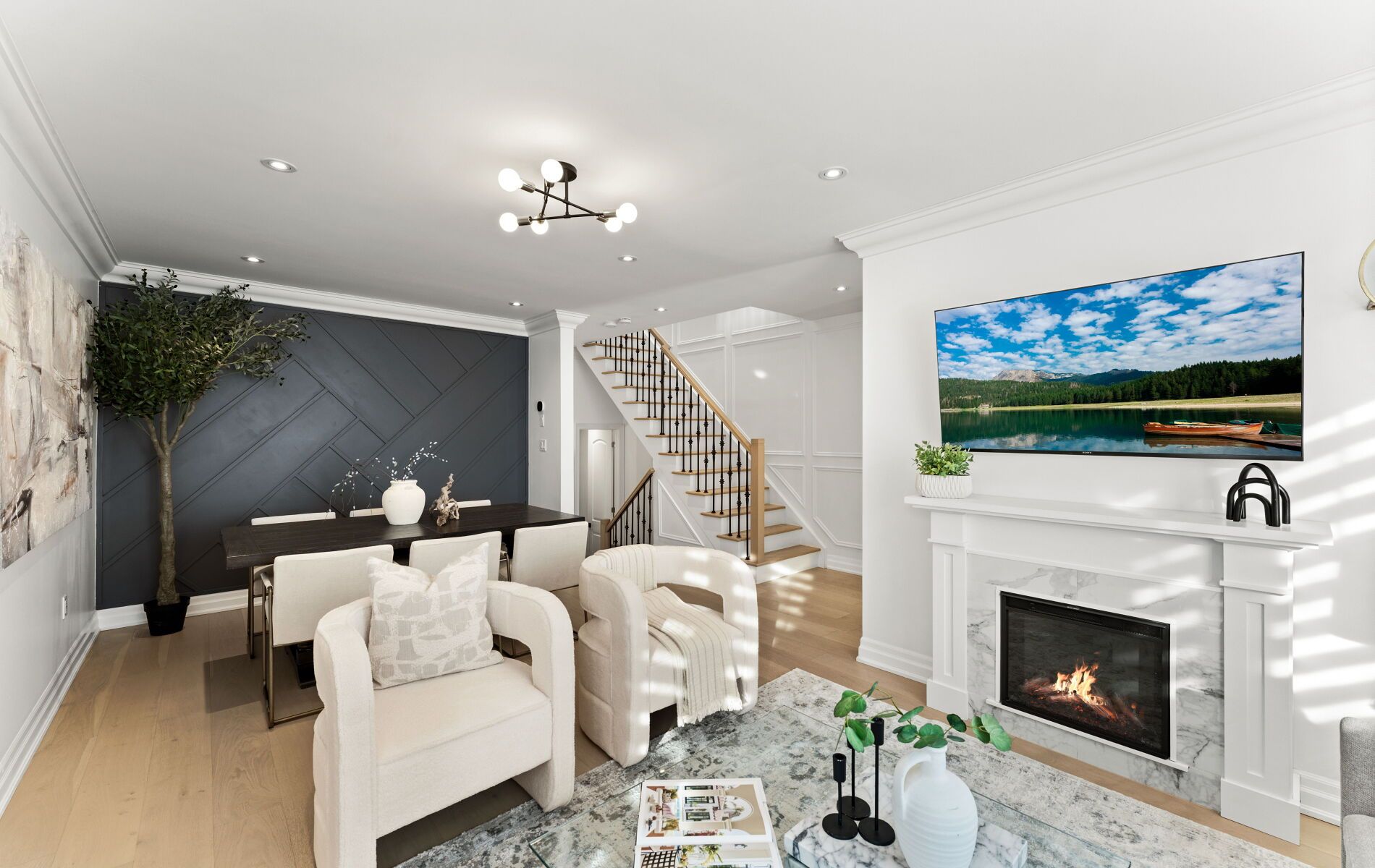 Beautifully renovated custom-built detached home in the heart of the Alderwood community of South Etobicoke, offering 3 bedrooms, 4 washrooms, finished basement with separate entrance & over 2,600 sq. ft. of finished living space. The main floor features engineered hardwood floors & open-concept living & dining area anchored by a sleek electric fireplace & a striking geometric feature wall. The space flows into a bright 11ft ceiling family room & eat-in kitchen, filled with natural light & overlooking a private backyard framed by mature trees, offering excellent seasonal privacy. The kitchen & breakfast area blend style & function with a decorative panelled feature wall, a custom coffee & beverage station with full-height cabinetry, a built-in under-counter wine fridge, & soft-close cabinetry with pull-out storage throughout. A stylish powder room with panelled accent walls completes the main level. The oak staircase with metal pickets, highlighted by a custom panelled stairwell feature wall, leads upstairs. The 2nd floor offers hardwood flooring, spacious primary bedroom with a full wall of custom-built closets & a 5-piece ensuite, plus additional bedrooms with decorative wall panelling. A convenient second-floor laundry room includes oversized washer & dryer with custom shelving. Finished basement features a separate entrance, full bathroom, home office with built-in desk, sink & kitchen rough-in, offering excellent in-law suite or rental potential. The backyard is designed for enjoyment with a deck, interlocking stone, remote-controlled awning, gas line, shed, & children's play structure. Set in a family-friendly community, this home is a short walk to the Alderwood Community Centre with library, pool, & outdoor hockey rink, nearby parks, the Etobicoke Creek Trail, & public transit including the Long Branch GO Station. Minutes to QEW, Gardiner, Hwy 427, & everyday conveniences including Sherway Gardens, Costco, IKEA, Farm Boy more! Virtual tour: 62burlingame.com