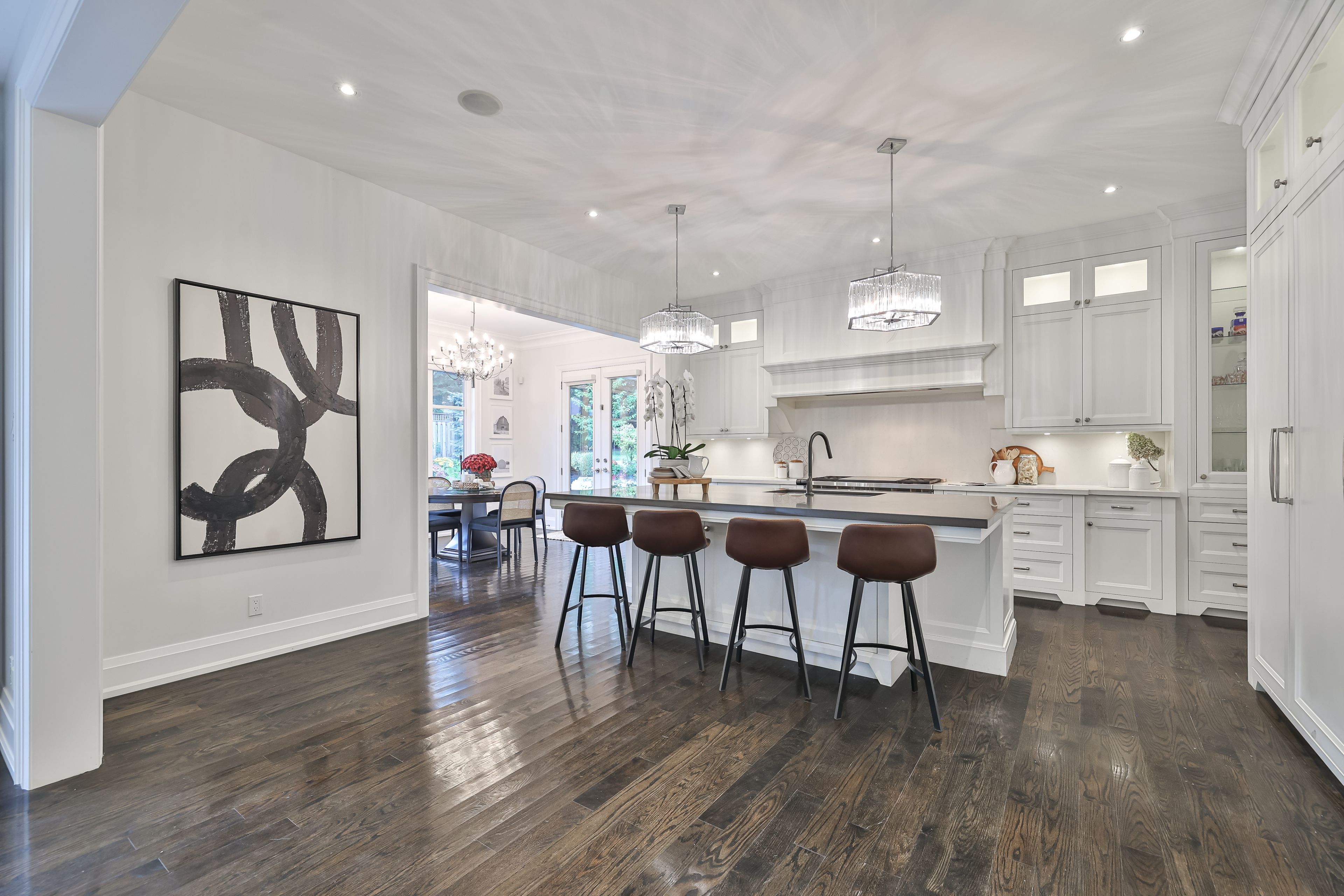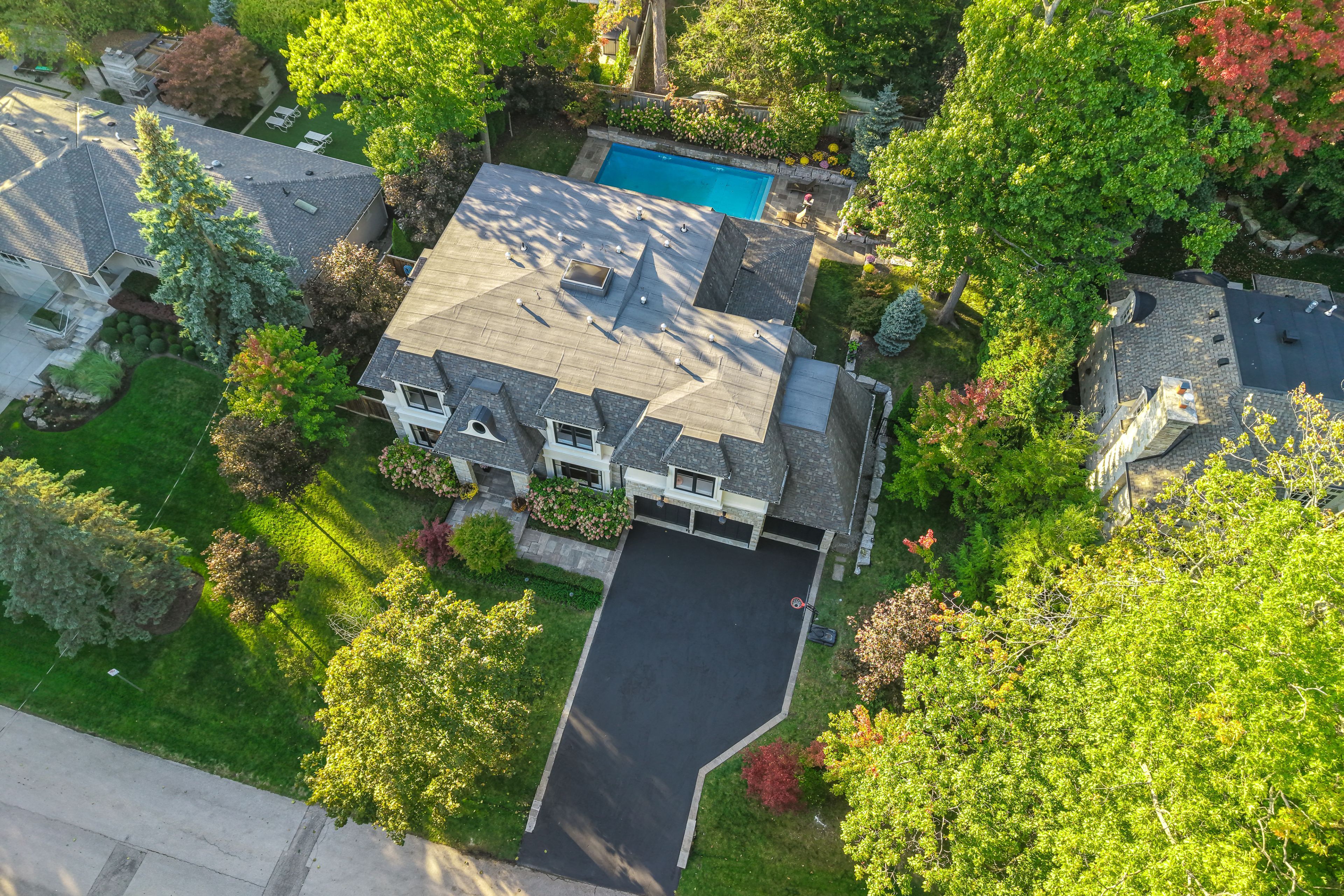 A French Château Estate build 2016, newly renovated magnificent 112' x 137.01' ravineLOT in Oakville's best neighborhood, this 7,012 sq ft stands as a testament to timeless architecture and generational living. Could be 6 bedrooms and 6 bathrooms, this residence offers both palatial scale and intimate family spaces, complete with a 3-car garage and a grand driveway accommodating 9 vehicles - creating a private motor court worthy of this exceptional property.Architectural Distinction & Estate Grounds Inspired Design: From the Owen Sound ledge stone facade to the meticulously crafted interior details, every element reflects authentic French architecture Parking Prestige: Beyond the 3-car garage, the estate's expansive driveway provides formal parking for over 9 vehicles, perfectly accommodating grand entertaining and family gatherings Protected Privacy: Nestled on a ravine-lined cul-de-sac with only three neighboring homes, ensuring perpetual tranquility and exclusivityRefined Interiors for Gracious Living Grand Entertaining Spaces: Soaring 10-foot ceilings and an open, flowing layout ideal for both intimate family moments and lavish gatherings Culinary Excellence: A Misani-designed chef's kitchen featuring Wolf and Sub-Zero appliances, serving as the heart of this family estate Private Sanctuaries: Four second-floor ensuite bedrooms offering serene retreats with captivating ravine views Exceptional Amenities: Professional home theatre, sophisticated wet bar,cool gym and saltwater pool with waterfalls create an unparalleled living experience A Lasting STORY.This is more than a residence - it's a heritage property where every detail has been carefully considered for multigenerational enjoyment. From its commanding presence to its thoughtful layout and exceptional grounds, this French château represents a rare opportunity to own a piece of Oakville's finest.This is your opportunity to secure a landmark estatea timeless treasure to be cherished by your lineage.