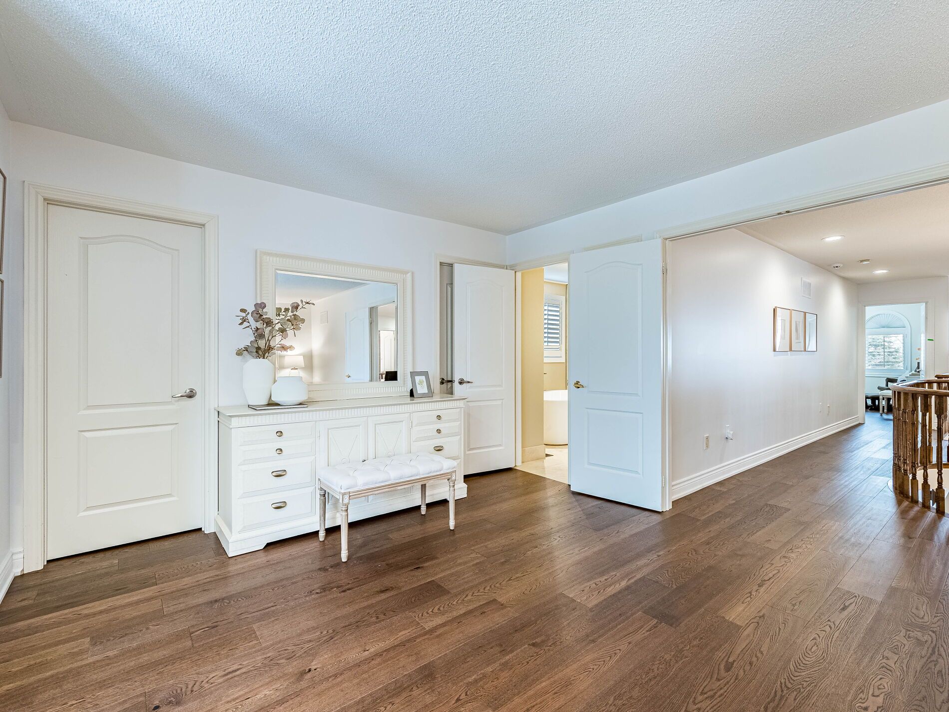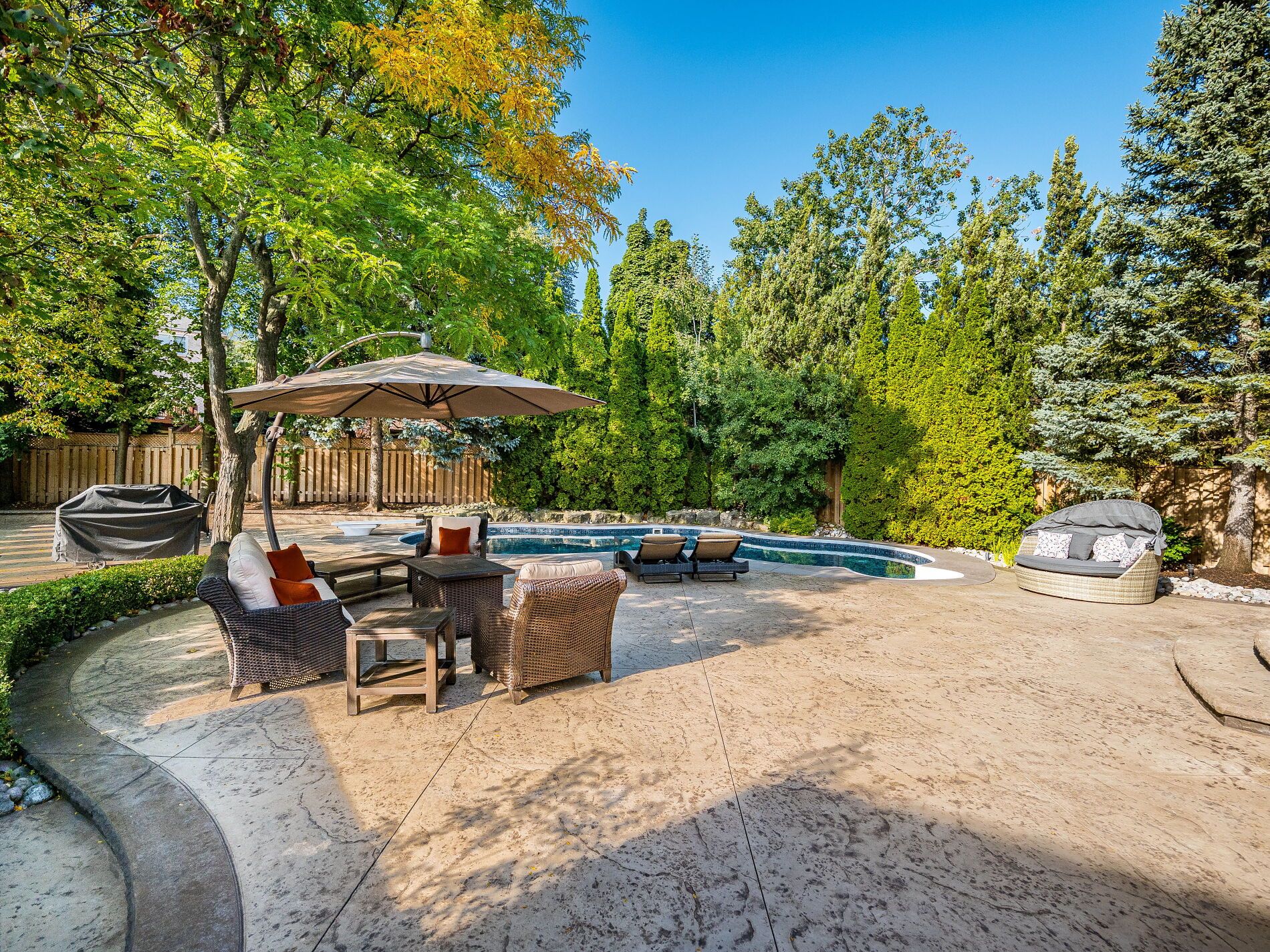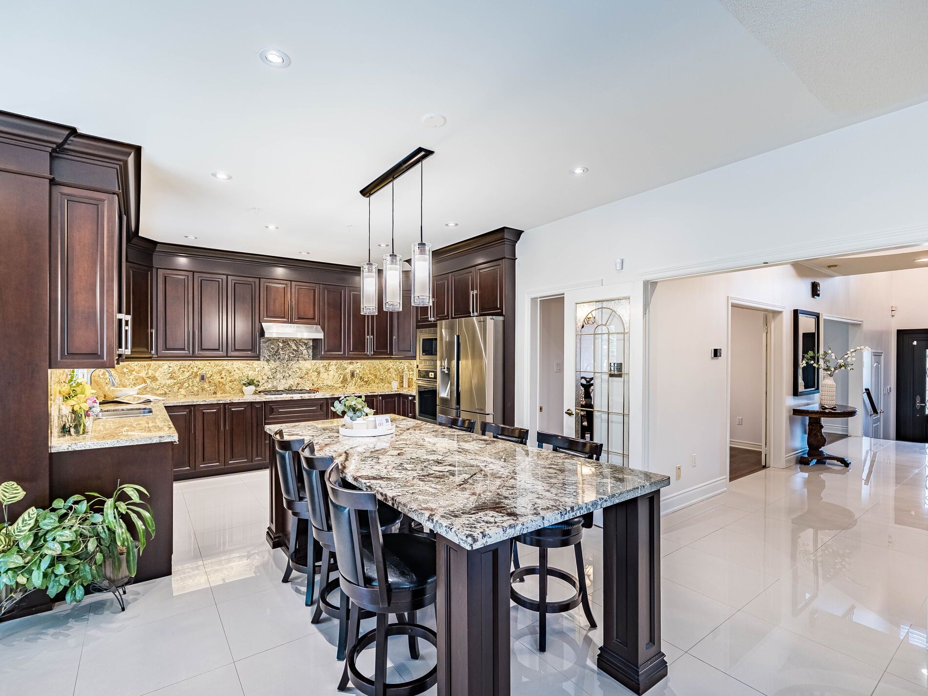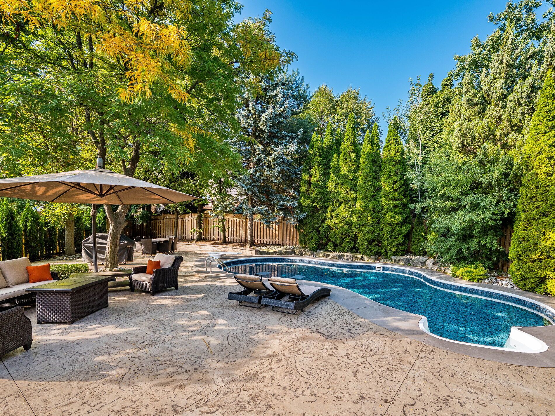 Welcome to 5290 Hilton Court, a rare and distinguished residence nestled in the most private and prestigious cul-de-sac in Credit Mills. With properties on Hilton Court seldom offered for sale, this is an exceptional opportunity to own a true gem. This stunning estate spans nearly 10,000 sq ft. situated on a 65.12 x 166.38 ft. private, resort-style oasis that features a heated saltwater inground pool, landscape lighting and surrounded by towering cedar and pine trees for total seclusion and serenity. This New Classic Style home blends timeless architectural elegance with modern family comfort boasting approx. 4,300 sq. ft. above grade and an additional 1,700 sq. ft. in the lower level for a total of an approx. 6,000 sq. ft. of living space. The main level welcomes you with a grand custom-made Solid Mahogany Amberwood door, Expansive formal living and dining rooms with oak hardwood flooring, two solid oak staircases adding architectural distinction and flow and a versatile Gym (can be converted to a main floor Master bedroom), The heart of the home is the custom-designed kitchen, a true gathering place for family and guests alike with Oversized center island, Wrap-around cabinetry for ample storage and Full slabs of granite countertops and backsplash for a sleek, upscale finish, The kitchen opens into a sun-filled family room anchored by a modern wall-mounted gas fireplace, with stunning views of the lush, cedar-lined backyard the perfect setting for year-round entertaining. The second-floor features 4 spacious bedrooms, 3 full bathrooms, all beautifully appointed Plus an executive office (can be converted to a 5th Bedroom) with custom wrap-around bookshelves and a cozy gas fireplace with Rich oak engineered hardwood flooring throughout. The lower floor includes a direct exit to the 3-car garage, a second full kitchen with an attached Pantry room, massive TV room, full Billiard Room, wet bar, and a residence suite with a 3 PC washroom and attached Family Sauna.