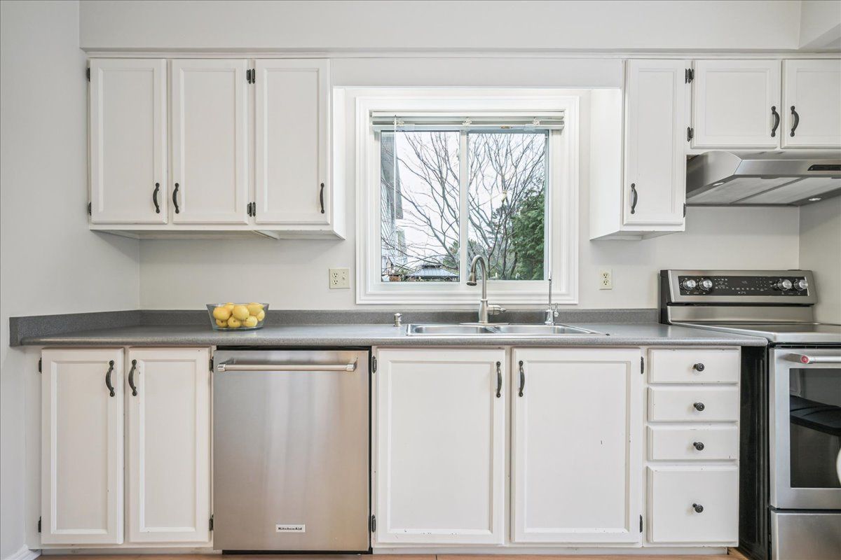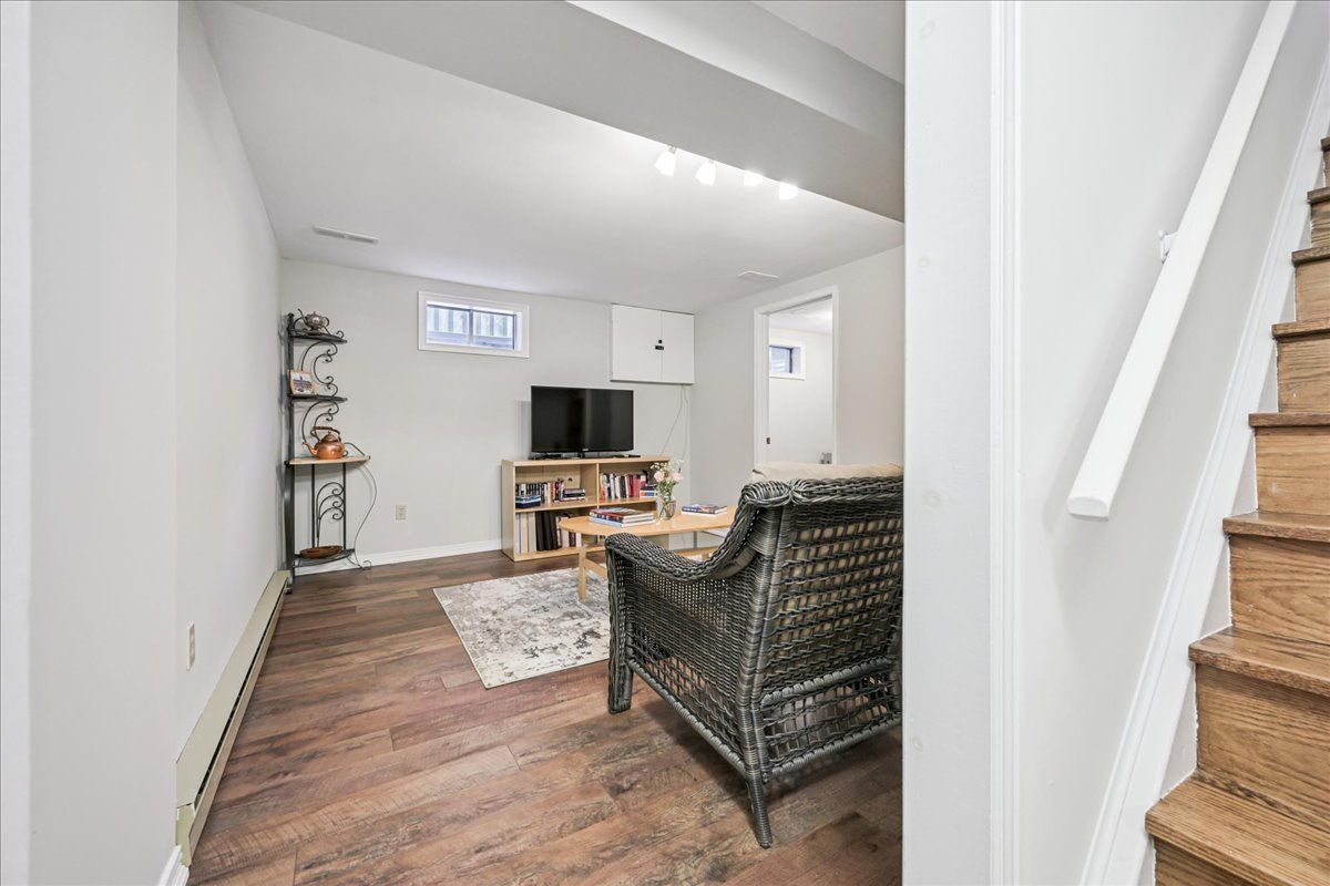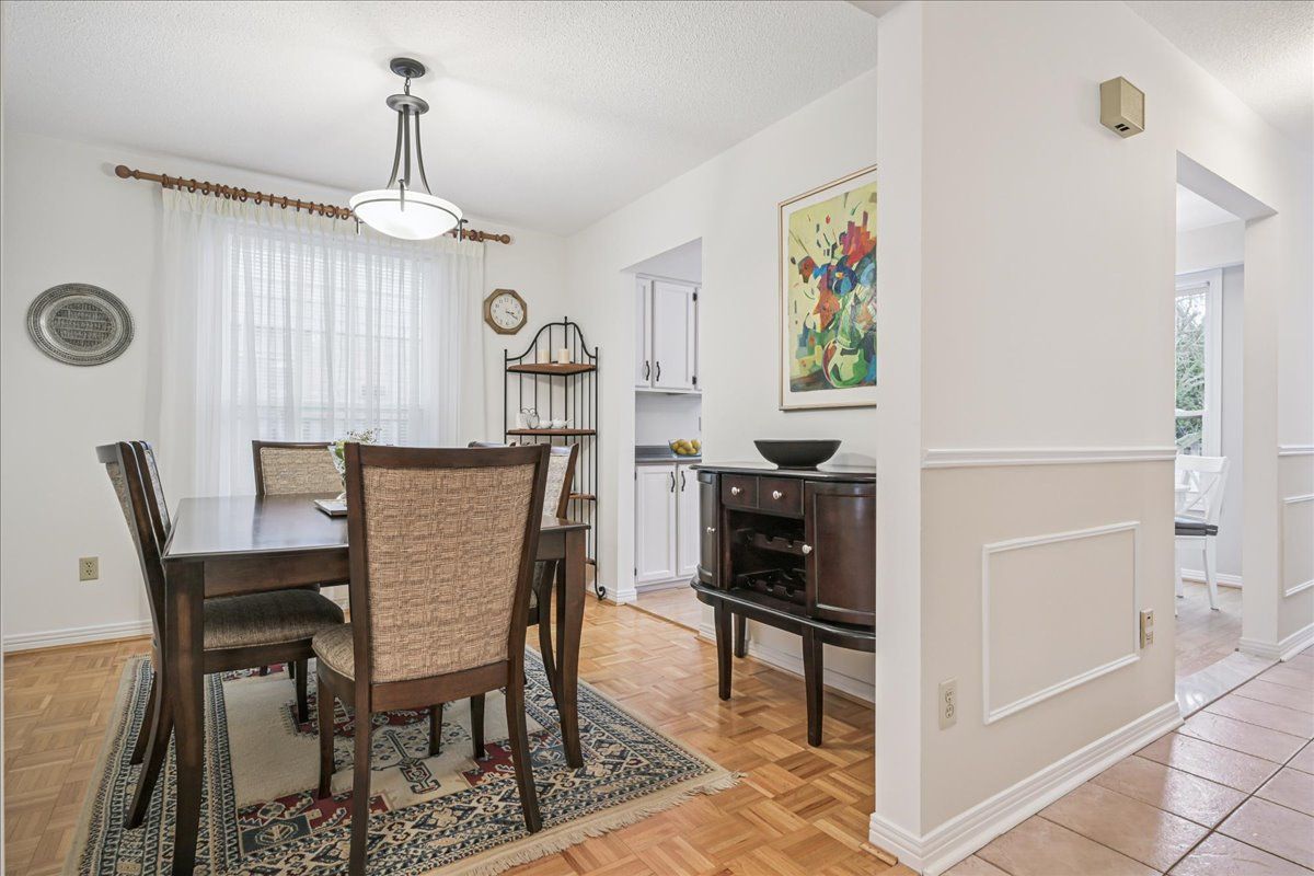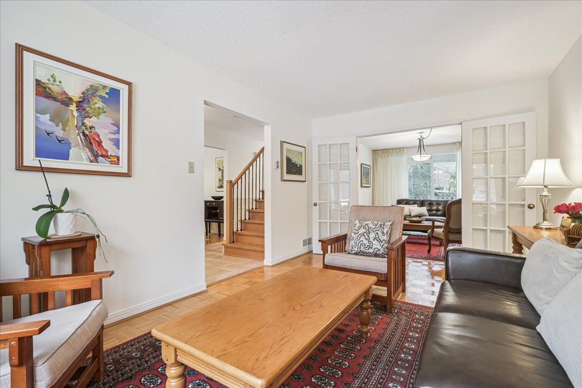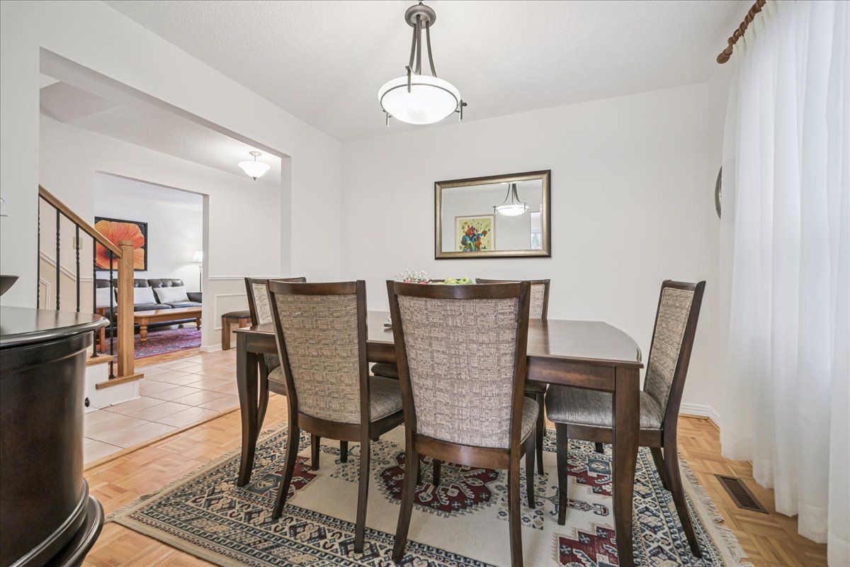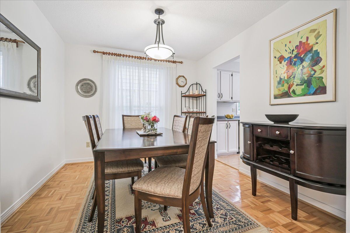 Nestled at the top of a quiet court in central Burlington, this beautifully maintained Monarch-built family home offers 3+1 bedrooms, 3.5 bathrooms and approx. 2,432 sq. ft. of finished living space including the basement. An ideal location for families and commuters alike, just an 8-minute walk to Tom Thomson Public School and minutes to downtown Burlington's shops, restaurants, waterfront, Spencer Smith Park, Brant Street Pier, Art Gallery of Burlington and Joseph Brant Hospital. Quick access to Burlington GO Station and Hwy 403, with Costco and Walmart close by.Curb appeal is exceptional with a double driveway, parking for four vehicles, attached double garage, interlocking stone curbing, manicured gardens and a welcoming stone walkway. The private backyard is a tranquil retreat featuring a spacious interlocking patio, mature trees, lush perennial gardens and a fruit-bearing pear tree-perfect for entertaining or enjoying quiet summer evenings.Inside, a striking oak staircase with black metal spindles anchors the foyer. The formal living room with parquet flooring flows through French doors into the warm family room with gas fireplace and walkout to the patio. The bright eat-in kitchen offers ample white cabinetry, stainless steel appliances (except fridge), updated laminate flooring and a generous breakfast area with treetop views. A separate dining room and convenient 2-piece bath complete the main level.Upstairs, hardwood flooring (2021) extends throughout the hallway, bedrooms and closets. The primary suite features a walk-in closet and private 3-piece ensuite, while two additional bedrooms share the main 4-piece bath. The finished lower level offers a versatile rec/media room with wide-plank laminate flooring (2022), a fourth bedroom or home office, and a full 3-piece bath. Numerous updates including roof shingles, windows (except patio door), front and rear doors, furnace and A/C complete this move-in ready home in a premium court location.