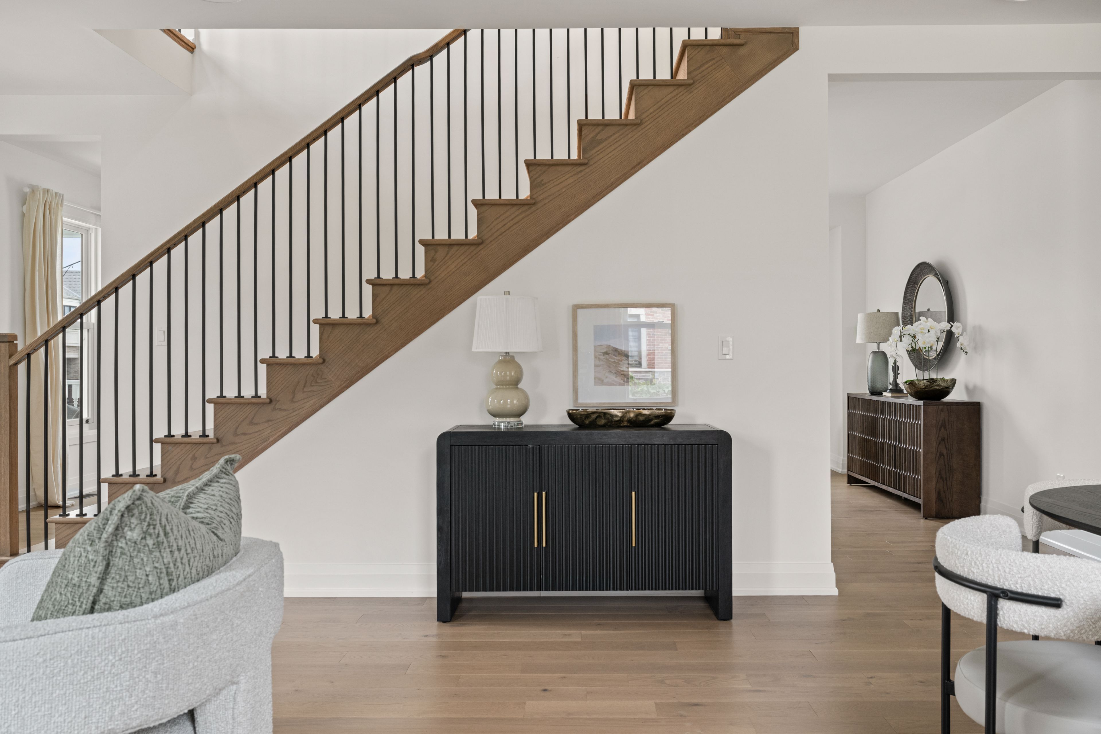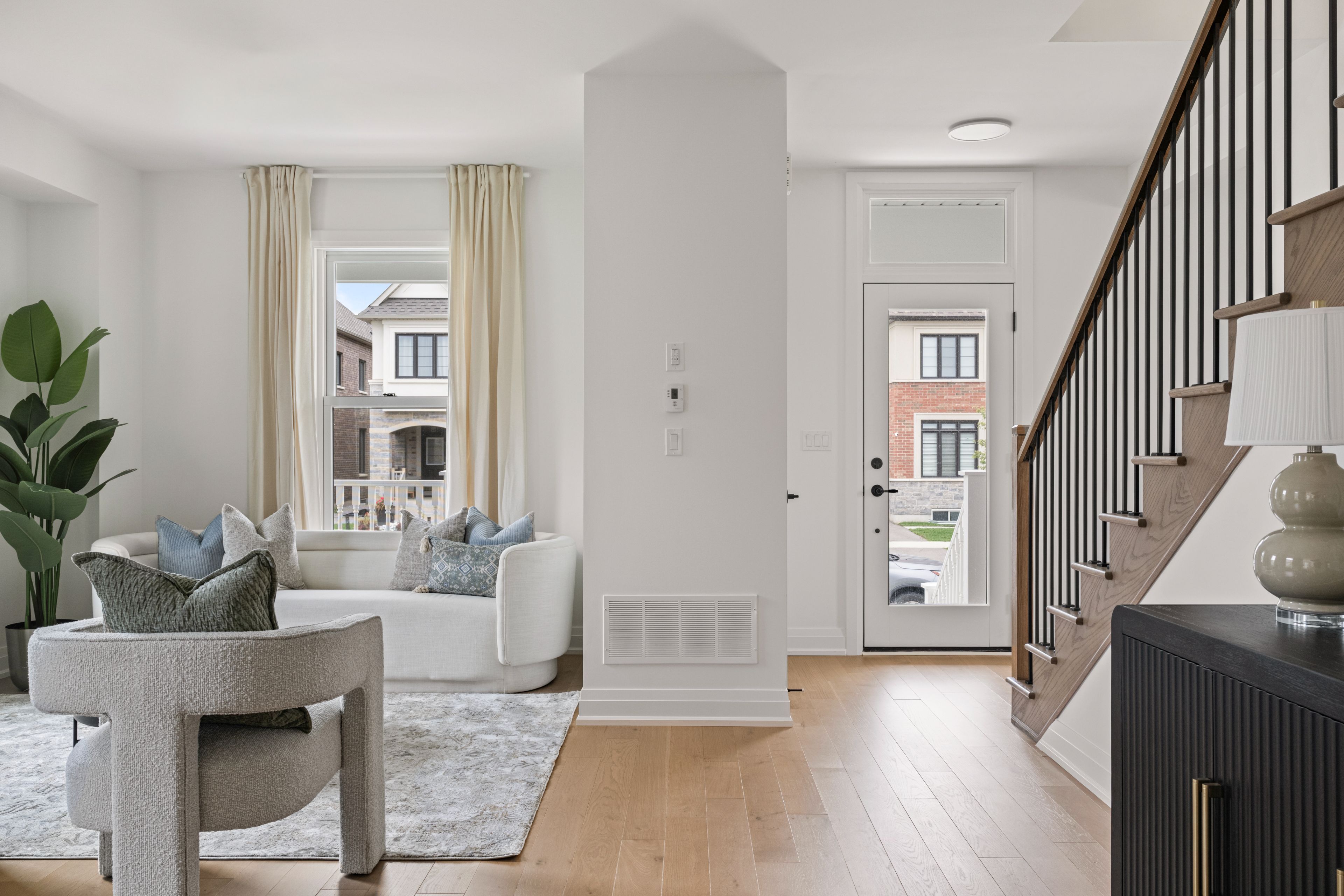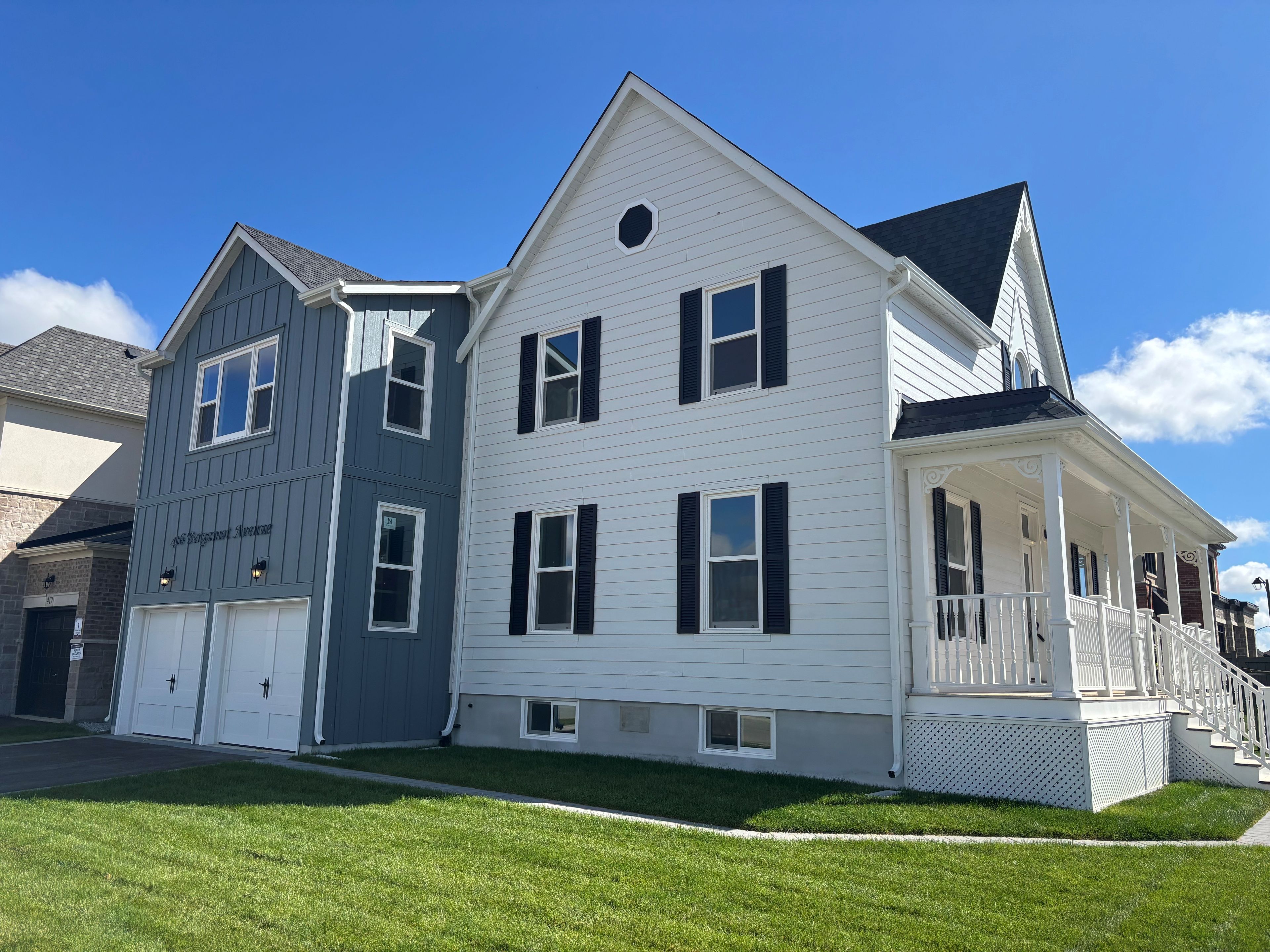 This One-of-a-Kind Designated Heritage Farmhouse blends classic charm with a stunning modern interior and a sleek contemporary addition. Features include a large veranda, a side door entrance and dual - separate - staircase access to the basement, a perfect fusion of historic character and modern living. This one of a kind home's stunning classic exterior marries a modern interior design resulting in a functional home rooted in heritage charm. The 3,040 sq ft masterpiece features an open concept living space along with 4 bedrooms, a loft, and 4.5 bathrooms. It is located across from a pond on a large corner lot (approx. 59' x 90). Luxurious upgrades fill the home, these include but are not limited to: white oak 5 x 3/4 hardwood throughout, 9ft smooth ceilings on the main floor and second floor, 8ft tall doors, backsplash with chimney hood fan, beautiful quartz counters throughout, all fixtures and hardware upgraded, frameless shower, and 5 appliances. Don't miss out on the opportunity to own this unique one of a kind Heritage Home in Milton.