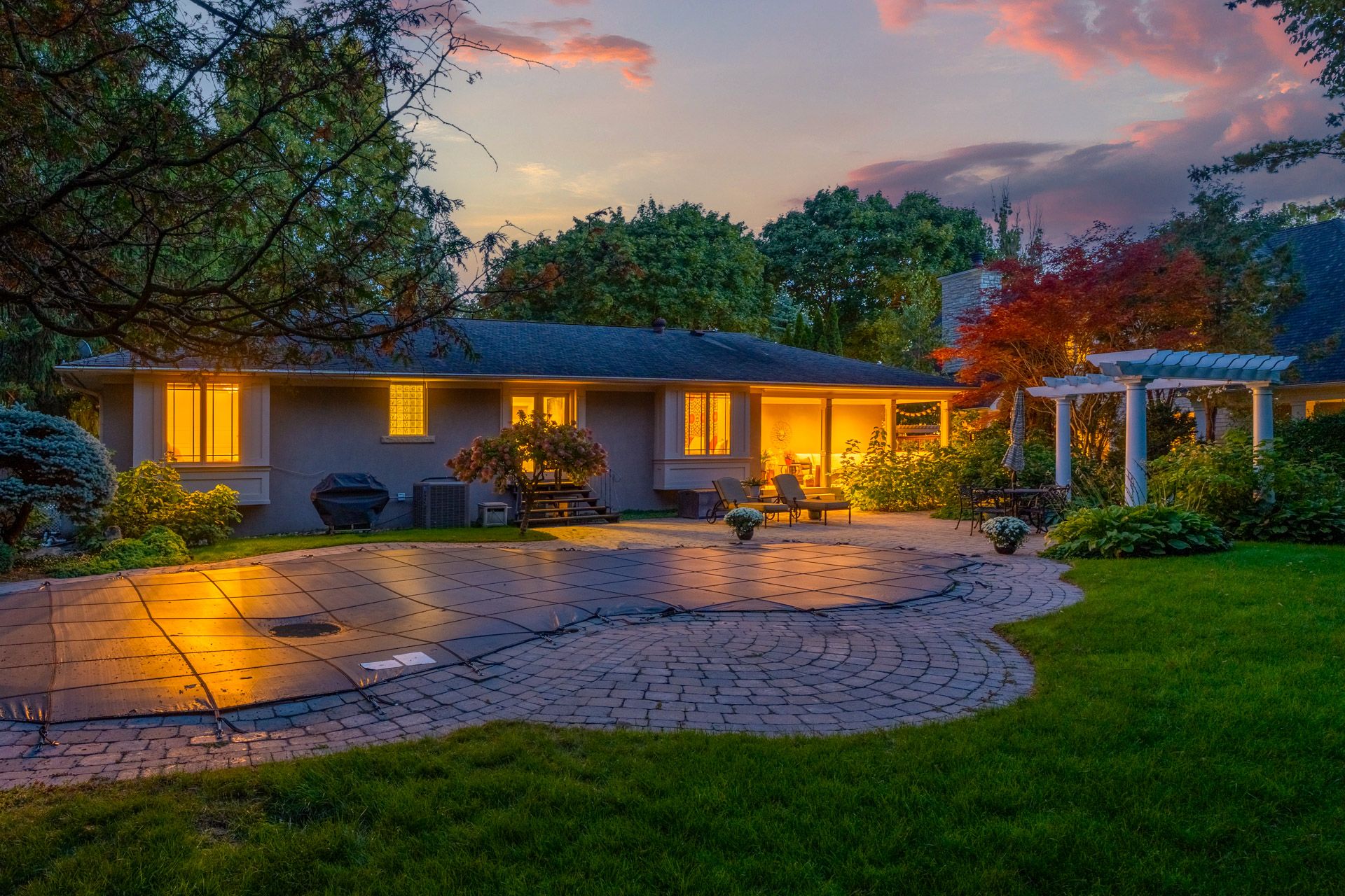 Residing on a mature, landscaped lot in Oakville with tree-lined streets creates a gorgeous setting for this lovely 3+1 bedroom bungalow where there are green views from every window. This home provides both a private, tranquil setting and great entertaining spaces. There is a covered porch off the back of the house where views of trees and greenery can be enjoyed. A large, stone patio area hosts an L-shaped pergola framing a sitting or dining area and surrounds the in-ground pool. Centrally located within highly desirable, prestigious Eastlake community of southeast Oakville, this location makes it ideal for accessing both the lake and the area's top amenities and schools. The large, gourmet kitchen has an island breakfast bar and a large window with a view of a Japanese Maple tree. Three bay windows offer a warm, inviting ambience; two in bedrooms and one in the dining room. The basement has in-law suite potential as there is a storage area under the kitchen that sides onto the bathroom, and there is separate entrance potential. Situated close to the town's most valuable amenities, there is top-tier education, lakeside leisure with green spaces and close proximity to the waterfront including Gairloch Gardens and scenic Lake Ontario trails. For convenience and community, enjoy a short drive to vibrant shops, gourmet restaurants, and cultural attractions of historic downtown Oakville. Maple Grove Village offers excellent shopping and services. Come and see all that this area and home have to offer!