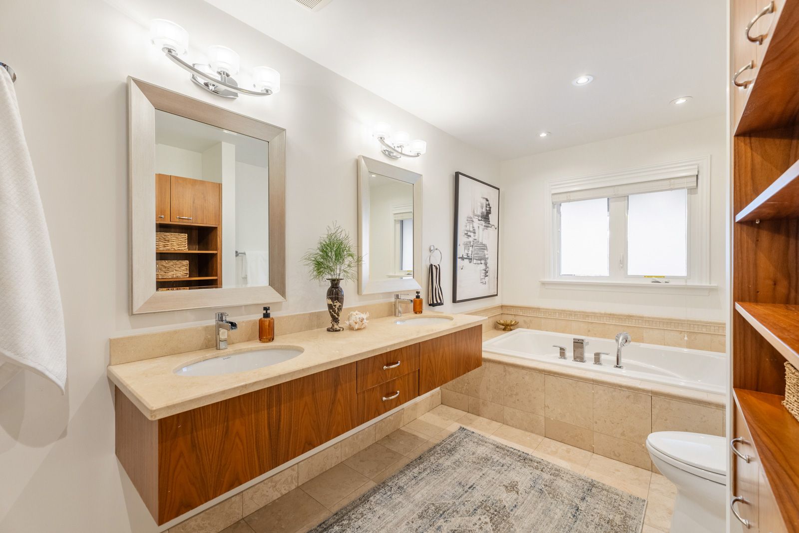 A private retreat in the heart of the city-where Muskoka-inspired living meets everyday Toronto convenience. 31 Ashwood Crescent is a highly desired detached bungalow with 3+1 bedrooms, 3-bathrooms , ideally situated in the exceptional community known as "The Manor." Professionally designed, beautifully updated, and meticulously maintained, this 4400+ square foot home sits on a generous pie-shaped lot, offering an impressive sense of space both indoors and out. The backyard is a true sanctuary, complete with a large covered deck, outdoor fireplace, hot tub, towering 8-foot fence, and a large shed, a space perfect for relaxing evenings or effortless entertaining. Inside, the stunning kitchen is both refined and functional, featuring stainless steel appliances, a gas stove, travertine flooring, tons of built-in storage, a well-appointed breakfast bar, and elegant high ceilings. It flows seamlessly into bright, inviting living and dining areas, highlighted by a stylish hosting bar and a striking gas fireplace that anchors the space. The primary suite is a serene escape, offering a large walk-in closet and a luxurious five-piece ensuite with a deep soaker tub and walk-in rain shower. Completing the main level are two more large bedrooms and a well-appointed 4-piece bathroom. The lower level adds incredible versatility, featuring a private office ideal for working or hosting clients from home, a huge family room, and an additional bedroom for guests or extended family. A large, bright laundry room with multiple sinks, cold storage room, and a dedicated home gym complete this expansive lower level. With a rare two-car heated garage/workshop with storage, parking for up to six vehicles, and the added peace of mind of a Generac generator, this home delivers both comfort and practicality in one of the area's most sought-after communities. A refined blend of elegance, lifestyle, and space-this is Muskoka living in the city. Some outdoors photos altered using AI.