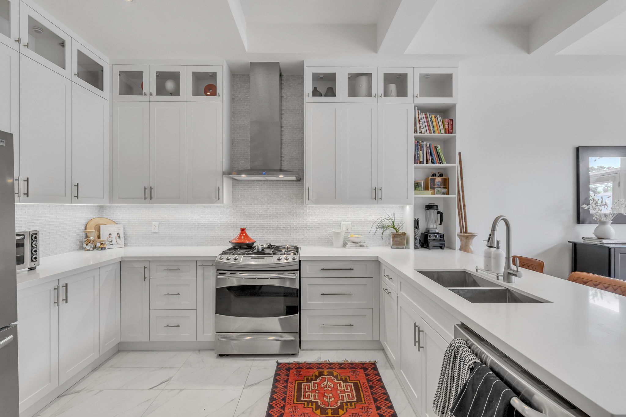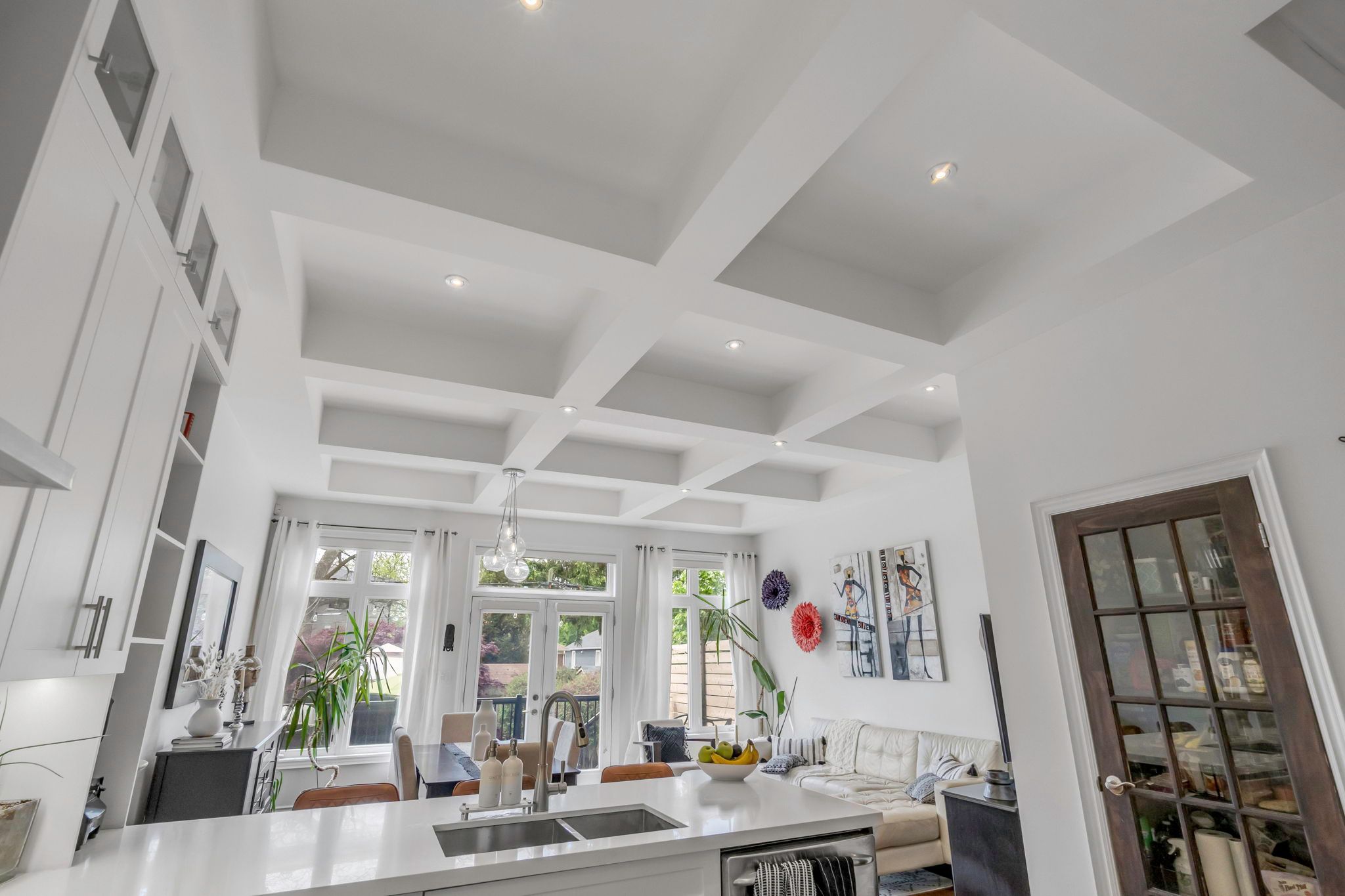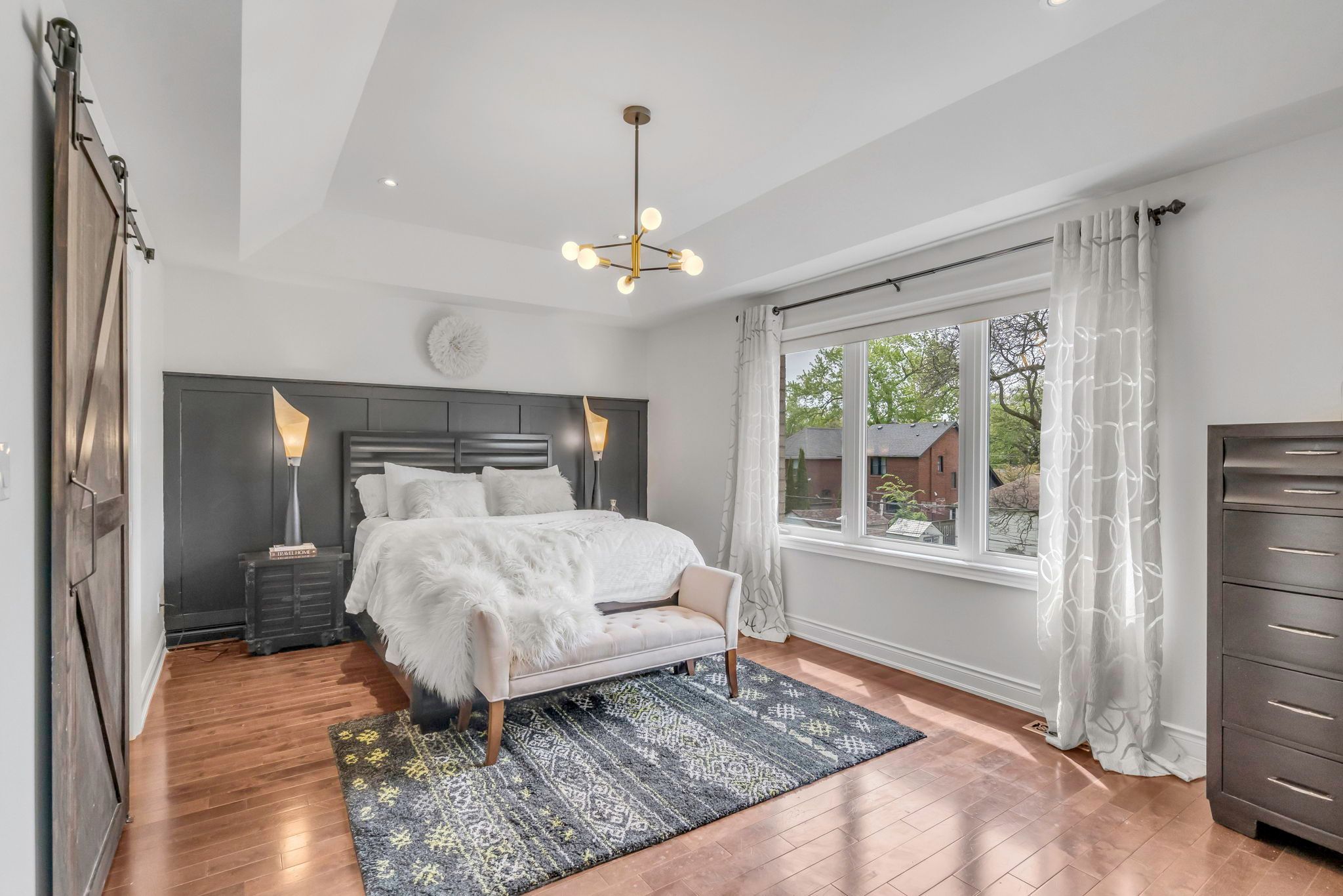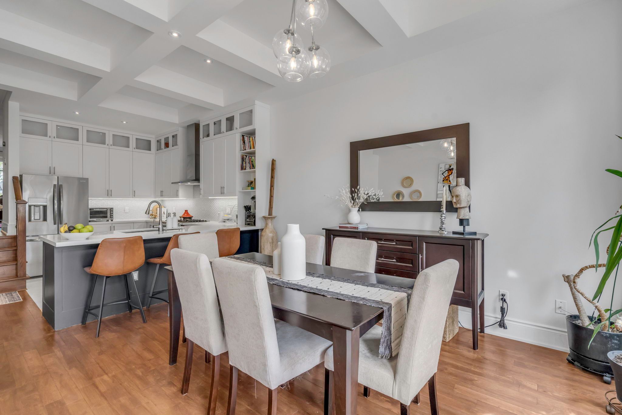 Steps to the LAKE! This "larger than most" executive residence (3+1 bedrooms, 4 baths) has over 2800 SF of living space and was custom built with care, combining refined downtown polish with a quieter, lasting beauty. The main floor is thoughtfully arranged for both daily living and entertaining. A sunken foyer creates a graceful arrival, leading to a raised family room with gas fireplace and exposed brick; warmth and character in equal measure. The full-height kitchen is designed for those who appreciate function and form: white on white cabinetry, stainless steel appliances, a walk-in pantry, and timeless detailing. Dining and living rooms feature coffered ceilings and open seamlessly to a garden that evokes the romance of Tuscany. Upstairs, natural light defines the space. Vaulted ceilings and skylights elevate the generous proportions. The primary suite offers a walk through closet with built-ins, a double vanity, and a curbless shower details chosen for comfort and ease. Wainscoting lends a sense of heritage. Secondary bedrooms are spacious, with organized double closets. The five-piece bath recalls a boutique hotel, complete with soaker tub and stand alone shower. The lower level continues the homes scale and flexibility, with a separate entrance from the garage, walkout to the yard, high ceiling laundry, and a recreation room/ +1 bed with wet bar. This space adapts effortlessly whether for entertaining, play, or a private in-law/guest suite. Outdoors, the rear yard offers privacy and calm: a pergola, established plantings, and the sense of retreat that makes a home feel complete. A private drive and garage add convenience, while curb appeal reflects true presence. Located in lakeside Mimico steps to the waterfront, GO, TTC, cafes, and dining this is classic design, built to last.