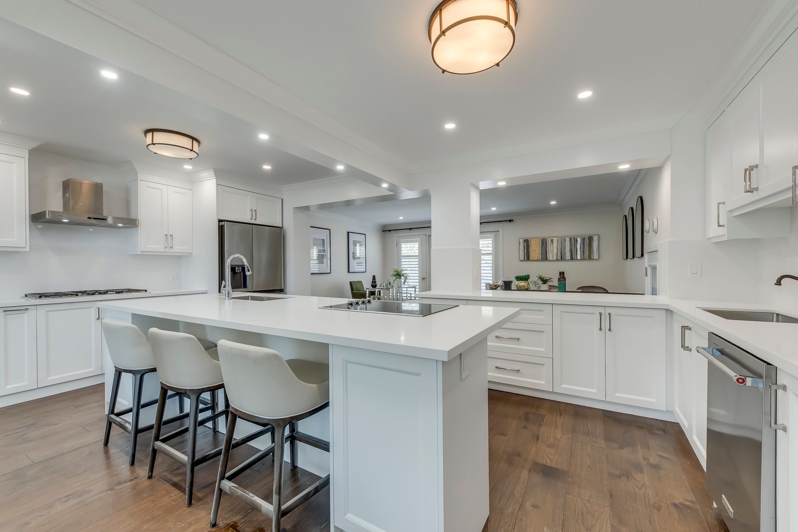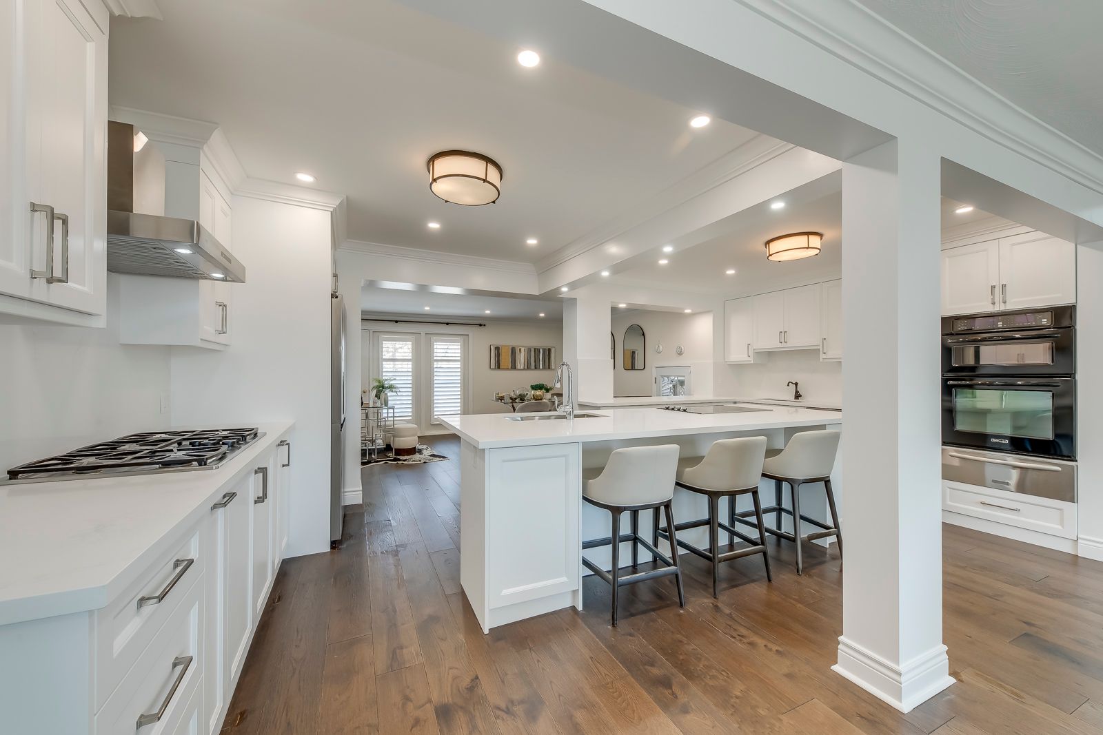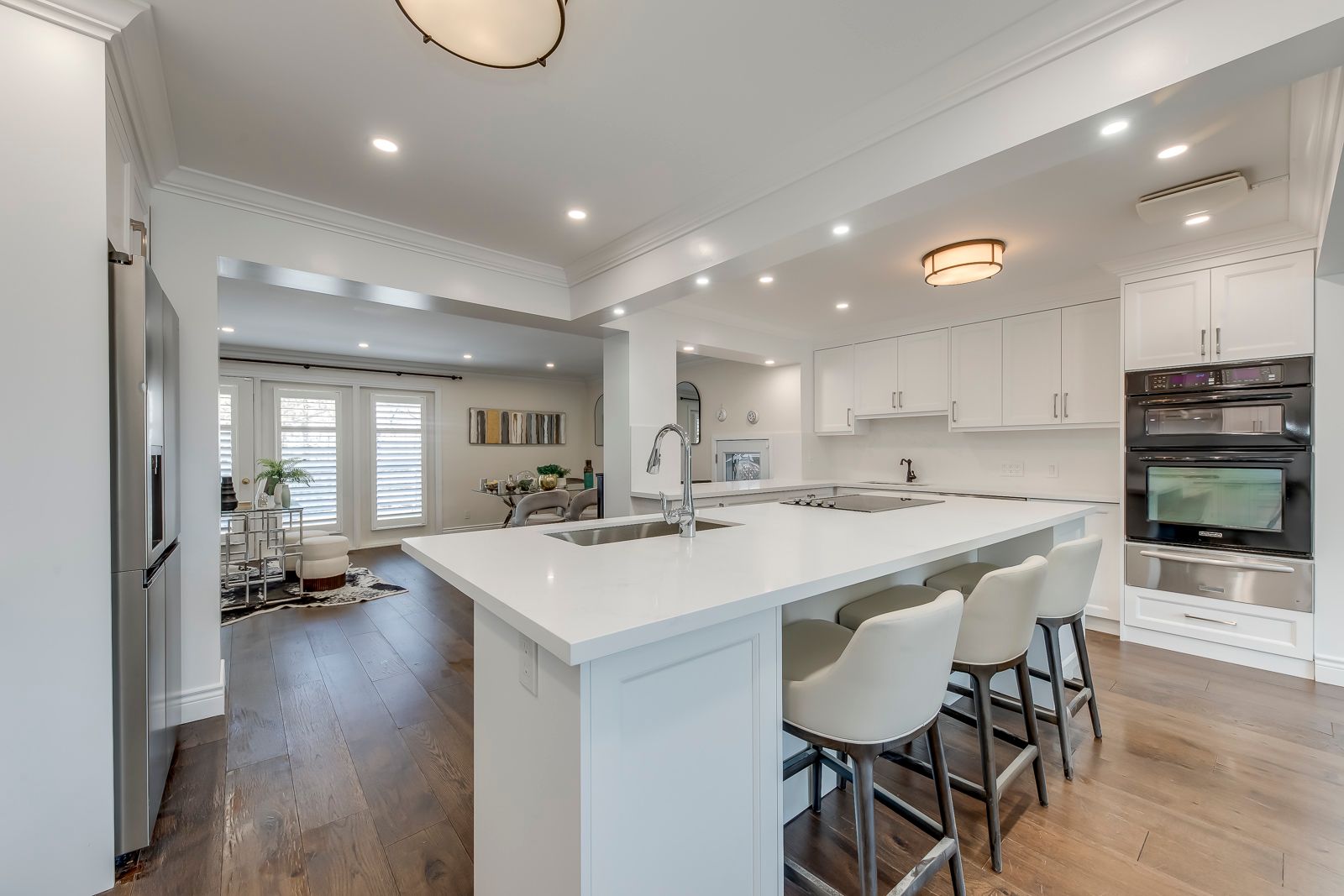 Nestled steps from Lake Ontario, this meticulously updated 2-storey executive home blends timeless charm with modern luxury. Spanning 3,000+ sq ft on an 85x181 ft lot, it features 4+2 bedrooms, 4 baths, and a seamless open-concept layout. Sunlit interiors showcase crown moulding, hardwood floors, and a grand living room with a fireplace, while the newly renovated(2026) chefs kitchen boasts chef appliances, granite counters, and direct access to a cedar-lined terrace. The main floor includes a formal dining room with a second fireplace, a family room opening to the saltwater pool, and a spacious pool house. The finished lower level offers family spaces, and ample storage. Outside, enjoy a resort-style oasis with a heated saltwater pool, stone patios, hot tub, and integrated natural stone fireplaceall framed by lush landscaping. Located near top schools (W.H. Morden), Oakville Art Gallery, and lakefront parks, this home combines privacy, prime location, and executive living. A rare double-car garage with plenty of parking spaces complete this legacy property. Schedule your tour today - luxury awaits.