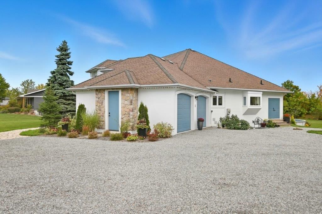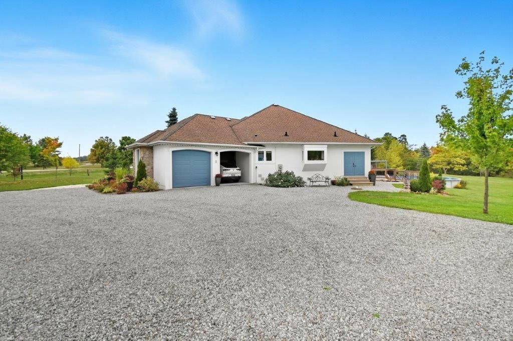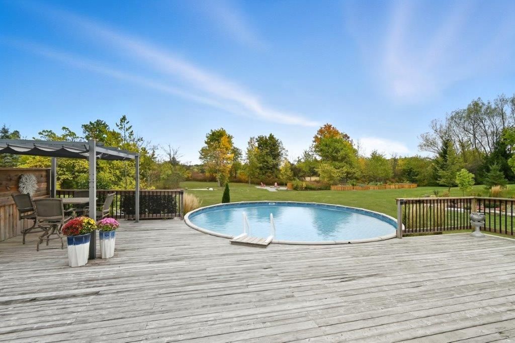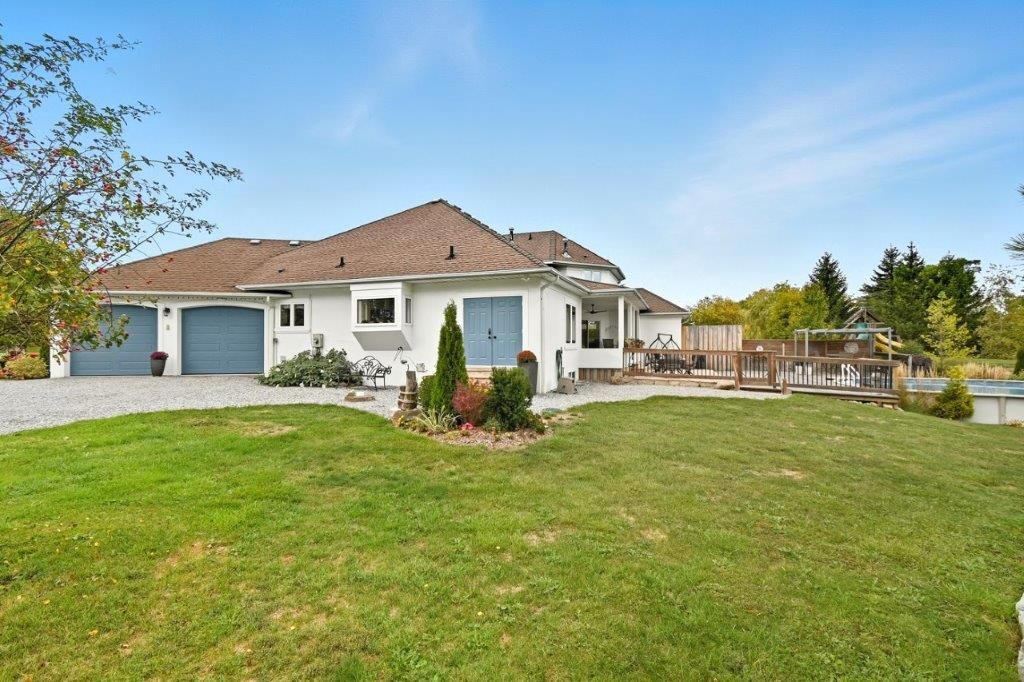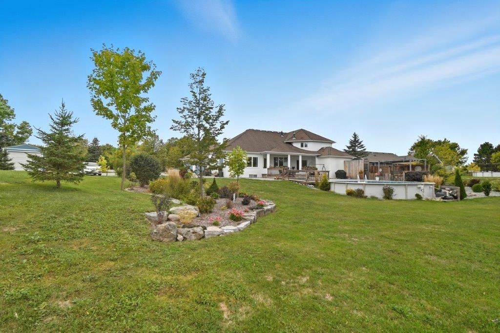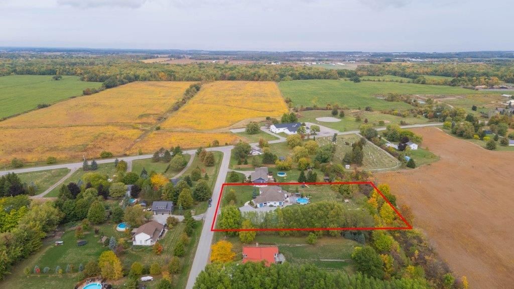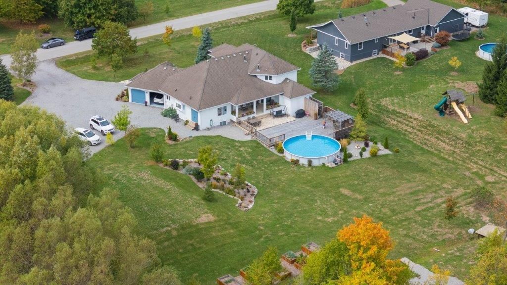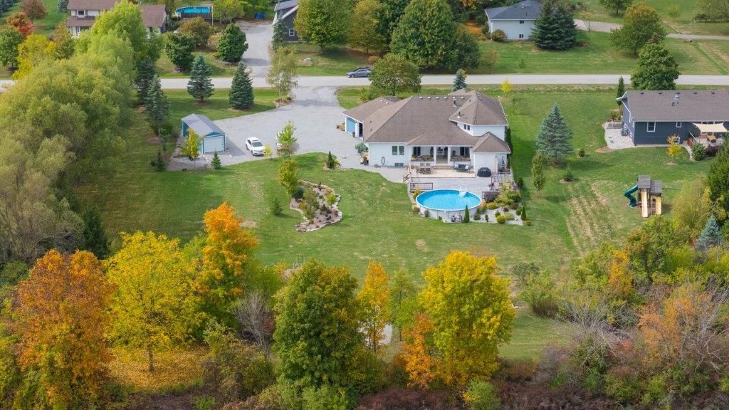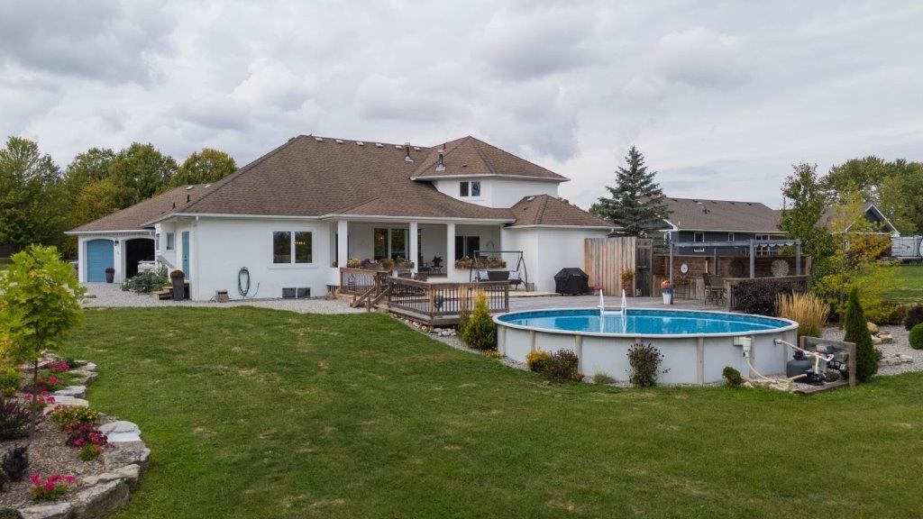 Welcome to this one-of-a-kind custom-built bungaloft nestled in the rolling hills of beautiful St. Anns. With combined acreage of over 9.5 acres, this property offers two parcels: The primary lot of 1.260 acres with 205 feet of frontage, and an additional 8.352 acres along Twenty Mile Creek featuring over 1000 feet of shoreline. The second parcel is ideal for endless family recreation with opportunities for trail riding, fishing, watersports, camping, and hiking. The home itself combines unique architecture, style, function, and comfort. A dramatic open concept great room entry with 12-foot ceilings, gas fireplace which flows into the gourmet kitchen with walkout access. The main floor also offers a large home office/den (or bedroom), main floor laundry, and the spacious primary bedroom with its own gas fireplace and walkout to the expansive backyard pool patio. Upstairs, the loft level provides two additional bedrooms, both with walk-in closets, perfect for family or guests. Outdoor living is equally impressive with a covered patio, expansive deck, gazebo, and on-ground pool all designed for entertaining and relaxation. The lower level is tailored for fun and fitness, featuring a wet bar, pool table, recreation/fitness area, and generous storage space. Additional features include central air, on demand tankless water heater, pool heater, double oven, fridge, dishwasher, EV charging port (2021), furnace and home freshly painted (2022), an oversized double garage attached to the home with an additional newly built 12x32 double-garage door workshop/shed to the right of the driveway (2024). Conveniently located close to amenities, golf courses, and highways, this property is more than a home it's a lifestyle. A rare chance to own your own private retreat blending relaxation, entertainment, and outdoor adventure, all set within a picturesque country landscape.