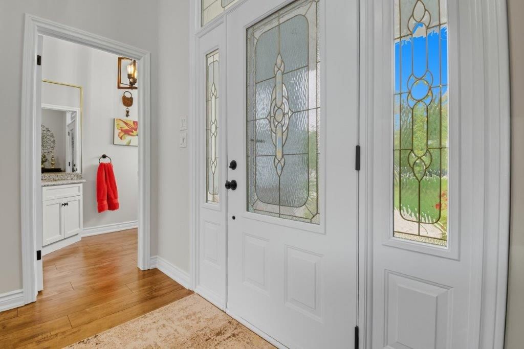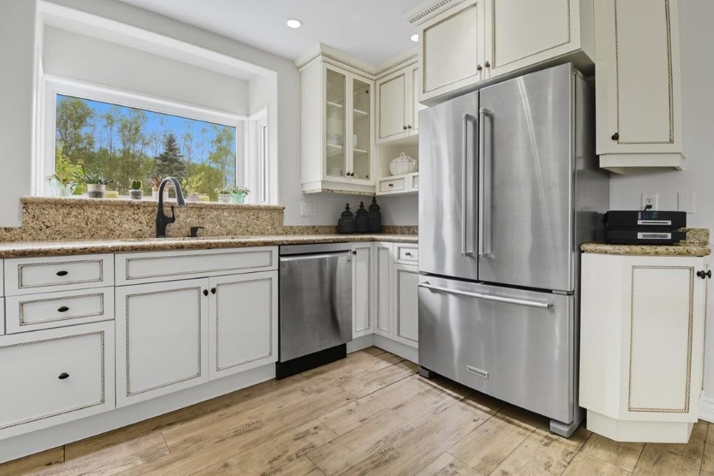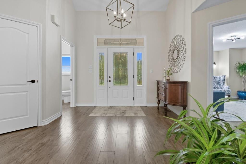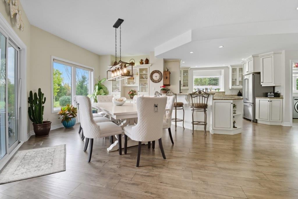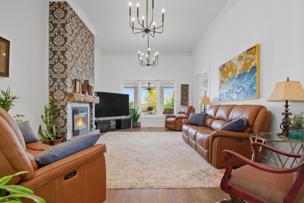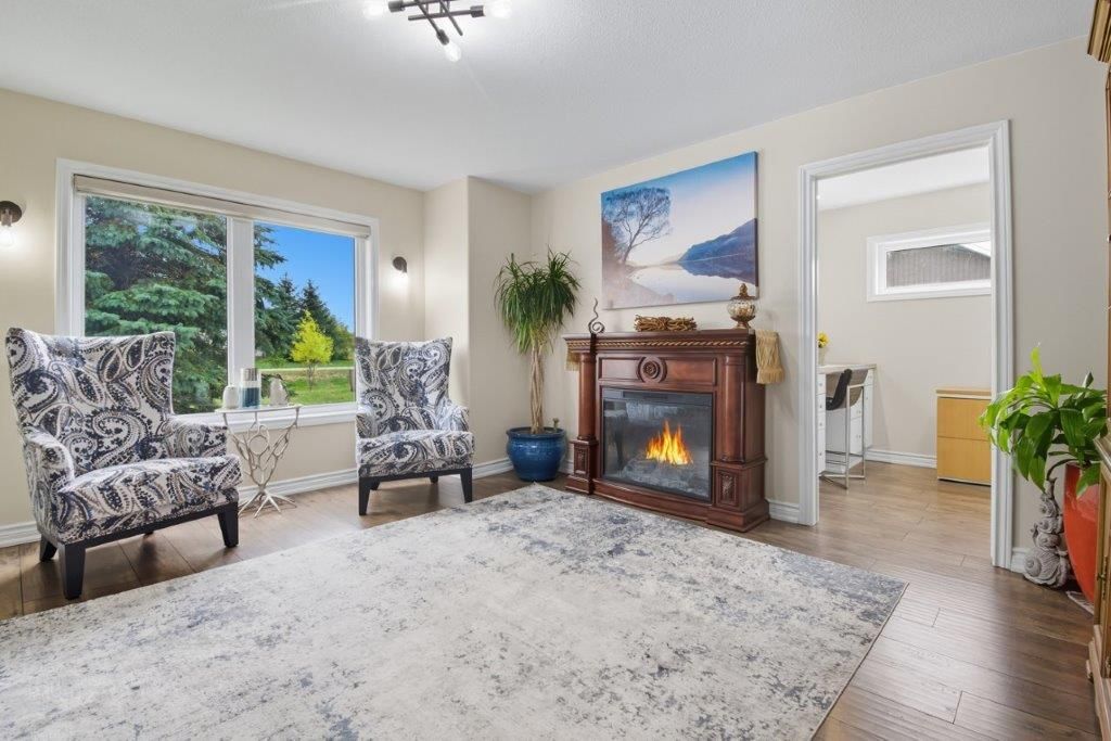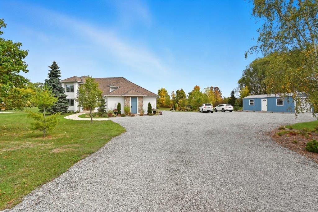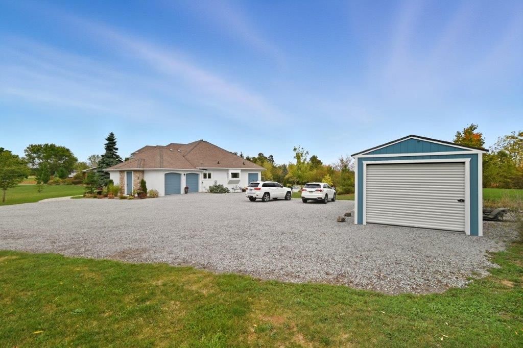 Welcome to this one-of-a-kind custom-built bungaloft nestled in the rolling hills of beautiful St. Anns. With combined acreage of over 9.5 acres, this property offers two parcels: The primary lot of 1.260 acres with 205 feet of frontage, and an additional 8.352 acres along Twenty Mile Creek featuring over 1000 feet of shoreline. The second parcel is ideal for endless family recreation with opportunities for trail riding, fishing, watersports, camping, and hiking. The home itself combines unique architecture, style, function, and comfort. A dramatic open concept great room entry with 12-foot ceilings, gas fireplace which flows into the gourmet kitchen with walkout access. The main floor also offers a large home office/den (or bedroom), main floor laundry, and the spacious primary bedroom with its own gas fireplace and walkout to the expansive backyard pool patio. Upstairs, the loft level provides two additional bedrooms, both with walk-in closets, perfect for family or guests. Outdoor living is equally impressive with a covered patio, expansive deck, gazebo, and on-ground pool all designed for entertaining and relaxation. The lower level is tailored for fun and fitness, featuring a wet bar, pool table, recreation/fitness area, and generous storage space. Additional features include central air, on demand tankless water heater, pool heater, double oven, fridge, dishwasher, EV charging port (2021), furnace and home freshly painted (2022), an oversized double garage attached to the home with an additional newly built 12x32 double-garage door workshop/shed to the right of the driveway (2024). Conveniently located close to amenities, golf courses, and highways, this property is more than a home it's a lifestyle. A rare chance to own your own private retreat blending relaxation, entertainment, and outdoor adventure, all set within a picturesque country landscape.