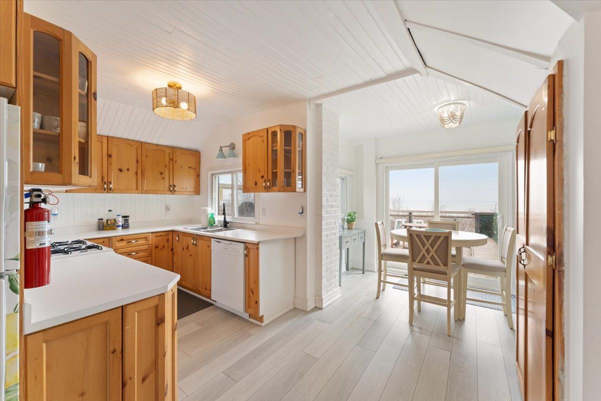 BEACHFRONT 2-UNIT PROPERTY WITH WATERFRONT TRAIL ACCESS A RARE OPPORTUNITY! This recently updated 2000+ Sq. Ft. property offers prime beachfront living with direct access to the Lake Ontario Waterfront Trail. Ideal for family living, an in-law suite, or an income-generating investment! The main level features an open-concept kitchen and dining area, a large living room, and a covered sunroom. A bedroom with ensuite privileges, a second full bathroom, and an office with backyard access provide great functionality. The spacious living room can be converted into a second bedroom. The upper level includes a separate entrance and a self-contained 3-bedroom apartment with a full kitchen, dining area, stackable laundry, and spacious living room. A private deck offers stunning lake views. Key Updates: Furnace, A/C, and water heater updated in 2021. EV charger. Interior Highlights: Complete interior renovation with fresh paint and new flooring. New doors and modern lighting throughout. New appliances, including washer and two dishwashers. Upgraded electrical system (200 amps). Newly built storage room in the basement. Exterior Enhancements: New stone interlocking in front and backyard. Privacy-enhancing new fence and landscaped planting areas. New hot tub, gazebo, and BBQ setup. New automated sprinkler system, deck cleaning, and fresh window blinds. This meticulously upgraded home is move-in ready, with a resort-style backyard featuring a fire pit, hot tub, BBQ area, and lawn. With direct beach access and steps from the boardwalk, enjoy versatile living options, whether renting, living with family, or simply enjoying this beautiful space. Key Features: 4 bedrooms (living room on Main level can be converted to 5th bedroom). 3 full bathrooms (including ensuite). Open concept living and dining areas. Resort-style backyard. Live just steps from the beach and experience the best this beachfront property has to offer!