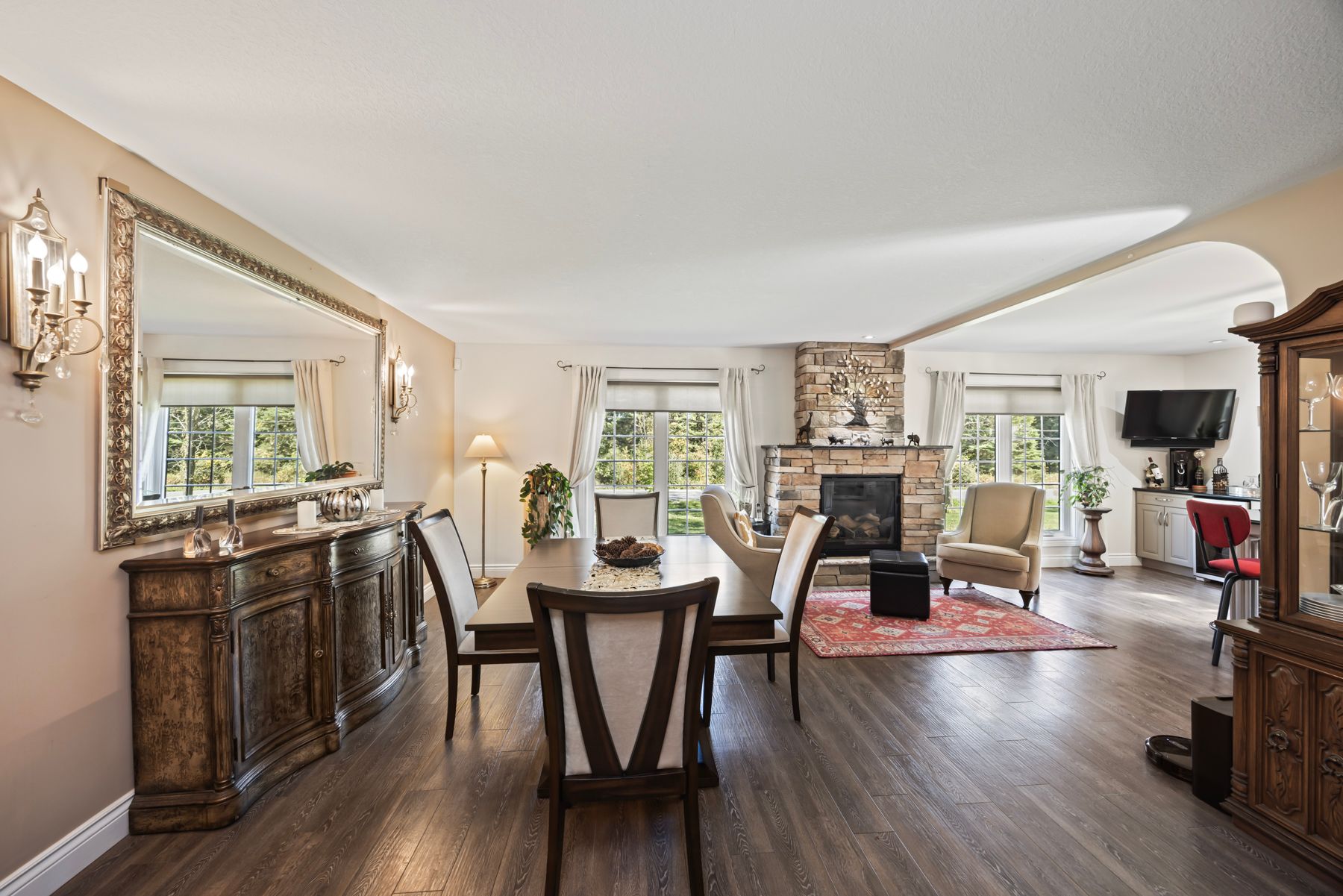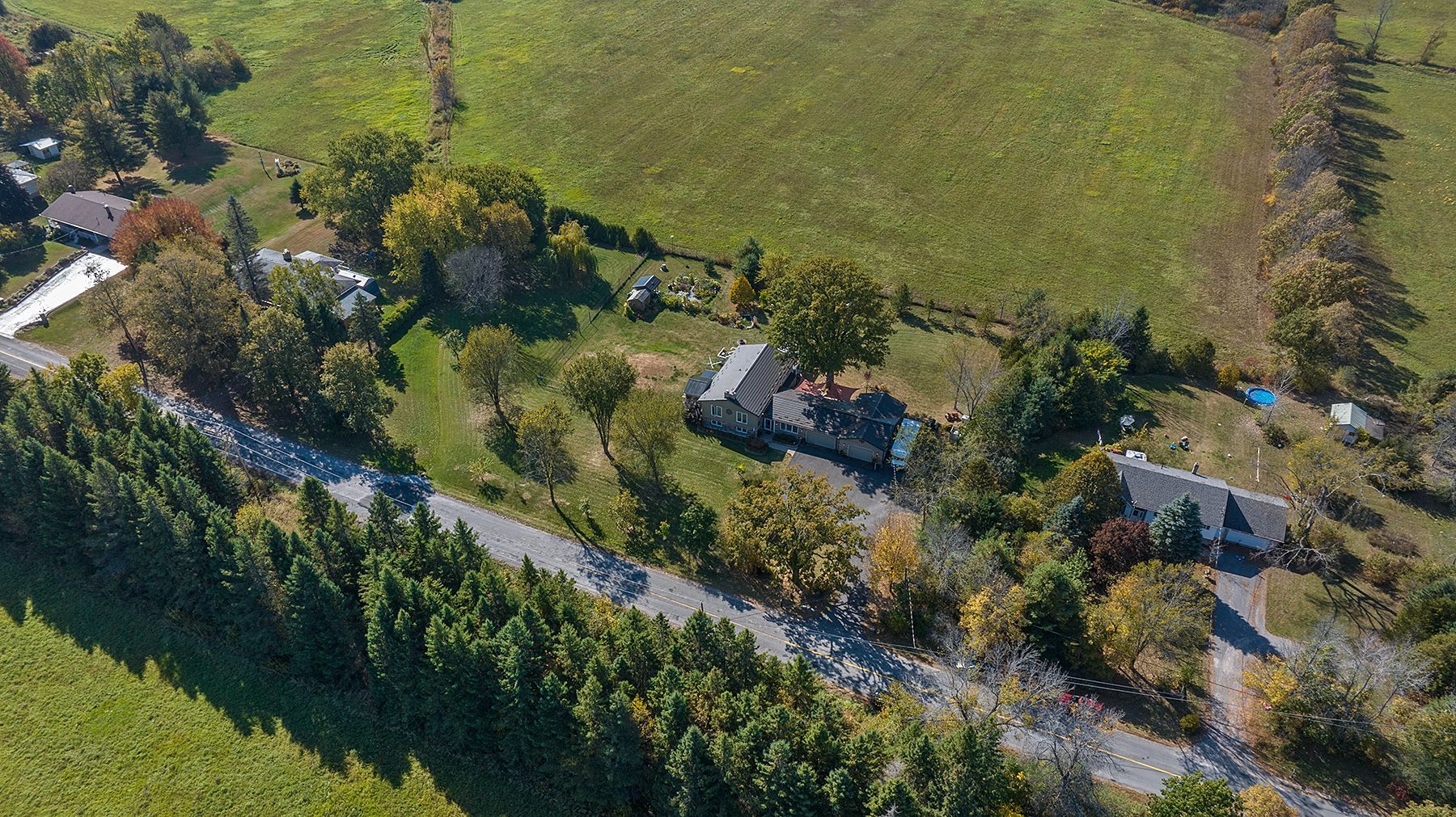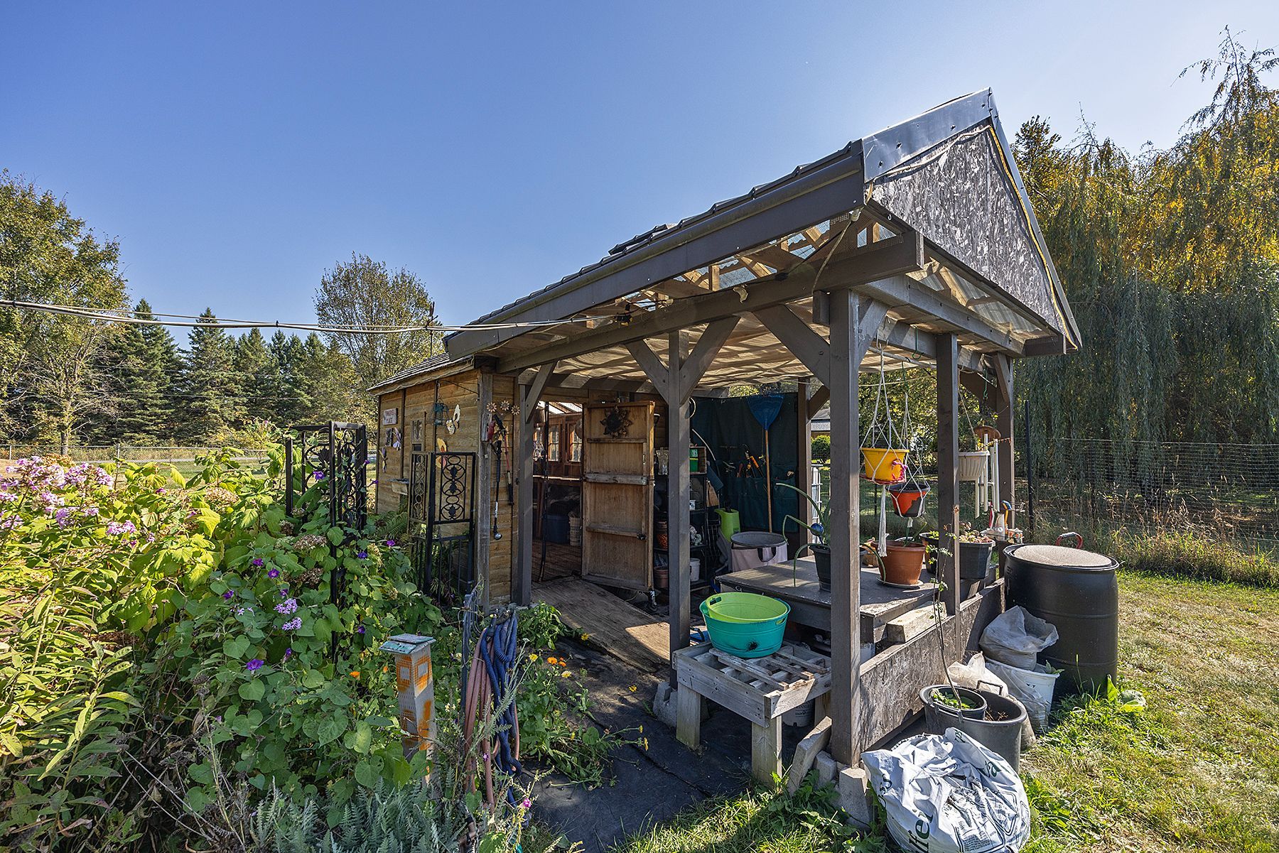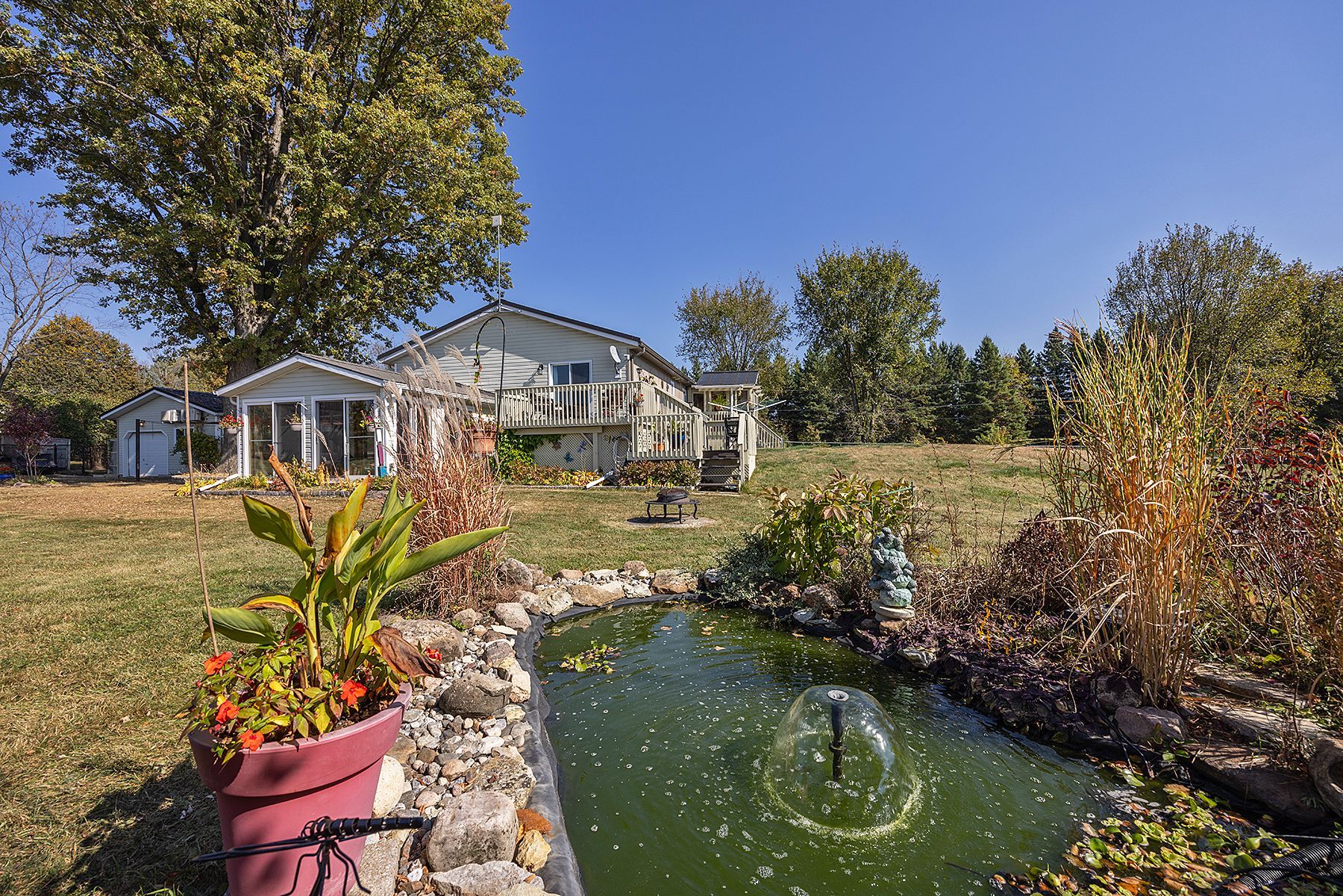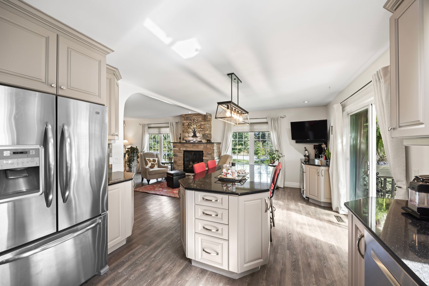 Welcome to 4841 Wolfe Swamp Road - a beautifully appointed 4-bedroom, 3-bathroom bungalow nestled on a picturesque 1.56-acre double lot just north of Kingston. This exceptional property perfectly blends modern luxury with peaceful country living, offering an impressive 3+ car garage with drive-through access, a climate-controlled workshop, and the versatility for an in-law suite or multi-generational living. Step inside to discover a bright, open layout that radiates warmth and meticulous care. The custom kitchen is a true centerpiece, featuring a large centre island, built-in beverage bar, and direct access to a sun-soaked, south-facing enclosed deck-ideal for outdoor dining or your morning coffee. Two spacious living areas provide exceptional flexibility for family life: a formal living room for gatherings and a cozy family room with pellet stove and walkout to a sail-covered patio, perfect for summer evenings. The finished lower level is perfectly designed for guests or extended family, offering a generous bedroom, full bath, and a large rec room with a Murphy bed for additional sleeping space. An enclosed sunroom houses a year-round hot tub for ultimate relaxation. Outside, enjoy manicured gardens, a planting shed, a playground area, a fenced section for pets, and a concrete pad ready for your RV or boat. Additional highlights include a fully automatic 13kW Cummins generator, central air, and majestic mature trees-anchored by a magnificent oak that truly defines the property. Experience the best of space, sophistication, and serenity-all just minutes from town.