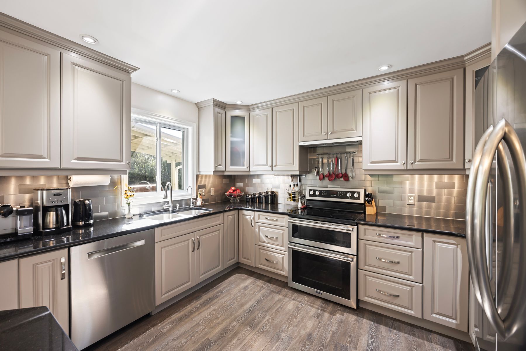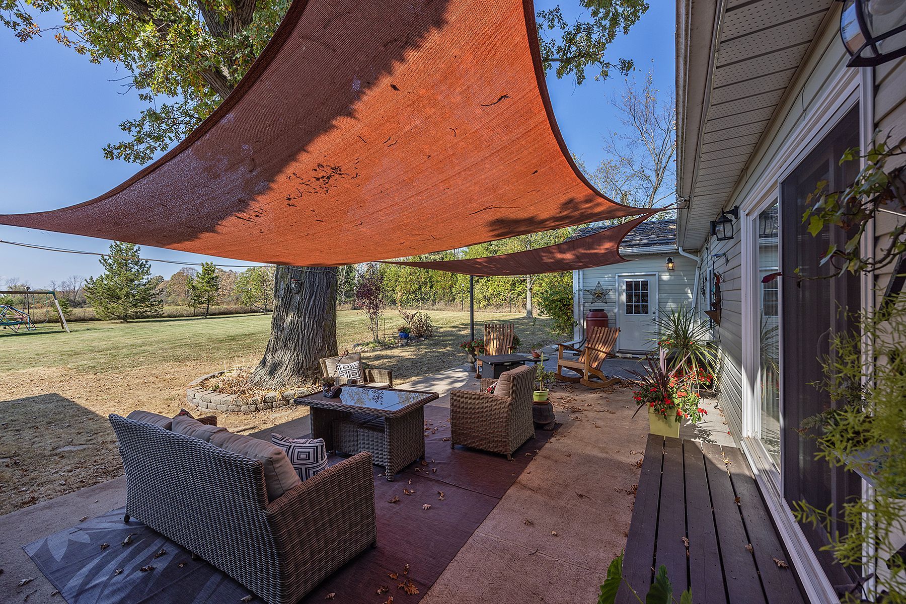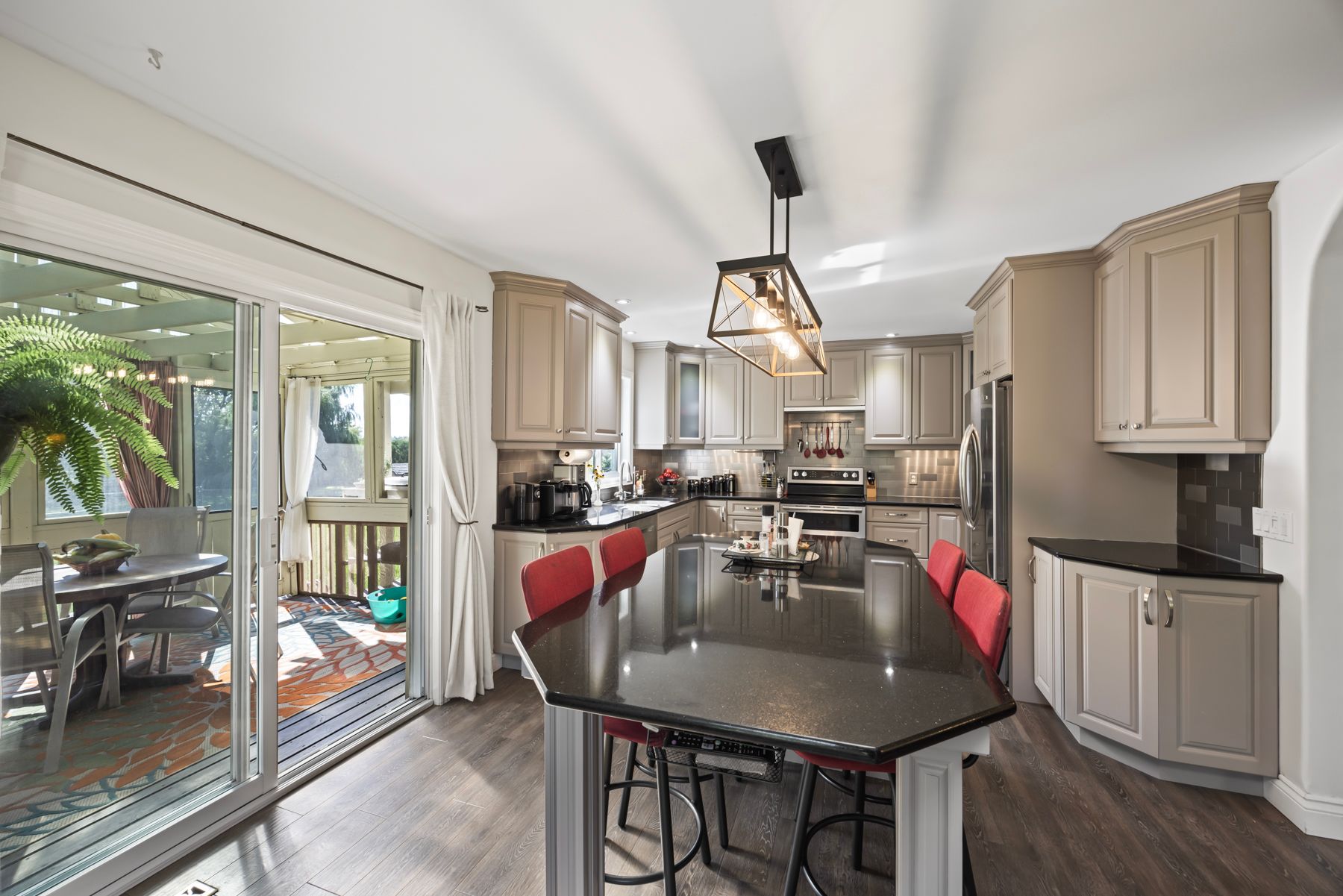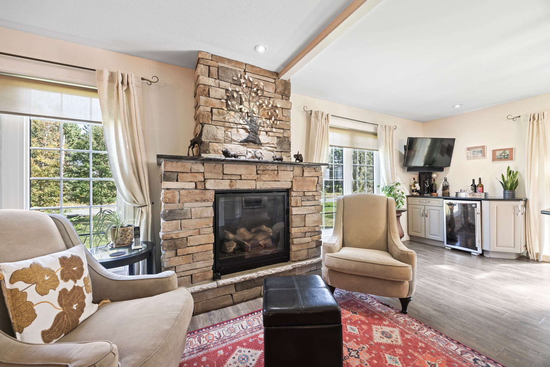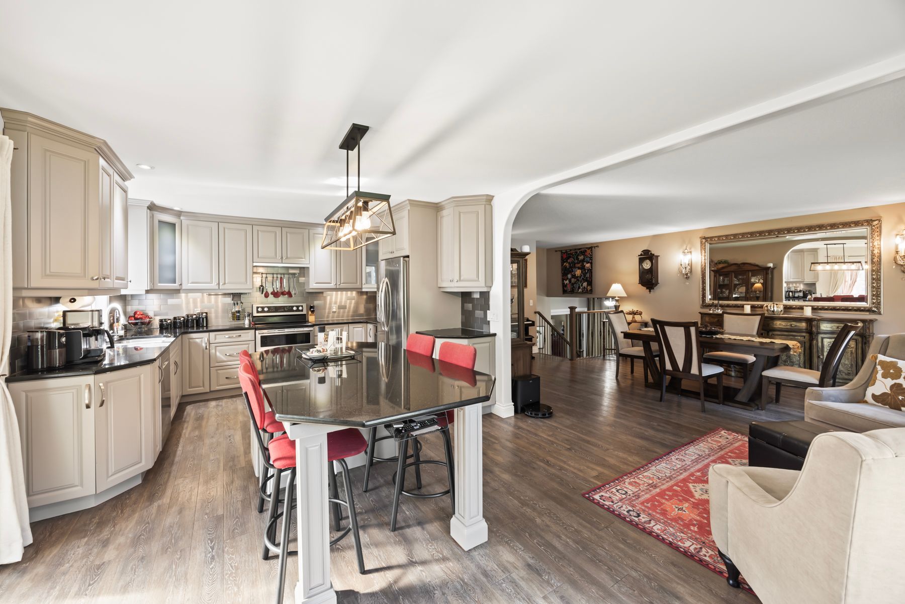 Welcome to 4841 Wolfe Swamp Road - a beautifully appointed 4-bedroom, 3-bathroom bungalow nestled on a picturesque 1.56-acre double lot just north of Kingston. This exceptional property perfectly blends modern luxury with peaceful country living, offering an impressive 3+ car garage with drive-through access, a climate-controlled workshop, and the versatility for an in-law suite or multi-generational living. Step inside to discover a bright, open layout that radiates warmth and meticulous care. The custom kitchen is a true centerpiece, featuring a large centre island, built-in beverage bar, and direct access to a sun-soaked, south-facing enclosed deck-ideal for outdoor dining or your morning coffee. Two spacious living areas provide exceptional flexibility for family life: a formal living room for gatherings and a cozy family room with pellet stove and walkout to a sail-covered patio, perfect for summer evenings. The finished lower level is perfectly designed for guests or extended family, offering a generous bedroom, full bath, and a large rec room with a Murphy bed for additional sleeping space. An enclosed sunroom houses a year-round hot tub for ultimate relaxation. Outside, enjoy manicured gardens, a planting shed, a playground area, a fenced section for pets, and a concrete pad ready for your RV or boat. Additional highlights include a fully automatic 13kW Cummins generator, central air, and majestic mature trees-anchored by a magnificent oak that truly defines the property. Experience the best of space, sophistication, and serenity-all just minutes from town.
