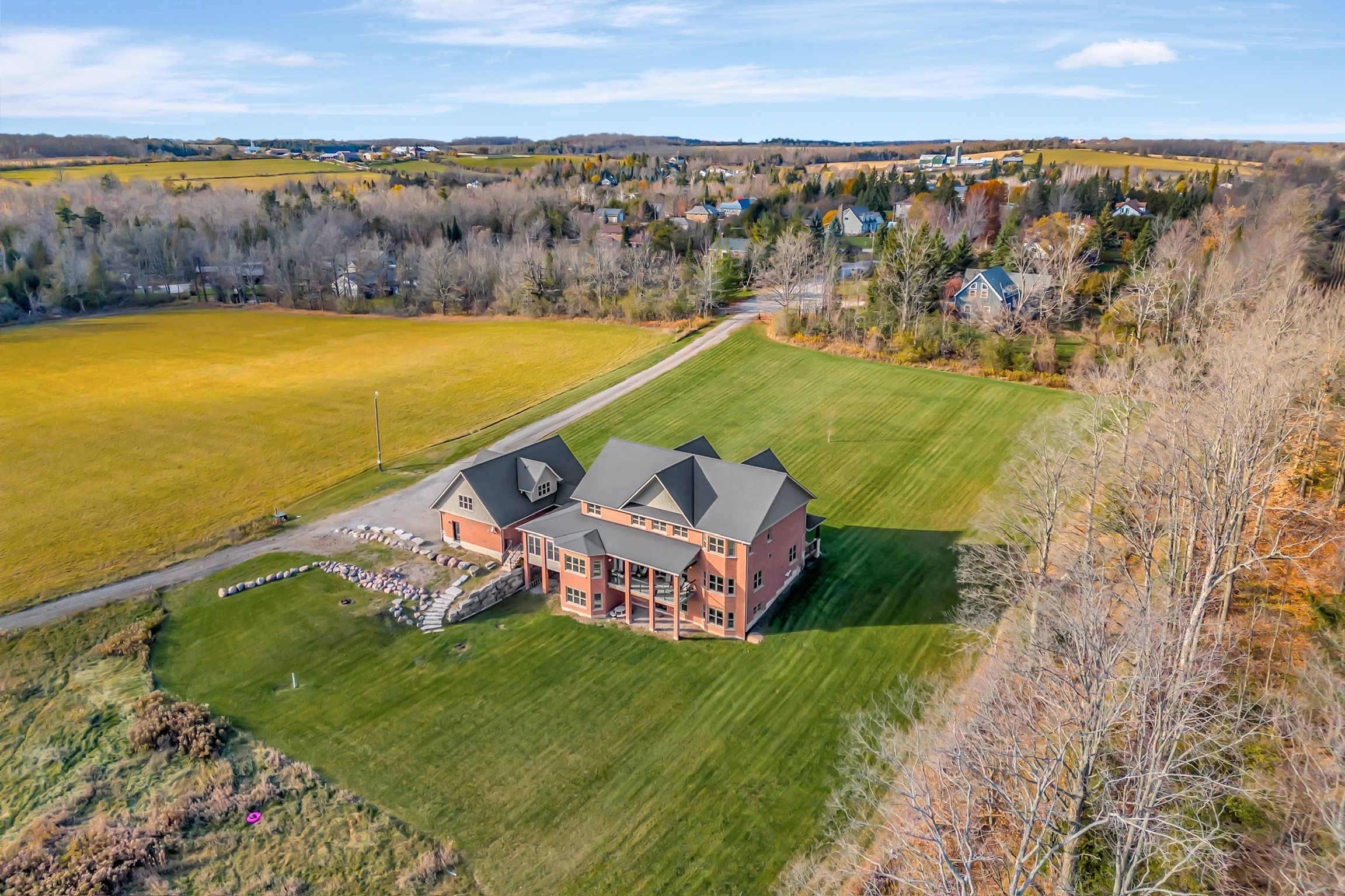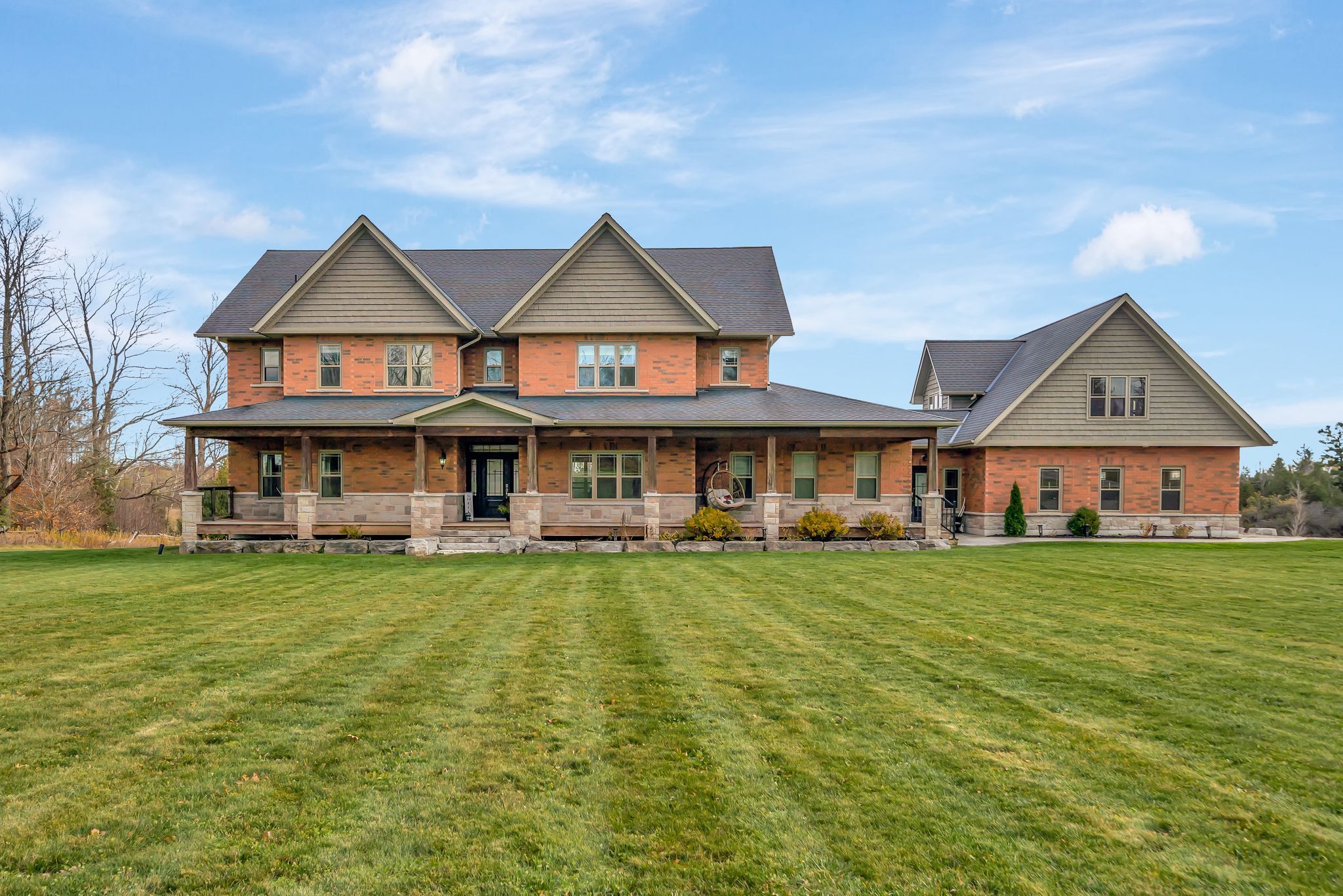 Discover an exceptional private estate set on more than 90 acres with scenic trails, featuring over 7,300 sq. ft. of refined interior living space plus an additional 700+ sq. ft. loft above the garage-already prepped for a full bathroom-a perfect canvas for your future vision. Thoughtfully designed with 9 foot ceilings on every level & built for elevated multigenerational living, this gorgeous home offers two kitchens, 7 bedrooms, 5 bathrooms, & multiple additional varying areas already plumbed to expand & customize as desired. Every detail & space is shaped for comfort, and long-term versatility. The main floor kitchen is a true luxury-grade kitchen designed for elevated living - quartz surfaces, a walk-in pantry, & a dramatic 4'x8' kitchen island that anchors the room. A secondary dining room enhances the home's ability to host & gather, while the 24'x8' deck extends the living experience outdoors with views across your private backyard. The adjoining great room impresses with a stone gas fireplace and hardwood floors, while the sunroom with a private patio offers year-round enjoyment. Comfort & craftsmanship continue throughout with in-floor heating in the basement level. Additional highlights include a 400-amp electrical service & Fibre Optic High-Speed Nexicom Internet. Lower level adds tremendous flexibility with a second kitchen with separate dining space, & expansive entertainment area, 7th bedroom (or gym), lower level & a two-piece bathroom already plumbed for a shower_perfectly suited for guests, long-term family stays, or in-law suite living. Under 10 minutes to Peterborough,12 mins to HWY 115, 30 min to HWY 407. This property combines privacy with remarkable convenience. Whether you're envisioning a family retreat, multigenerational sanctuary, or a private country estate, this property delivers luxury, scale, & limitless possibility.