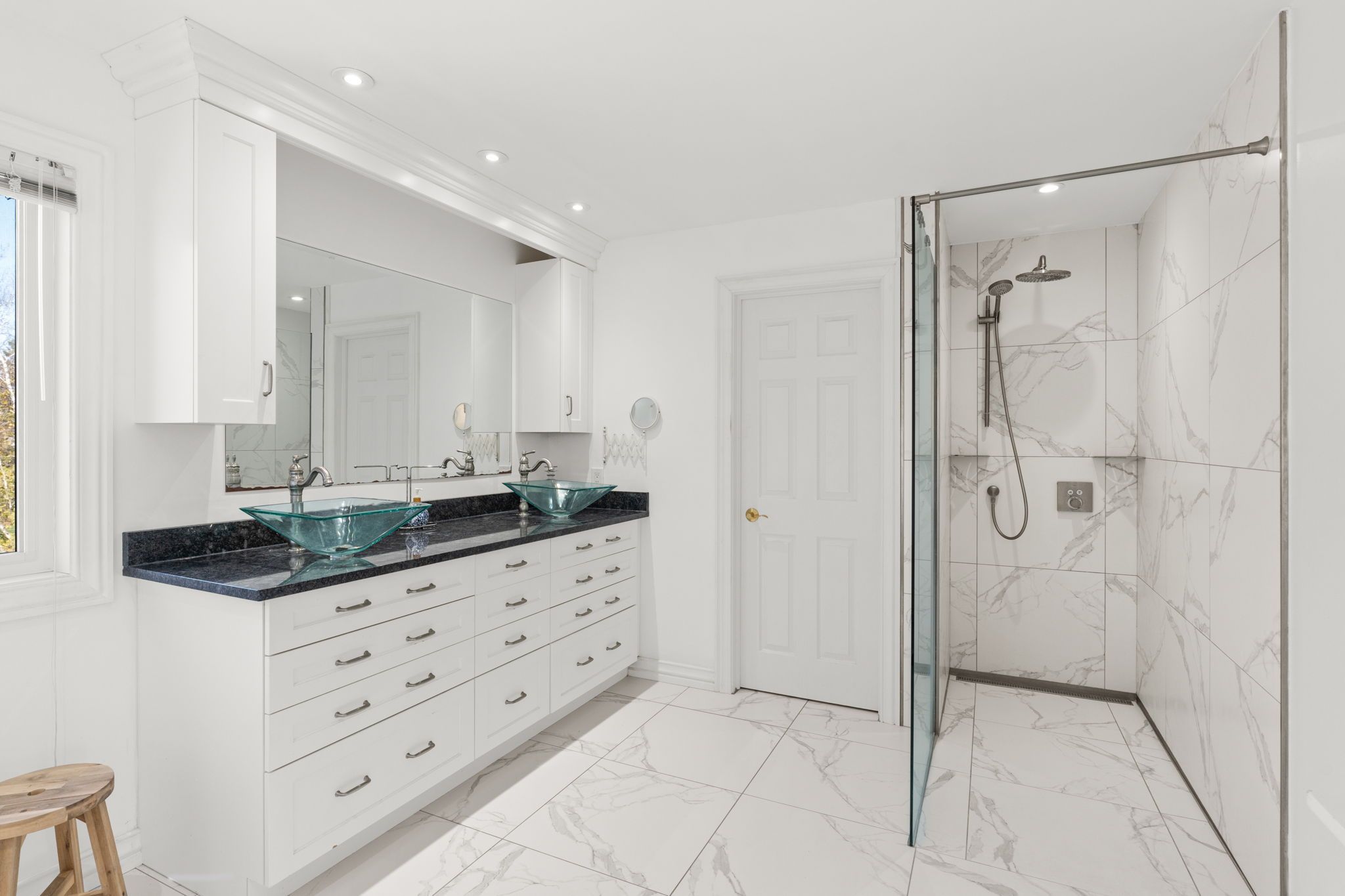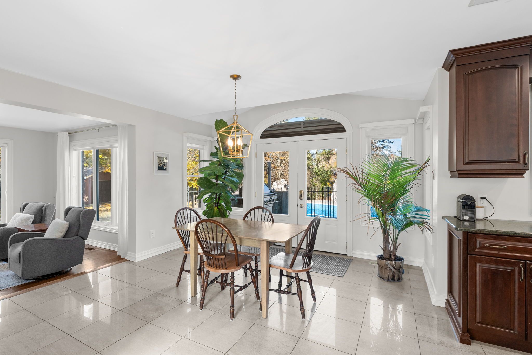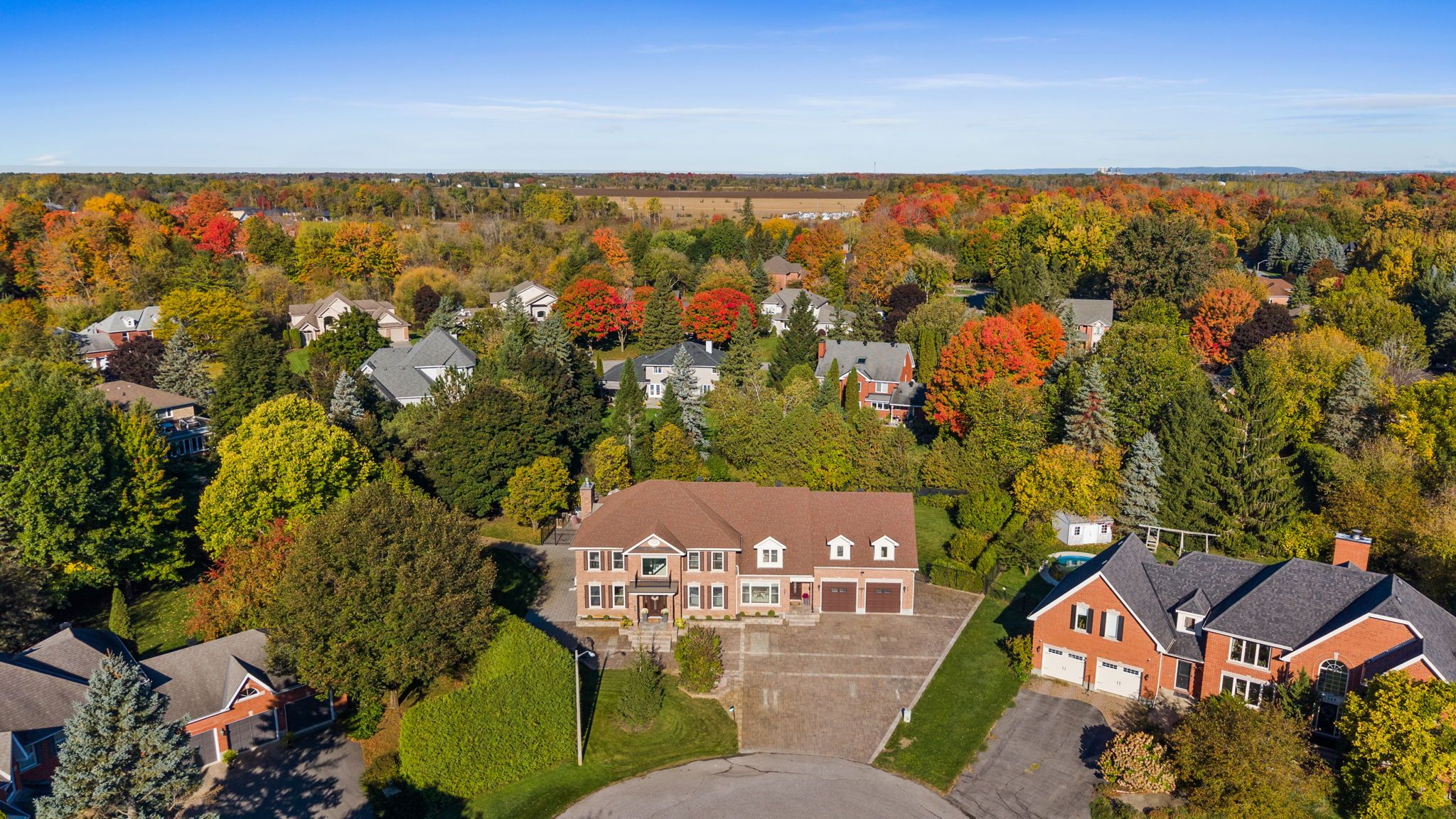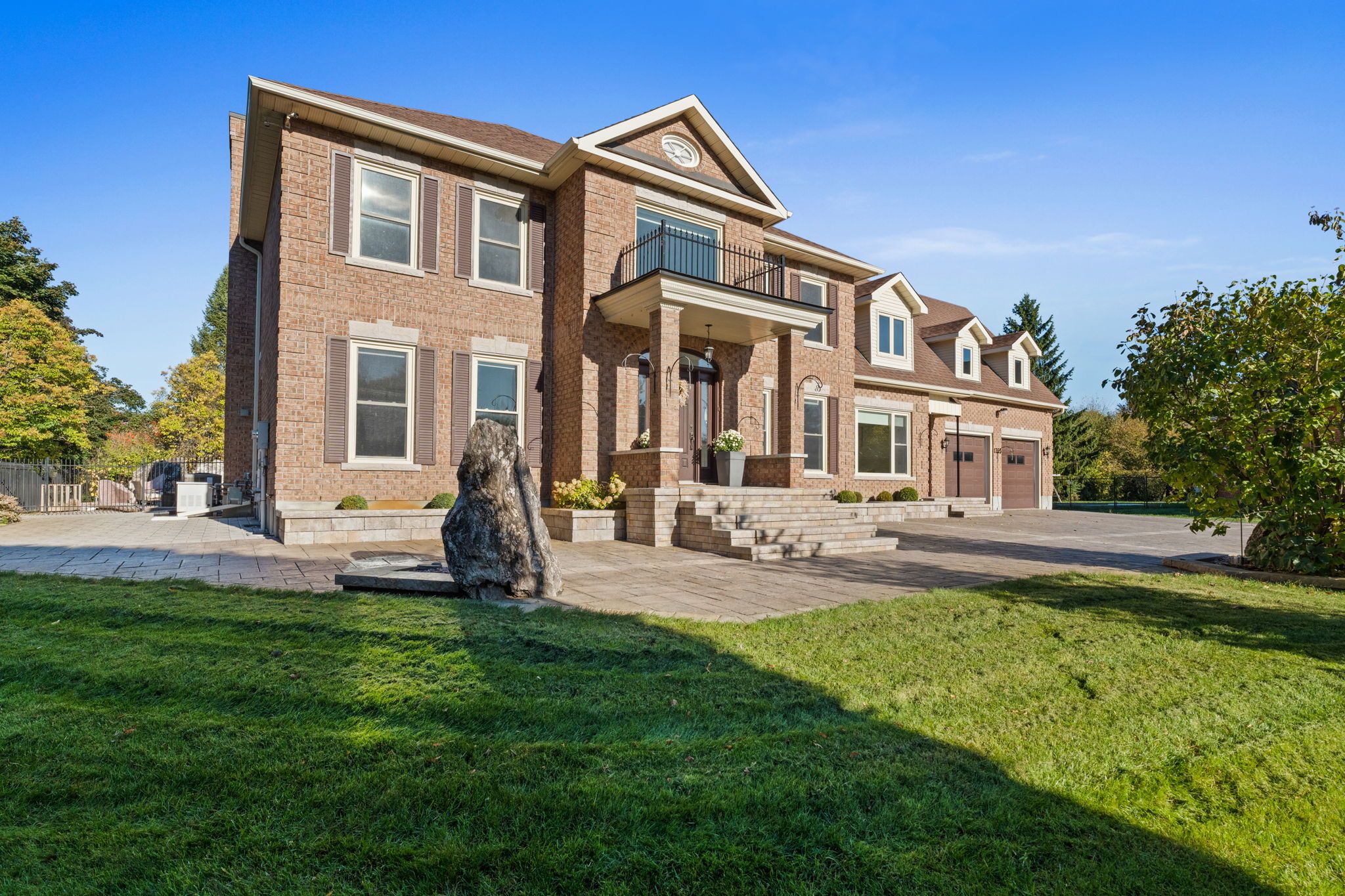 Stunning 4-bedroom, 6-bathroom brick home tucked away on an exclusive quiet cul-de-sac in prestigious Manotick Estates. The full-brick exterior, intricate interlock driveway, double garage, and manicured landscaping set the stage for this impressive property. Step inside the grand two-storey foyer, where a sweeping staircase and oversized window fill the space with natural light. The main floor features gorgeous hardwood and tile flooring, high ceilings, and a bright, welcoming layout. A spacious office sits just off the entrance, while a large formal dining room with picture window is perfect for family gatherings. The chef's kitchen is the heart of the home, offering two large islands, rich cabinetry, granite counters, high-end stainless-steel appliances, and a bright eating area overlooking the backyard. The adjoining family room includes a cozy gas fireplace and expansive windows with views of stunning backyard oasis and gorgeous mature trees, creating a warm and inviting space. The second floor features a luxurious primary bedroom with beautifully renovated ensuite with marble tile, glass shower, and freestanding clawfoot tub. Center hall plan leads to three large bedrooms, two with their own full ensuite bath. The massive 4th bedroom with gas fireplace and elevator provides endless possibilities for an additional family room, guest suite, gym, or multigenerational living etc. Final touch is the loft area with built-in desk. That's right this home has an elevator providing access to all 3 levels. The partially finished lower level includes tons of space with a huge recreation area, play zone, two storage rooms, and a bathroom. The backyard is a true private retreat with heated saltwater pool, diving board, massive decorative boulders, stone interlock, large deck, pool house/shed, surrounded by mature trees, and timeless wrought-iron fencing. This fabulous home perfectly blends luxury, comfort, and safe family living in Manotick's most desirable neighbourhood.