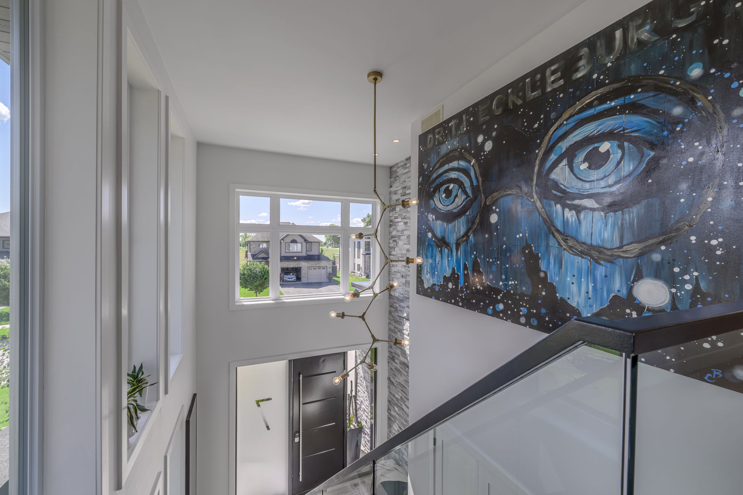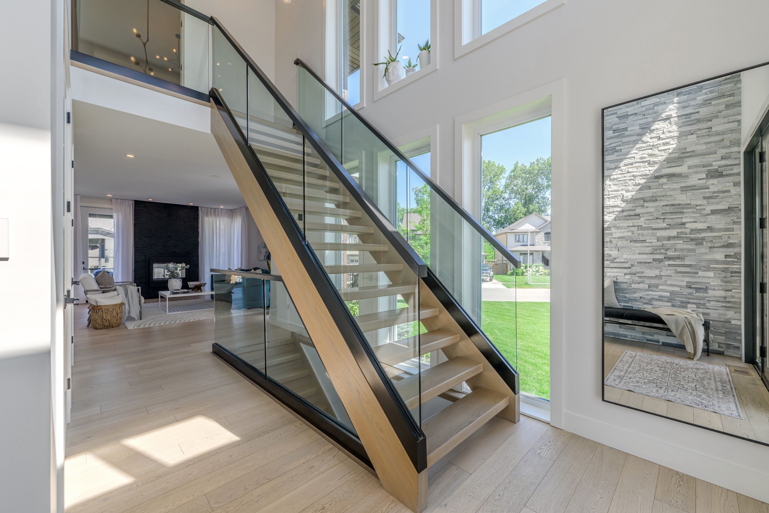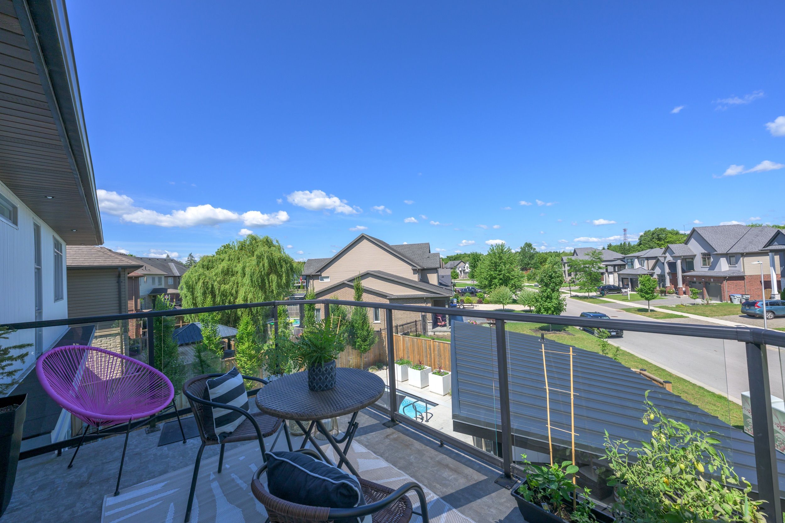 Designed for buyers who value upgrades, smart automation, and true turnkey living, this executive home on a quiet Komoka crescent offers a level of finish and functionality rarely found in the area, just 10 minutes west of London. Striking modern curb appeal introduces a fully insulated, heated, triple-bay garage with epoxy floors, ideal for vehicles, recreational toys, or a workshop, plus a six-car driveway. Inside, a dramatic two-storey foyer with floating glass-railed staircase and full-height windows sets the tone for a light-filled, intentional layout. Wide-plank white oak hardwood, solid-core doors, and curated lighting extend throughout. The great room features a two-sided gas fireplace with floor-to-ceiling stone, seamlessly connecting to outdoor living. The kitchen is designed for real use, offering stone counters, a four-seat island with wine fridge, premium stainless appliances, programmable lighting, and generous storage. A dedicated home office and sleek powder room complete the main level. Upstairs, the primary suite offers a private retreat with tray ceiling, herringbone feature wall, custom walk-in closet, automated shades, and a glass-railed balcony. The ensuite includes radiant in-floor heating and refined finishes. Three additional bedrooms with hardwood flooring and motorized shades share the level with a well-appointed laundry room. The fully finished lower level adds a large recreation space, full bathroom, and a glass-enclosed home gym with integrated high-end audio. Outside, the backyard is built for entertaining, anchored by a heated saltwater pool with automated safety cover (~$25K) and a year-round cabana with integrated lighting, wet bar, beverage fridges, and a three-piece bathroom, framed by mature black cedar privacy hedging. This is not a typical home for the area. It's a systems-forward, technology-rich property for buyers who prioritize quality, automation, and lifestyle, minutes to Komoka Provincial Park and Thames River trails.
