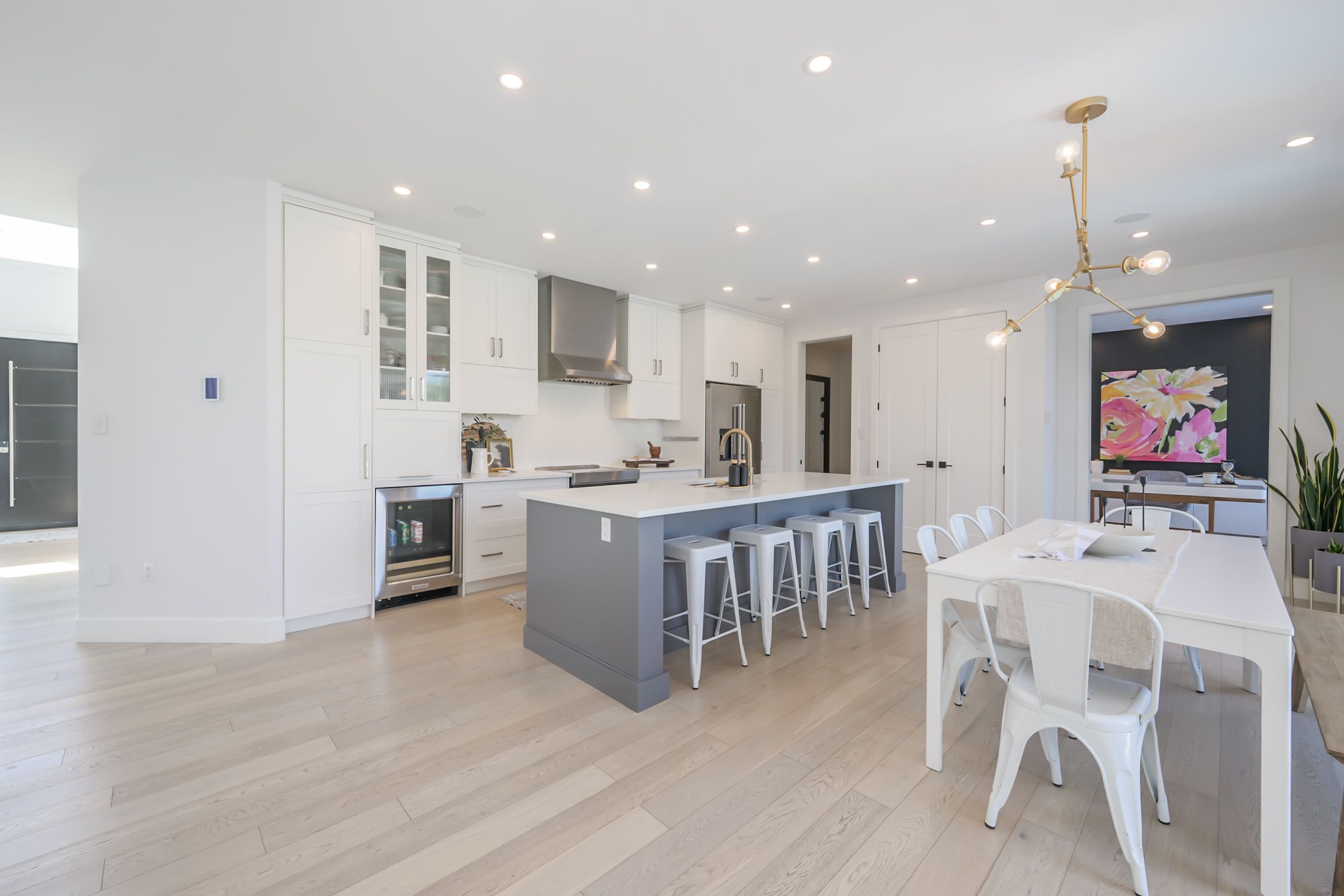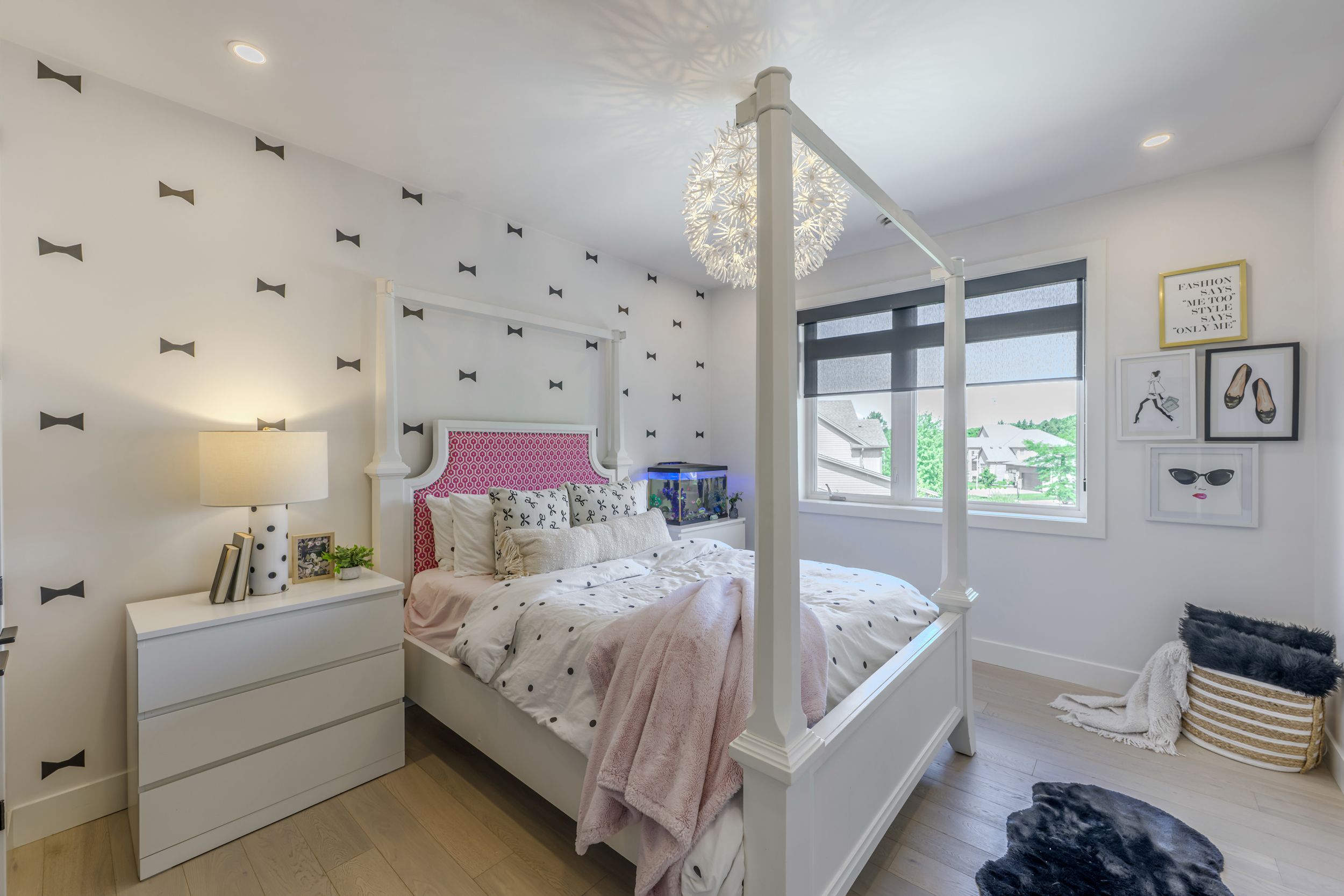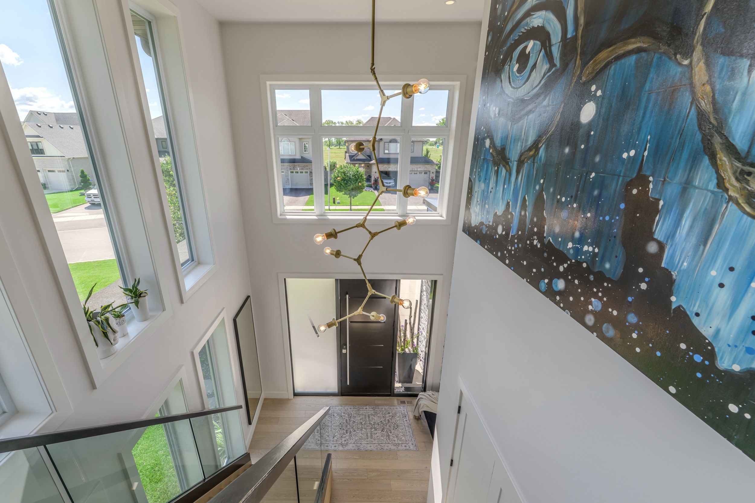 Designed for buyers who value upgrades, smart automation, and true turnkey living, this executive home on a quiet Komoka crescent offers a level of finish and functionality rarely found in the area, just 10 minutes west of London. Striking modern curb appeal introduces a fully insulated, heated, triple-bay garage with epoxy floors, ideal for vehicles, recreational toys, or a workshop, plus a six-car driveway. Inside, a dramatic two-storey foyer with floating glass-railed staircase and full-height windows sets the tone for a light-filled, intentional layout. Wide-plank white oak hardwood, solid-core doors, and curated lighting extend throughout. The great room features a two-sided gas fireplace with floor-to-ceiling stone, seamlessly connecting to outdoor living. The kitchen is designed for real use, offering stone counters, a four-seat island with wine fridge, premium stainless appliances, programmable lighting, and generous storage. A dedicated home office and sleek powder room complete the main level. Upstairs, the primary suite offers a private retreat with tray ceiling, herringbone feature wall, custom walk-in closet, automated shades, and a glass-railed balcony. The ensuite includes radiant in-floor heating and refined finishes. Three additional bedrooms with hardwood flooring and motorized shades share the level with a well-appointed laundry room. The fully finished lower level adds a large recreation space, full bathroom, and a glass-enclosed home gym with integrated high-end audio. Outside, the backyard is built for entertaining, anchored by a heated saltwater pool with automated safety cover (~$25K) and a year-round cabana with integrated lighting, wet bar, beverage fridges, and a three-piece bathroom, framed by mature black cedar privacy hedging. This is not a typical home for the area. It's a systems-forward, technology-rich property for buyers who prioritize quality, automation, and lifestyle, minutes to Komoka Provincial Park and Thames River trails.