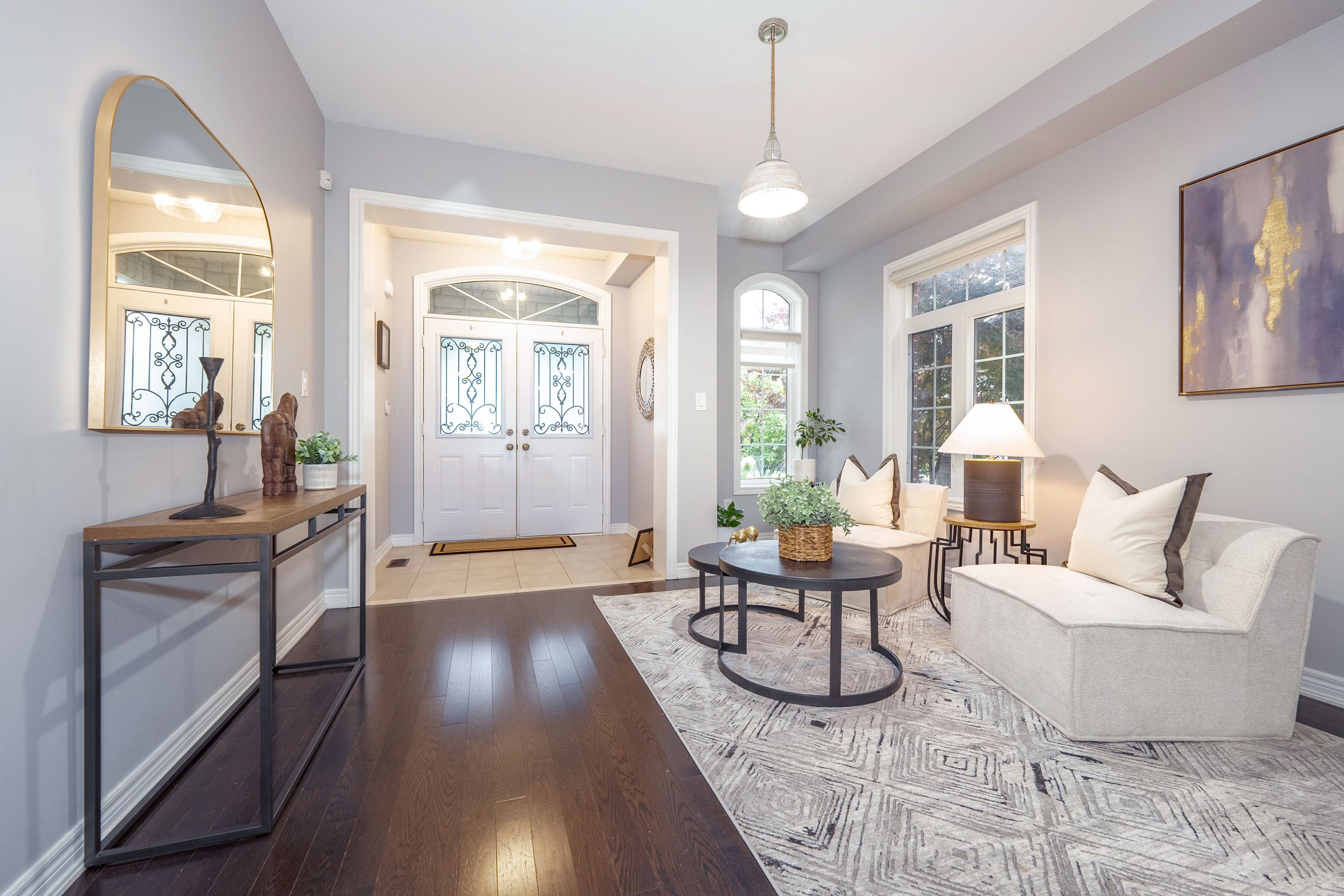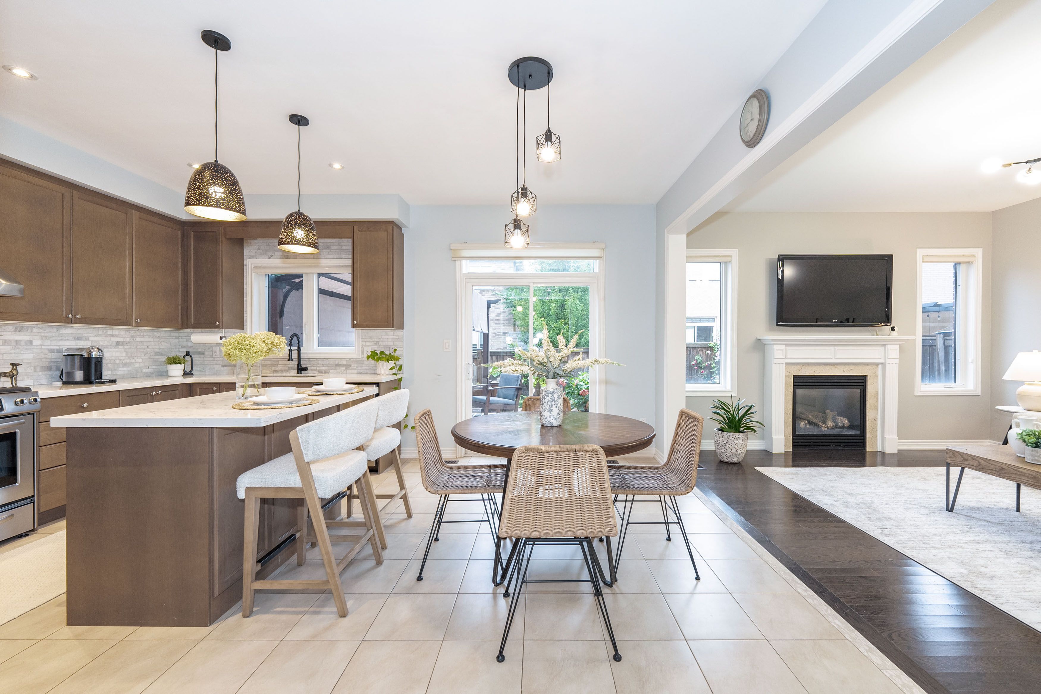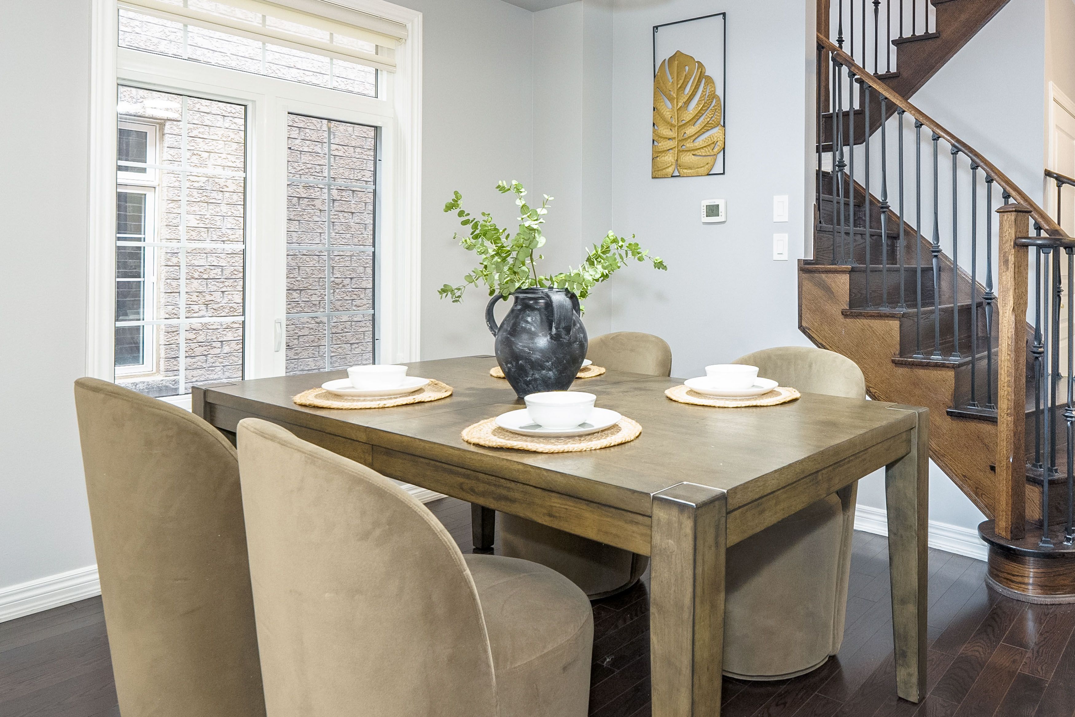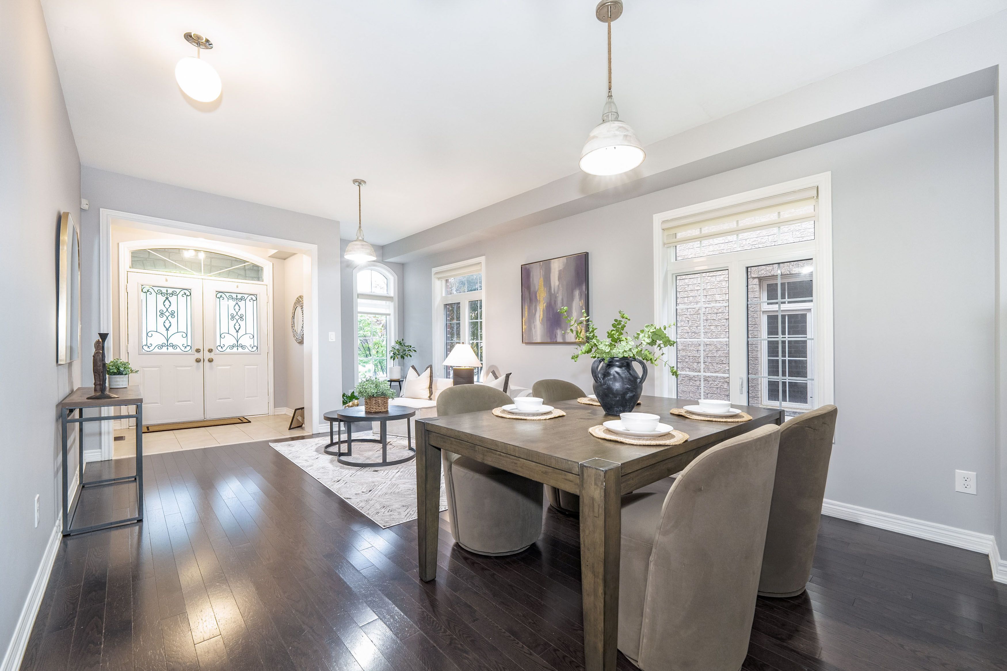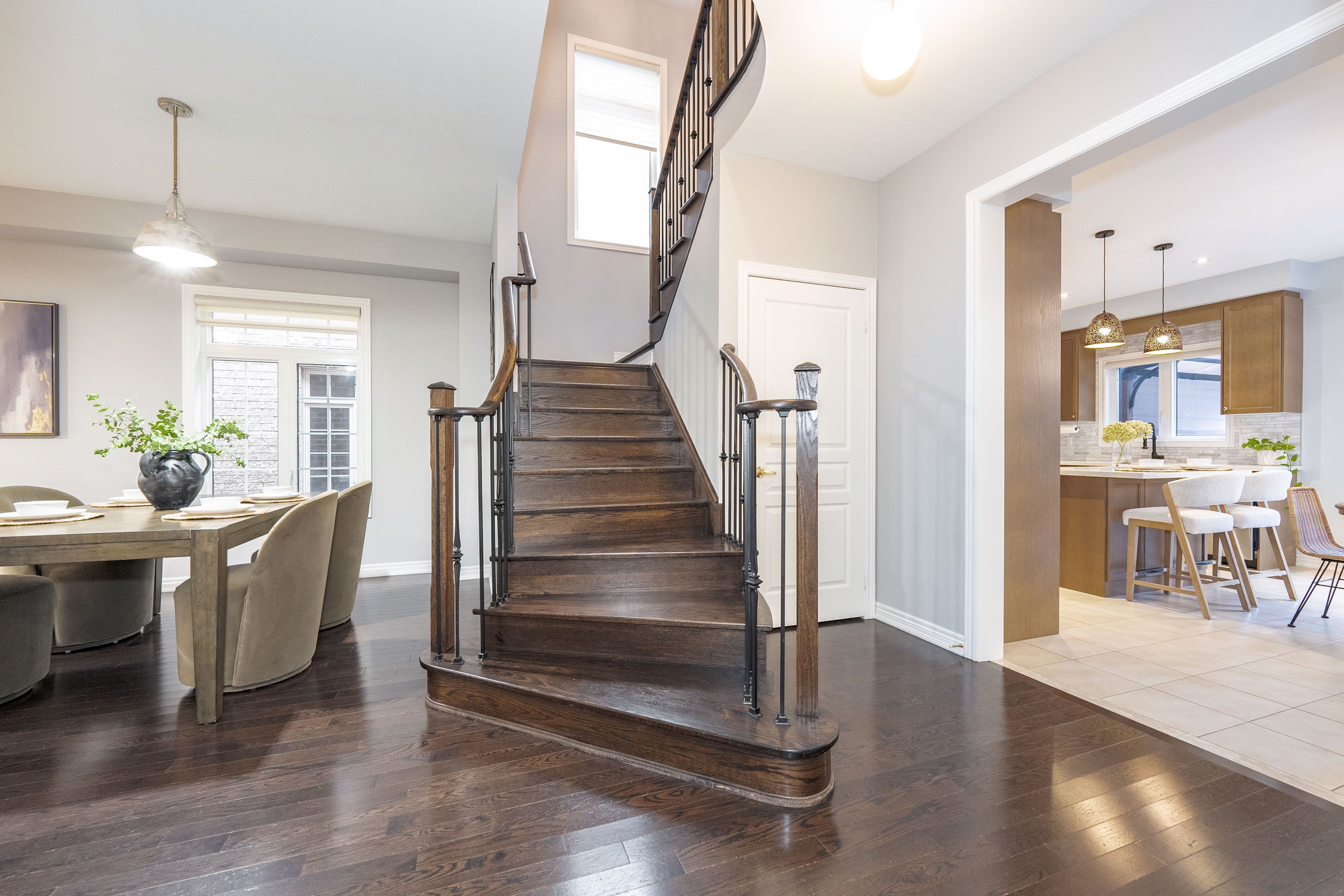 Stunning 4-bedroom, 4-bathroom 2,575 sq. ft. home in highly sought-after East Waterdown. Designed with modern living in mind, this residence boasts a bright open-concept layout filled with natural light, soaring 9-foot ceilings, and elegant oak hardwood floors and tiles throughout, a completely carpet-free home. Main foyer opens into the huge living/dining area. Spacious mud-room with custom built-in closet and access to garage. The large eat-in kitchen features upgraded cabinetry and premium stainless steel appliances perfect for both everyday meals and entertaining. Upstairs, youll find spacious 4 bedrooms and three bathrooms and three baths including two with their own ensuites, including a luxurious 5-piece retreat and a stylish 4-piece washroom. The large backyard offers plenty of space for family gatherings, gardening, or simply relaxing outdoors. Ideally located close to top-rated schools, scenic hiking trails, and beautiful parks, this home blends comfort, style, and convenience in one exceptional package. The following updates were completed in 2019: Backyard Deck, Front Yard, Kitchen, Bathrooms, Hardwood on Second Floor, Second Floor Built-In Closets, Built-In Shelves on First floor and in-Basement Lighting.