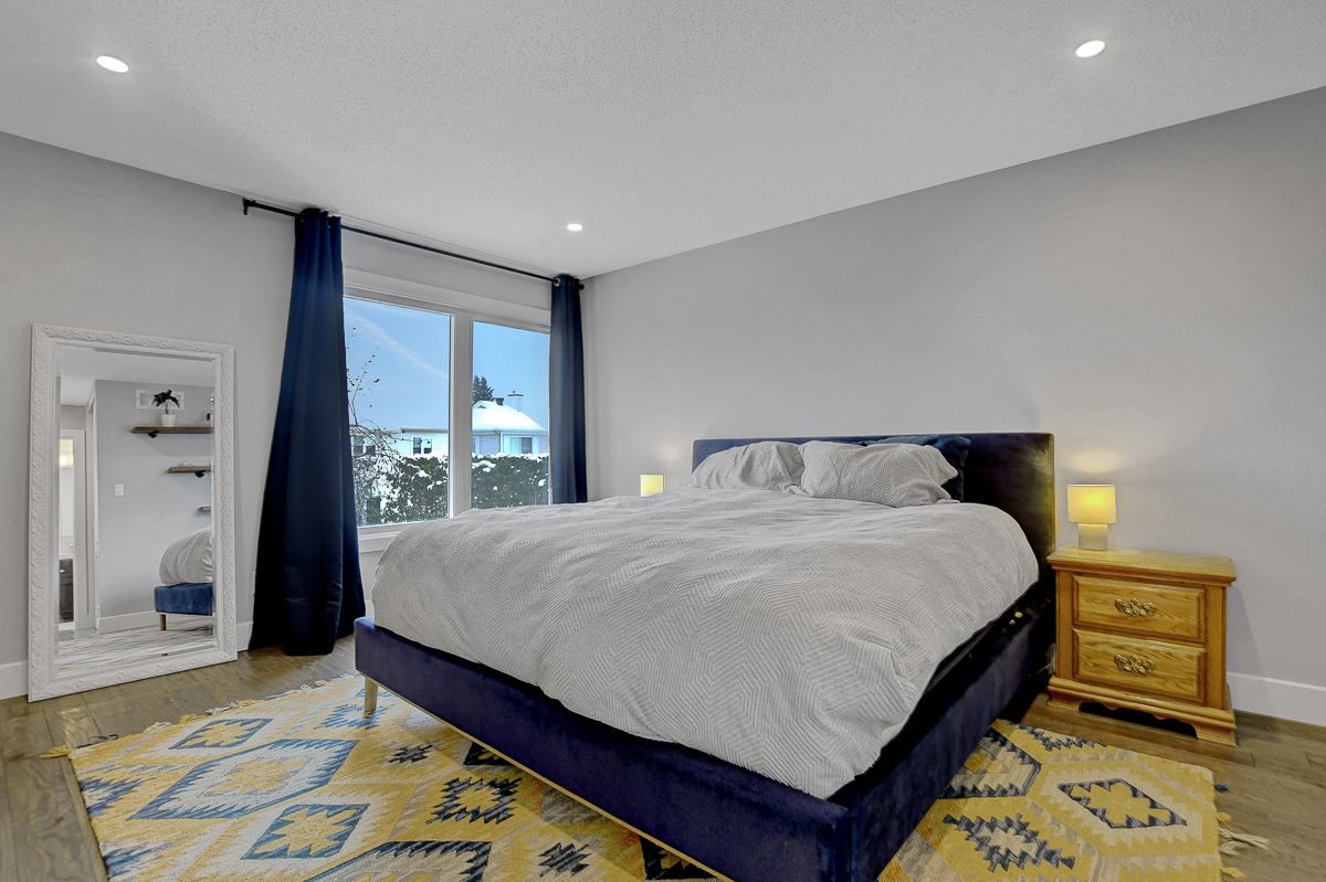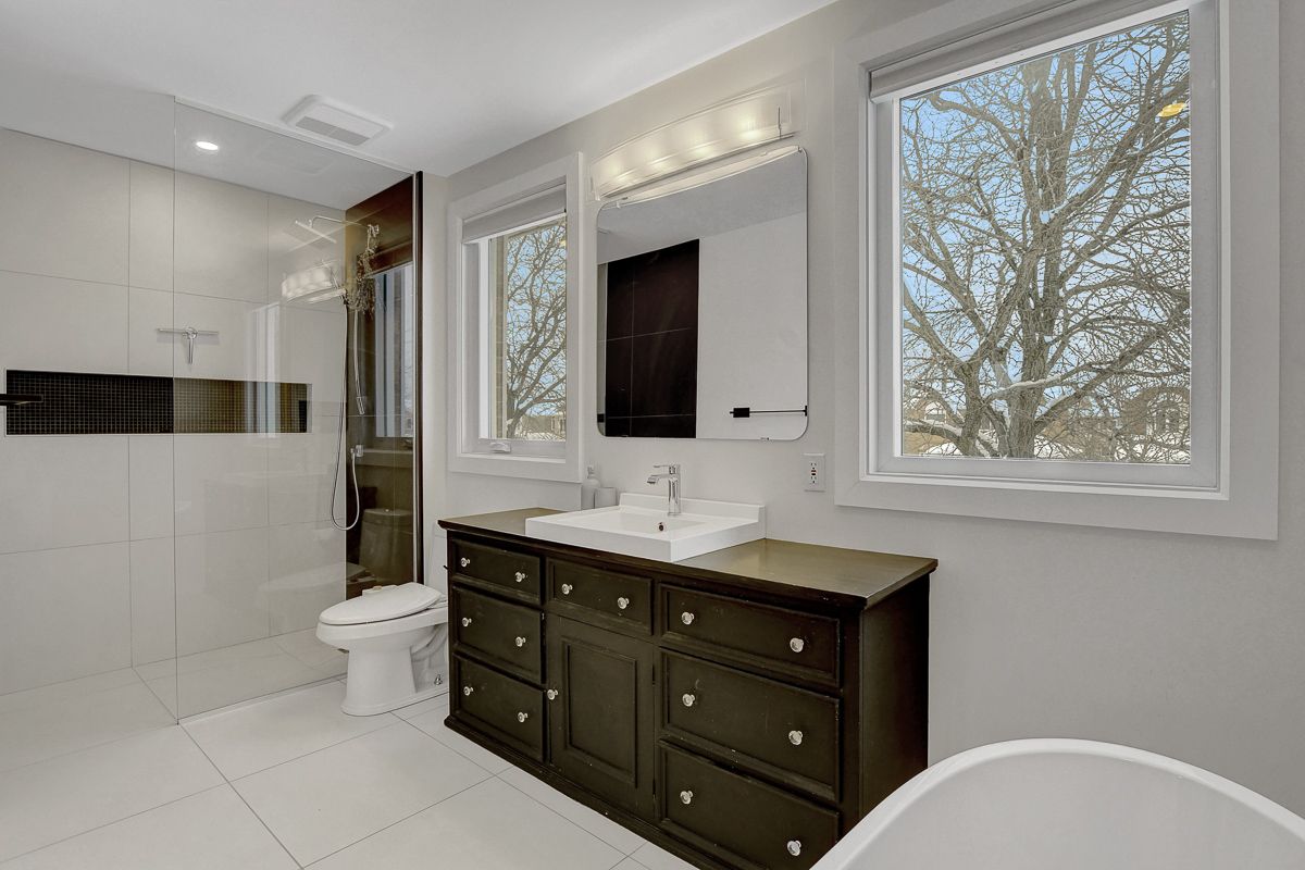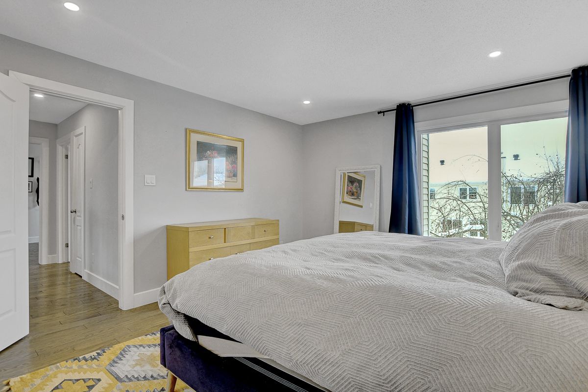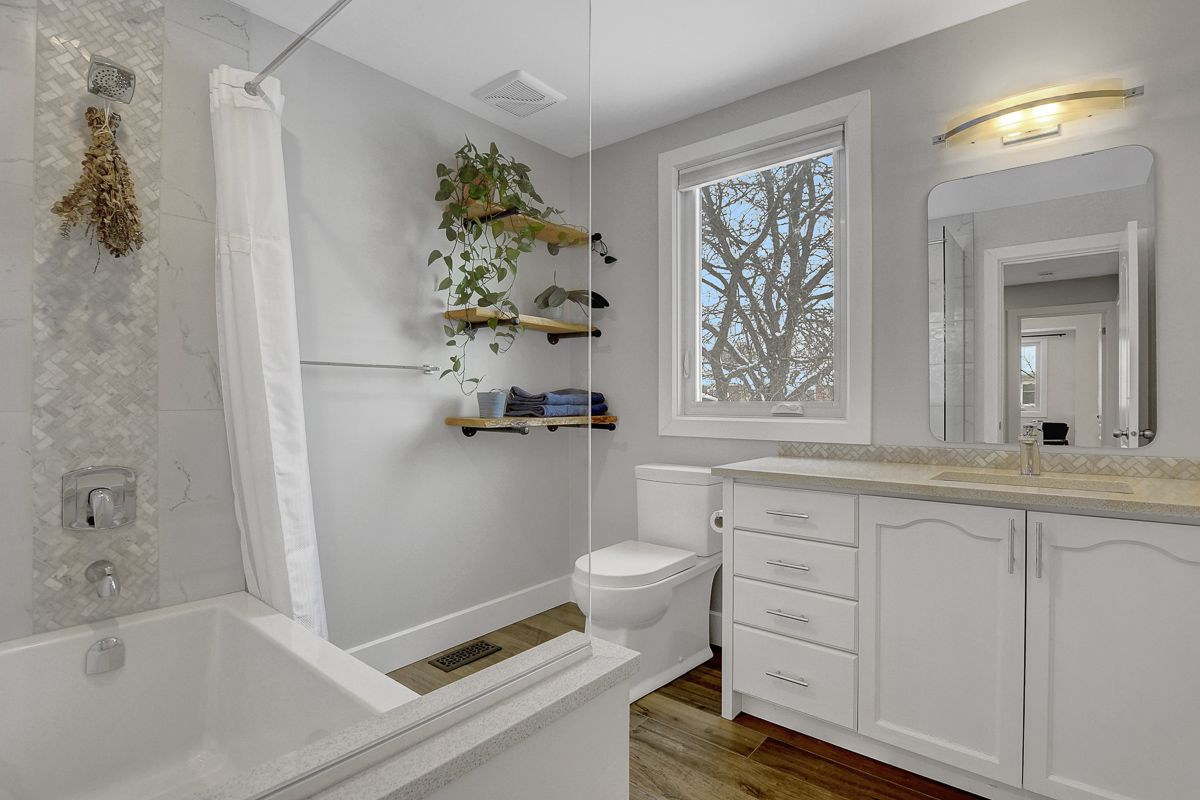 Beautifully finished modern detached home offering exceptional space & style on a quiet street. Clean lines, a cohesive neutral palette and quality finishes create a home that feels polished and inviting from top to bottom. Covered front porch leads to a spacious foyer with coat closet & beautiful sightlines through the home. Mid-tone hardwood floors flow across all three levels, complemented by neutral walls, crisp white trim, striking black accents, and recessed lighting. Just off foyer, a large room provides versatility - ideal as a bedroom with a full bathroom directly across the hall, a secondary living space, or a home office. Rear of the home boasts an open-concept layout, expansive windows span nearly the full width of the back wall and fill the space with natural light. Sleek white kitchen showcases glossy flat-front cabinetry, quartz countertops, stainless steel appliances, centre island with seating & abundant storage. Dining area is positioned along the windows and is well sized for casual meals and formal entertaining. Living room is centered around a wood-burning fireplace, creating a warm and comfortable gathering space. Practical mudroom with custom built-in shelving & bench seating + direct access to double-car garage. Upstairs, 4 well-proportioned bedrooms and two full bathrooms, including a serene primary suite with walk-in closet & a luxurious hotel-inspired ensuite bathroom. Fully finished basement feels bright and flexible, easily accommodating multiple uses such as a recreation room, fitness area, or hobby space. Fenced backyard is framed by mature trees and offers plenty of open green space, a two-tier deck partially covered by a custom pergola, plus a garden shed. Peaceful Chapel Hill South neighbourhood offers a family-friendly atmosphere. Nearby schools, parks, and walking paths are complemented by shops, restaurants, entertainment, and services along Innes Road. Easy access to transit and quick connections to Hwys 174 & 417.