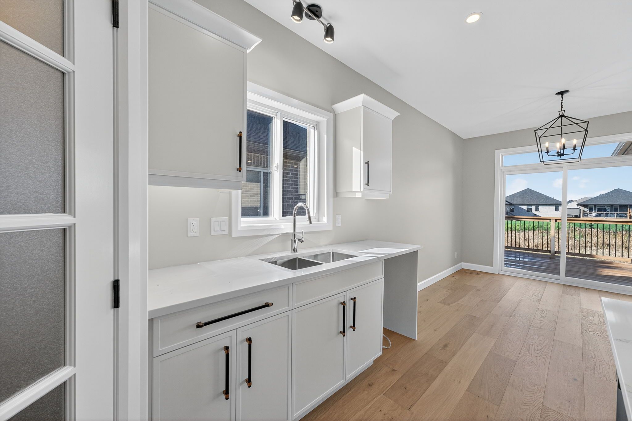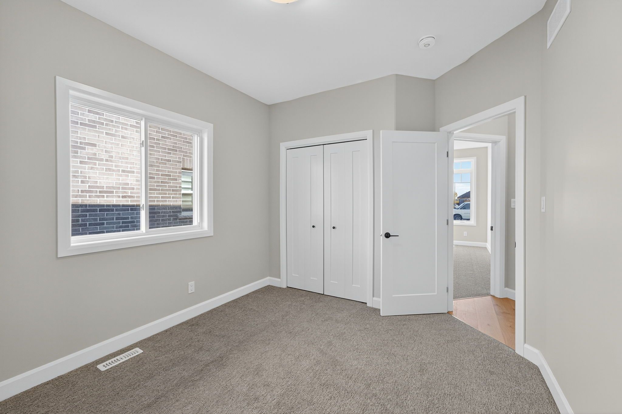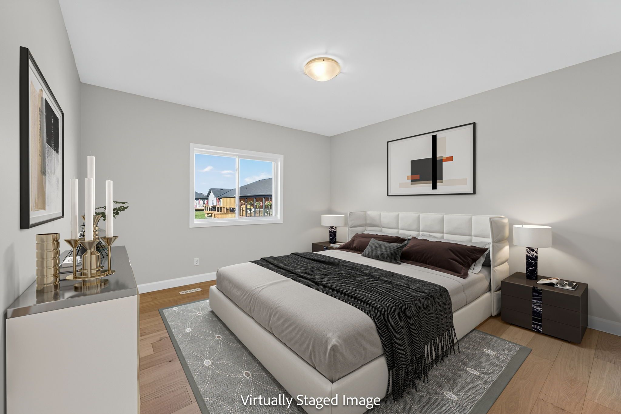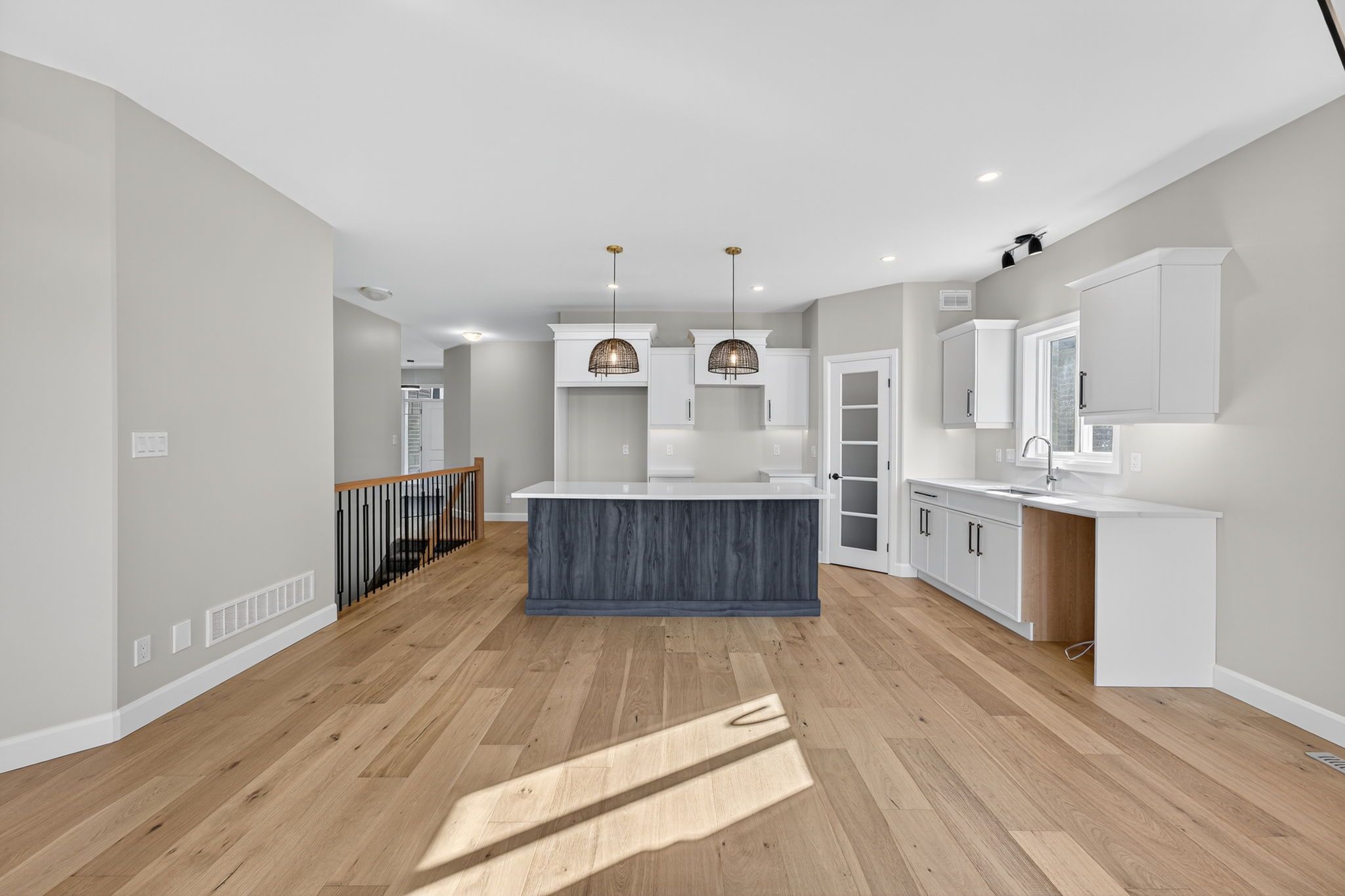 Move-in ready and FULLY FINISHED! This 5 bedroom, 3 bathroom Quinte model all brick bungalow by Duvanco Homes sits on a PREMIUM lot on cul-de-sac backing onto green space, offering privacy and peaceful views. Designed with modern living in mind, the open-concept layout features a custom quality kitchen with oversized island, coffered ceiling in the living room and distressed wide plank hardwood throughout the main floor. Modern light fixtures and finishes throughout. The primary suite includes a walk-in closet and luxurious ensuite with double vanity and glass-surround porcelain tile shower. Main floor laundry with access to the attached garage. Lower level finished with 2 bedrooms, 4pc bathroom and recreation room. Exterior landscaping complete with paved driveway, fully sodded yard, garden package and stone walkway. Completed pressure treated deck with black ballisters. This Quinte model home is Holmes Approved. Settlers Ridge Subdivision offers trails, park, asphalt paved sidewalks, green space and is just minutes to all amenities.