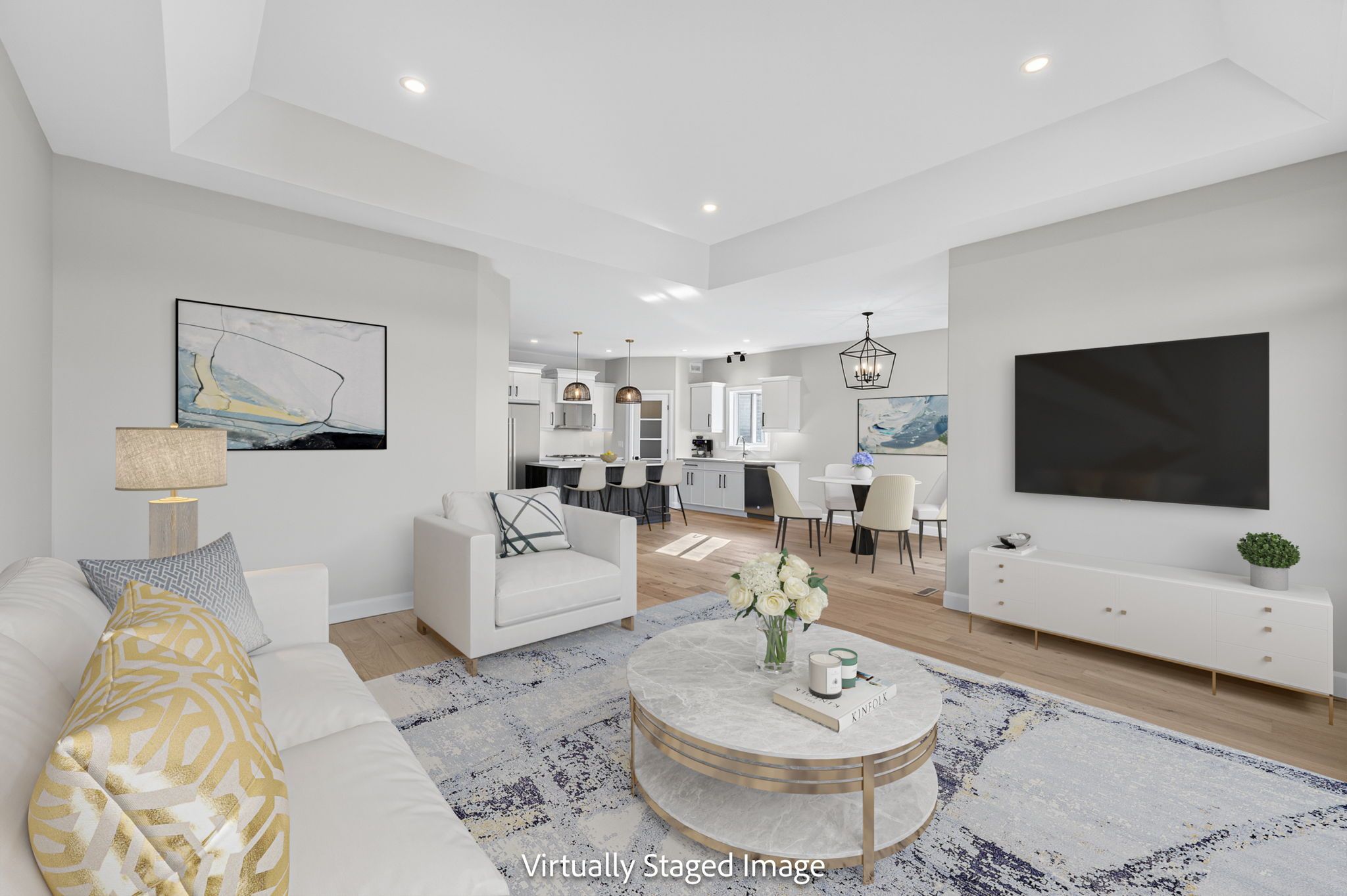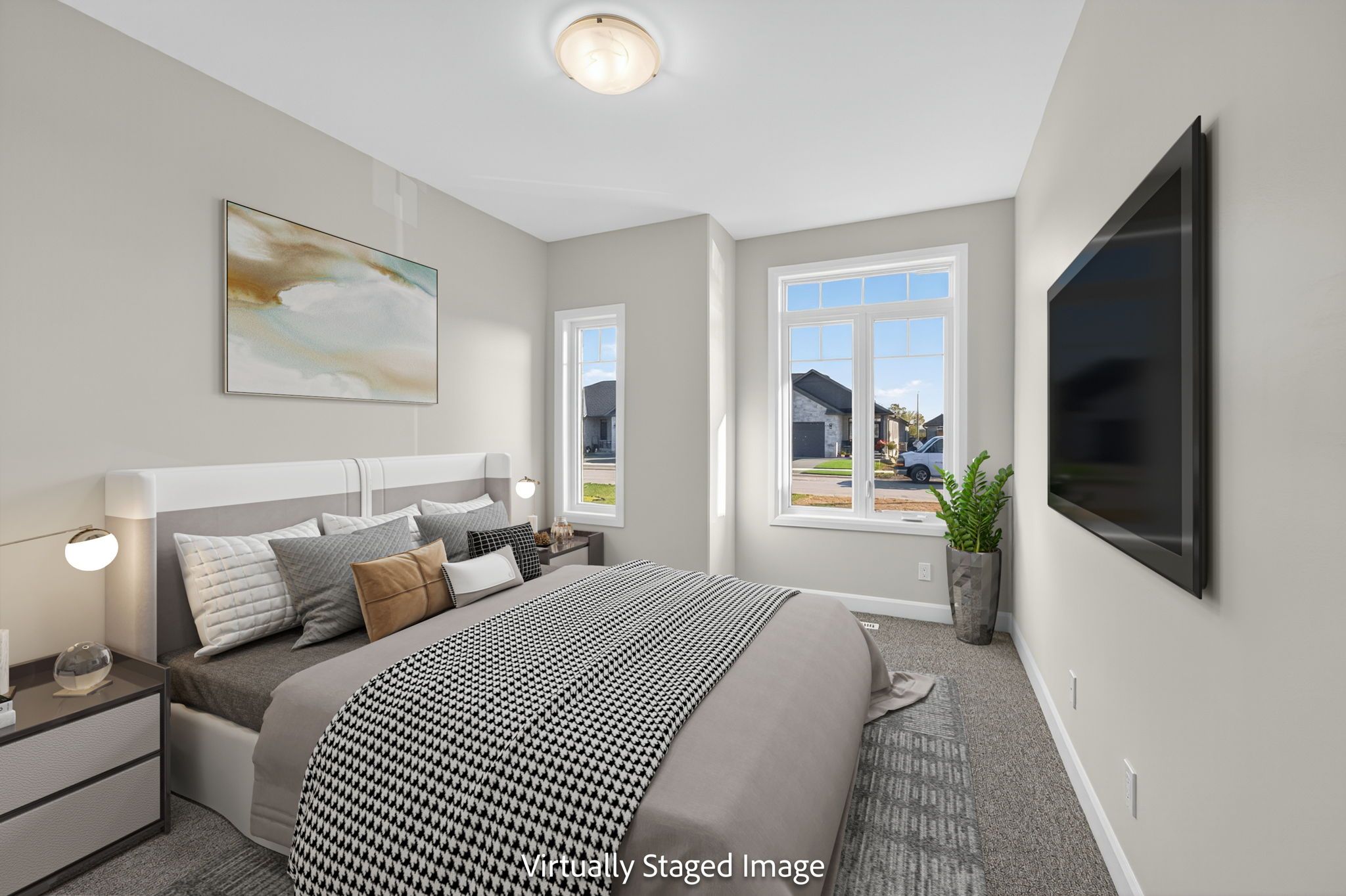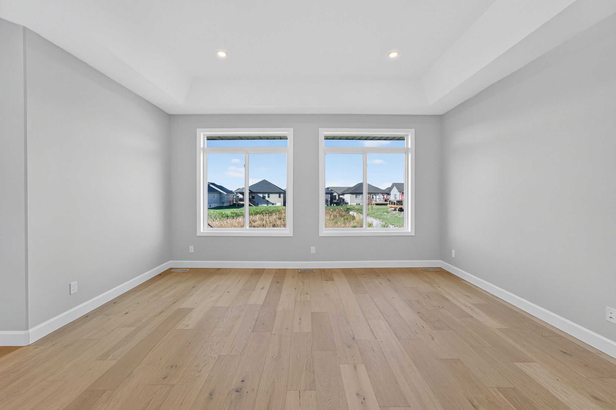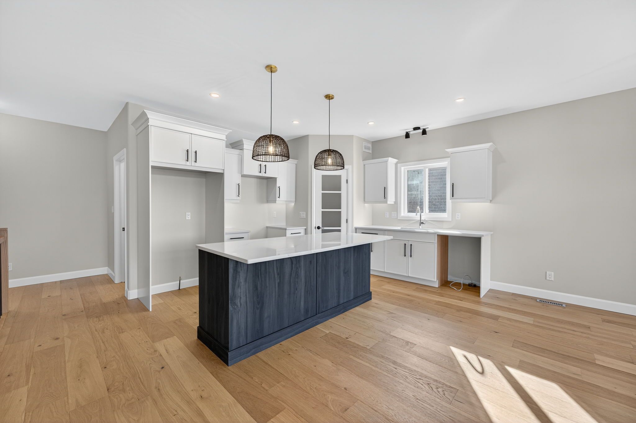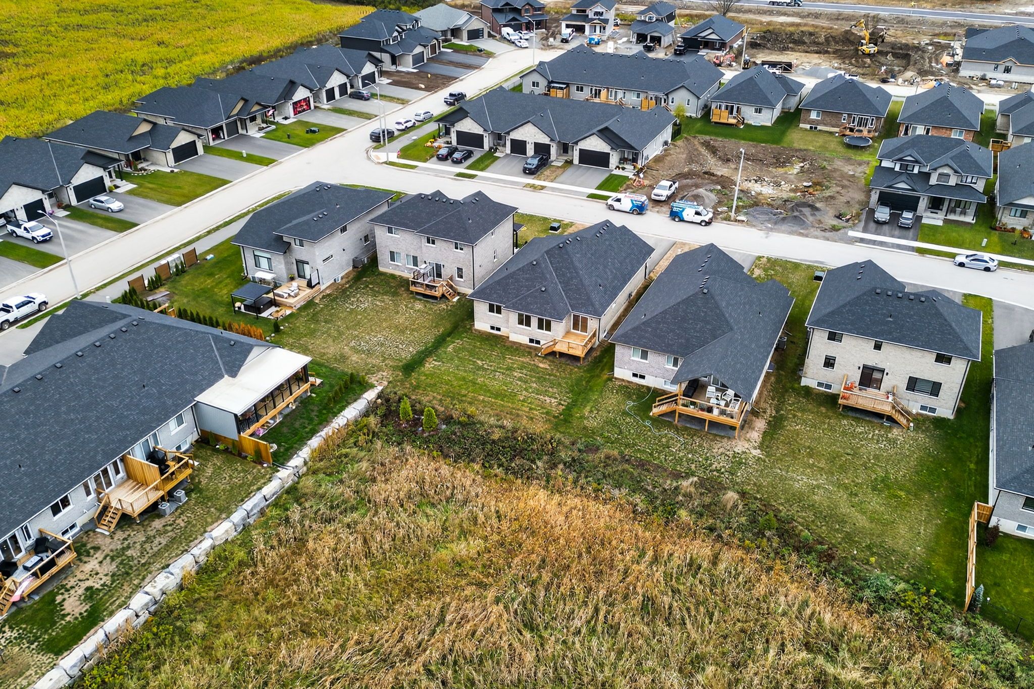 Move-in ready and FULLY FINISHED! This 5 bedroom, 3 bathroom Quinte model all brick bungalow by Duvanco Homes sits on a PREMIUM lot on cul-de-sac backing onto green space, offering privacy and peaceful views. Designed with modern living in mind, the open-concept layout features a custom quality kitchen with oversized island, coffered ceiling in the living room and distressed wide plank hardwood throughout the main floor. Modern light fixtures and finishes throughout. The primary suite includes a walk-in closet and luxurious ensuite with double vanity and glass-surround porcelain tile shower. Main floor laundry with access to the attached garage. Lower level finished with 2 bedrooms, 4pc bathroom and recreation room. Exterior landscaping complete with paved driveway, fully sodded yard, garden package and stone walkway. Completed pressure treated deck with black ballisters. This Quinte model home is Holmes Approved. Settlers Ridge Subdivision offers trails, park, asphalt paved sidewalks, green space and is just minutes to all amenities.