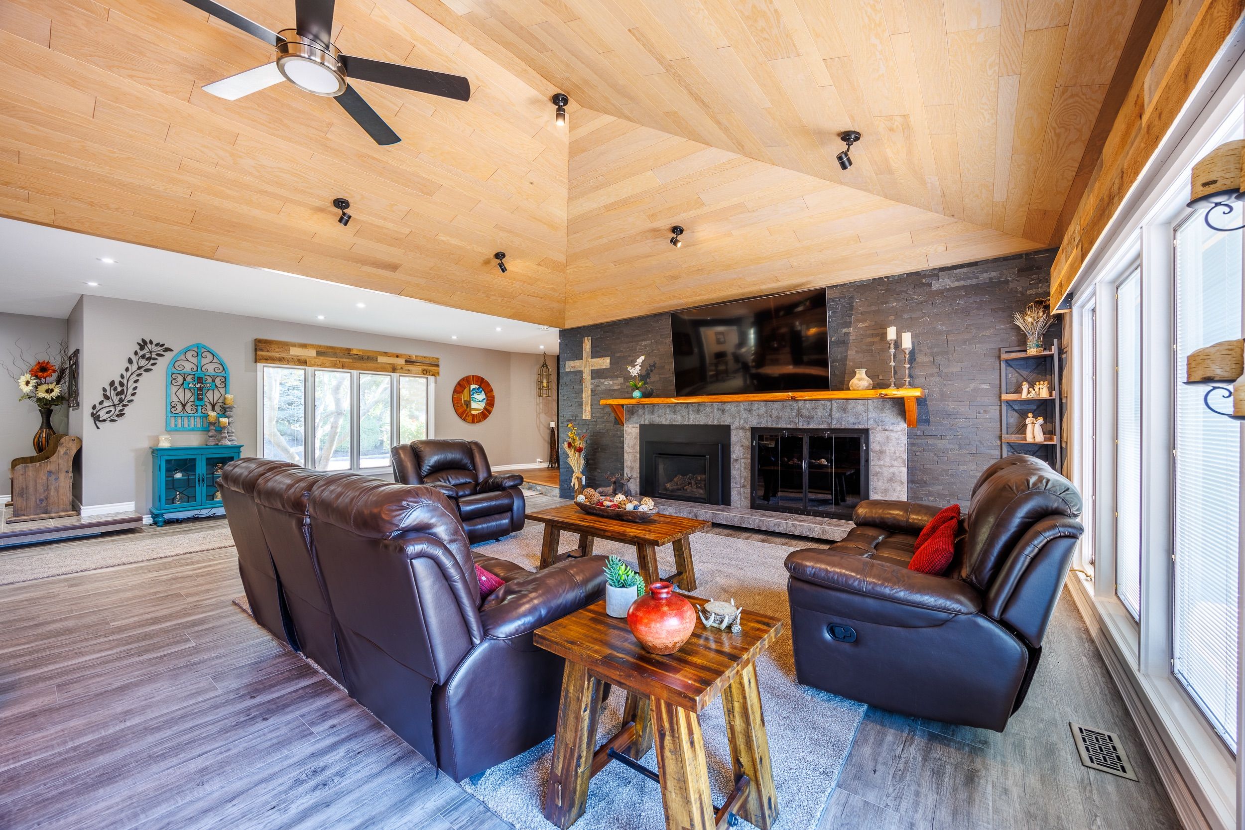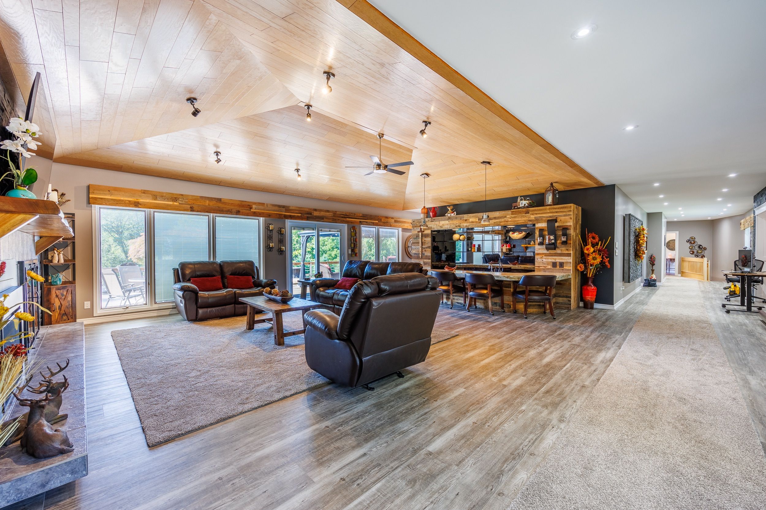 Welcome to your dream home! This exquisite estate offers custom luxury and privacy on a sprawling 20+-acres with OS zoning for other potential business opportunities. Nestled alongside a pristine golf course and featuring two serene ponds, this property provides a picturesque retreat from the hustle and bustle of daily life. Over 8200 sq ft of luxurious living space. 6 spacious bedrooms with 5 having their own elegant ensuite bathrooms, and an office that can be easily converted to a bedroom, heated floor in primary bath with romance tub all custom. 7 bathrooms: 5 well-appointed ensuites with 2 being wheelchair assessable 2 gourmet kitchens with well equipped appliances in lower-level kitchen with industrial sink, upper level has large pantry and extended island , perfect for entertaining and everyday living. Main living room features vaulted wooden ceiling, fireplace, and professional designer bar area . Second living room features another fireplace & vaulted ceiling . Heated 3 car with roughed in area for a possible bathroom. Expansive living areas with exquisite finishes, multiple fireplaces, and custom details throughout. Beautifully landscaped grounds, water, hydro and internet to 3 tents with 200 chairs and 40 car parking lot. Repaved driveway (2022), new roof (2019) with 3 skylights. Private pond/w bridge (2020) and electrical outlet, 3 large custom-built decks w/gazebo, walking distance to the golf course. Led spotlights throughout home (2021), large windows; two bay windows (2022) panoramic views, a grand entryway with custom 2 entry door (2022), ample front parking with wifi access. This estate combines the grandeur of an opulent residence with the tranquility of nature, creating a perfect sanctuary for relaxation and entertainment. Whether you're hosting elegant gatherings or enjoying quiet evenings by the pond, this property offers an exceptional lifestyle. Don't miss your chance to own this unparalleled estate with endless possibilities.