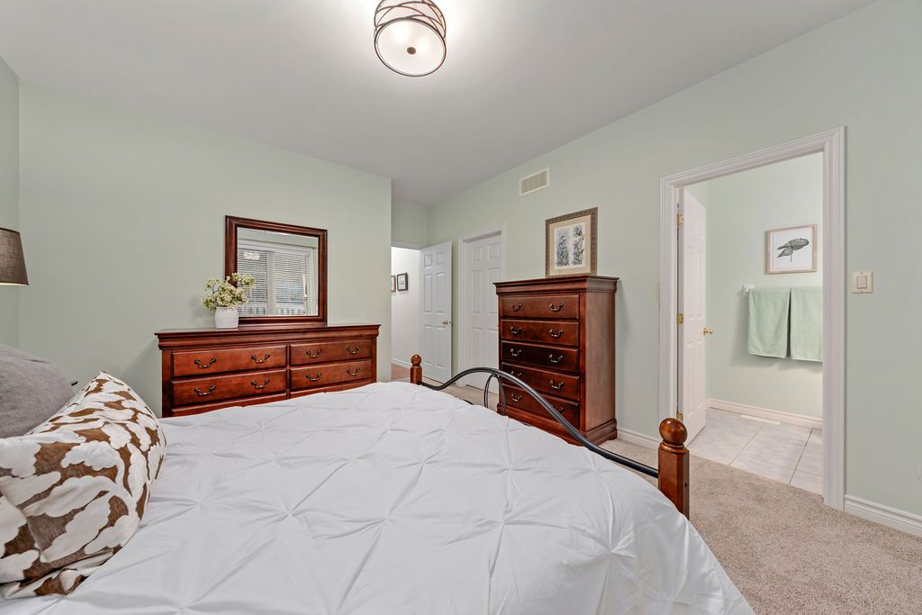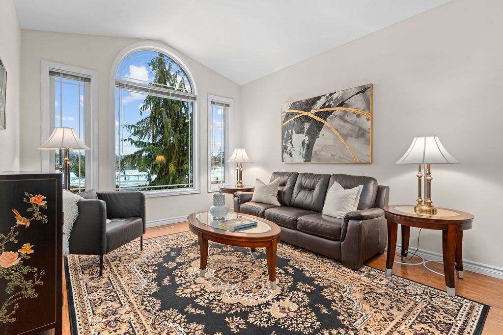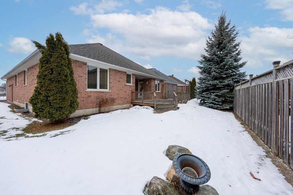 Well-kept, bright, and spacious, this solid brick bungalow features 9-foot ceilings and a family-friendly layout designed for comfortable everyday living. The vaulted living room offers beautiful park views, with Canniff Mills Park Trail (part of the Riverside Park Recreational Trail along the Moira River) located directly across the street - perfect for enjoying a city lifestyle with nature right at your doorstep. The home offers 3 bedrooms and 2 full bathrooms, including a primary suite with walk-in closet and private ensuite. Hardwood flooring flows through the main living areas, complemented by brand new carpet in the bedrooms. Main floor laundry is conveniently located in a large mudroom with direct access to the double attached garage. The unfinished basement provides excellent potential for future development, with opportunity to add additional bedrooms, a bathroom, and a spacious family or recreation area - ideal for growing families or the possibility of your in-laws. An oversized dining area in the open-concept kitchen and family room area, opens onto a large deck, overlooking the fully fenced yard - perfect for entertaining or relaxing outdoors. Beautifully landscaped and situated in a convenient city location close to amenities, this home is a fantastic opportunity for families and down-sizers alike.