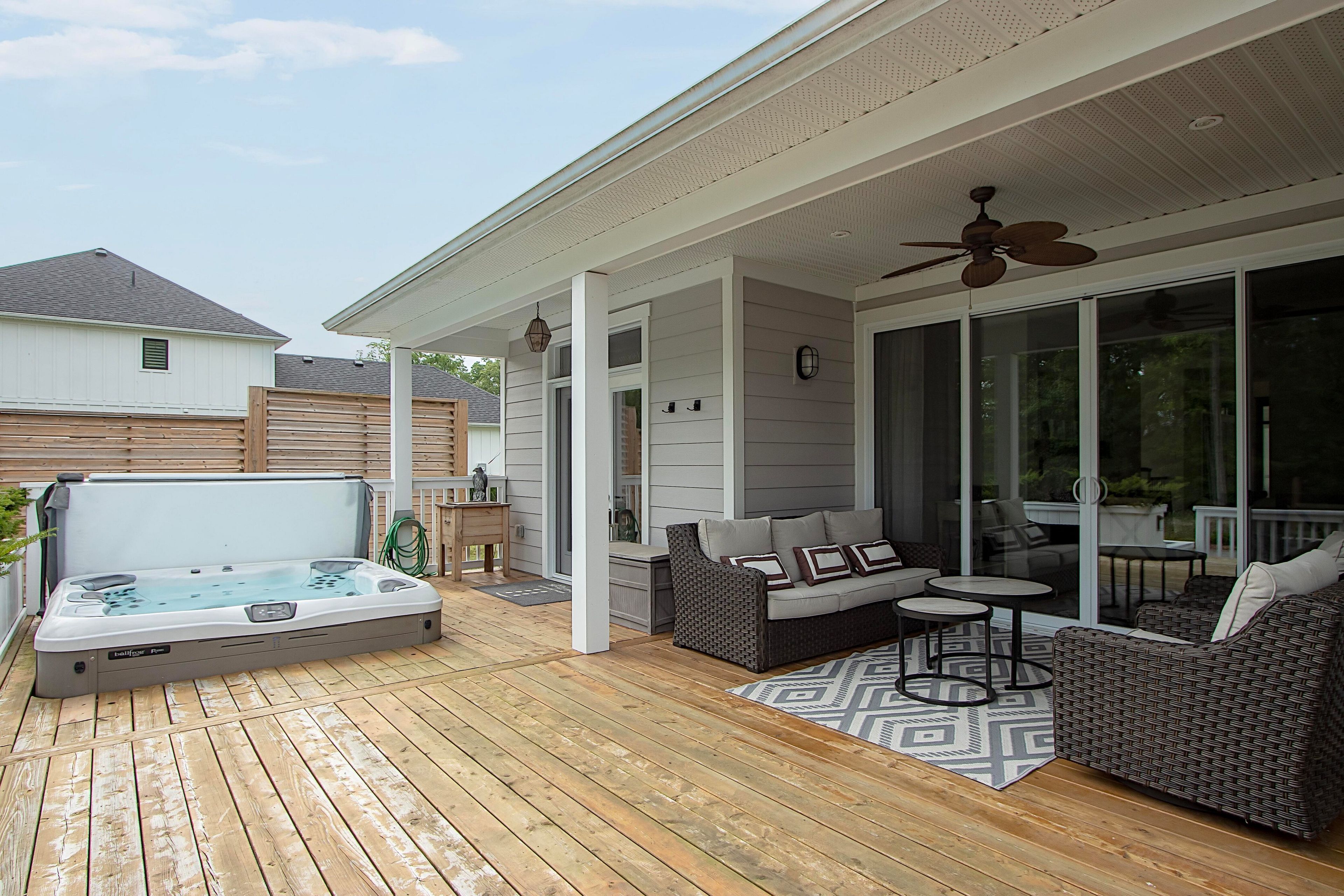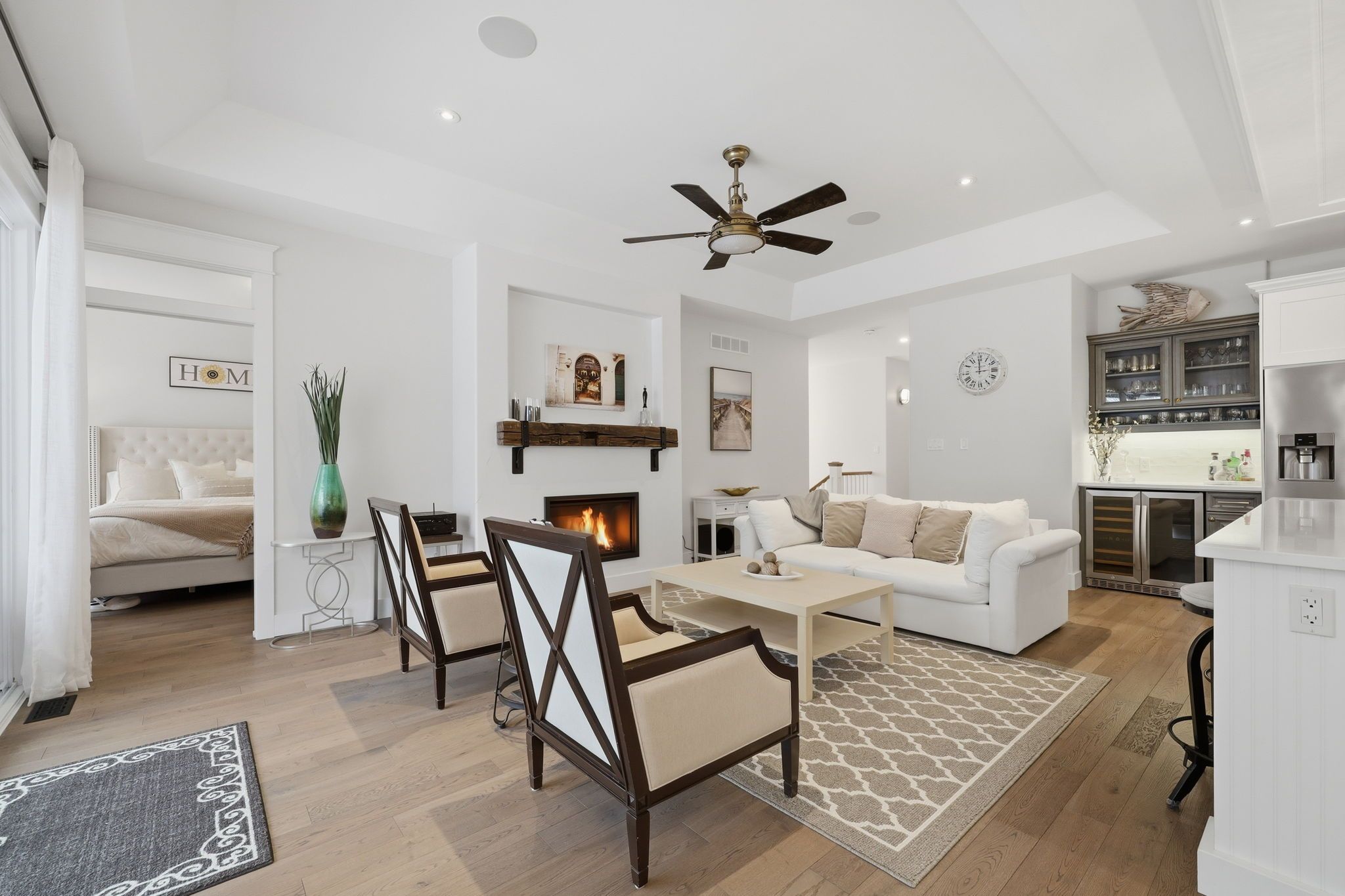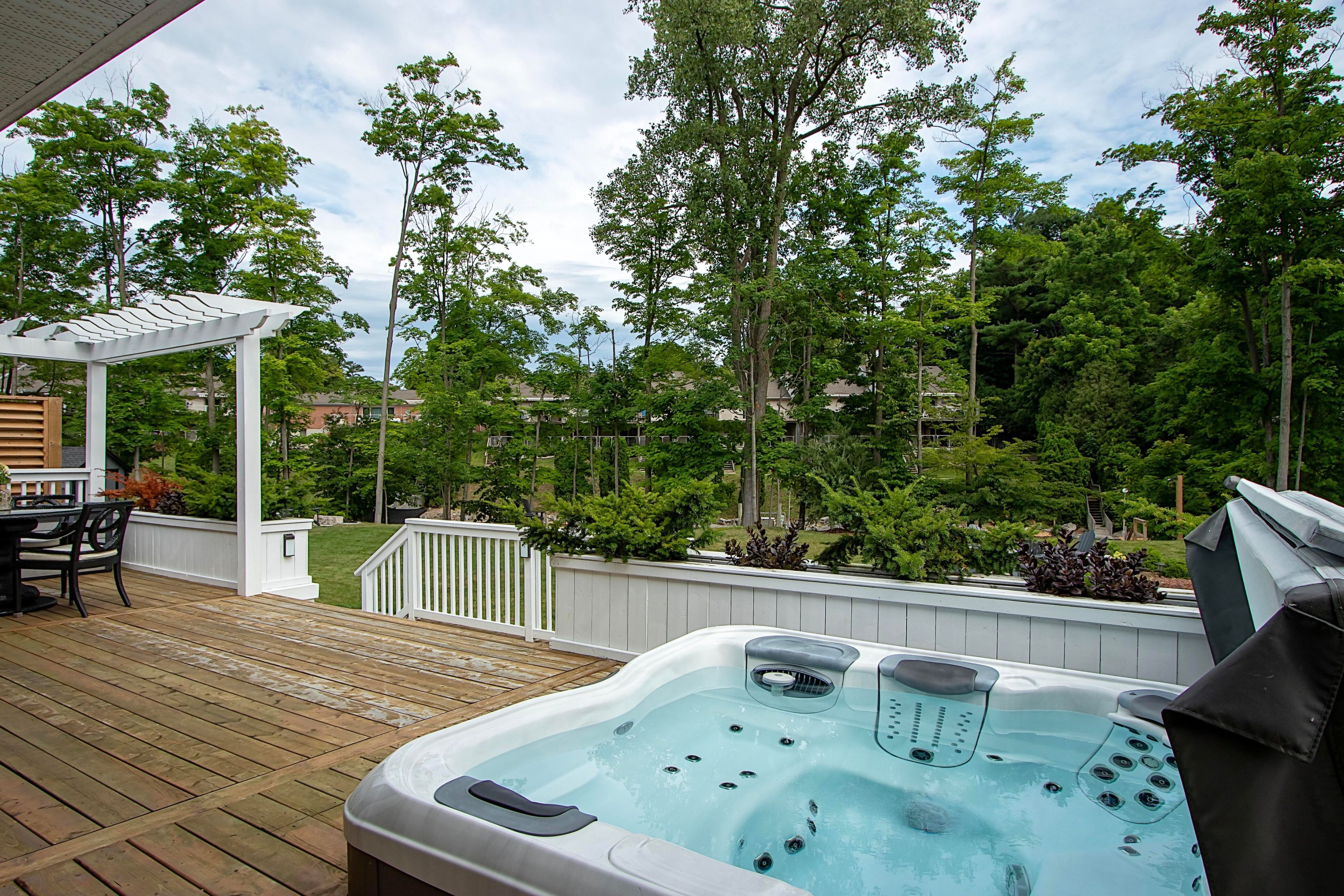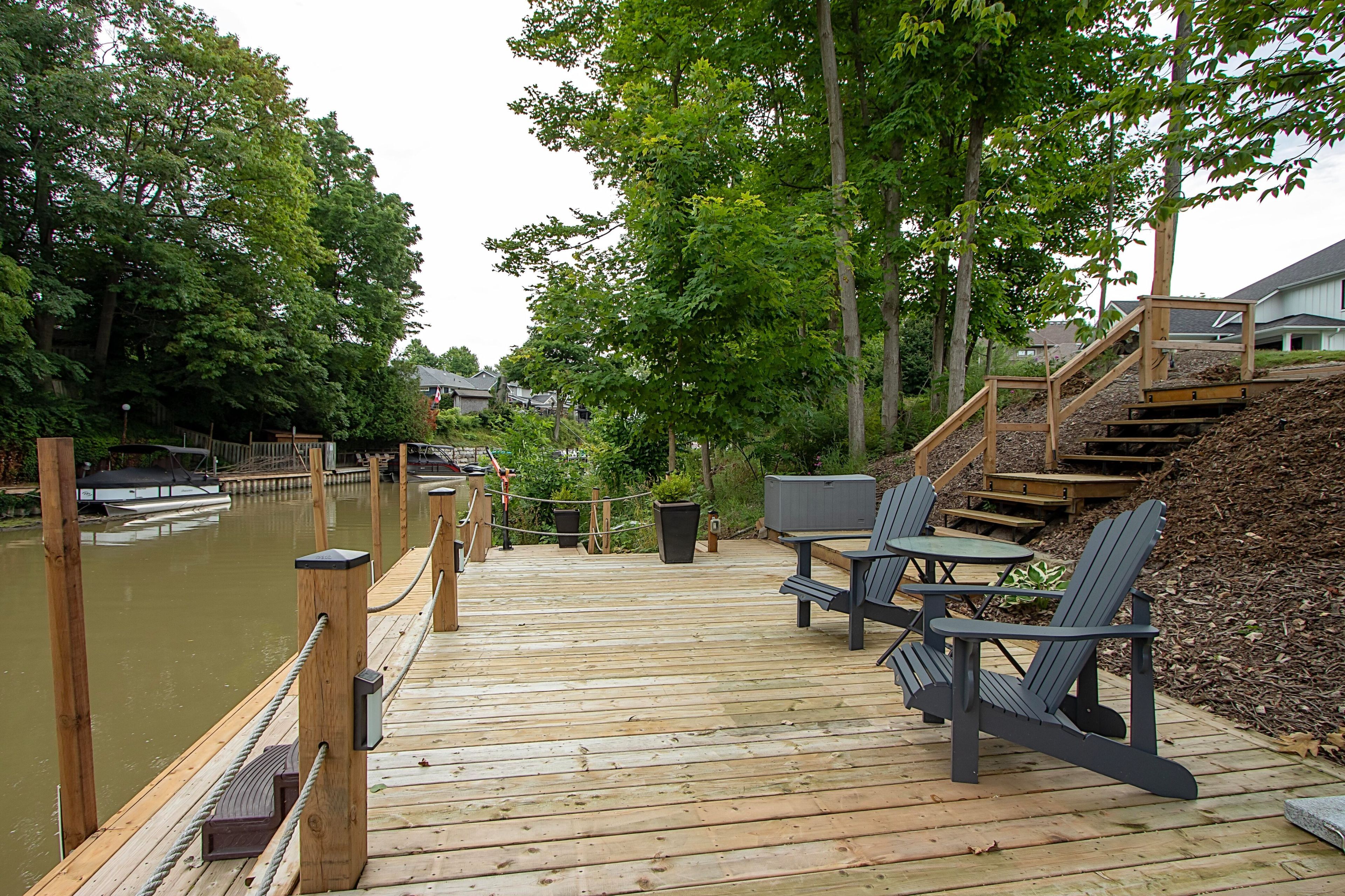 Experience Luxury Waterfront Living that leads right into Lake Huron! A stunning custom bungalow by award-winning Medway Homes Inc. Ideally situated along the Ausable River in the heart of Grand Bend. Built in 2017, this exceptional home offers over 3,000 sq ft of beautifully finished living space. Say hello to luxury, functionality, and refined riverfront living! A select few have the privilege to keep their boat at their very own private dock. The deceiving curb appeal keeps this gem hidden and private. An oversized 33-ft garage with 13-ft ceilings and an 11-ft door-designed to easily accommodate a 23-ft boat. Step into a private, resort-style backyard featuring a brand-new 42-ft, three-level dock with dinghy hoist, stamped concrete patio with built-in fire pit. At the house is a two-tier deck with partial coverage, BBQ area, and hot tub perfect for entertaining or unwinding in total privacy. Inside, 9-ft ceilings and a bright open-concept meet the chef-inspired kitchen. Offers quartz countertops, modern appliances, and a large island ideal for hosting. The living area is anchored by a gas fireplace and oversized patio doors showcasing tranquil river views. A custom mudroom with dog wash station (or kids wash station for that matter... beach life brings the sand) adds thoughtful convenience. The main-floor primary suite is a serene retreat with direct deck and hot tub access, walk-in closet, and a stylish 3-piece ensuite. All bathrooms include in-floor heating. The fully finished basement provides additional space to relax, work, or host guests. Offered fully furnished with curated Brian Gluckstein pieces, this move-in-ready home is complete with privacy fencing on both sides and is just minutes from the beach, marina, and downtown Grand Bend. Please refer to www.lambtonshores.ca/invest-and-build/ for updates on Grand Bends upcoming projects improving the community. A rare opportunity to own a designer riverfront residence with exceptional outdoor amenities.