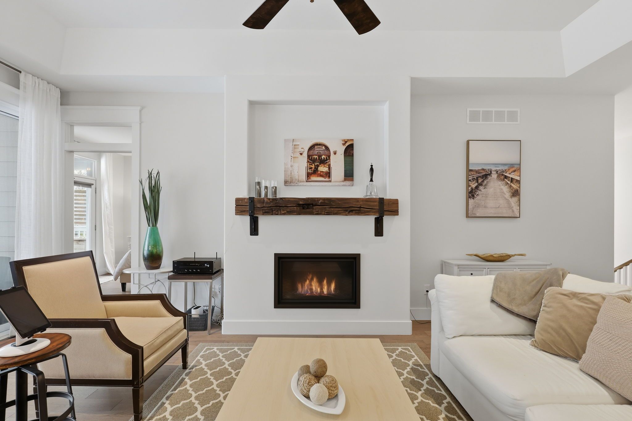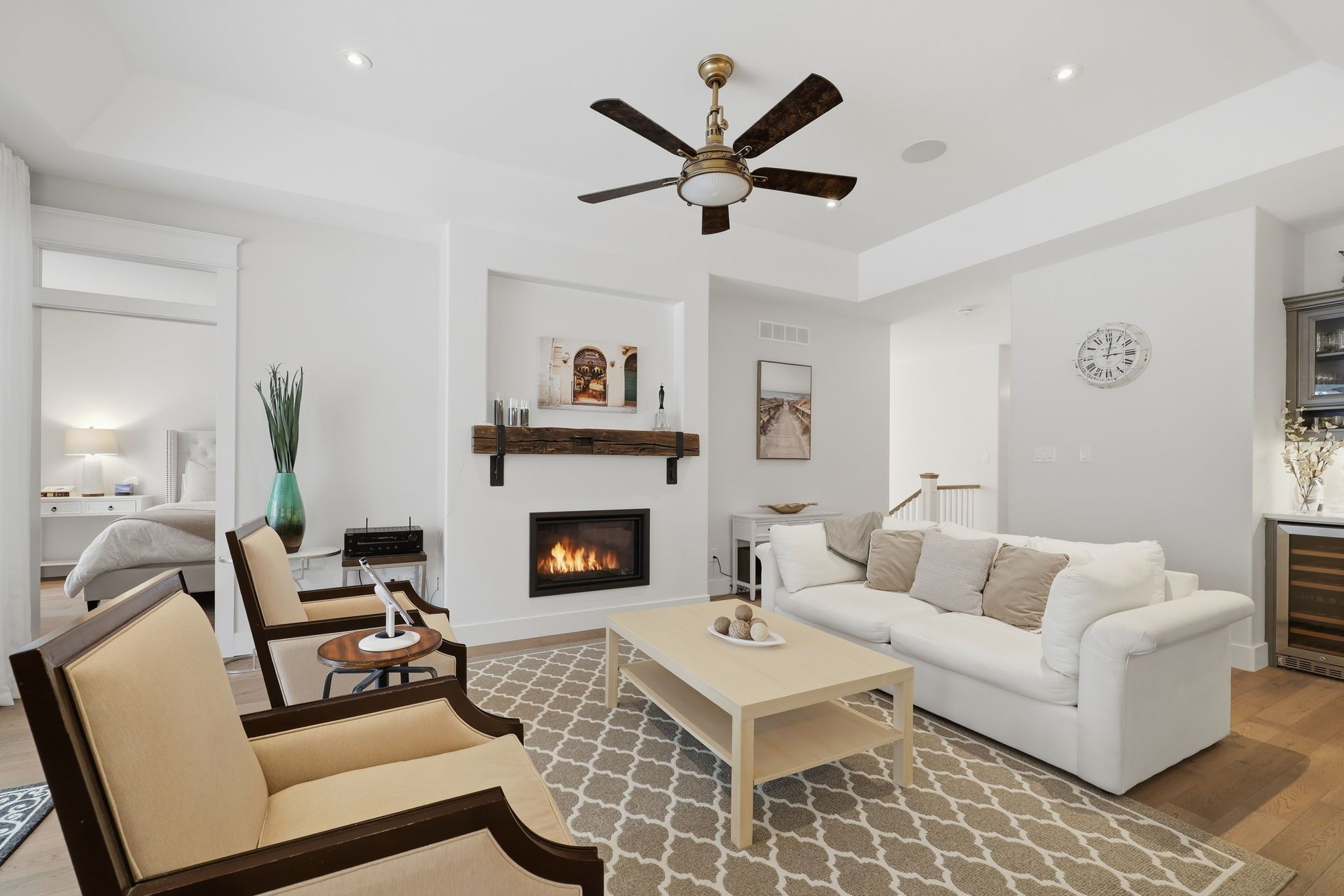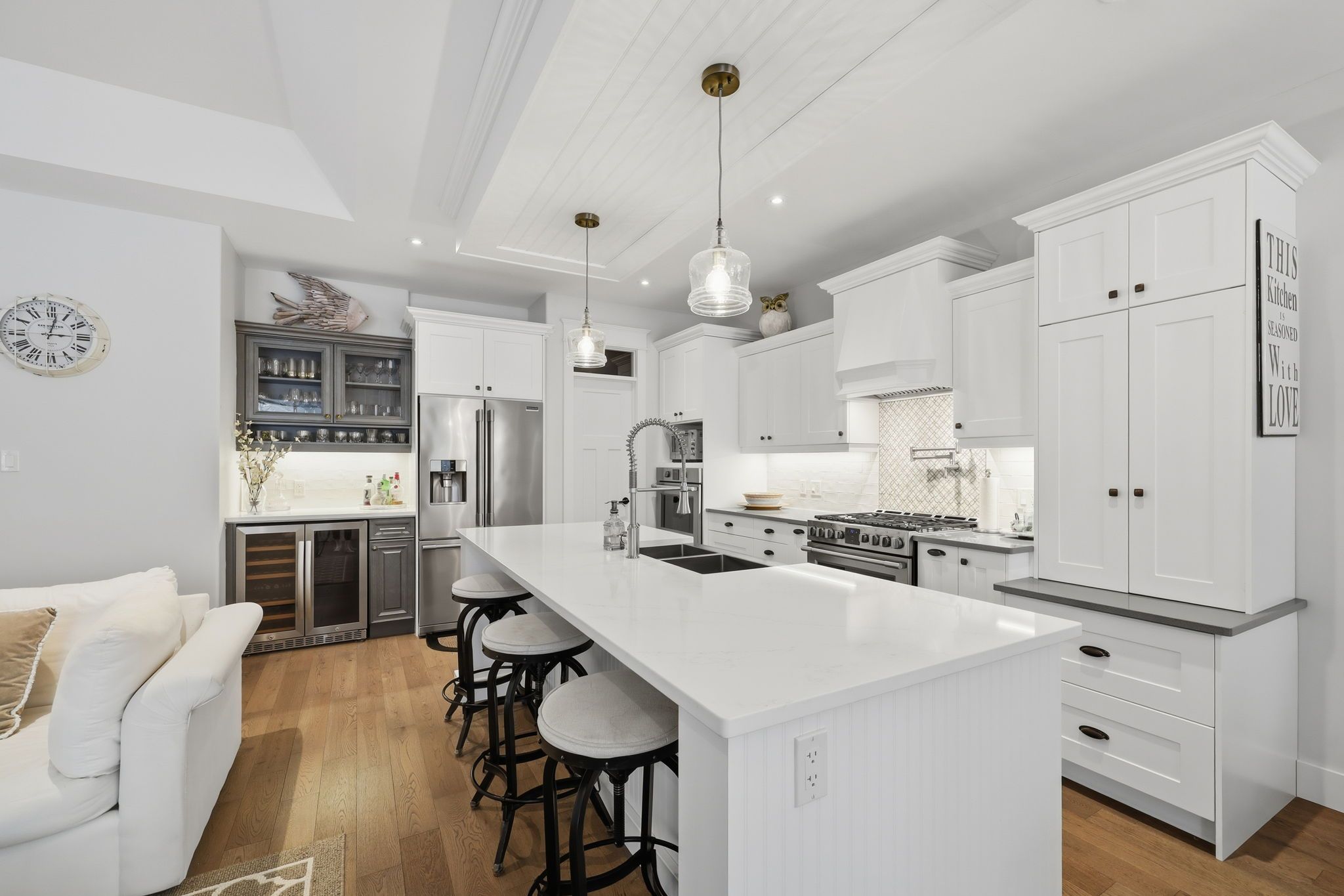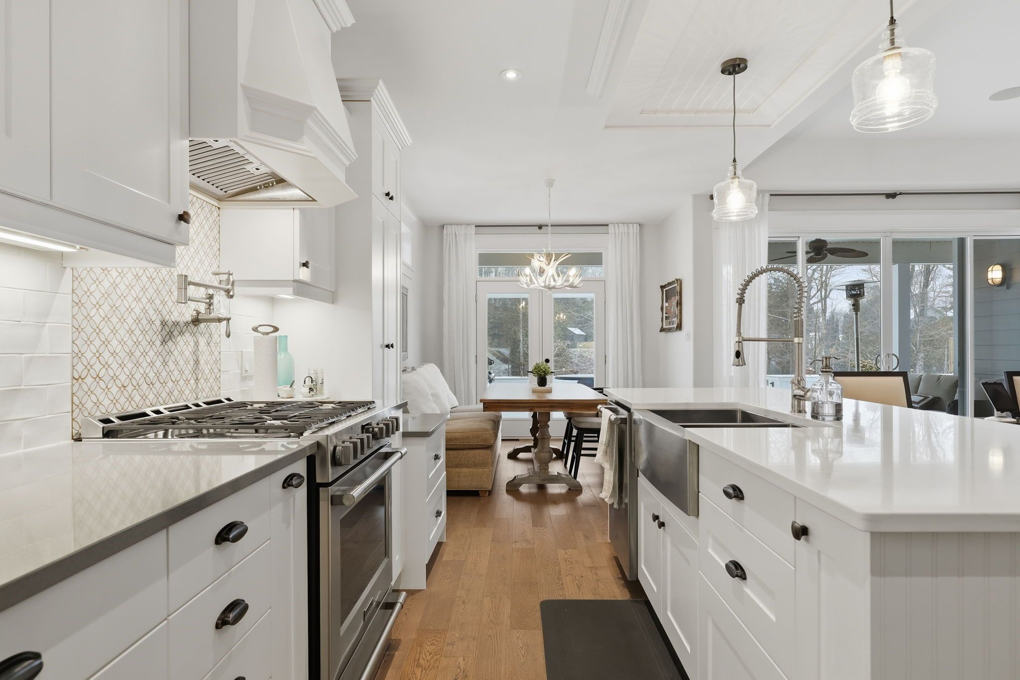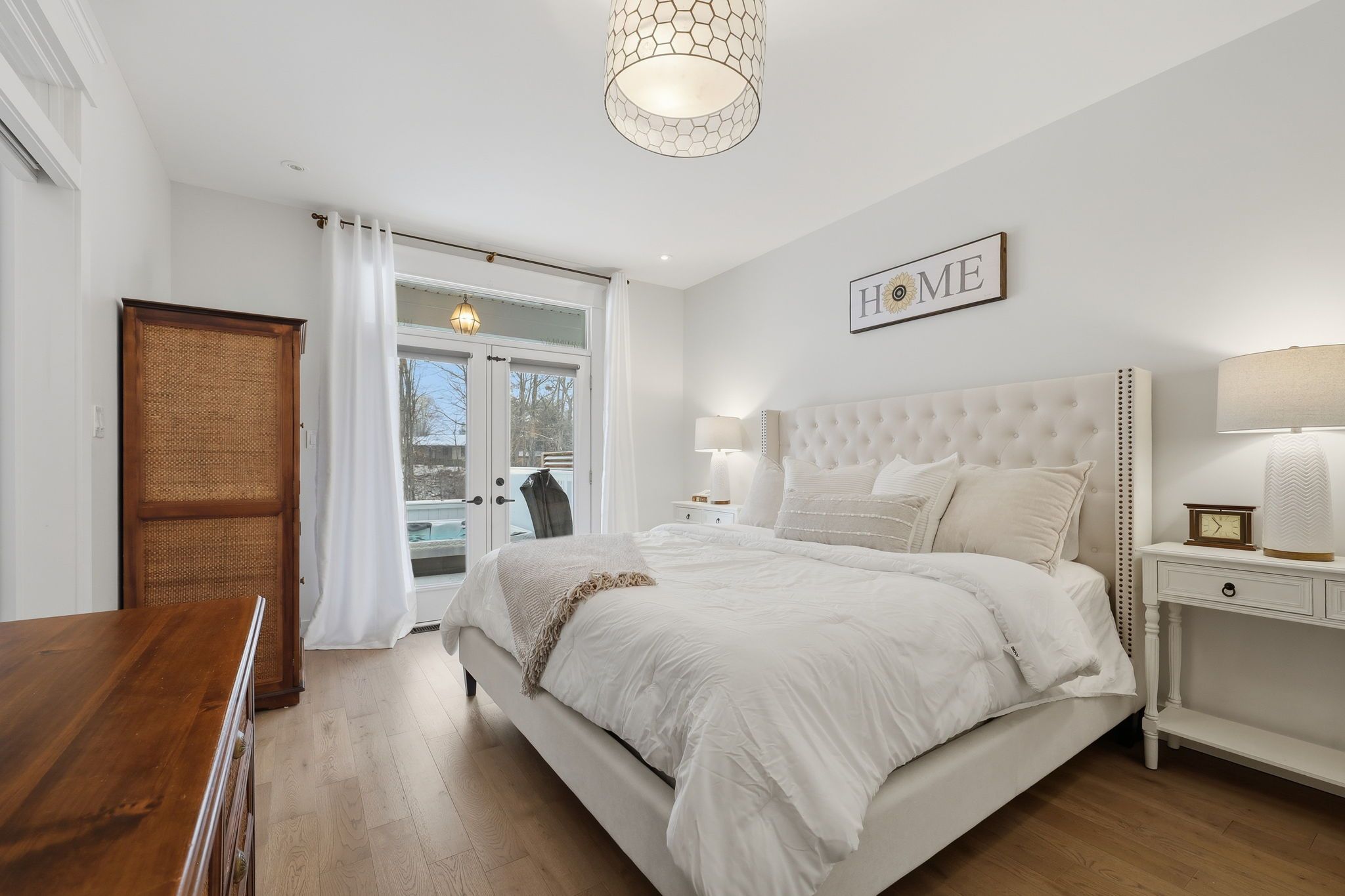 Experience Luxury Waterfront Living that leads right into Lake Huron! A stunning custom bungalow by award-winning Medway Homes Inc. Ideally situated along the Ausable River in the heart of Grand Bend. Built in 2017, this exceptional home offers over 3,000 sq ft of beautifully finished living space. Say hello to luxury, functionality, and refined riverfront living! A select few have the privilege to keep their boat at their very own private dock. The deceiving curb appeal keeps this gem hidden and private. An oversized 33-ft garage with 13-ft ceilings and an 11-ft door-designed to easily accommodate a 23-ft boat. Step into a private, resort-style backyard featuring a brand-new 42-ft, three-level dock with dinghy hoist, stamped concrete patio with built-in fire pit. At the house is a two-tier deck with partial coverage, BBQ area, and hot tub perfect for entertaining or unwinding in total privacy. Inside, 9-ft ceilings and a bright open-concept meet the chef-inspired kitchen. Offers quartz countertops, modern appliances, and a large island ideal for hosting. The living area is anchored by a gas fireplace and oversized patio doors showcasing tranquil river views. A custom mudroom with dog wash station (or kids wash station for that matter... beach life brings the sand) adds thoughtful convenience. The main-floor primary suite is a serene retreat with direct deck and hot tub access, walk-in closet, and a stylish 3-piece ensuite. All bathrooms include in-floor heating. The fully finished basement provides additional space to relax, work, or host guests. Offered fully furnished with curated Brian Gluckstein pieces, this move-in-ready home is complete with privacy fencing on both sides and is just minutes from the beach, marina, and downtown Grand Bend. Please refer to www.lambtonshores.ca/invest-and-build/ for updates on Grand Bends upcoming projects improving the community. A rare opportunity to own a designer riverfront residence with exceptional outdoor amenities.