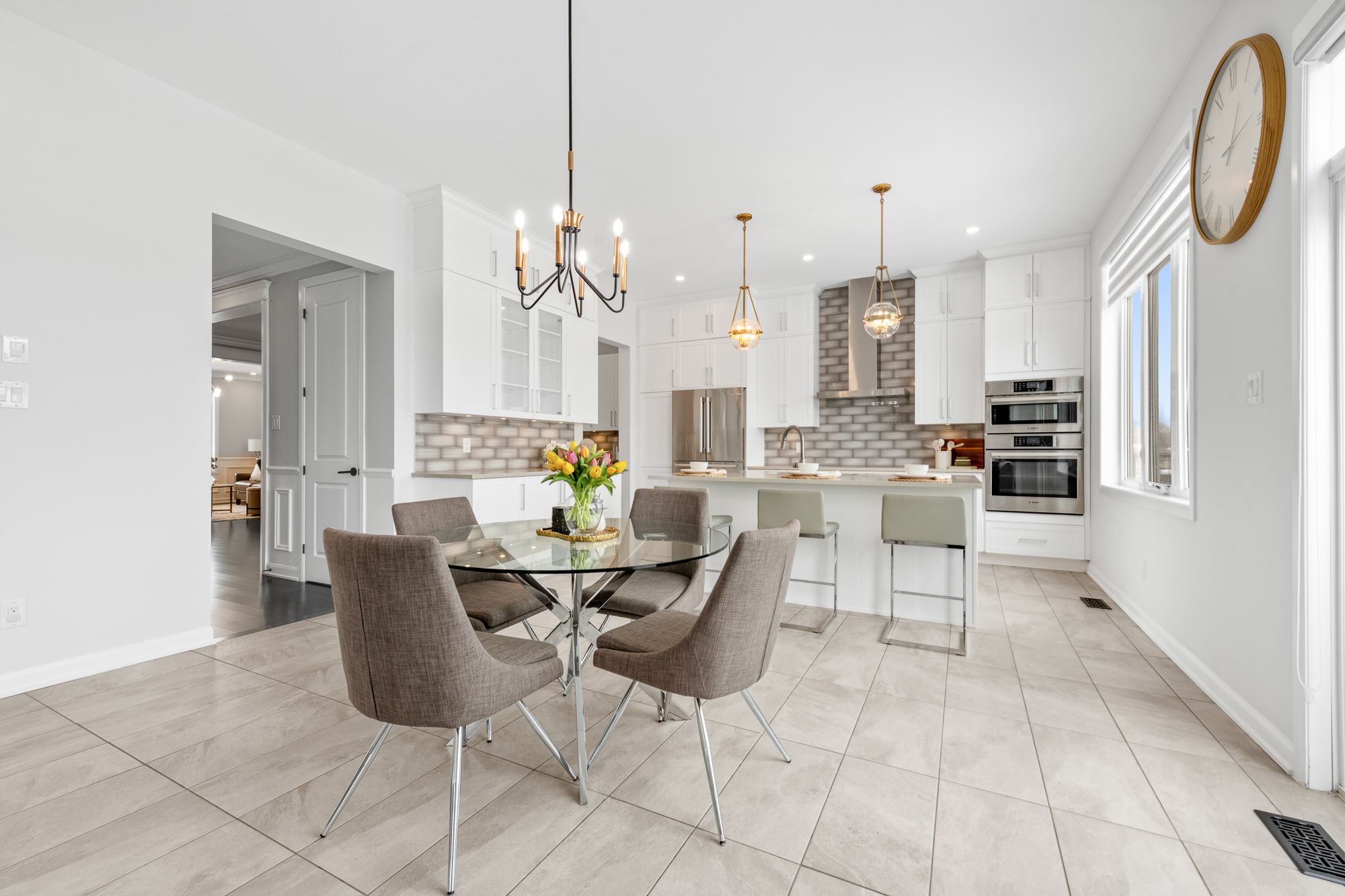 Located in Manotick's Mahogany community, this Minto-built Redwood model offers approx. 4,660 sq. ft. of fully finished living space, including 3,550 sq. ft. above grade and a professionally finished 1,110 sq. ft. walk-out lower level designed as a full in-law suite. The main level showcases 10-ft ceilings in the kitchen and family room, creating a bright, open layout perfect for everyday living and entertaining. Formal living and dining rooms add elegance, while the upgraded chef's kitchen anchors the heart of the home. A main-floor bedroom or office with a full bath provides excellent flexibility for guests or main-level living. The upper level is designed with comfort in mind. The primary suite offers a spa-inspired ensuite and generous closet space. All additional bedrooms feature walk-in closets, complemented by a shared sitting area and a spacious laundry room with walk-in linen storage. The walk-out lower level is fully finished as a self-contained in-law suite with a private entrance, featuring a full kitchen, separate living and family rooms, private laundry, and a large bedroom with a full bath. Abundant natural light and direct backyard access provide true independent living. Set on a premium lot with no rear neighbors, the property also includes upgraded exterior brickwork, an electric vehicle charging outlet, and enhanced privacy. A rare opportunity to enjoy luxury, space, and multi-generational flexibility in one of Manotick's most sought-after communities.