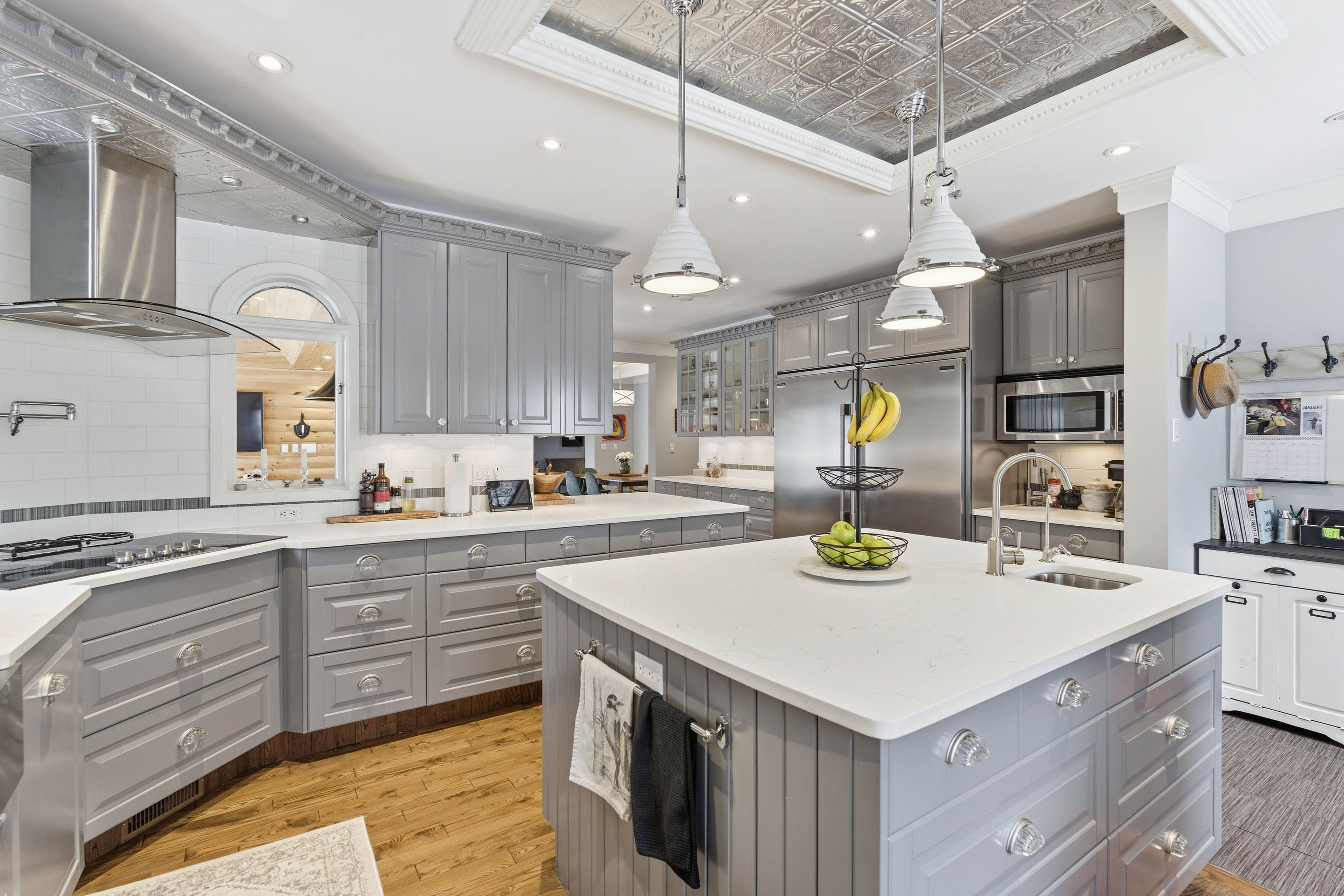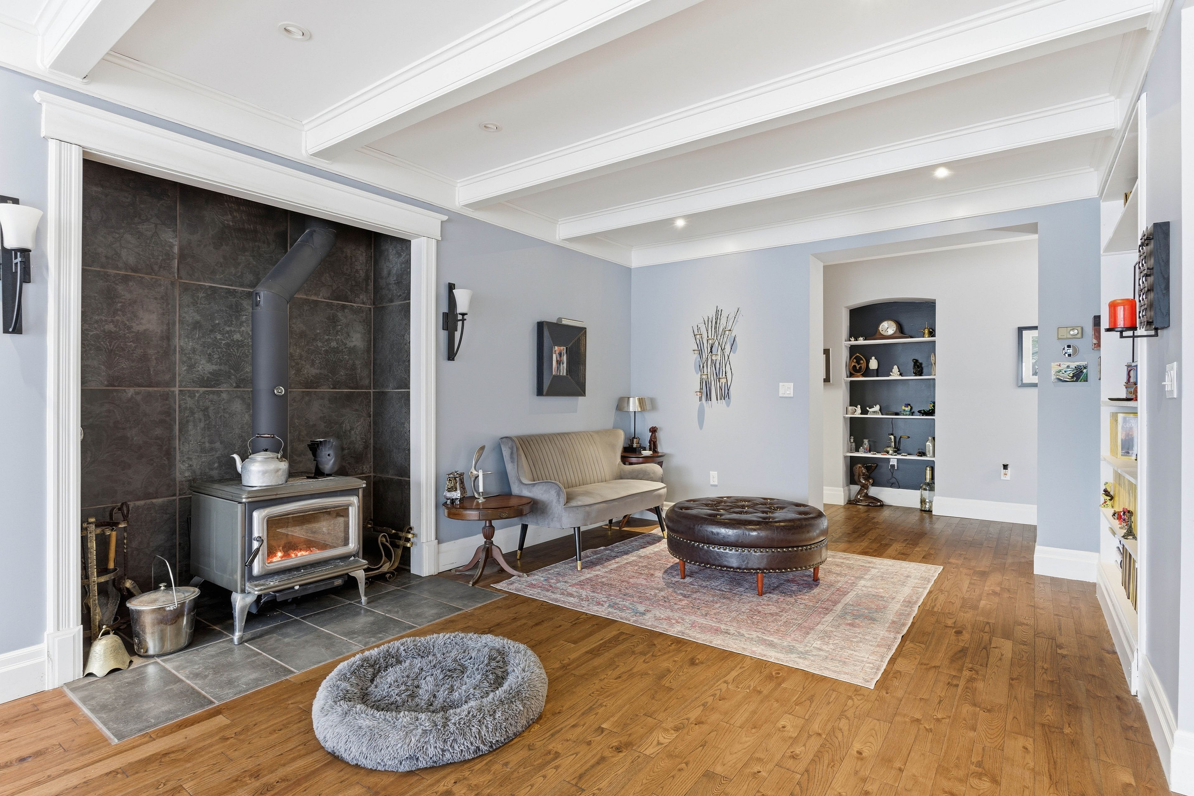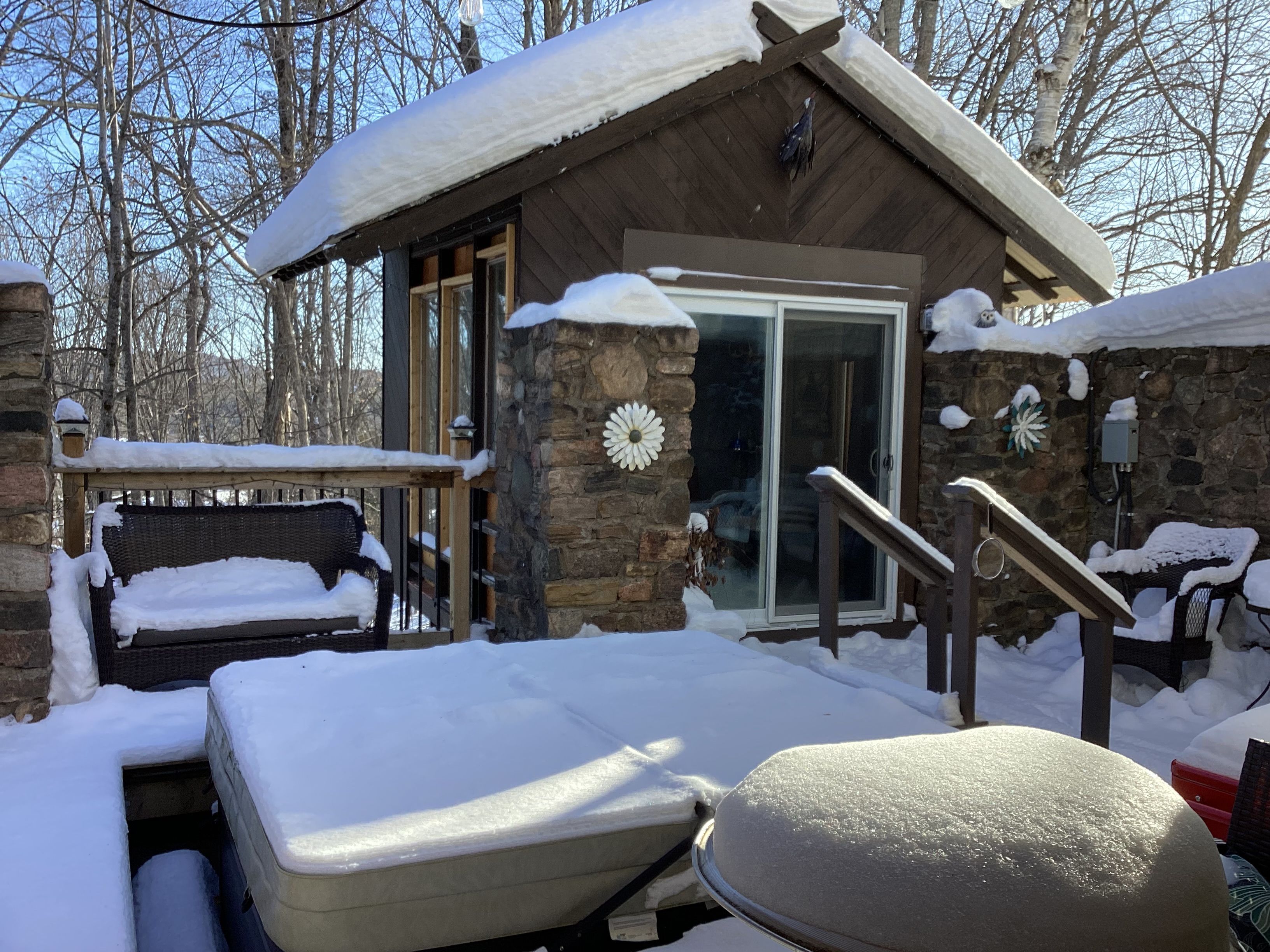 The property sits on 1.2 acres of land and is situated just minutes from the Heritage Trails for Snowmobiling, ATV riders and Hiking. Bancroft is surrounded by literally hundreds of lakes and Algonquin Park. What was previously a very successful Bed & Breakfast, this custom-Built Home is over 4,000 sq. ft. featuring a fully treed backyard and open side yard with shed, fire pit, and 8-person hot tub (2022).The home is thoughtfully designed, central vacuum, propane furnace (2013), and main-floor laundry. The main level showcases hardwood flooring, pot lights, crown moulding, and coffered ceilings. A large living room features a wood-burning fireplace, while the spacious foyer includes a 2-piece powder room. Two bedrooms with ensuites on the main floor, with one bedroom offering access to a private deck. A bright 4-season sunroom provides year-round enjoyment and includes a(2024) high-efficiency, WiFi-enabled pellet stove.The custom chef's kitchen is exceptionally well equipped with quartz countertops, three sinks, built-in double ovens, 5-burner electric cooktop with pot filler, coffee station, side-by-side fridge and freezer, two dishwashers, wine cooler, kick sweep, and over- and under-cabinet lighting.The primary offers walk-in closet, and workout room. The luxurious 6-piece ensuite features a spa-style tub area with faux fireplace, heated towel racks, walk-in shower with rain head and bidet.The walkout basement is impressively spacious with room for a bar, games area, kitchenette, wine cellar, 2-piece powder room, additional full bathroom, ample storage, two walkouts, a propane fireplace installed in 2023, and a 2nd laundry hookup. Outdoor living is enhanced by a 3-season gazebo/bunkie with full electrical service, accessible from the lower deck or side yard.The garage features an electric lift to attic storage and stairs leading to the upper home entry.A truly distinctive property combining craftsmanship, luxury, and space in a private natural settings.