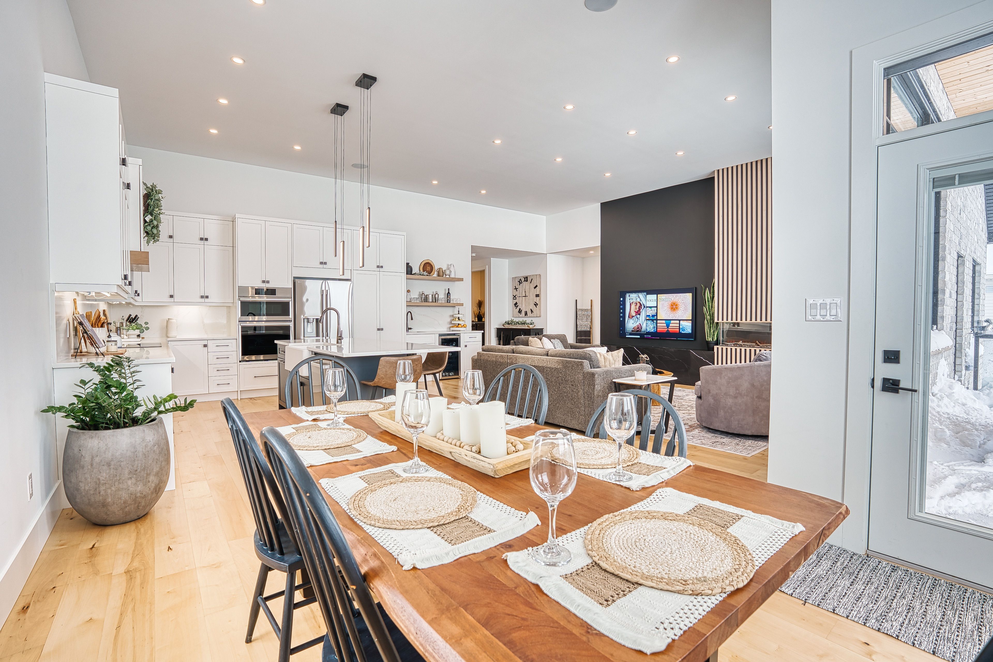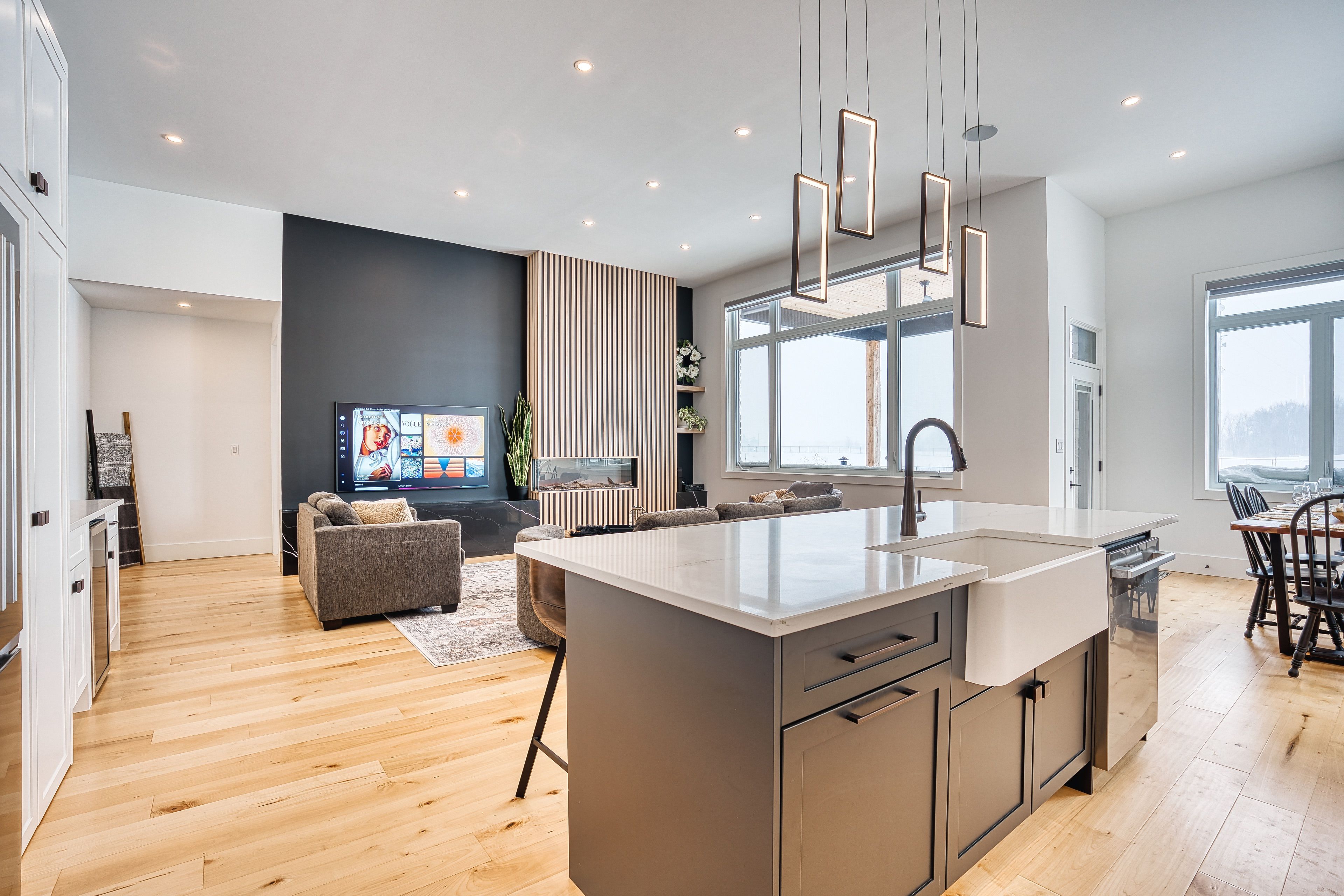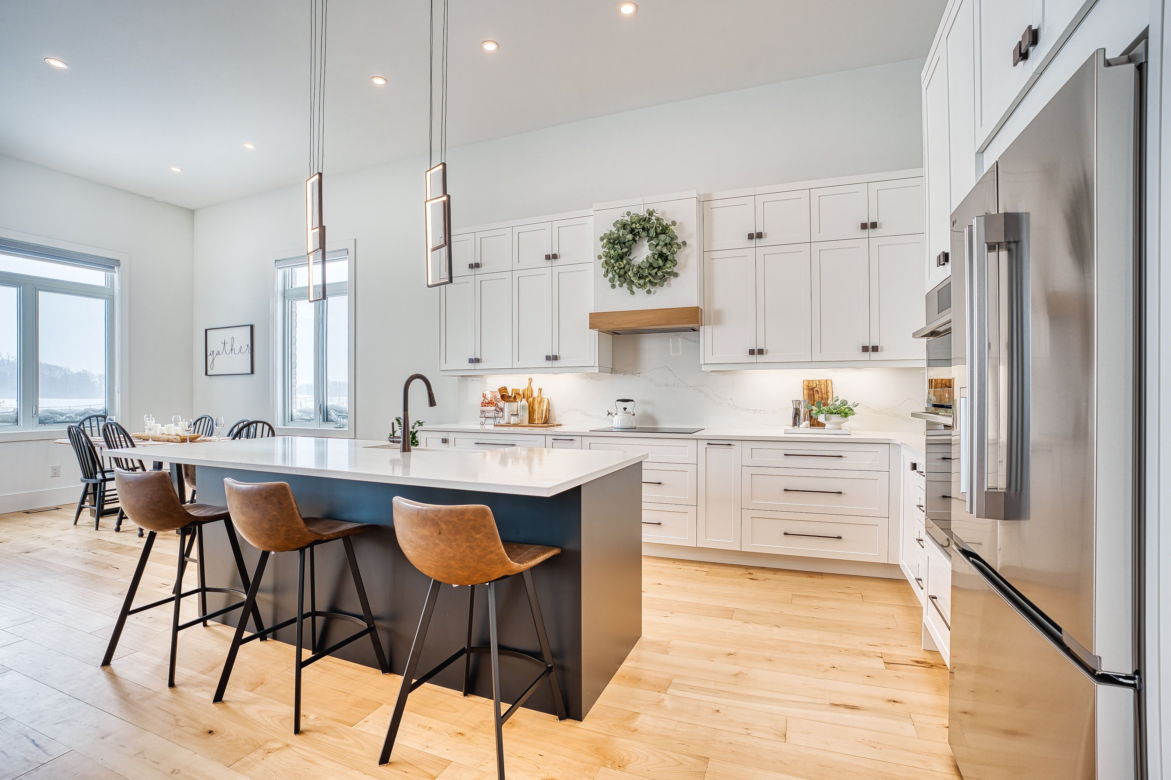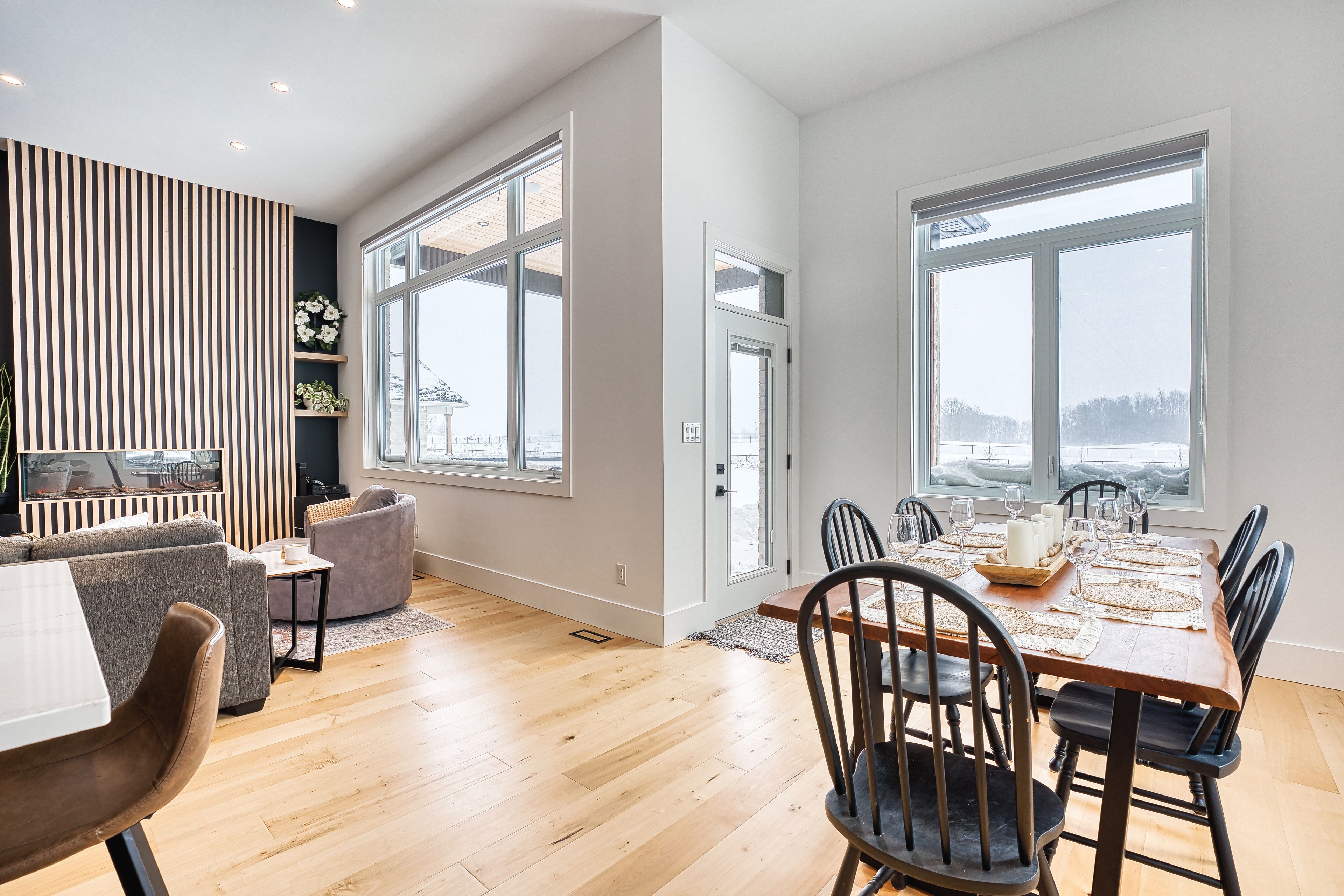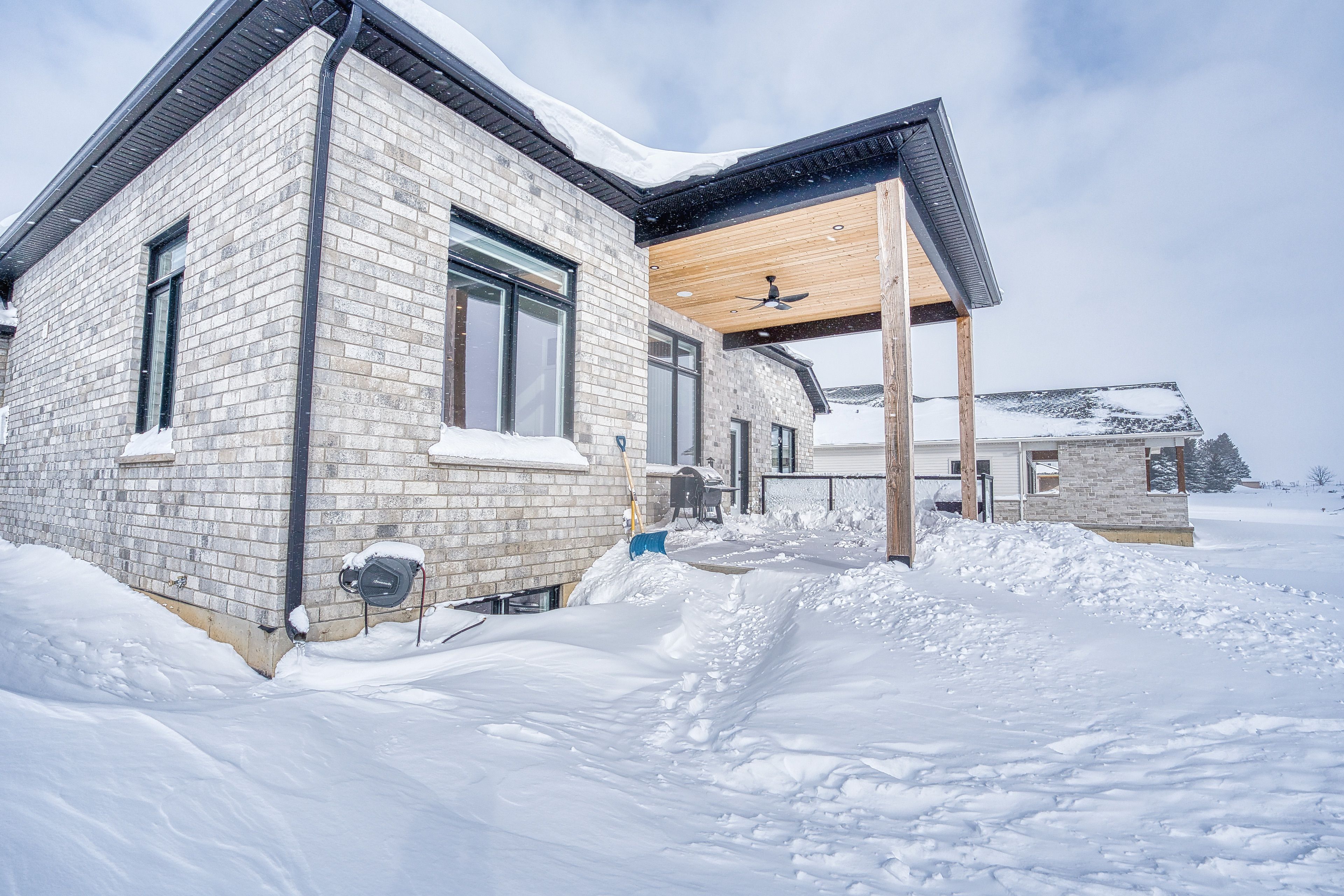 Beautifully custom constructed 3300sqft 2 storey home just a year old and located on 61ft x 262ft lot in Listowel. Nothing was spared throughout this family home which has a main level Primary bedroom and 5 piece ensuite which continues to the walk-in closet. Another 3 bedrooms upstairs, 1 has ensuite bath and another walk-in closet and the 3rd and 4th bedrooms shared yet another full bath. Great room shines with natural light and consists of 14 foot ceilings, full wall fireplace, spacious kitchen with island and hidden full walk-in pantry, dining area and door leading to the covered porch overlooking this huge backyard. This home has it all, from home office, mudroom with built-in cabinetry, main floor laundry, double car garage, cement drive with parking for all, built-in bluetooth speakers, landscaping and cement driveway. Built in 2025, no detail has been missed, 9ft ceilings on the main and 8 ft upstairs, hardwood floors and steps, built-in appliances. Just packed your things and move right in, you won't believe the space for your family!!