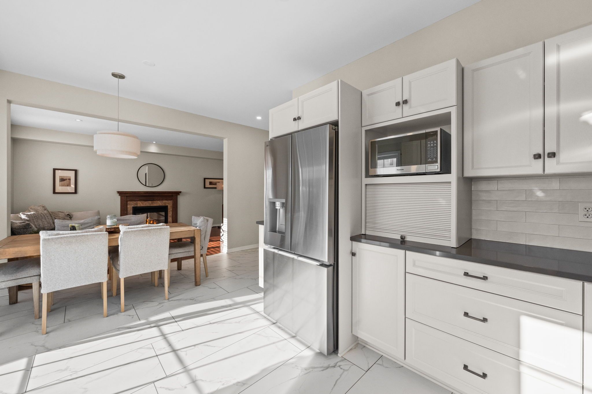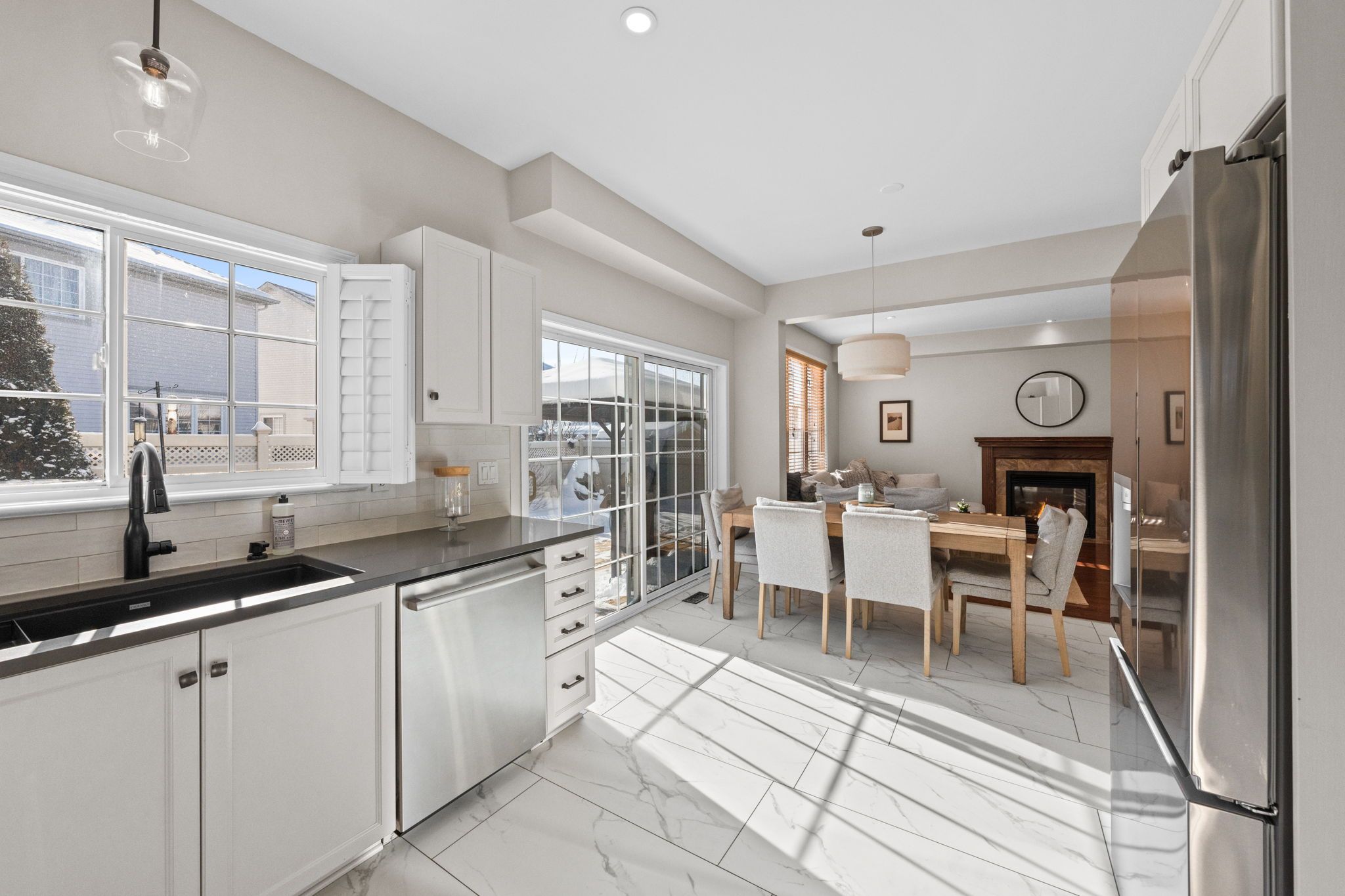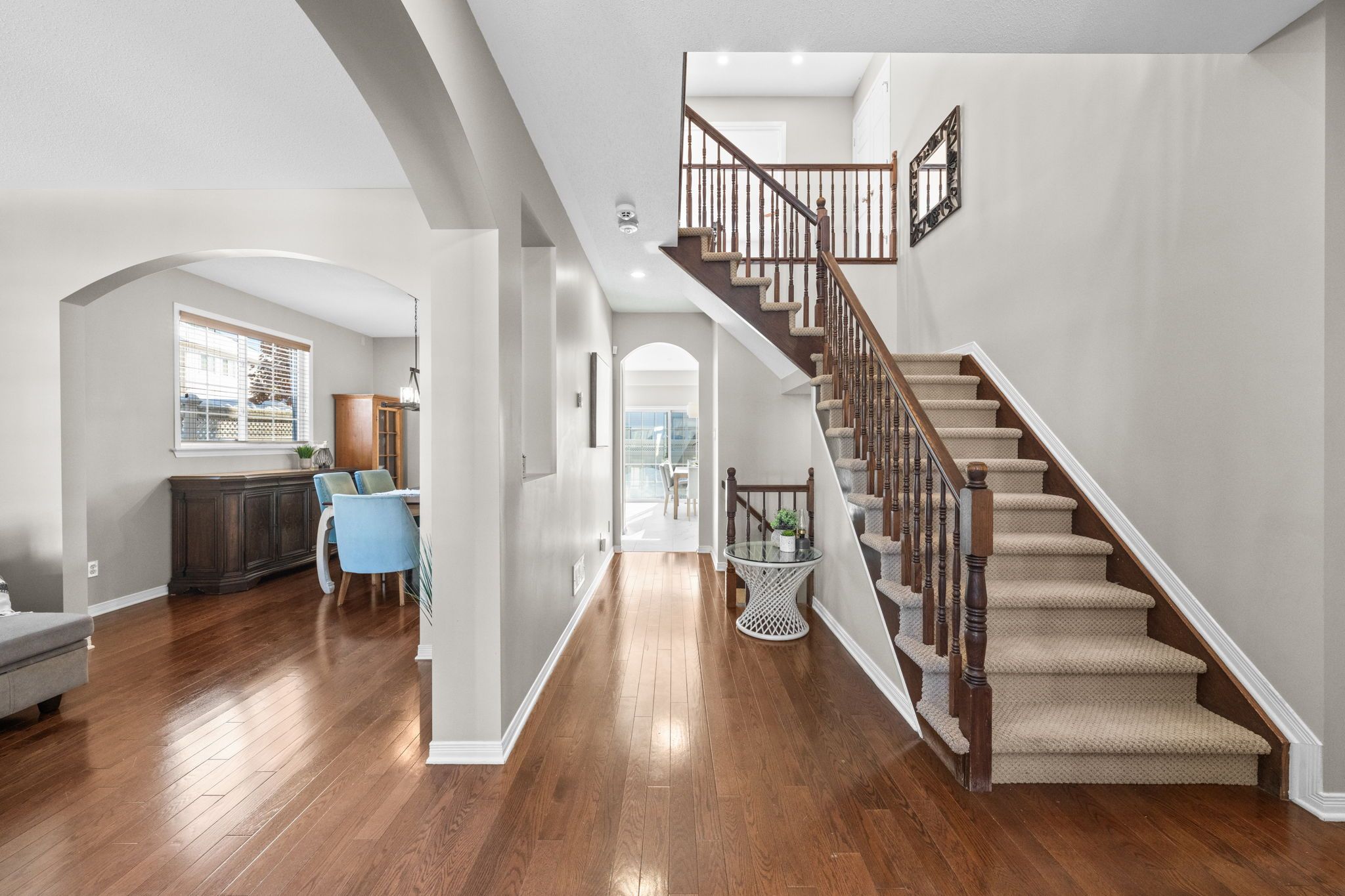 Exceptional Monarch built 4+1 bedroom, 4-bath home nestled in a mature, family-friendly neighbourhood surrounded by greenspace and many walking trails. The main level offers a classic formal living and dining room, perfect for entertaining, alongside a beautifully renovated eat-in kitchen featuring quartz countertops, new stainless steel appliances, and seamless flow into the inviting family room with a cozy gas fireplace. Upstairs, acacia wood flooring enhances the second level, where you will find a generous primary retreat complete with its own fireplace, a luxurious 5-piece ensuite, and an oversized walk-in closet, along with three additional well-sized bedrooms and a full bathroom with a convenient cheater door to one of the bedrooms. The fully finished lower level expands your living space with a rec room warmed by an electric fireplace, a home theatre, gym area and/or games room, plus a fifth bedroom with in-law suite capability, including a kitchenette and full bath. Outside, the landscaped backyard is designed for relaxation and entertaining, boasting a large deck, gazebo, gas BBQ hook up and a six-person hot tub. Ideally located close to public transportation, park-and-ride, numerous parks, and excellent schools, this home offers the perfect blend of space, comfort, and lifestyle in a highly desirable setting.