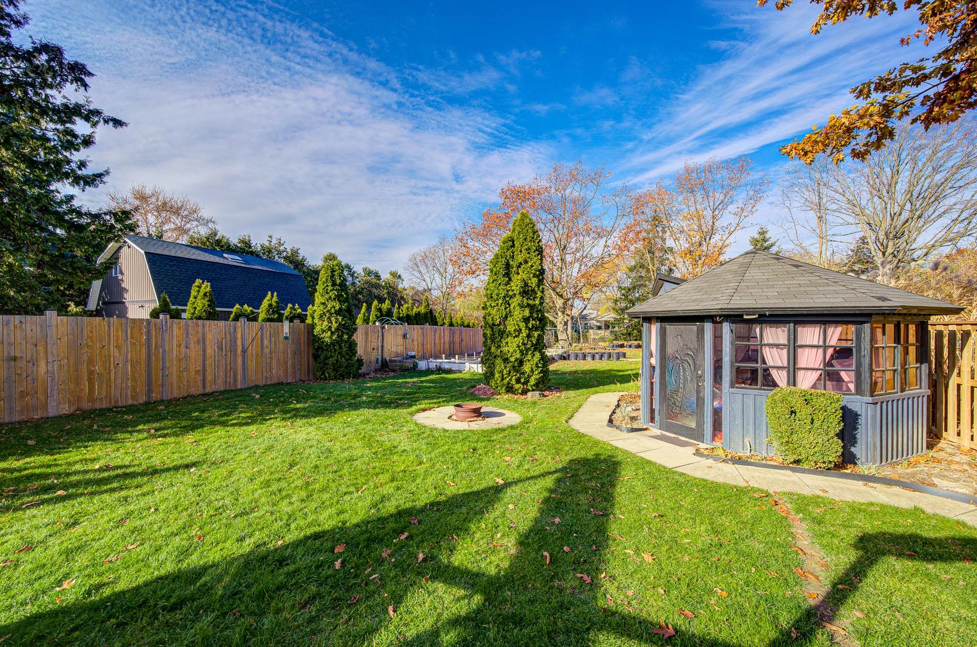 Rare bungalow on an extra-large 50 x 276 ft lot, offering over 2,500 sq. ft. of comfortable living. The main floor features 3 bedrooms and 2 full bathrooms. The entrance foyer boasts a skylight and flows seamlessly into the kitchen and breakfast area, which also has a skylight. The pantry area could function as a laundry, with plumbing and electrical hookups already in place. The large dining room with sliding doors opens to the backyard, while a bright and generous living room with new pot-lights fills the home with natural light. The master bedroom includes an ensuite, and the other two bedrooms share a full bathroom. The basement has been upgraded to 2 bedrooms and 1 bathroom, with the potential to create an in-law suite, along with a large family room featuring a gas fireplace. Enjoy the spacious deck for gatherings, while sheds provide excellent storage and space for plant nursing. The extra-deep backyard offers endless possibilities for gardening, entertaining, expansion, or future redevelopment. Additional upgrades include all appliances 2023, new washer & dryer 2025. Furnace 2023, new heat pump 2023, hot water heater 2023 and a new ventilation system 2023, water softener and water purifier 2023. Vinyl floor 2023. New fence on one side and back side 2025. Electrical panel upgraded to 200A with an electrical car charger 2024. making this home move-in ready and ideal for families, investors, or developers seeking space, comfort, and long-term value.