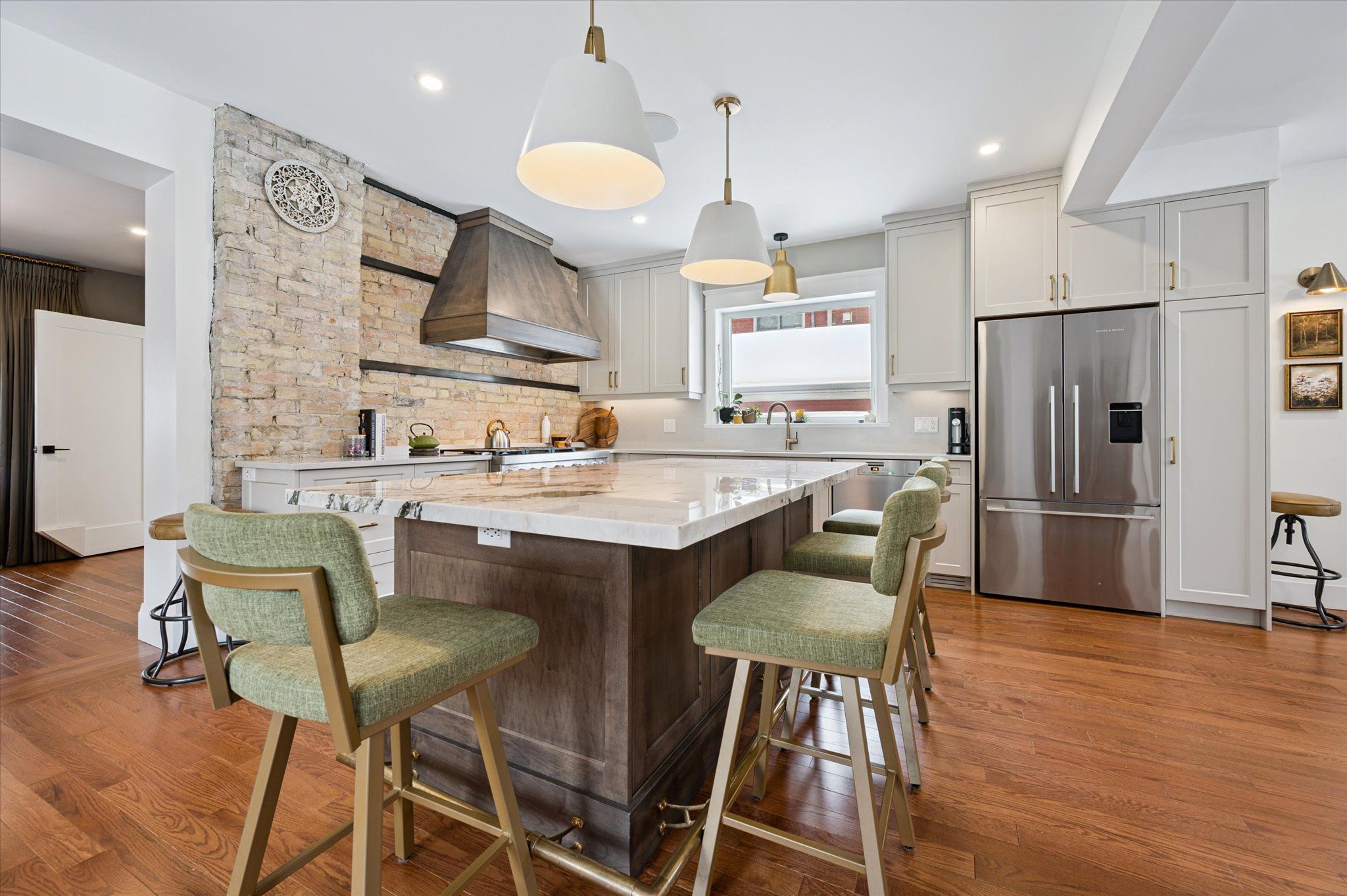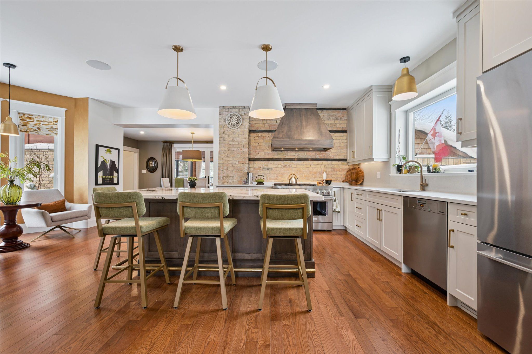 Old charm meets modern conveniences in this stunning 4 bedroom Westmount home! This 4 bedroom, 3 bathroom home has over 2921 sq feet of above grade living space. Enter through the front covered porch, and be instantly impressed with the high ceilings and gleaming hardwood floors. The living room features plenty of natural light, an impressive gas fireplace and built-in speakers. This "wow" kitchen is certainly the heart of this home! The kitchen island is the center feature with granite counters, anchored by the large gas stove and stunning brick wall, nodding back to the roots of this century home. The dining room was thoughtfully designed with cabinets serving as an open butler's pantry and bar station. Plenty of room for guests to mingle for dinner and then wander out through the back sliding doors to the 3 season sunroom. Enjoy the warm summer evenings or cool brisk fall nights in the sunroom with an entire back wall of windows, overlooking the backyard and inground, salt water pool. No need to travel to a cottage, when this backyard feels just like being lakeside! Head upstairs to the open loft area, with skylight. The primary bedroom has a small balcony looking over the backyard, a large walk-in closet with stackable washer and dryer and a 4 piece ensuite bathroom with double sinks and a walk-in shower. 2 more generous sized bedrooms and a 4 pcs main bathroom for the kiddos. The fourth bedroom could serve as a second walk-in closet for the primary bedroom or a home office, exercise room or den. It's an easy walk to Uptown Waterloo to the restaurants and cafes, Waterloo Rec Centre, Waterloo Park and Waterloo Public Library - all less than a 10 minute walk! Close to bus routes and ION light-rail stops for easy access to anywhere in Kitchener-Waterloo. Here's your opportunity to have your cottage at home and boast about living in one of the most desirable neighbourhoods in Waterloo.