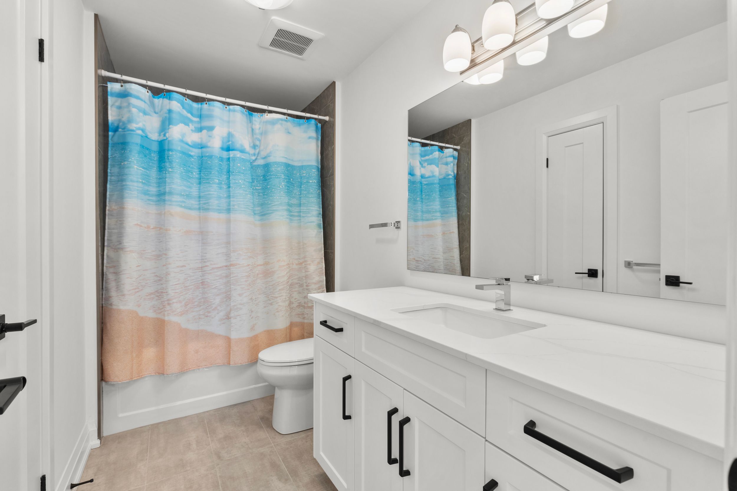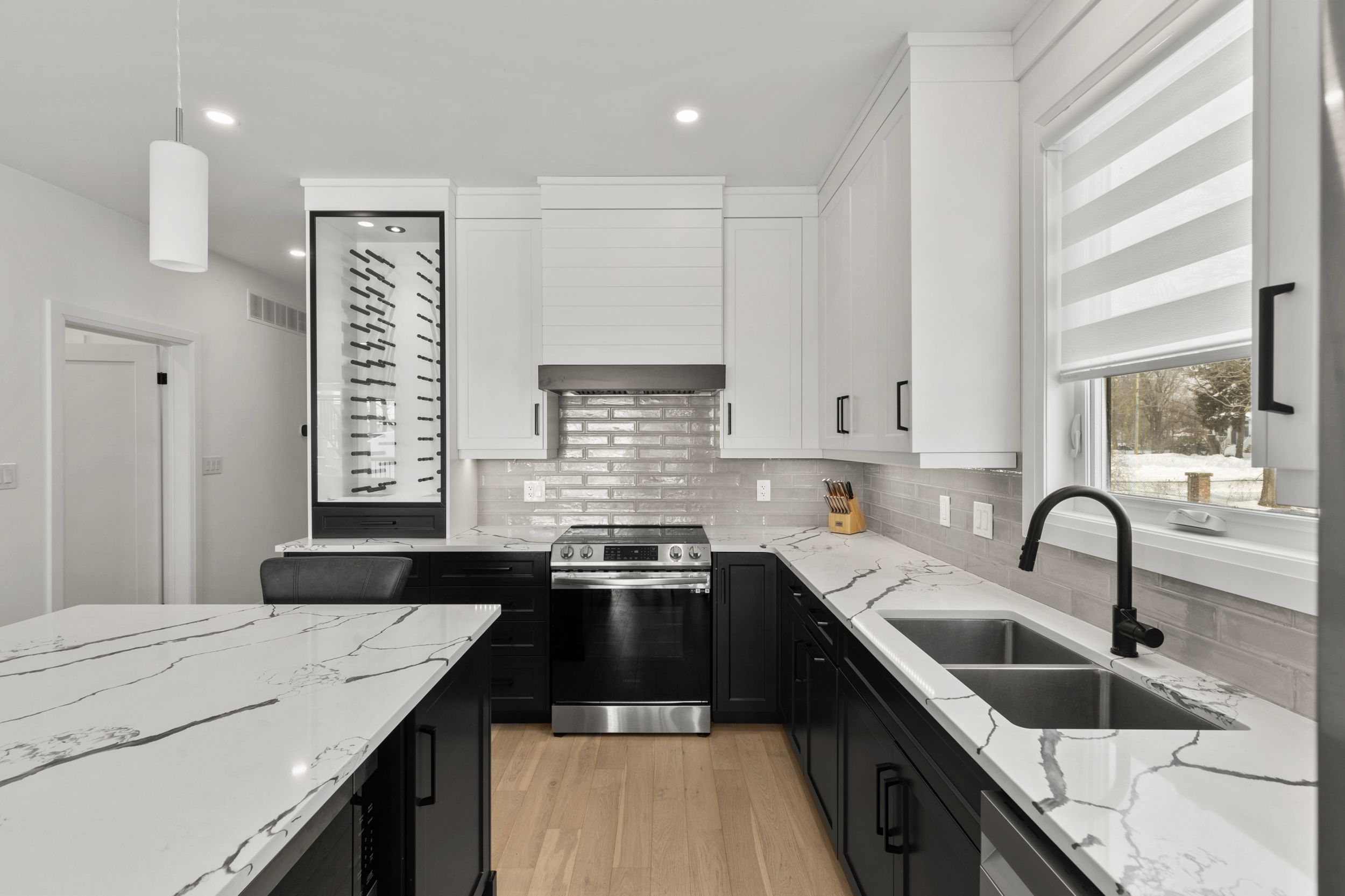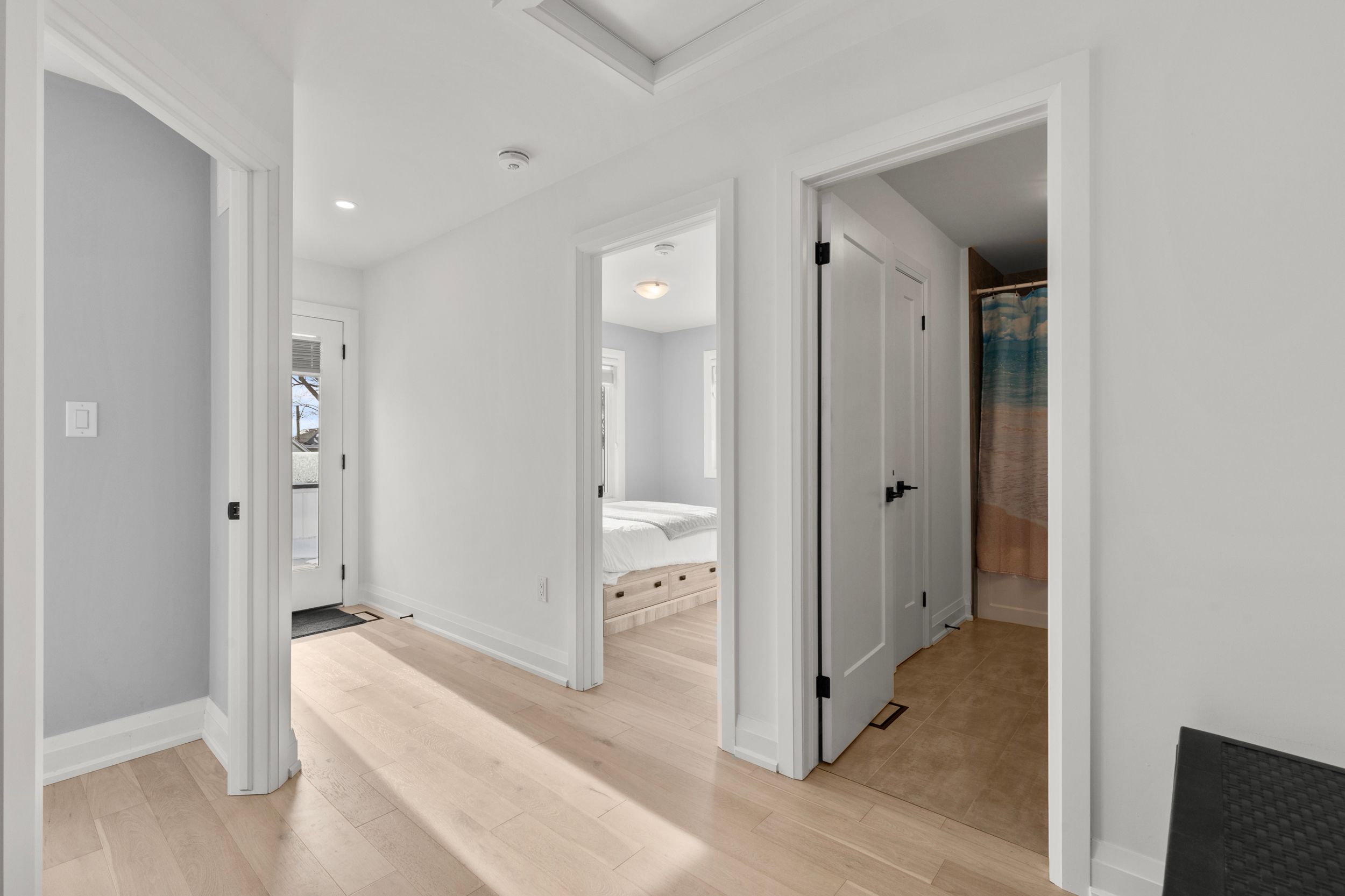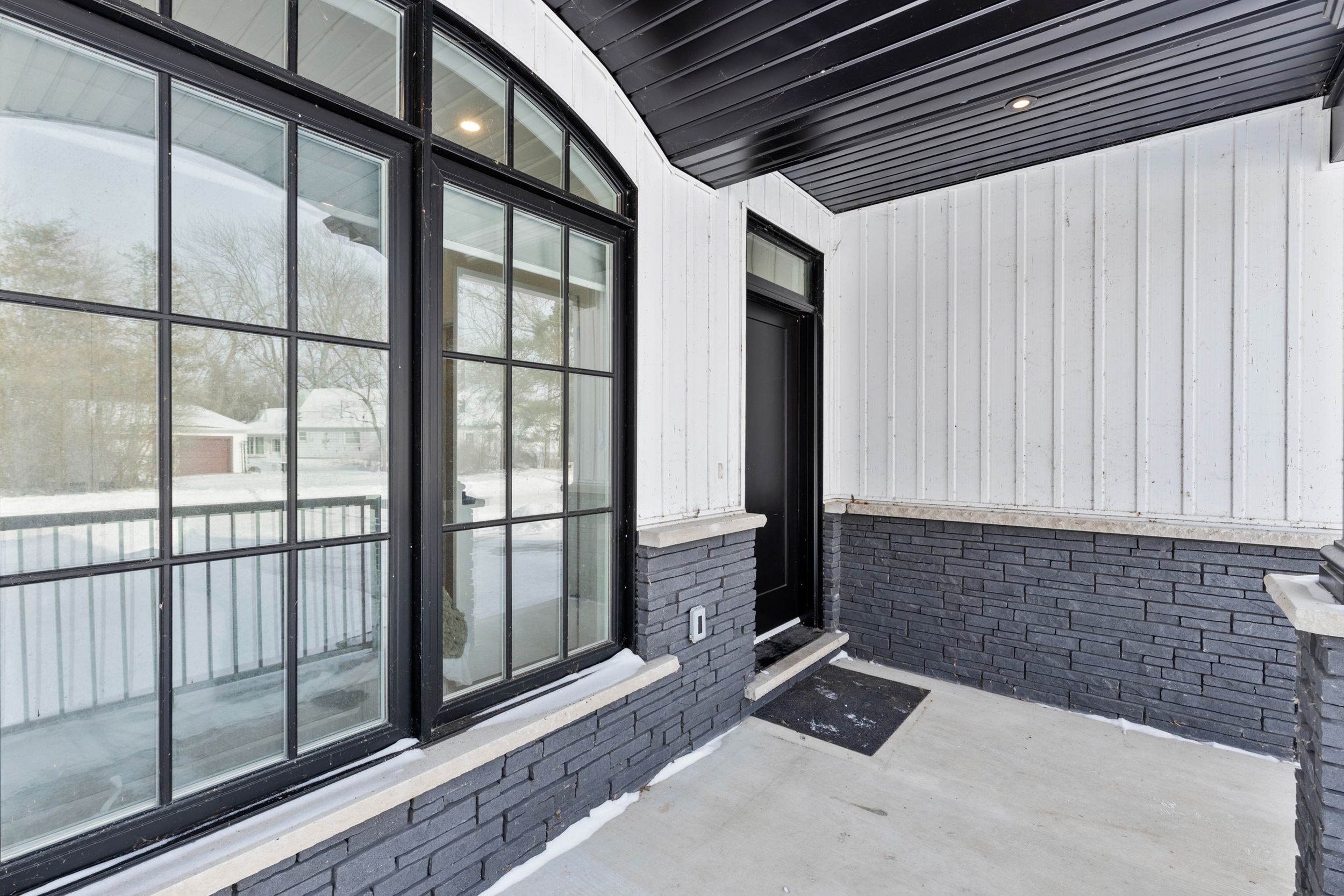 Experience effortless lakeside living in this beautifully designed bungaloft, where modern style meets relaxed comfort just steps from the Lake Erie waterfront. The classic black-and-white exterior with board-and-batten detailing makes a striking first impression, enhanced by an attached garage and inviting covered front porch. Inside, white oak hardwood floors and abundant natural light create a warm, airy feel throughout the open-concept living space. The designer kitchen is a true showpiece, featuring floor-to-ceiling cabinetry, quartz countertops, and a statement wine wrack. Expansive patio doors lead directly to the back deck, with stairs connecting to the upper balcony-ideal for seamless indoor-outdoor entertaining. Unwind in the inviting living room with a cozy gas fireplace, or take the gathering outside. The thoughtfully designed layout offers four bedrooms and 2.5 bathrooms, including a serene primary suite with a sleek ensuite. The loft level is a standout, offering two additional bedrooms, a full bathroom, and access to an expansive terrace-perfect for hosting under the stars, enjoying lake breezes, or taking in peaceful evening views. With multiple outdoor living spaces, lake views from the rear, and an unfinished basement ready for your vision, this home delivers a refined yet relaxed lifestyle just moments from the water.