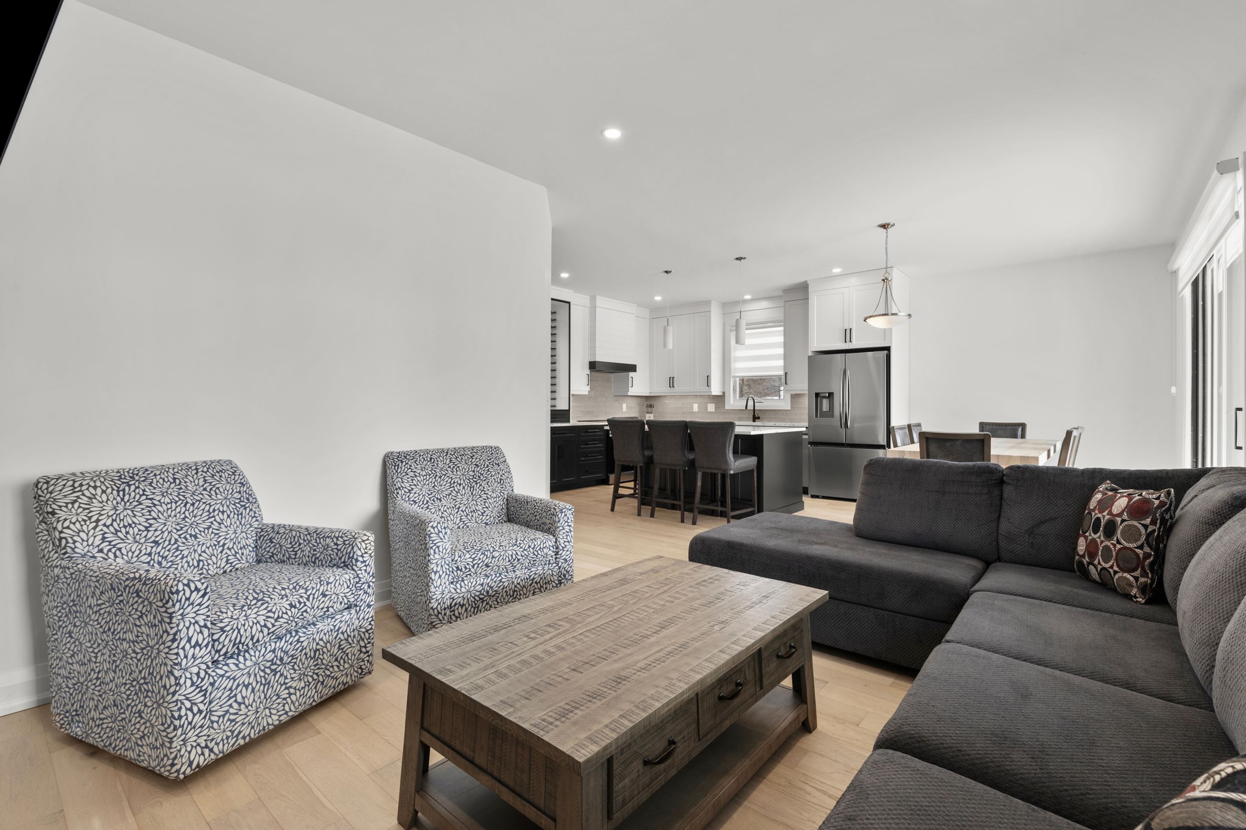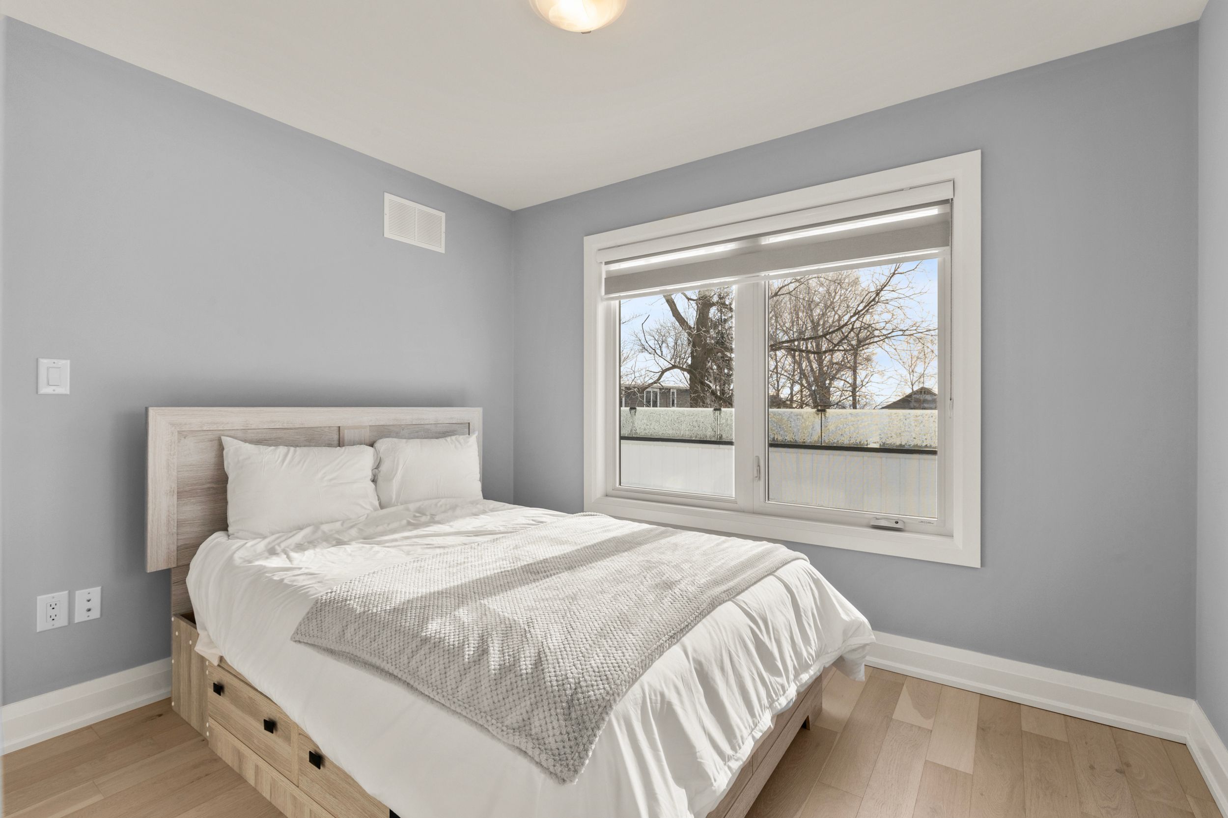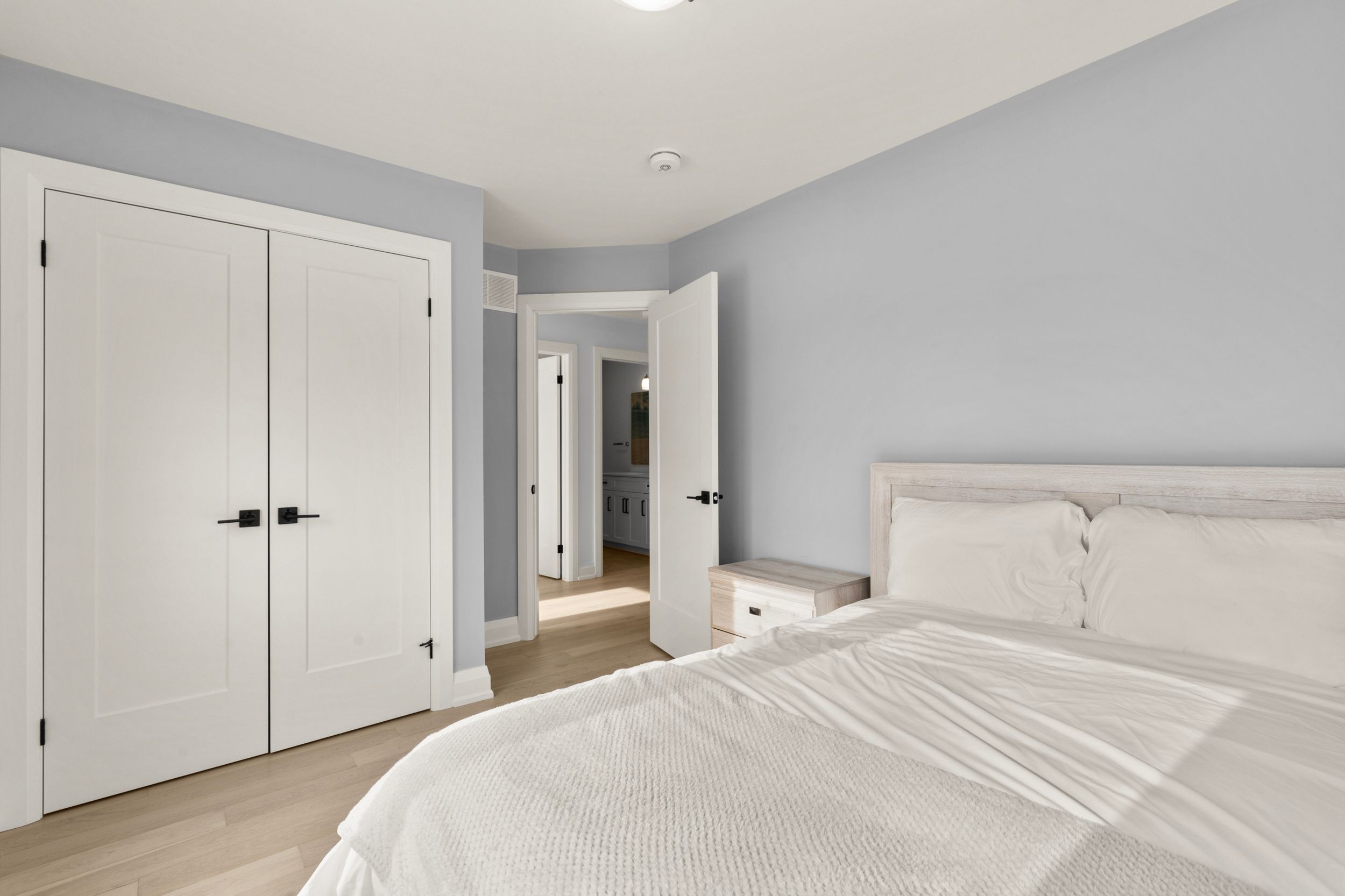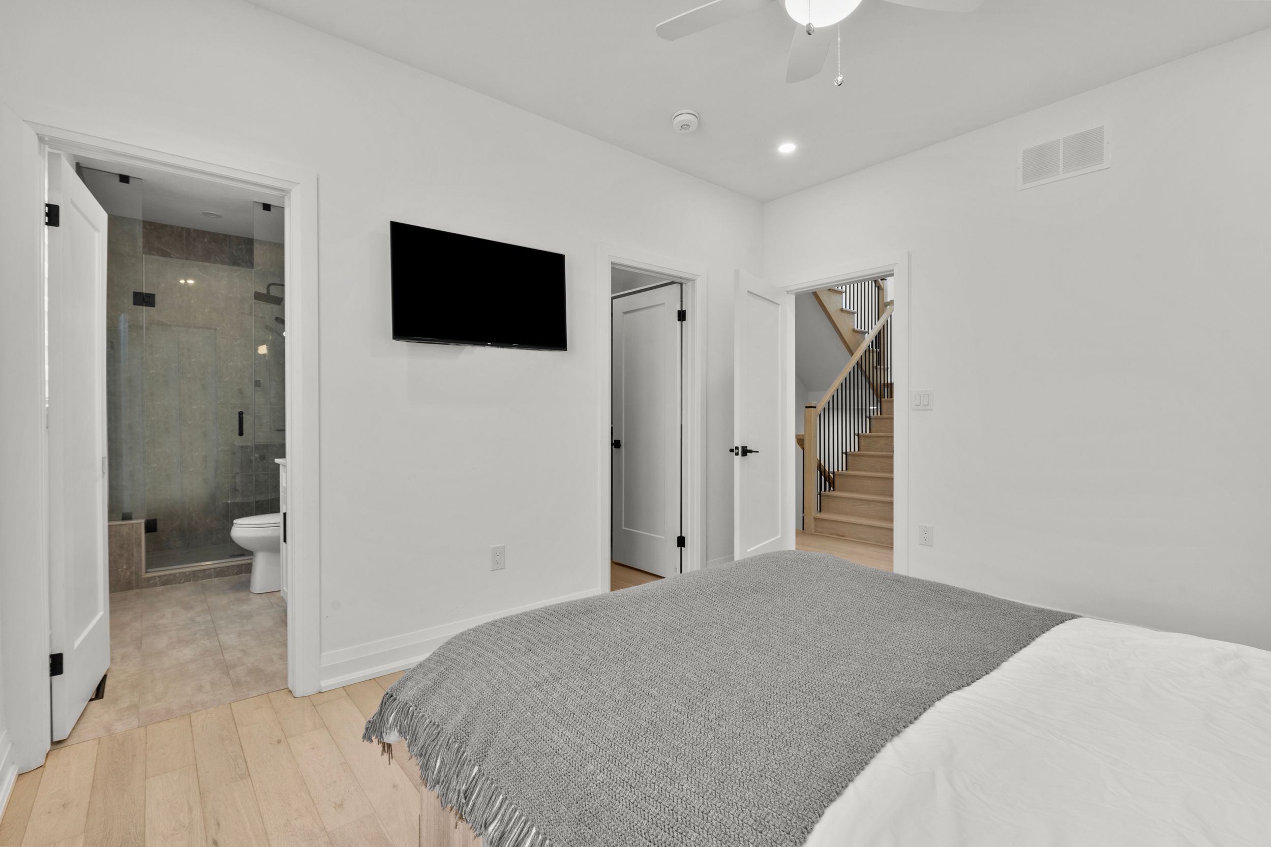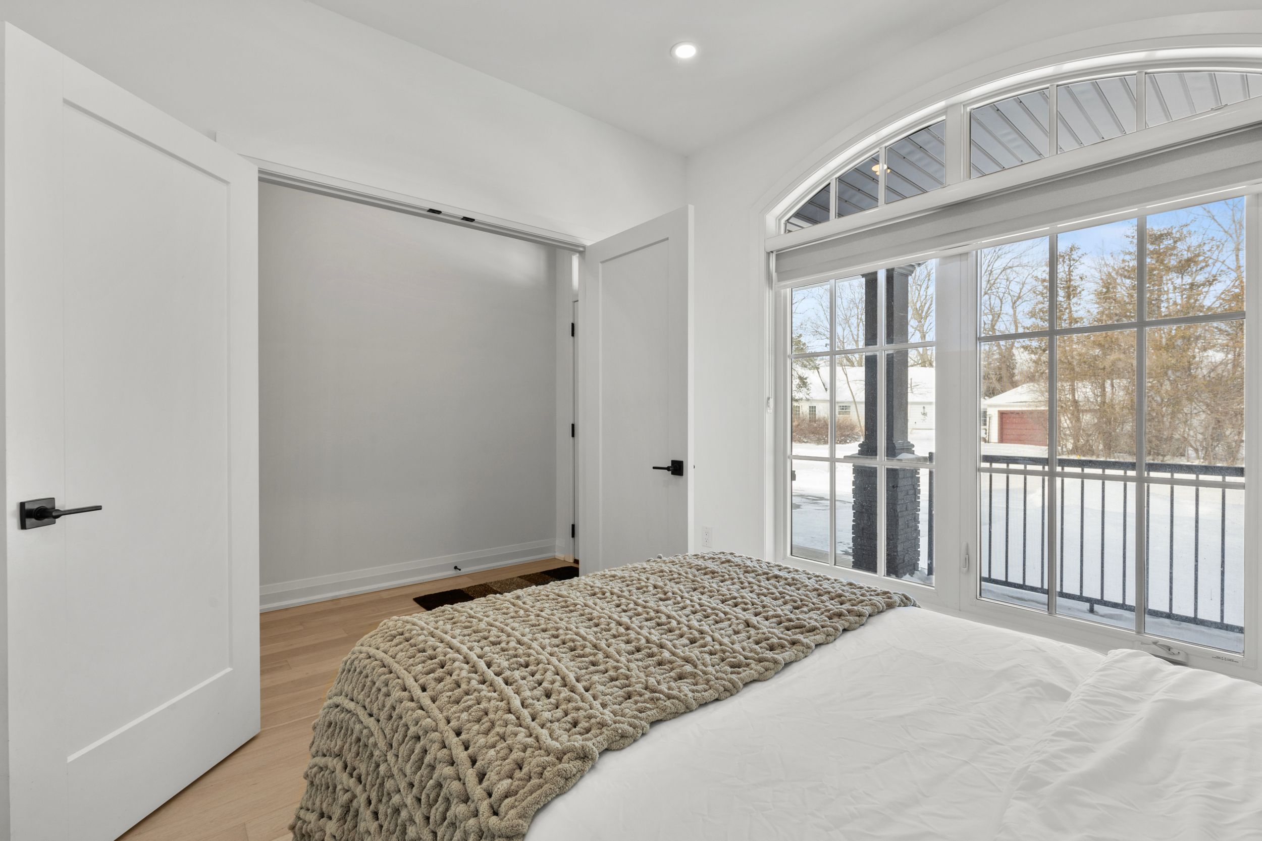 Experience effortless lakeside living in this beautifully designed bungaloft, where modern style meets relaxed comfort just steps from the Lake Erie waterfront. The classic black-and-white exterior with board-and-batten detailing makes a striking first impression, enhanced by an attached garage and inviting covered front porch. Inside, white oak hardwood floors and abundant natural light create a warm, airy feel throughout the open-concept living space. The designer kitchen is a true showpiece, featuring floor-to-ceiling cabinetry, quartz countertops, and a statement wine wrack. Expansive patio doors lead directly to the back deck, with stairs connecting to the upper balcony-ideal for seamless indoor-outdoor entertaining. Unwind in the inviting living room with a cozy gas fireplace, or take the gathering outside. The thoughtfully designed layout offers four bedrooms and 2.5 bathrooms, including a serene primary suite with a sleek ensuite. The loft level is a standout, offering two additional bedrooms, a full bathroom, and access to an expansive terrace-perfect for hosting under the stars, enjoying lake breezes, or taking in peaceful evening views. With multiple outdoor living spaces, lake views from the rear, and an unfinished basement ready for your vision, this home delivers a refined yet relaxed lifestyle just moments from the water.