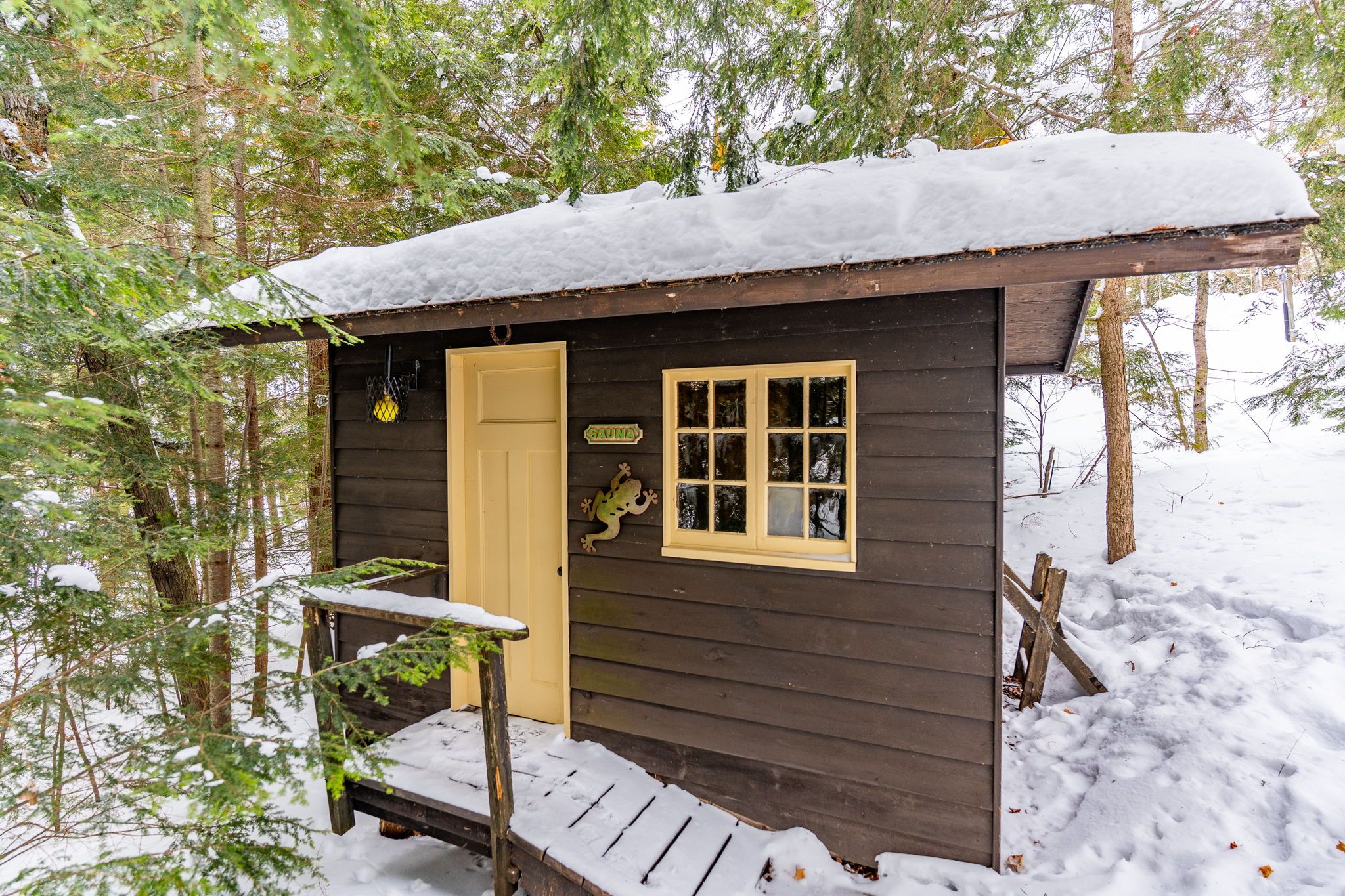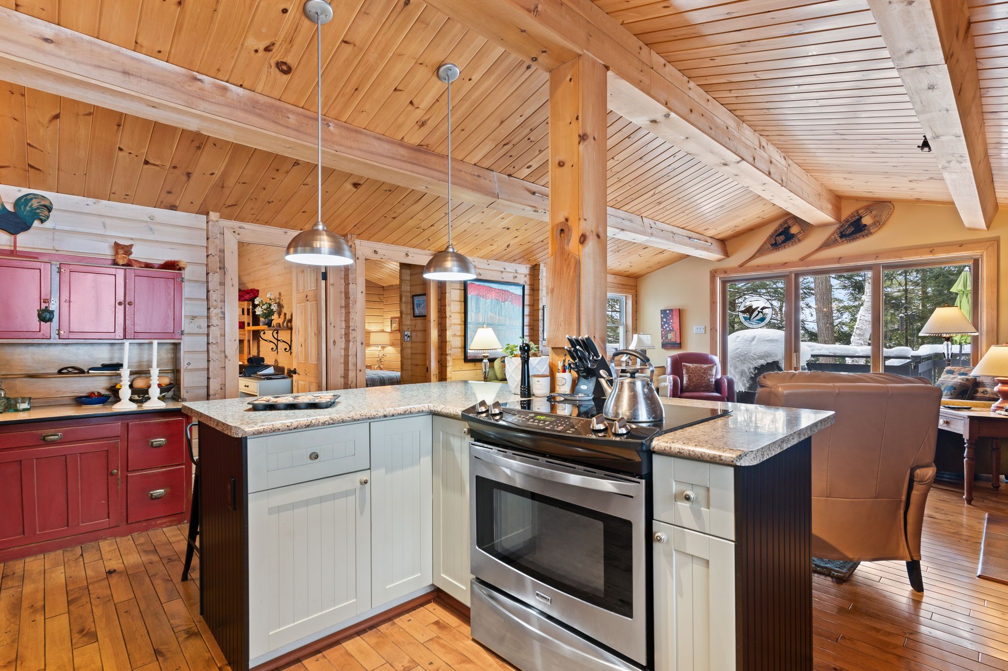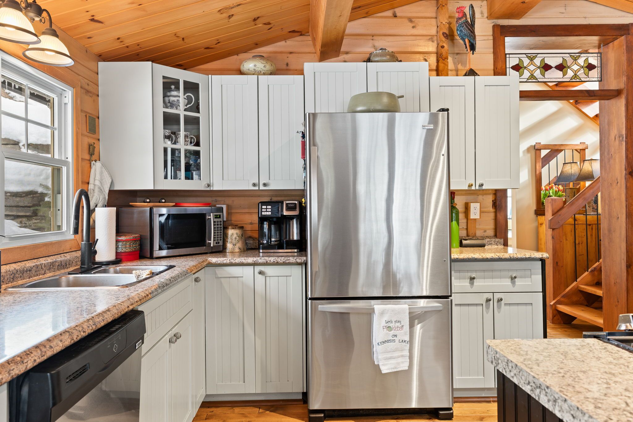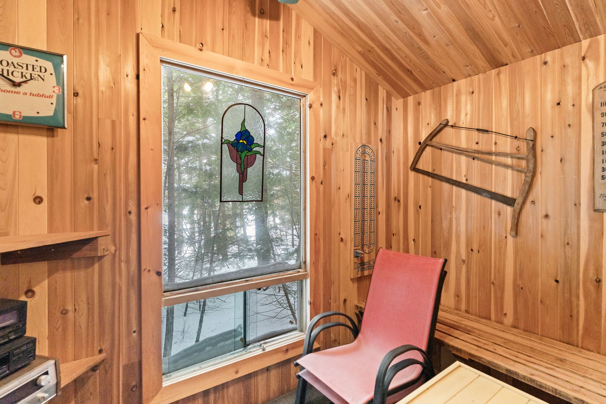 Welcome to a hidden gem on one of Haliburton's most sought-after lakes Little Kennisis part of a desirable two-lake chain known for its pristine water and natural beauty. This four-season waterfront retreat offers coveted south-western exposure, filling the home with warm natural light and breathtaking views. Inside, the open-concept living and kitchen area showcases soaring pine ceilings, beautiful BC distressed Alderwood flooring, and a cozy woodstove creating the perfect cottage-meets-home atmosphere. The kitchen features a large island, stainless steel appliances, and excellent entertaining space, while the separate dining room is bright and inviting with lots of windows. The main floor offers two spacious bedrooms and a full 4-piece bathroom. Upstairs, escape to your private primary suite complete with a spa-inspired ensuite featuring heated floors, a soaker tub, and a walk-in glass shower. Convenient second-floor laundry adds to the thoughtful layout. Recent window upgrades improve energy efficiency and year-round comfort. After a day on the lake, unwind in the separate electric sauna for the ultimate relaxation experience. Outside, the sloping lot leads to a large lakeside deck and 144 feet of sand-and-stone shoreline with deep, crystal-clear water ideal for swimming, boating, and waterfront entertaining. Located beside Haliburton Forest & Wildlife Reserve, enjoy endless year-round outdoor activities. The active Kennisis Lake Association and vibrant marina offer pickleball courts, dining, live entertainment, and a true sense of lake community. Experience the best of Haliburton lake living - privacy, recreation, and natural beauty all in one exceptional property.