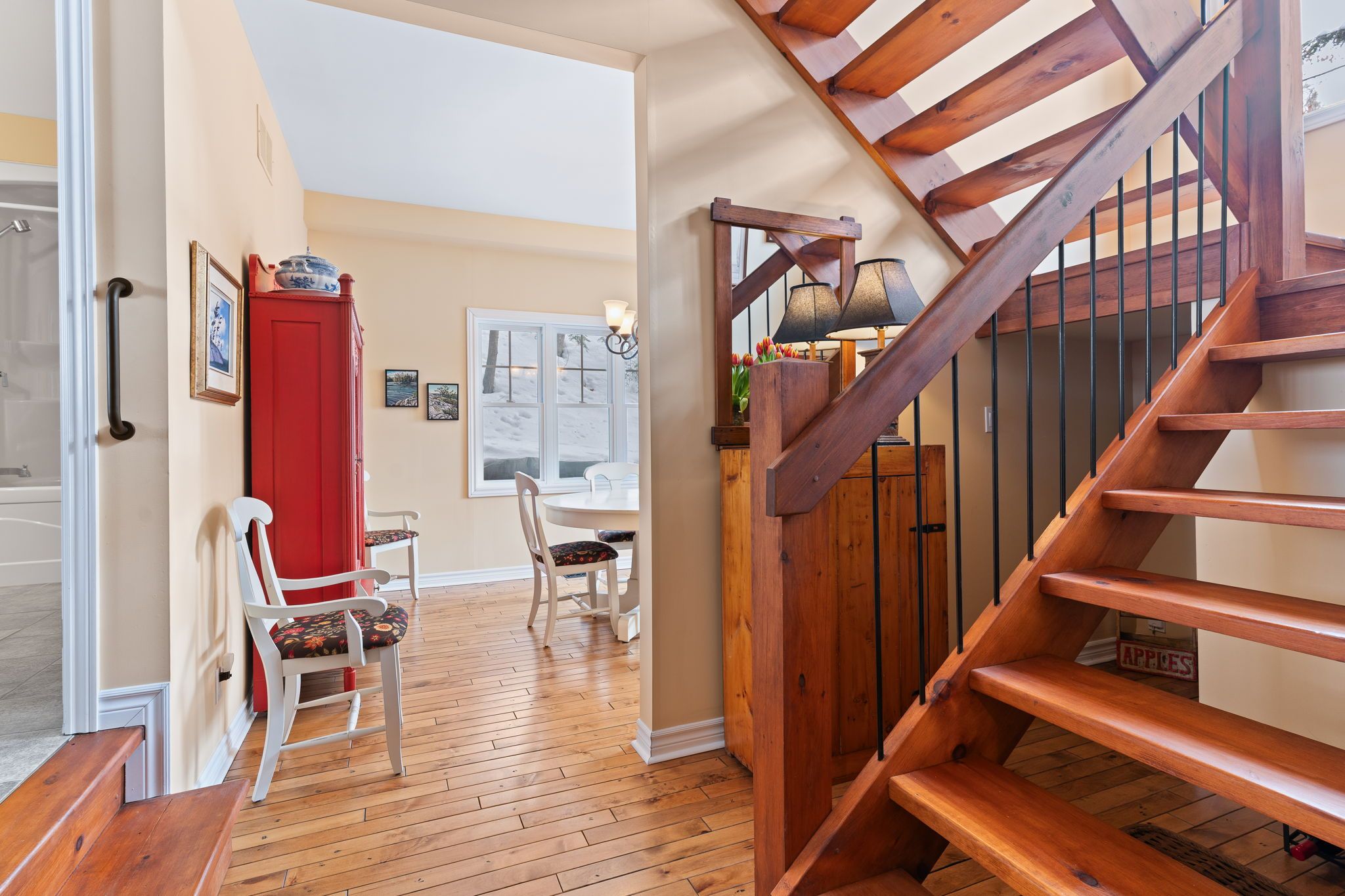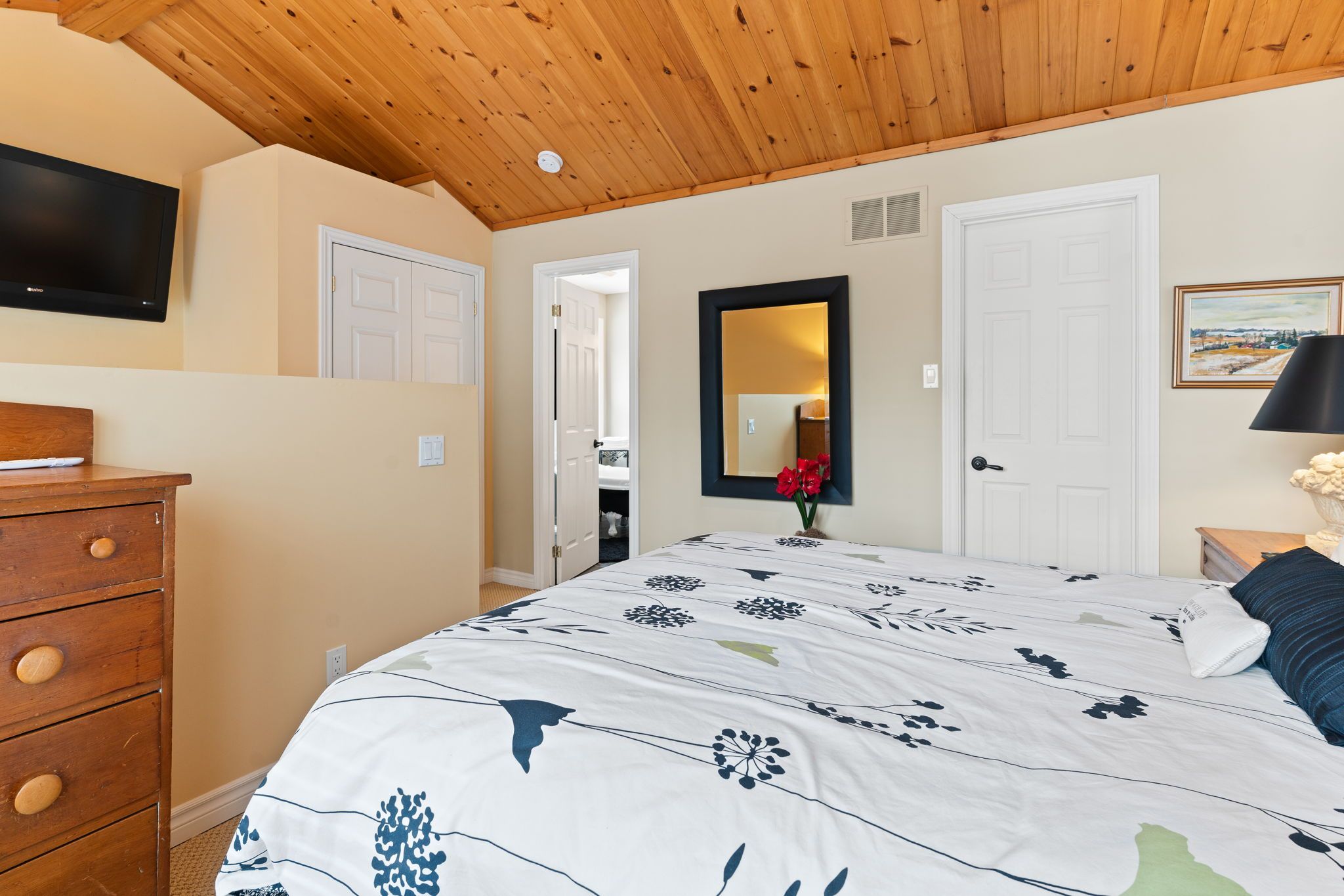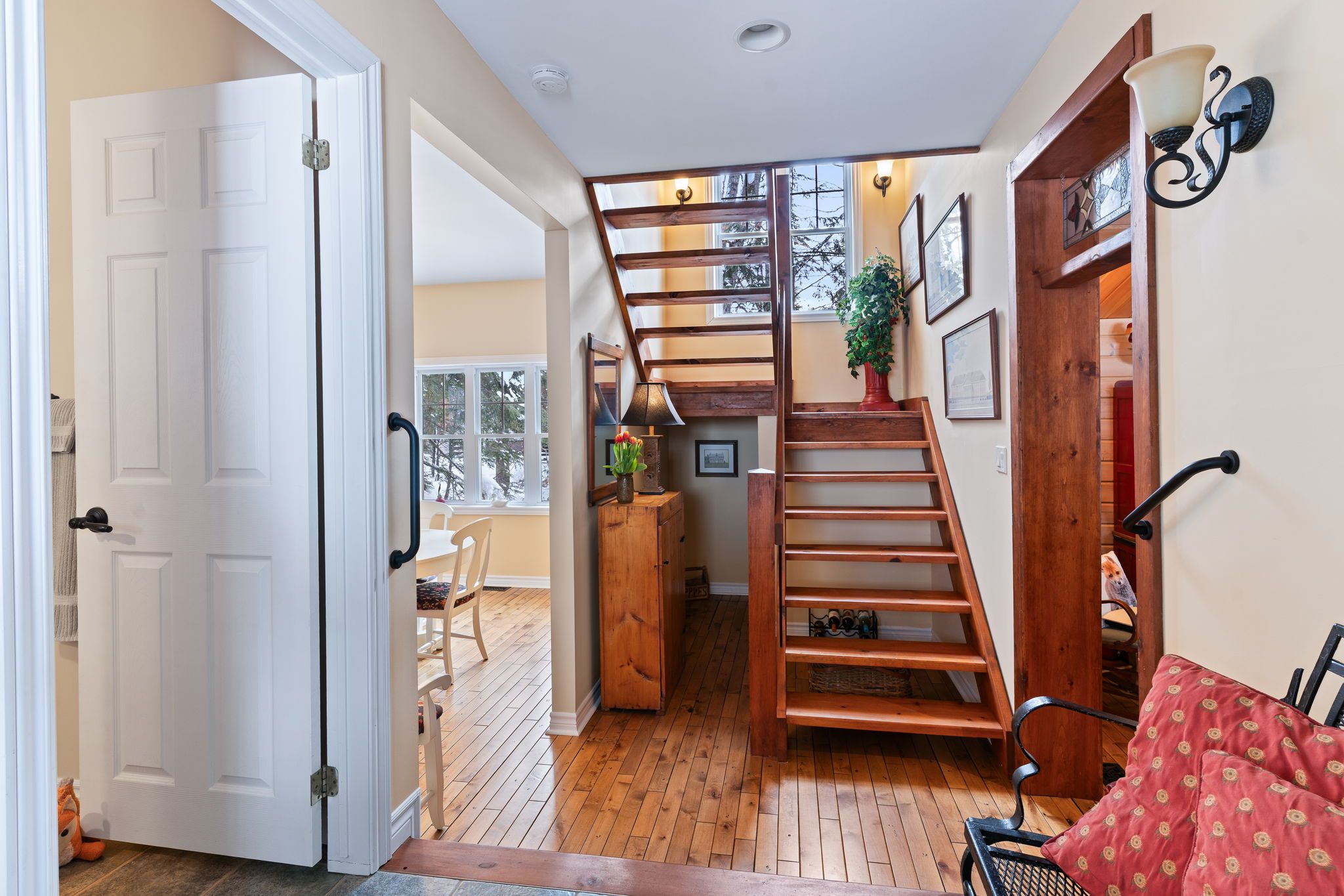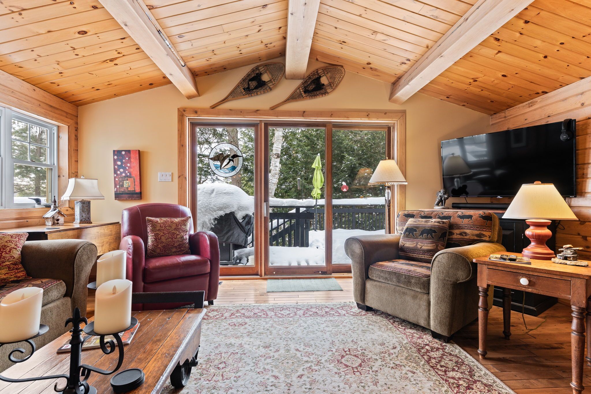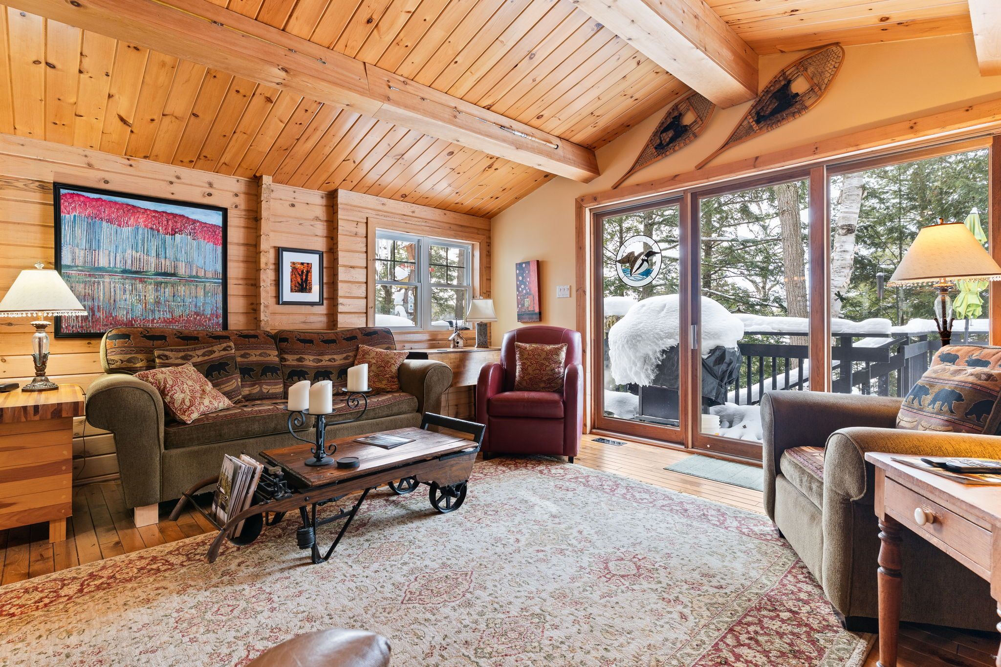 Welcome to a hidden gem on one of Haliburton's most sought-after lakes Little Kennisis part of a desirable two-lake chain known for its pristine water and natural beauty. This four-season waterfront retreat offers coveted south-western exposure, filling the home with warm natural light and breathtaking views. Inside, the open-concept living and kitchen area showcases soaring pine ceilings, beautiful BC distressed Alderwood flooring, and a cozy woodstove creating the perfect cottage-meets-home atmosphere. The kitchen features a large island, stainless steel appliances, and excellent entertaining space, while the separate dining room is bright and inviting with lots of windows. The main floor offers two spacious bedrooms and a full 4-piece bathroom. Upstairs, escape to your private primary suite complete with a spa-inspired ensuite featuring heated floors, a soaker tub, and a walk-in glass shower. Convenient second-floor laundry adds to the thoughtful layout. Recent window upgrades improve energy efficiency and year-round comfort. After a day on the lake, unwind in the separate electric sauna for the ultimate relaxation experience. Outside, the sloping lot leads to a large lakeside deck and 144 feet of sand-and-stone shoreline with deep, crystal-clear water ideal for swimming, boating, and waterfront entertaining. Located beside Haliburton Forest & Wildlife Reserve, enjoy endless year-round outdoor activities. The active Kennisis Lake Association and vibrant marina offer pickleball courts, dining, live entertainment, and a true sense of lake community. Experience the best of Haliburton lake living - privacy, recreation, and natural beauty all in one exceptional property.