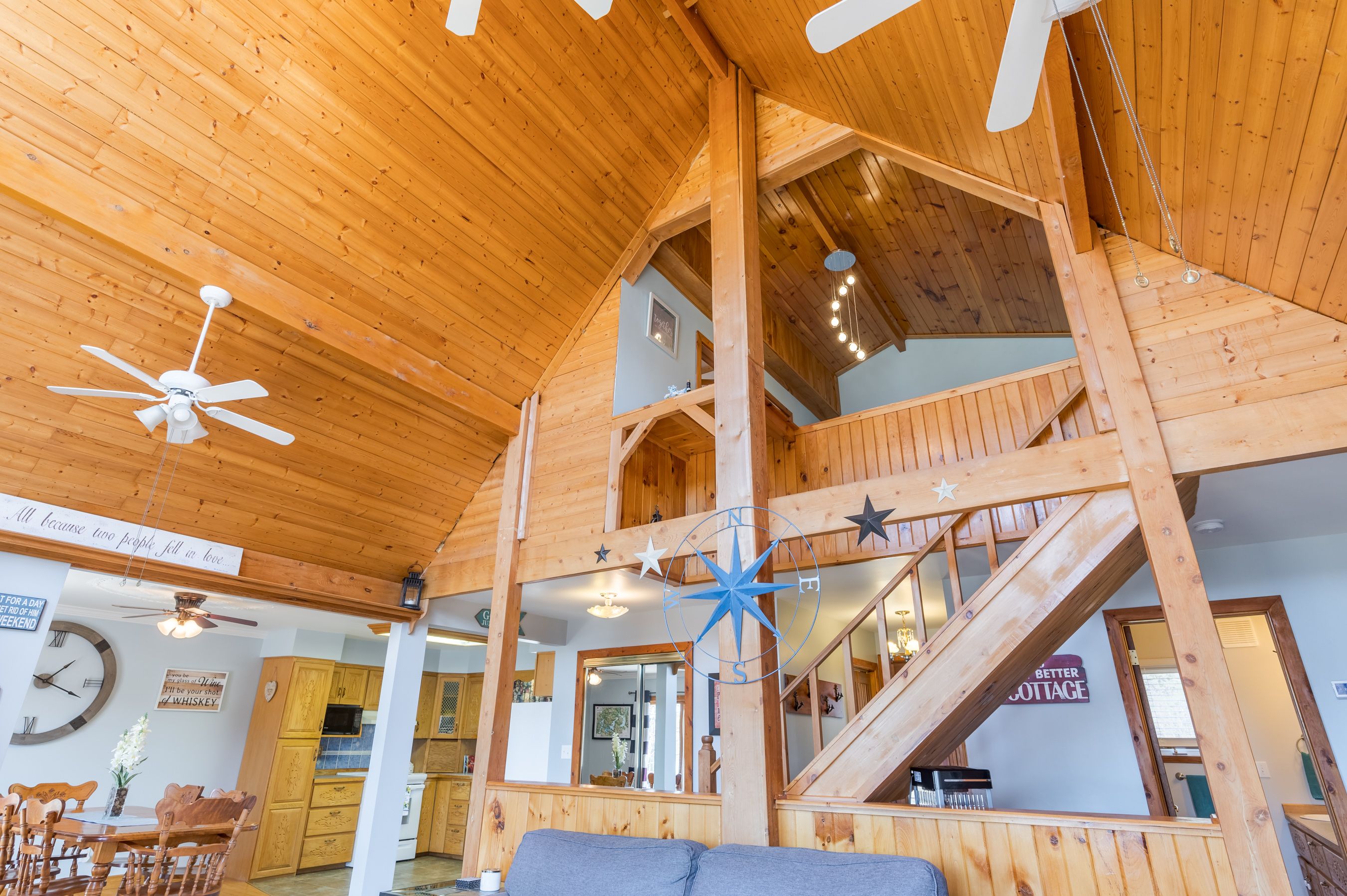 Welcome to your ideal lakeside retreat nestled on a spacious level lot with 132ft of shoreline along the shores of Baptiste Lake. This versatile property presents a charming 4 season home or cottage boasting an inviting open-concept layout that seamlessly integrates the kitchen, dining and living areas, all offering breathtaking views of the lake. On the main floor, discover 2 cozy bedrooms, a well appointed 5-piece bathroom, and convenient laundry facilities. Ascend to the master bedroom loft, where panoramic vistas of the lake await, 3-piece ensuite, a walk-in closet, and ample storage space. The property is equipped with 100 amp service to the garage, ensuring ample power for all your needs. A newly laid circle gravel driveway provides parking for up to 20 vehicles, while a lean-to garage extension offers additional storage options. Delight in waterfront living with the newly installed 50+ft floating dock, perfect for launching aquatic adventures. Additional features include a brand-new barn style shed for storing outdoor equipment, raised garden beds equipped with a convenient watering system and the ultimate privacy amidst stunning water views, captivating sunsets, and abundant wildlife. Enjoy the myriad recreational opportunities afforded by the expansive Baptiste Lake, renowned for its excellent fishing and ideal for boating enthusiasts. The property's proximity to vast stretches of crown land invites exploration via ATV or snowmobile, while hunting enthusiasts will appreciate the abundant wildlife in the surrounding area. Whether you seek tranquil relaxation or thrilling outdoor adventures, this lakeside haven offers the perfect blend of comfort, convenience and natural beauty.