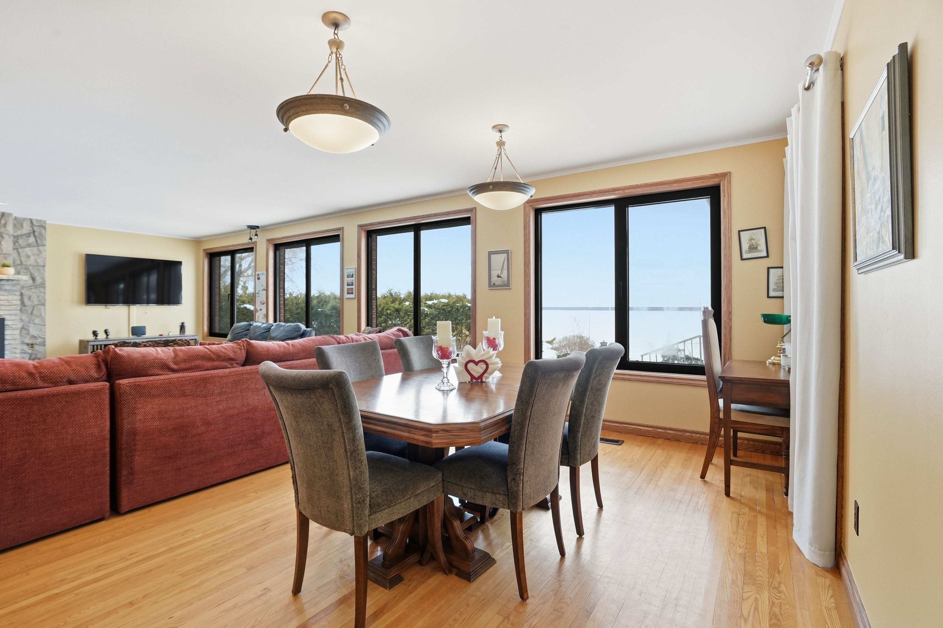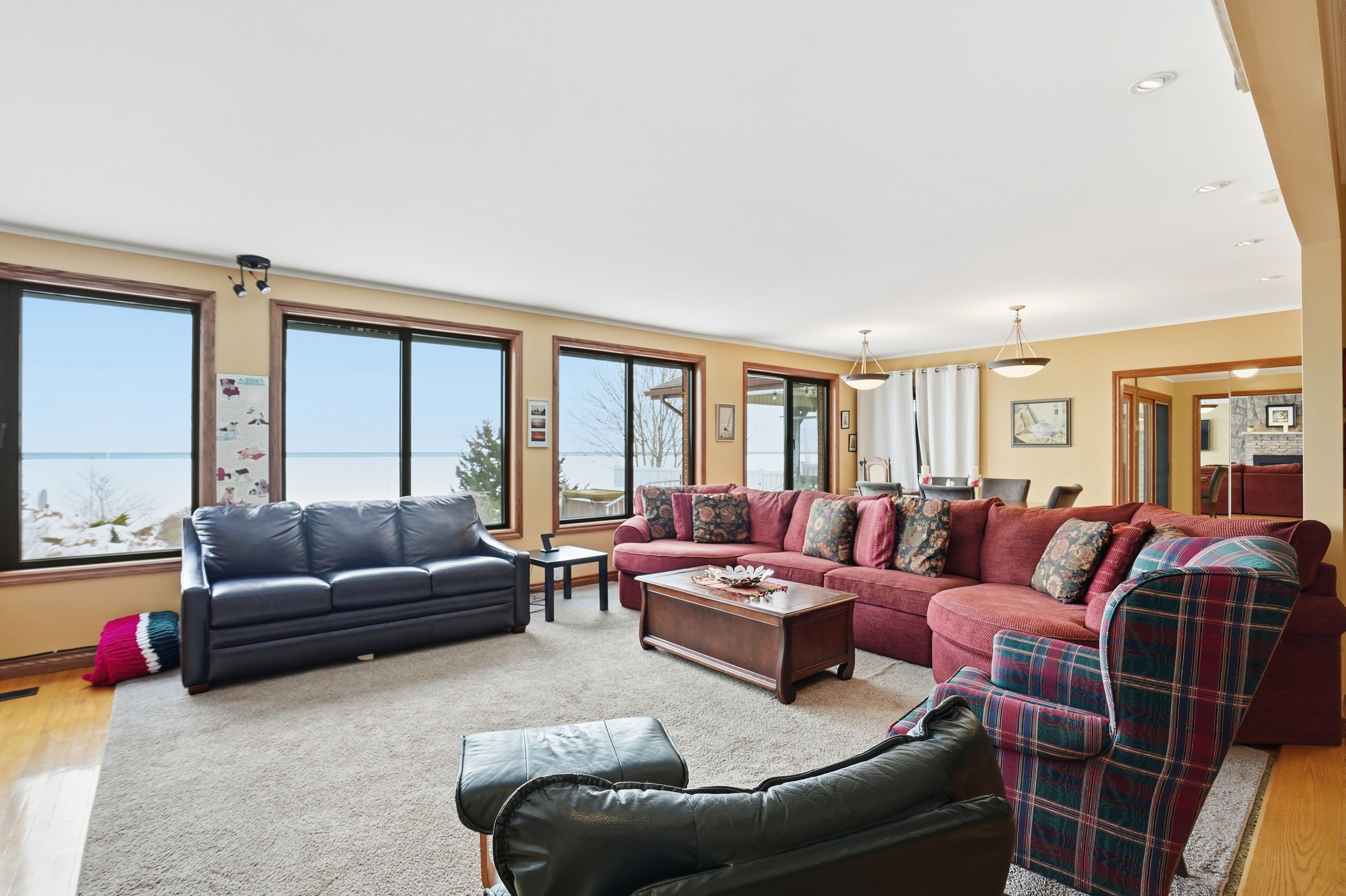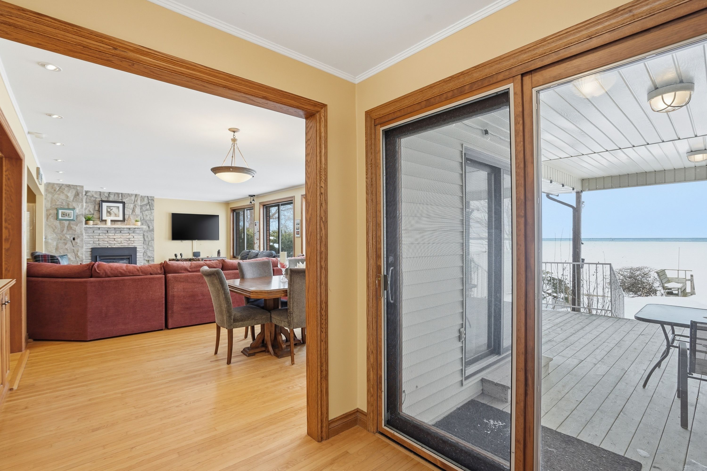 Welcome to waterfront living at its finest on Firelane 14D. This exceptional 2+1 bedroom lakefront home offers approximately 1,500 sq ft above grade with breathtaking, unobstructed views across Lake Ontario-where, on clear days, you can see the Toronto skyline in the distance. From vibrant summer sunsets to dramatic winter ice formations, the setting is truly spectacular year-round. Designed to maximize natural light and lake views, the bright open-concept main floor is flooded with sunshine through expansive panoramic windows, complete with electric blackout storm shutters for comfort and security. Hardwood flooring runs throughout the entire main level, creating warmth and continuity. The spacious living room showcases stunning water views and flows into a separate formal dining room-ideal for entertaining. The eat-in kitchen offers ample cabinetry and workspace, along with a casual dining area perfect for everyday meals overlooking the lake. The main floor features two generously sized bedrooms, each with its own private ensuite. The primary bedroom includes a 4-piece ensuite, while the second bedroom offers a 3-piece ensuite-providing excellent comfort and privacy for family or guests. The fully finished lower level, complete with a separate entrance, adds incredible versatility with an additional bedroom, 3-piece bath, and flexible living space ideal for extended family, guests, a home office, or recreation area. Outdoors, multiple deck areas and professional landscaping create beautiful spaces to relax or entertain. Enjoy swimming, kayaking, boating, and peaceful walks along nearby conservation lands and the 8 Mile Creek biosphere. A 1.5-car attached garage with inside entry, separate shed, concrete driveway, and parking for five vehicles complete the package. Tucked away on a exclusive maintained road yet minutes to the QEW, Niagara-on-the-Lake, St. Catharines, wineries, schools, and shopping-this is waterfront living without compromise.
