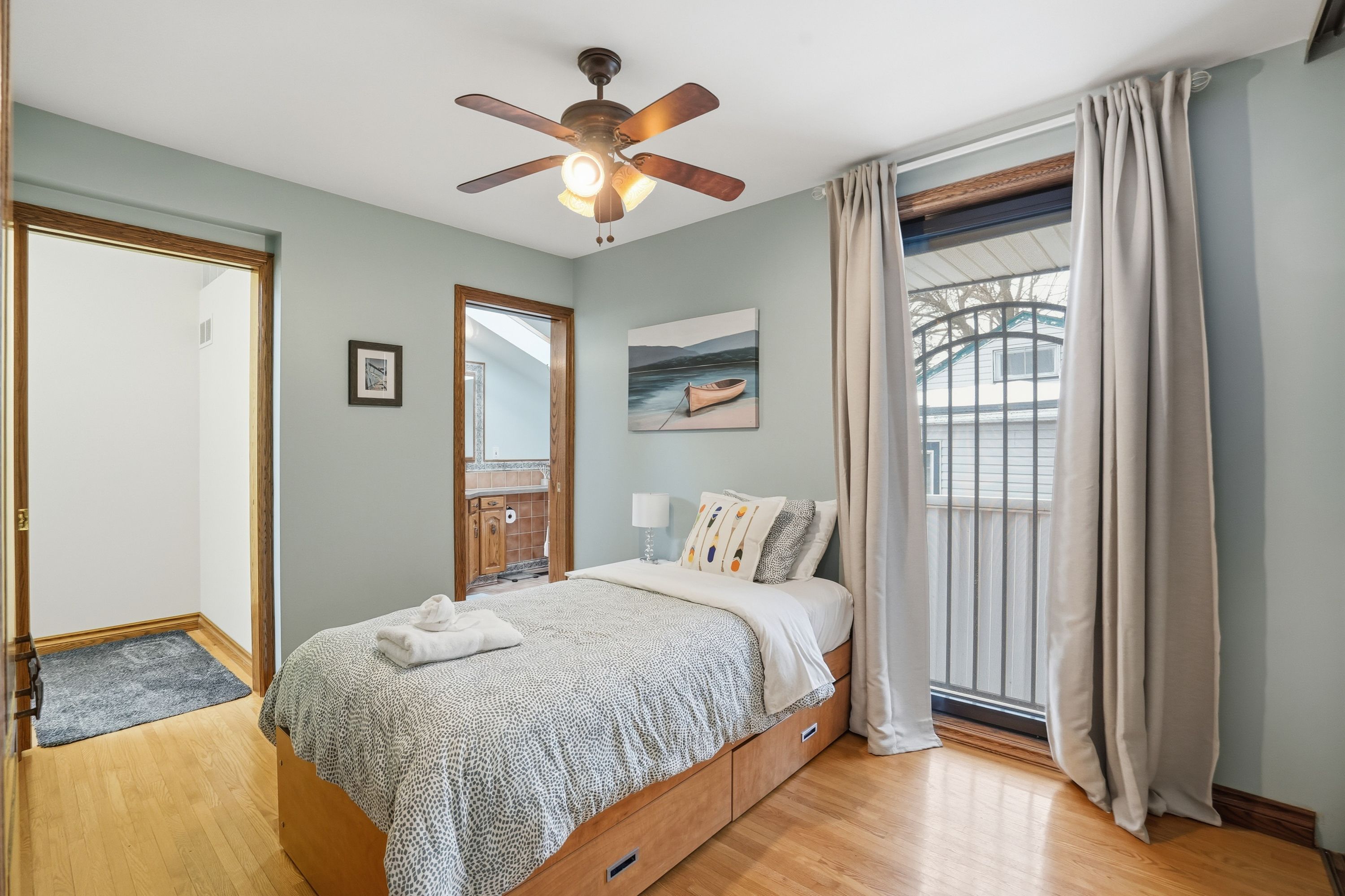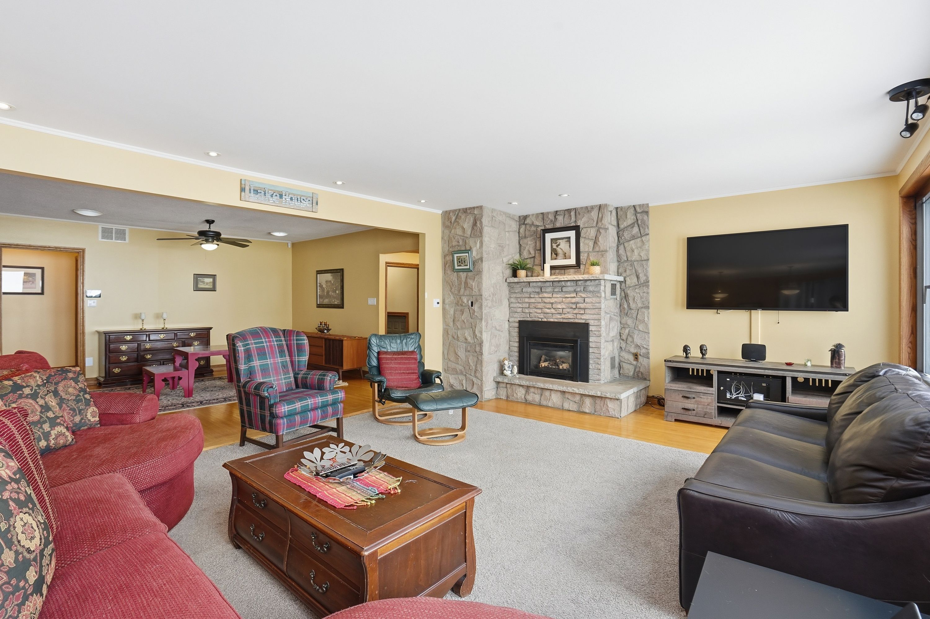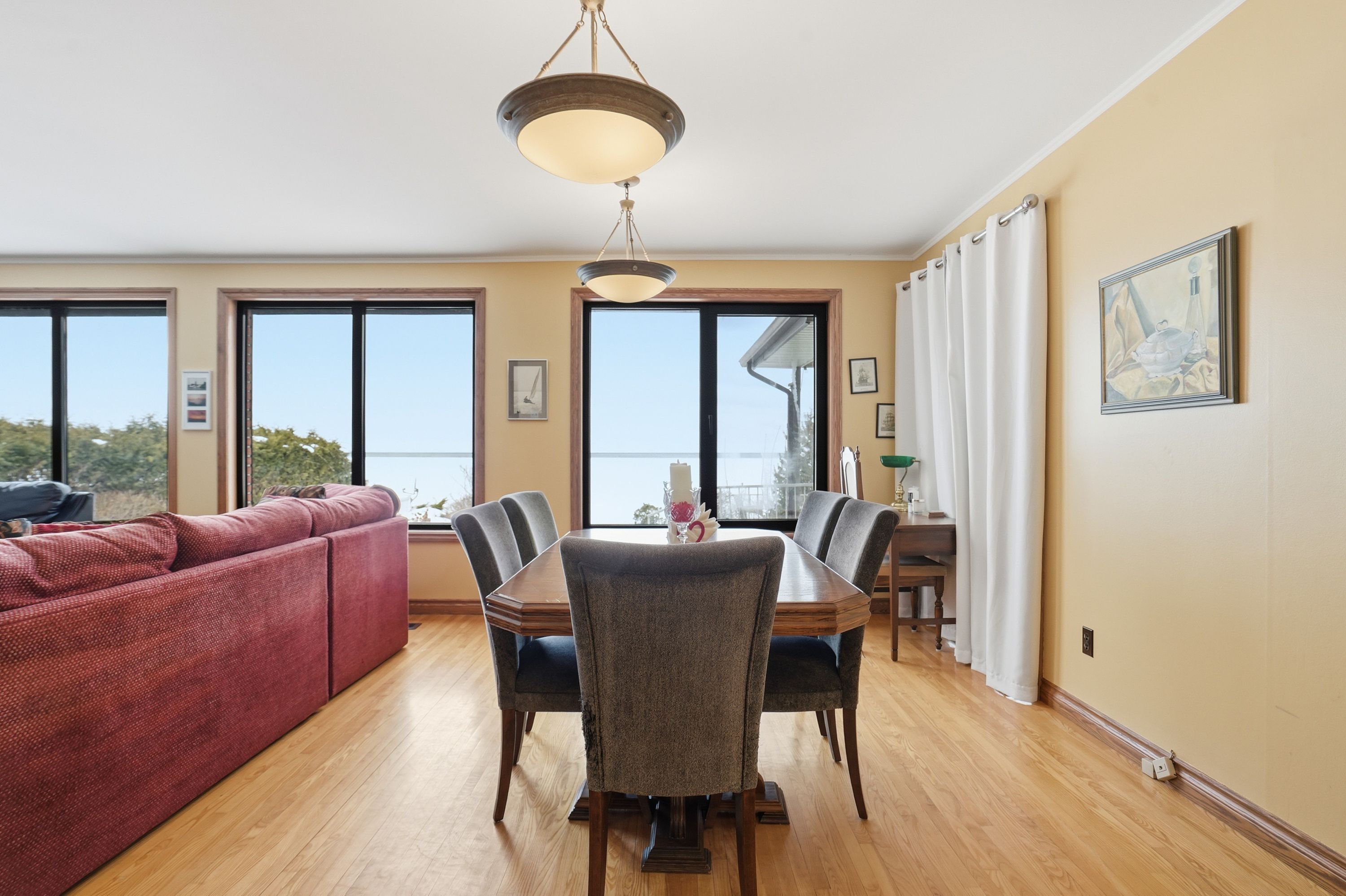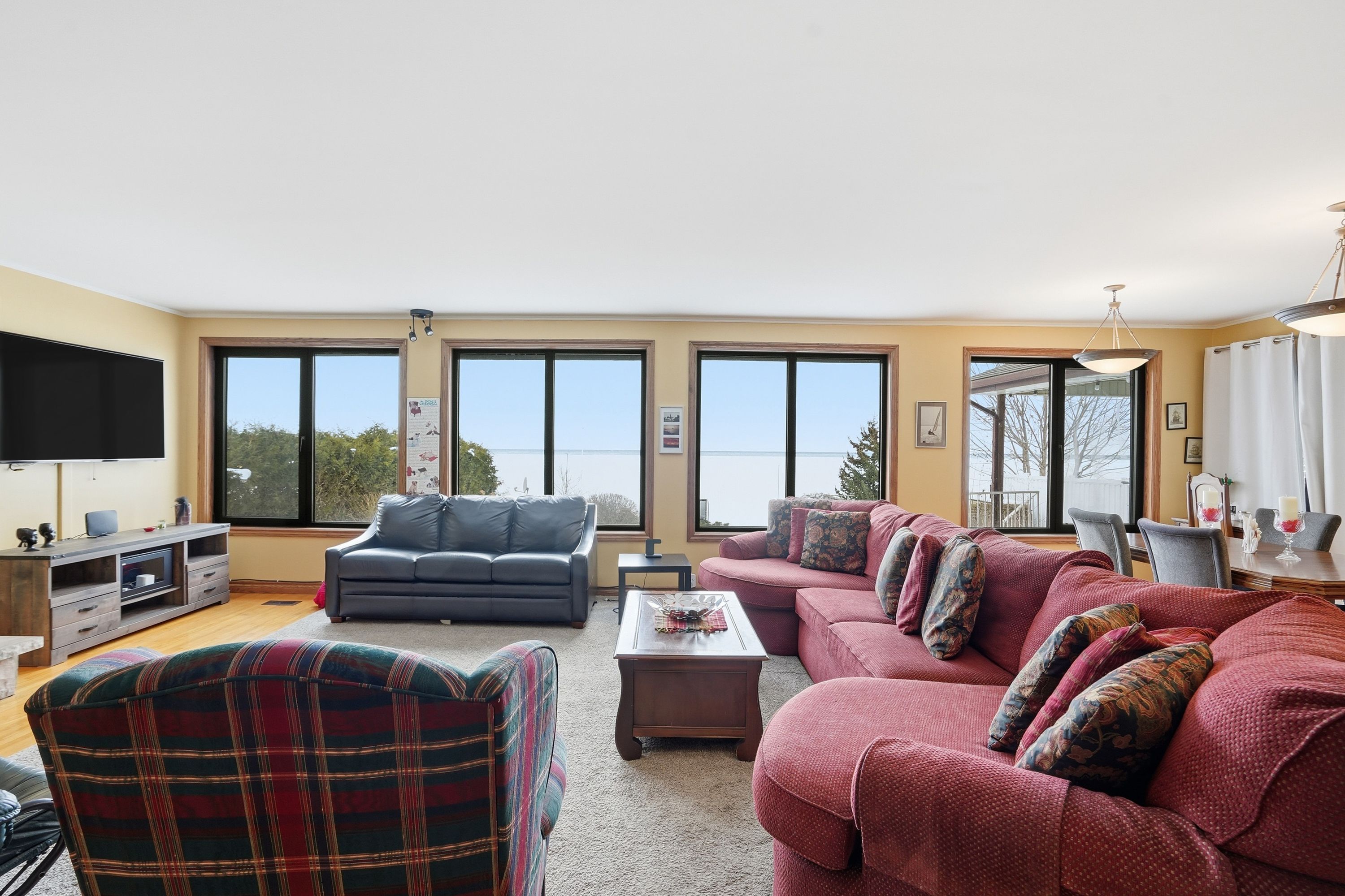Welcome to waterfront living at its finest on Firelane 14D. This exceptional 2+1 bedroom lakefront home offers approximately 1,500 sq ft above grade with breathtaking, unobstructed views across Lake Ontario-where, on clear days, you can see the Toronto skyline in the distance. From vibrant summer sunsets to dramatic winter ice formations, the setting is truly spectacular year-round. Designed to maximize natural light and lake views, the bright open-concept main floor is flooded with sunshine through expansive panoramic windows, complete with electric blackout storm shutters for comfort and security. Hardwood flooring runs throughout the entire main level, creating warmth and continuity. The spacious living room showcases stunning water views and flows into a separate formal dining room-ideal for entertaining. The eat-in kitchen offers ample cabinetry and workspace, along with a casual dining area perfect for everyday meals overlooking the lake. The main floor features two generously sized bedrooms, each with its own private ensuite. The primary bedroom includes a 4-piece ensuite, while the second bedroom offers a 3-piece ensuite-providing excellent comfort and privacy for family or guests. The fully finished lower level, complete with a separate entrance, adds incredible versatility with an additional bedroom, 3-piece bath, and flexible living space ideal for extended family, guests, a home office, or recreation area. Outdoors, multiple deck areas and professional landscaping create beautiful spaces to relax or entertain. Enjoy swimming, kayaking, boating, and peaceful walks along nearby conservation lands and the 8 Mile Creek biosphere. A 1.5-car attached garage with inside entry, separate shed, concrete driveway, and parking for five vehicles complete the package. Tucked away on a exclusive maintained road yet minutes to the QEW, Niagara-on-the-Lake, St. Catharines, wineries, schools, and shopping-this is waterfront living without compromise.