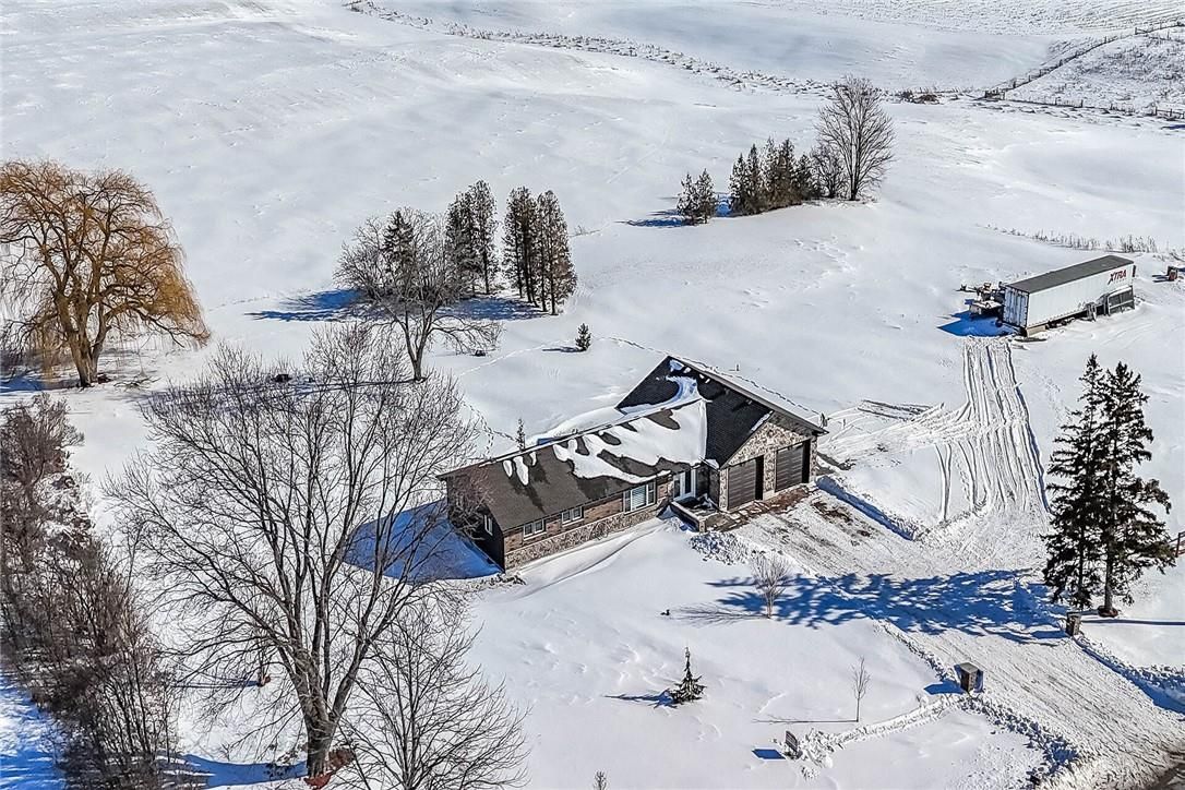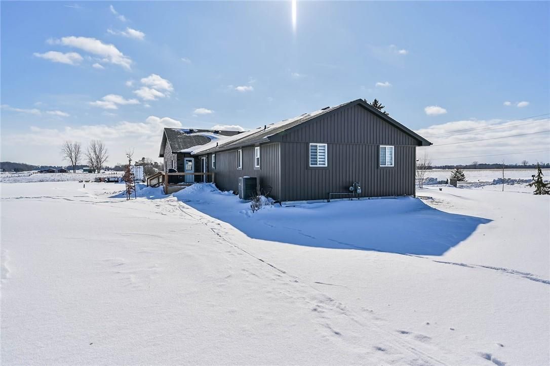 Discover this private "Country Retreat" surrounded by calming farm fields highlighted w/beautifully renovated bungalow, owned by prof. brick/stone mason, where skillful workmanship is evidenced by stunning stone/brick façade covering the original dwelling & large 2020 addition incs 28'x36' attached garage offering scissor truss, hoist worthy, ceiling & 2 insulated 10'x10' RU garage doors w/hi-end side openers. The sprawling "Estate" style home is positioned handsomely on 1.95ac manicured lot offering desired location less than 5-10 min commute to Pt Dover, Pt Ryerse & Simcoe in-route to popular destination villages & towns dotting Lake Erie Golden South Coast. Impressive paver stone double driveway, passing thru stone entry pillars, extends to stylish stone walkway leading to front door accessing grand foyer introducing over 1,500sf of chicly appointed interior highlighted w/stunning open concept living room, gorgeous new custom kitchen sporting in-vogue white cabinetry, granite countertops, SS appliances & dining area enjoying patio door WO to 16'x12' entertainment deck incs rear garage entry. The opulent edifice has been completely gutted back to studs in 2020 - then insulated, drywalled & complimented w/luxury vinyl flooring, pot lighted ceilings & completed w/freshly painted neutral décor. Main level design continues past modern 4pc bath enhanced w/quartz vanity, tiled tub & shower surround - on to N-wing primary bedroom, sizeable guest bedroom & spacious laundry room (formerly bedroom). Large multi-purpose room, ftrs drywalled perimeter walls, highlights 1,500sf open & airy lower level incs versatile finished room (under addition), 2 utility rooms & huge storage room. Extras - 200 amp hydro, n/gas furnace w/Hepa fresh air system, AC, roof-2020, 173ft drilled well-2023, peroxide UV purification, 45ft van storage trailer & septic system. Approved drawings & permits for 1480sf residential addition available. Blending Executive Life-style with Rural Tranquility.