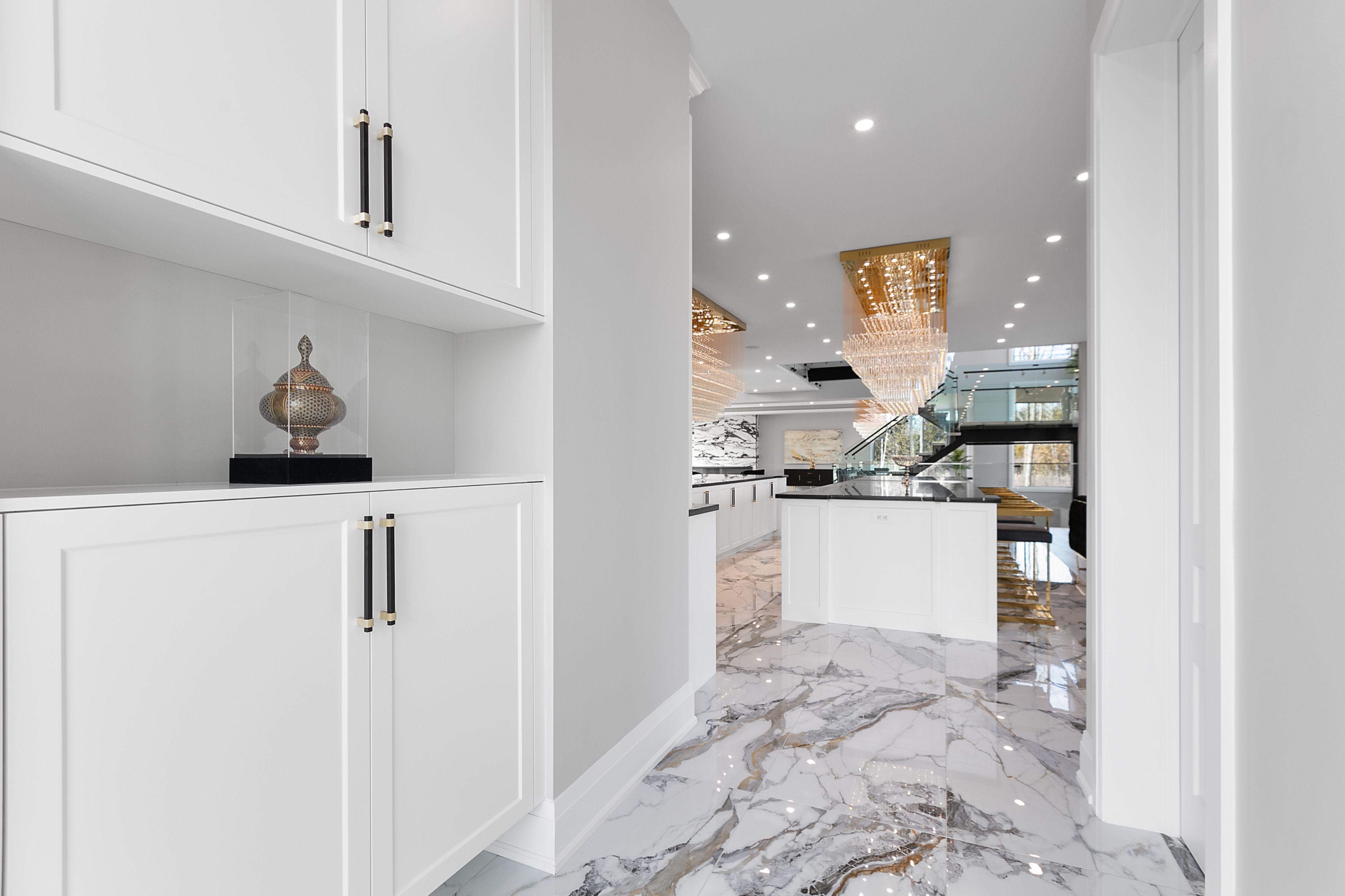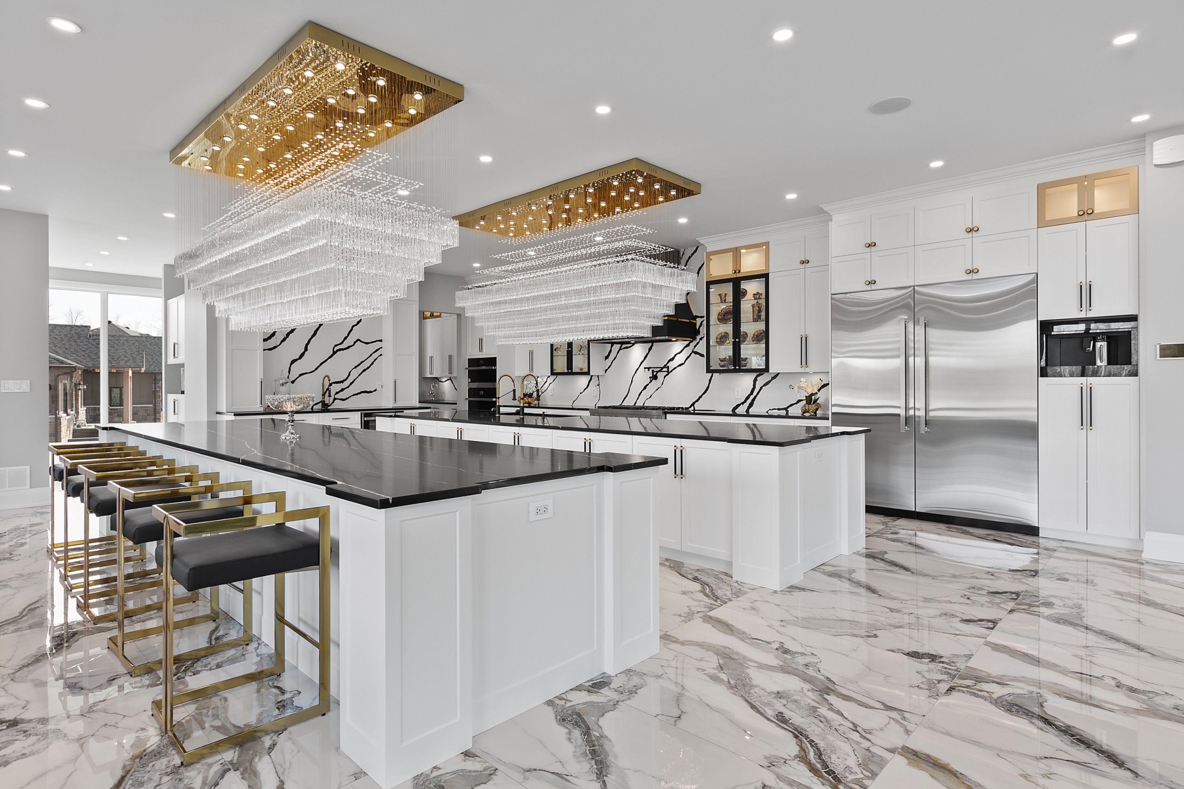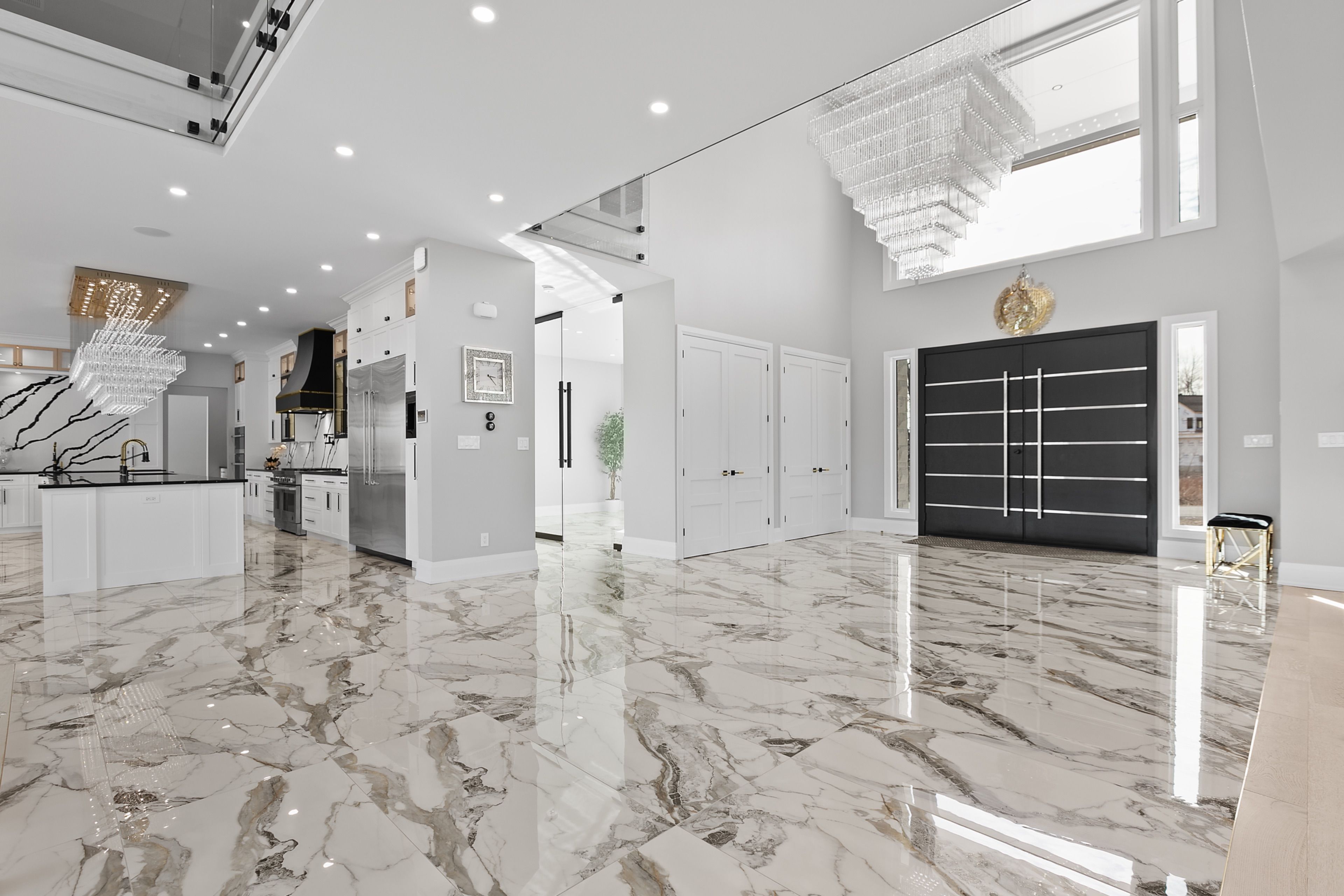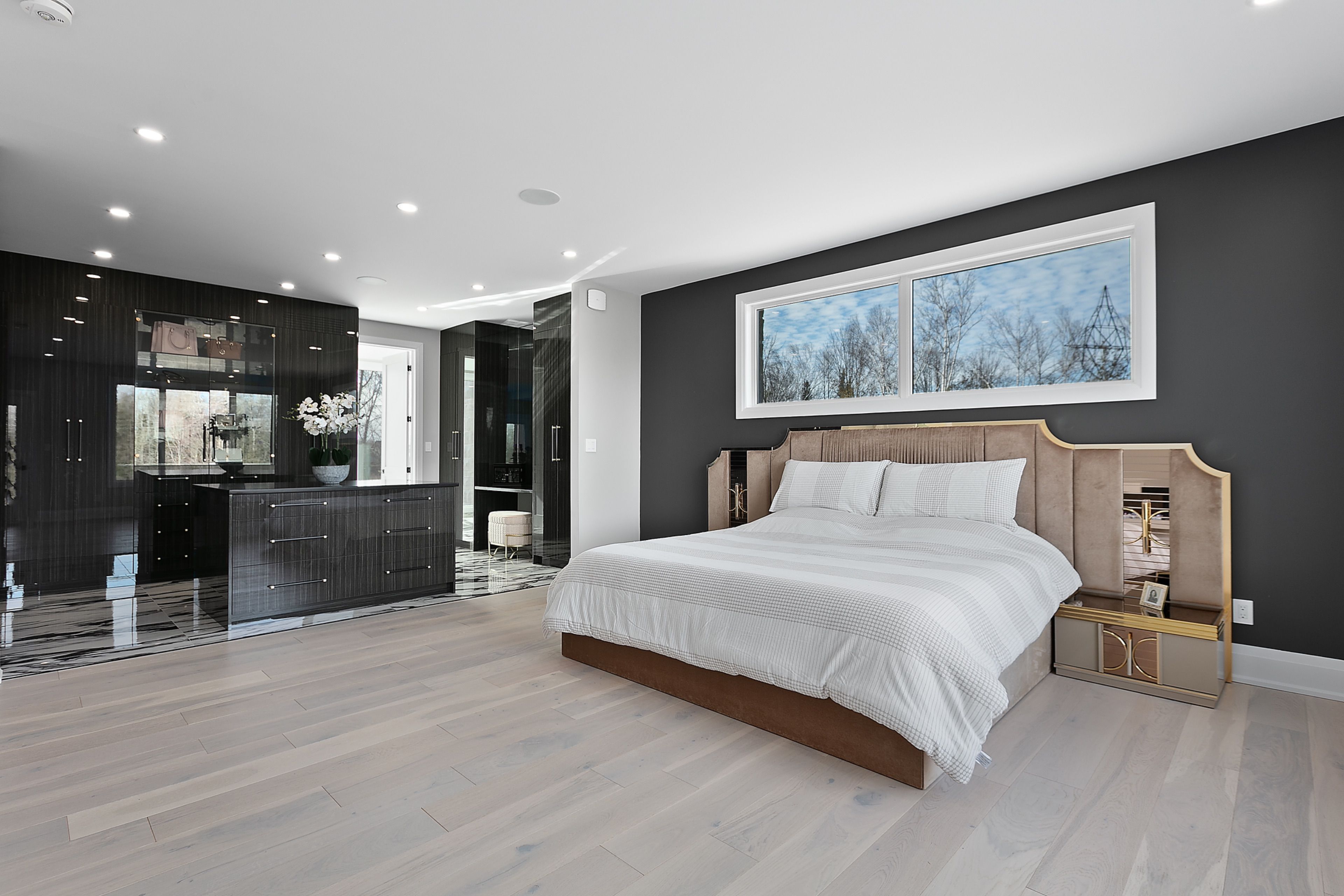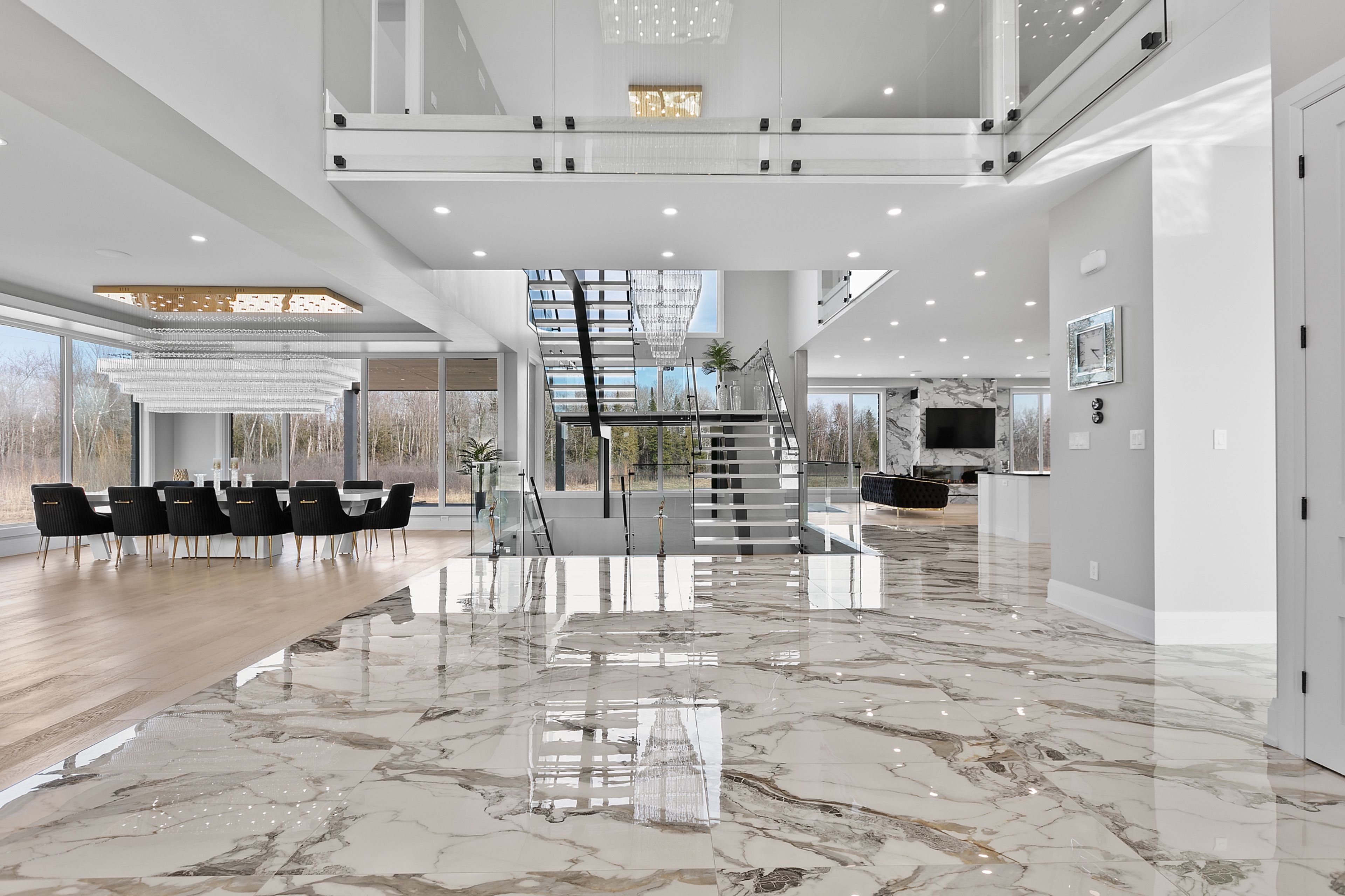 WATERFRONT LUXURY MASTER PIECE ON SUNSET LAKE! Situated on an extraordinary 38,947-square-foot lot with a private sandy beach, this 2023-built waterfront estate offers over 7,400 square feet of refined living space and breathtaking sunset views. Designed for both multi-generational living and grand entertaining, the home can be offered fully furnished at an additional cost, providing a seamless turnkey opportunity. A dramatic 19-foot foyer welcomes you into an elegant main level featuring 10-foot ceilings and an open-concept layout. The chef's kitchen is a true showpiece with two impressive 18-foot islands, premium Jenn-Air appliances, a 6-burner gas range, double ovens, a 36" fridge, separate 30" freezer, coffee bar, private butler's pantry, and walk-in pantry. The kitchen flows seamlessly into the lake-facing great room with fireplace and stunning water views. A ventilated sunroom and glass-enclosed study provide exceptional spaces for relaxation and working from home.The main floor also includes a laundry room, mudroom, full bath with pet wash, and access to a 5-car garage with 15-foot ceilings-ideal for car lifts.Upstairs, a spacious landing opens to a family room. The primary suite features a fireplace, private balcony, and spa-inspired ensuite with a soaking tub and dual sinks. Five additional bedrooms, three full baths, a second laundry room, and an expansive terrace perfect for entertaining complete the level.Outdoor living is exceptional, with multiple balconies, a covered hot tub area with outdoor fireplace, and direct waterfront access from the private sandy beach. The semi-finished basement is pre-wired with plumbing rough-ins, offering endless potential for a gym, theatre, or custom retreat. A rare opportunity to own a true lakeside masterpiece combining luxury, scale, and spectacular natural beauty for creating family memories.