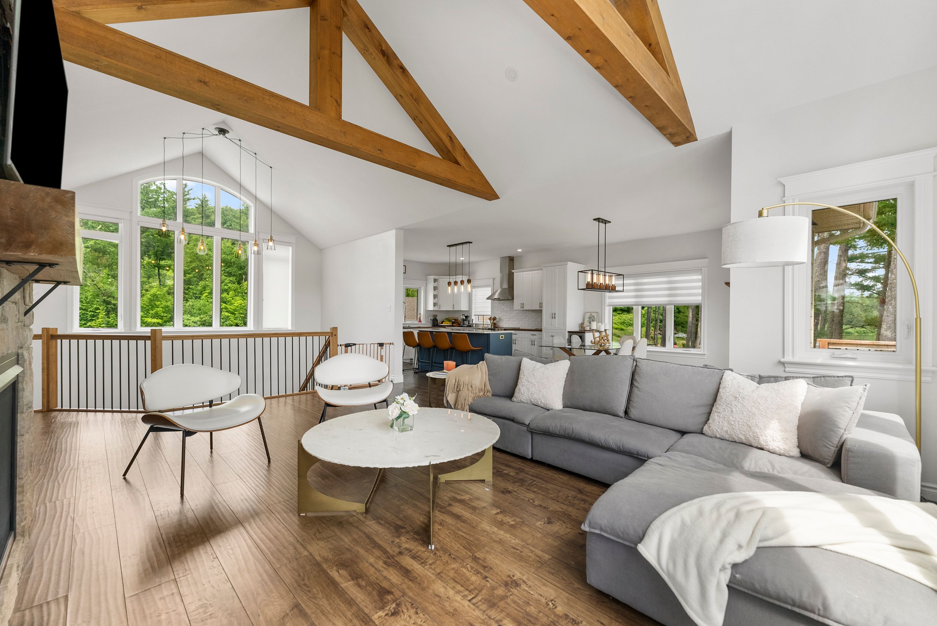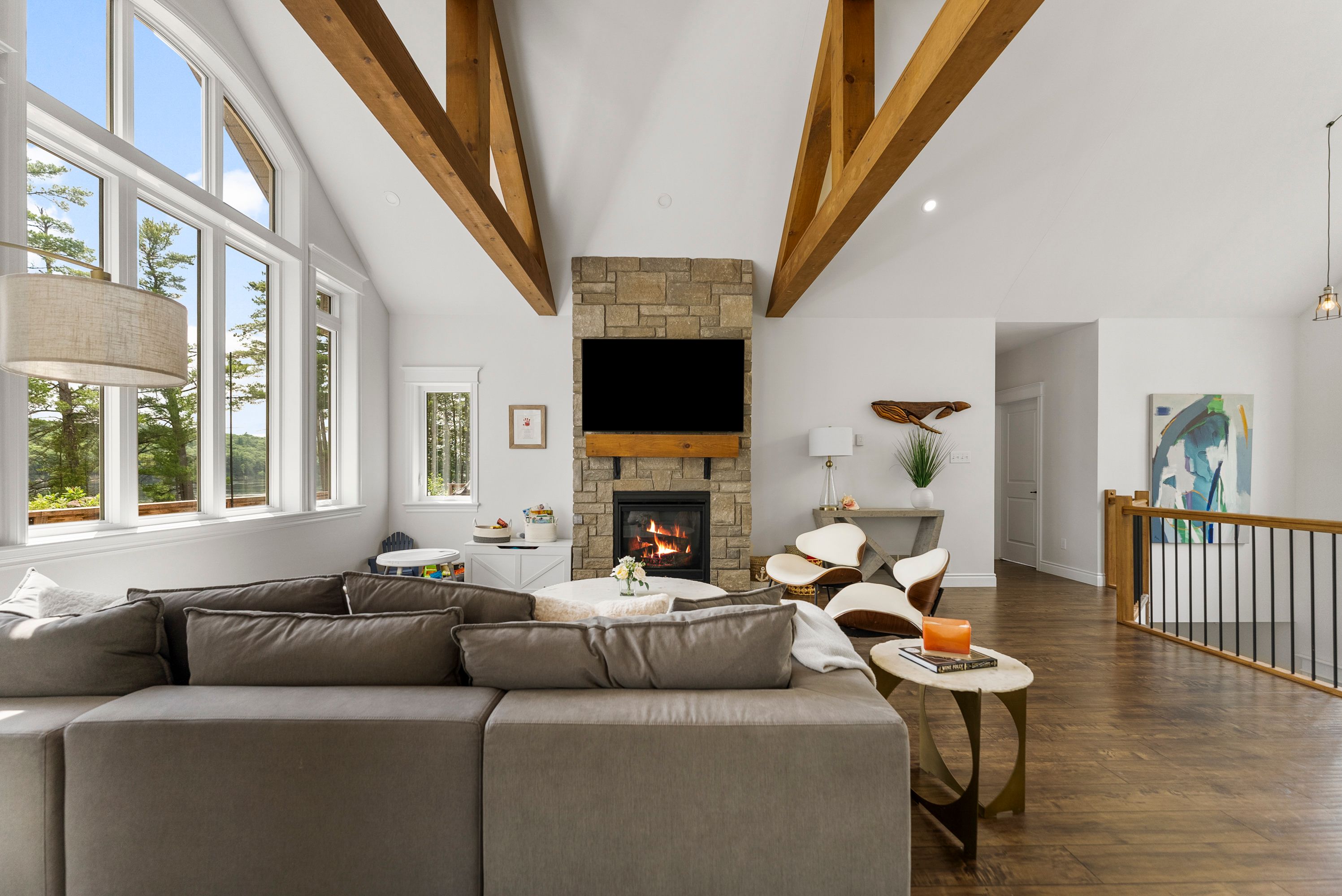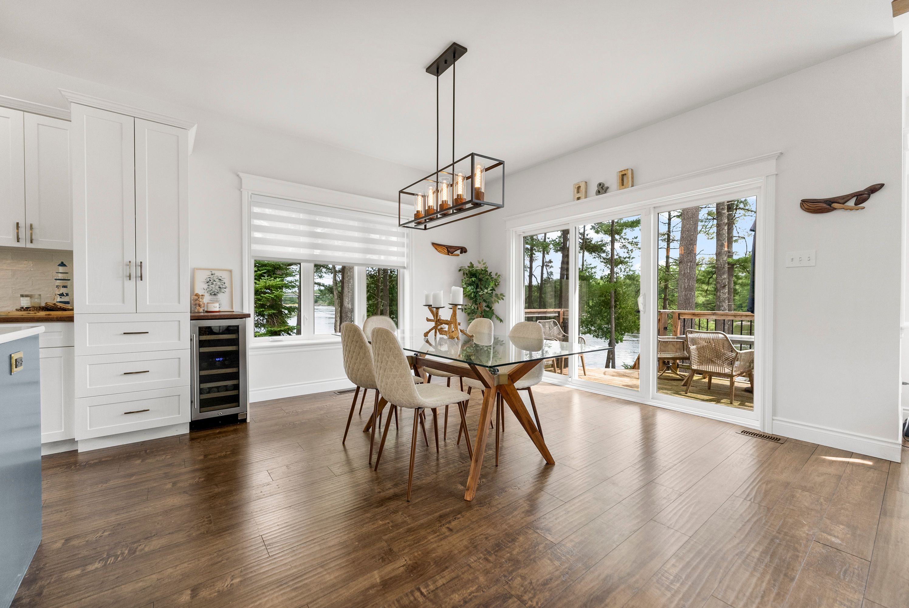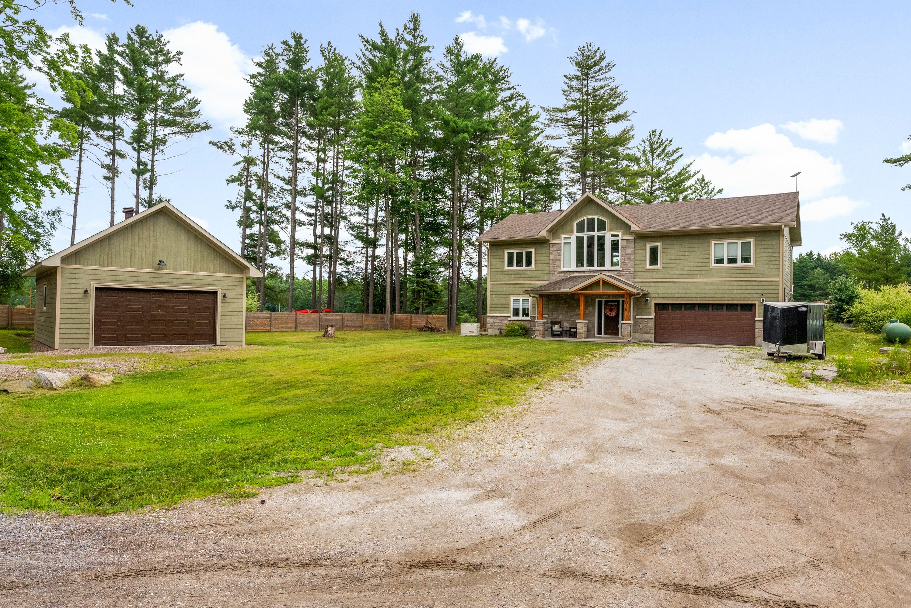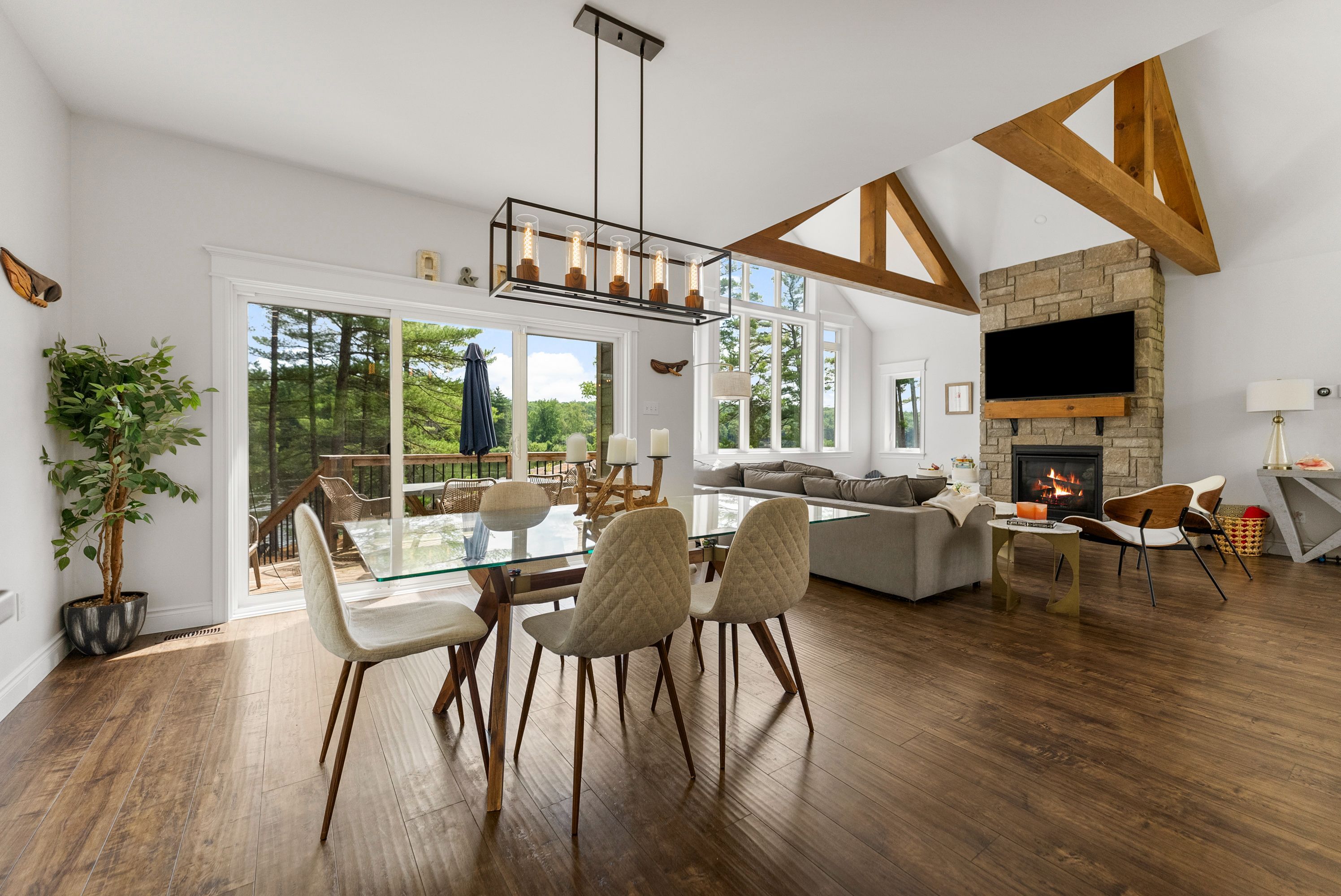 Waterfront living at its finest - welcome to 103 B Carriage Landing on the Ottawa River. Surrounded by mature trees and miles of navigable water to explore, this year-round retreat offers a peaceful, private setting with exceptional fishing, boating, and outdoor recreation right outside your door. Step inside to an impressive two-storey foyer with soaring 20' ceilings and an upper balcony overlooking the grand entrance. The main level features a bright, open-concept kitchen and living area highlighted by vaulted ceilings with exposed beams and expansive windows that fill the space with natural light and showcase the surrounding landscape. The primary suite offers patio doors leading directly to the deck and hot tub - your own private outdoor escape. A walkout basement at ground level enhances the seamless connection between indoor and outdoor living, while the main floor balcony provides the perfect vantage point to relax and take in the tranquil river views. Car enthusiasts and hobbyists will appreciate the attached double garage plus an additional detached double garage, offering exceptional storage and workspace flexibility. Ideally located just minutes from Renfrew and under an hour to Ottawa, this property delivers the perfect balance of waterfront serenity and everyday convenience. Whether you're seeking a weekend getaway or a full-time waterfront residence, this Ottawa River gem truly has it all.