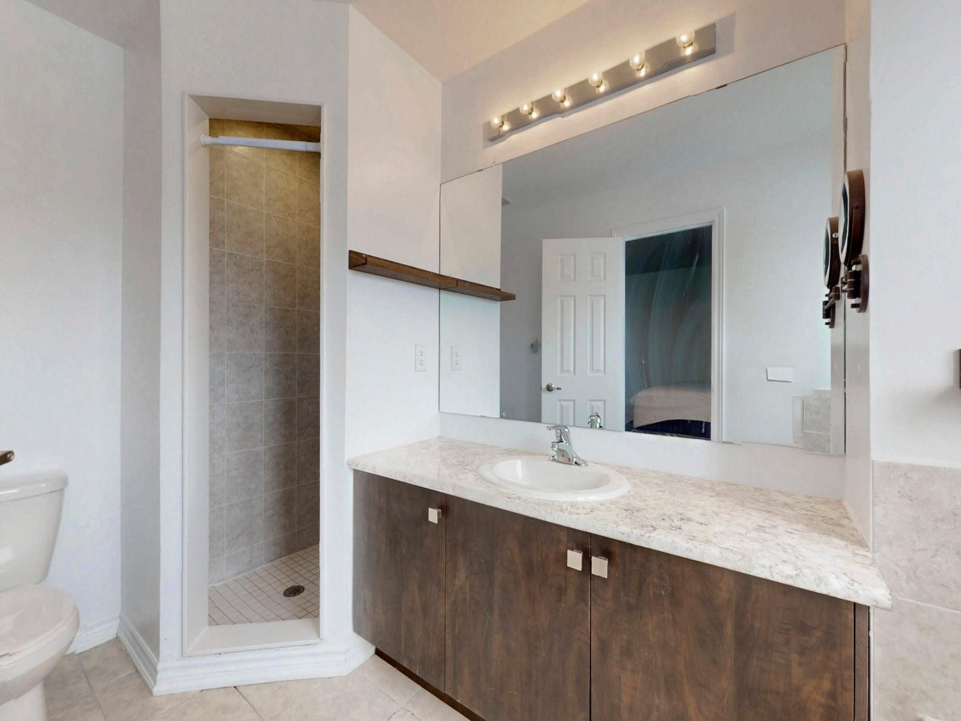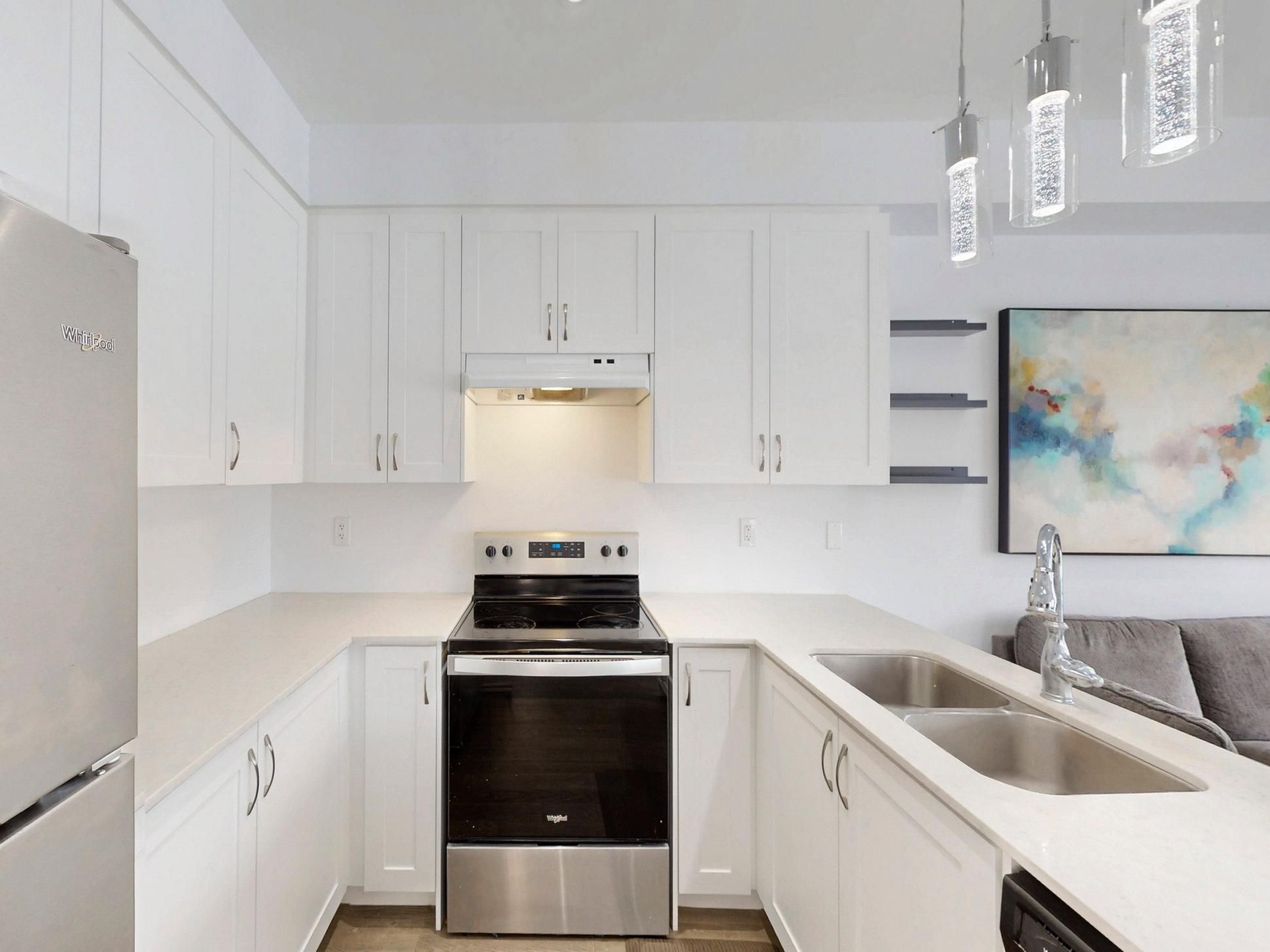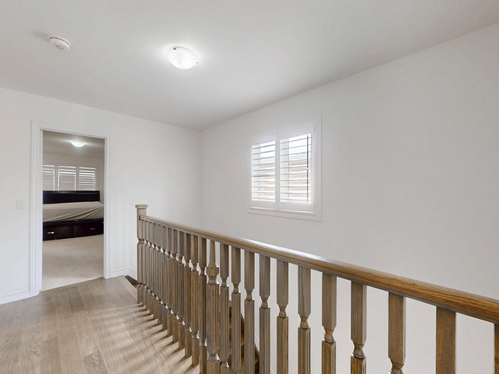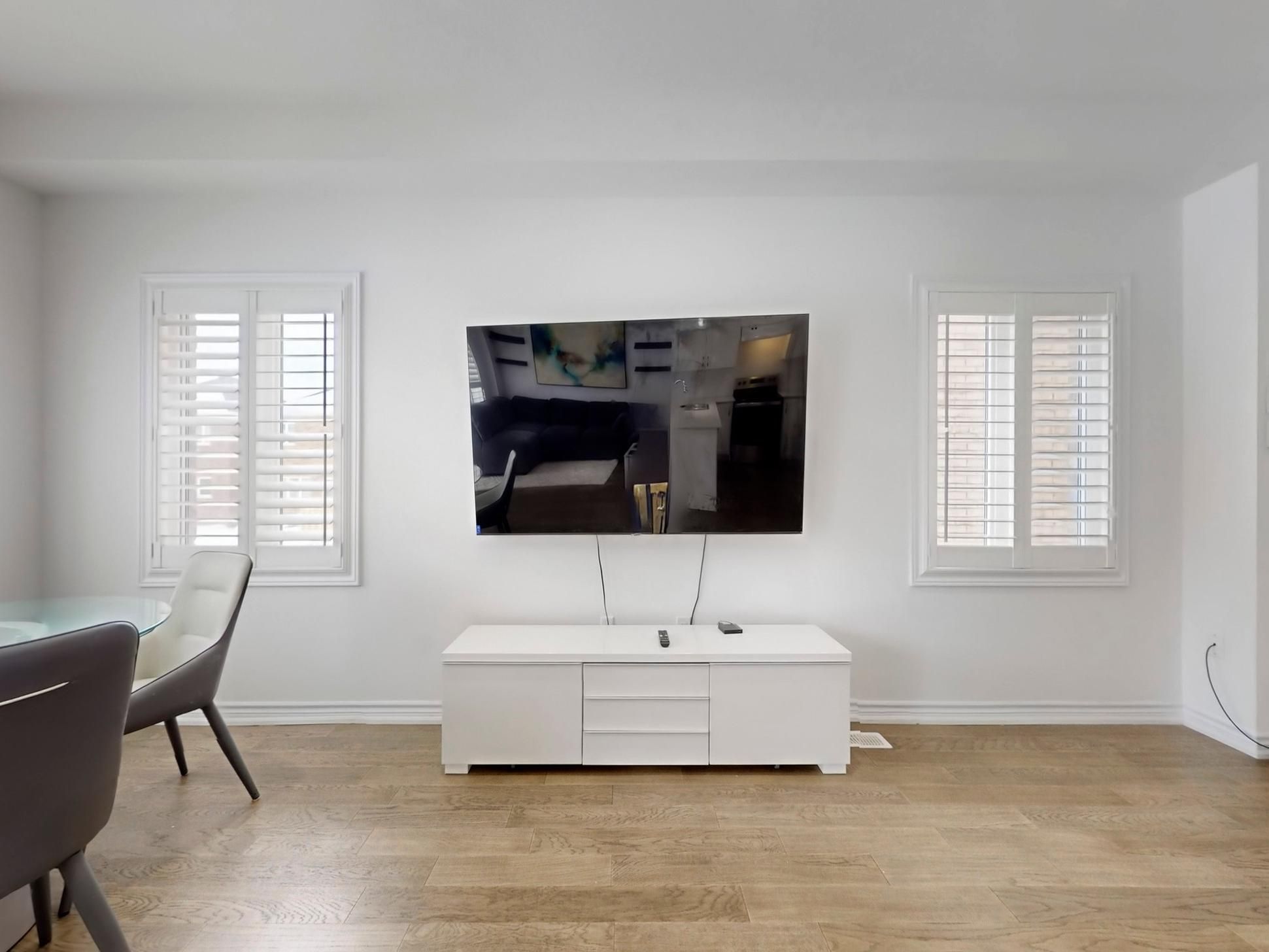 Recent updates include a new kitchen countertop, contemporary light fixtures with added pot lights, and sleek California shutters, enhancing both style and functionality.