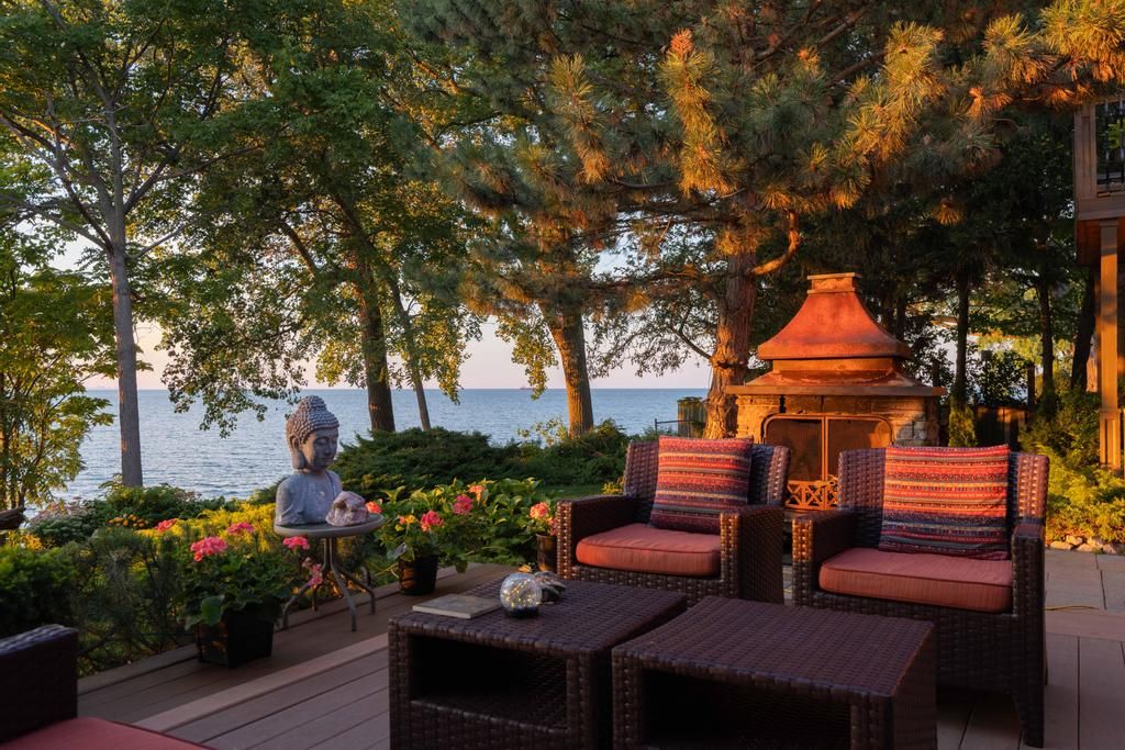 Welcome to 11 Abbey in Port Dalhousie, a rare waterfront retreat offering 80' of shoreline and 180 degree views of Lake Ontario. Built in 1995 with approx. 2,150 sf above grade plus a fully finished 900 sf walkout lower level/potential in-law suite, this custom home was designed to capture golden-hour sunsets, starlit skies, and the natural beauty of its setting. Every main living space and 3 out of 4 bedrooms enjoy breathtaking waterfront views. The main floor features 17' ceilings in the living room, a dining room with deck access, and a spacious kitchen with chef's pantry, breakfast bar and lounge area. Upstairs, enjoy views of the lake and lighthouse from the secluded primary suite with spa ensuite. 3 of 4 bedrooms open to balconies overlooking the lake. The walkout lower level is finished with a fireplace lounge area, 2 bar areas (easy conversion to full kitchen), 3-piece bath, wine cellar and direct access to the landscaped grounds. Mature trees, gardens, landscape lighting, and an outdoor fireplace create a private setting for entertaining and relaxation. A 2-car garage is fully insulated and has hot/cold water supply. Recent updates include a new furnace (2024) and roof (approx. 10 yrs). Port Dalhousie is a prestigious lakeside enclave, renowned for its sand beaches, private marinas, scenic waterfront trails, acclaimed dining, and the world-famous Henley Island rowing course. Elegant boardwalks/piers create a resort-style atmosphere, attracting discerning residents and visitors from around the globe. Minutes from Niagara's finest wineries, championship golf, and seamless highway access, Port Dalhousie stands as one of the region's most exclusive lifestyle destinations. 11 Abbey is more than a home, it's a front-row seat to Niagara's finest waterfront living.