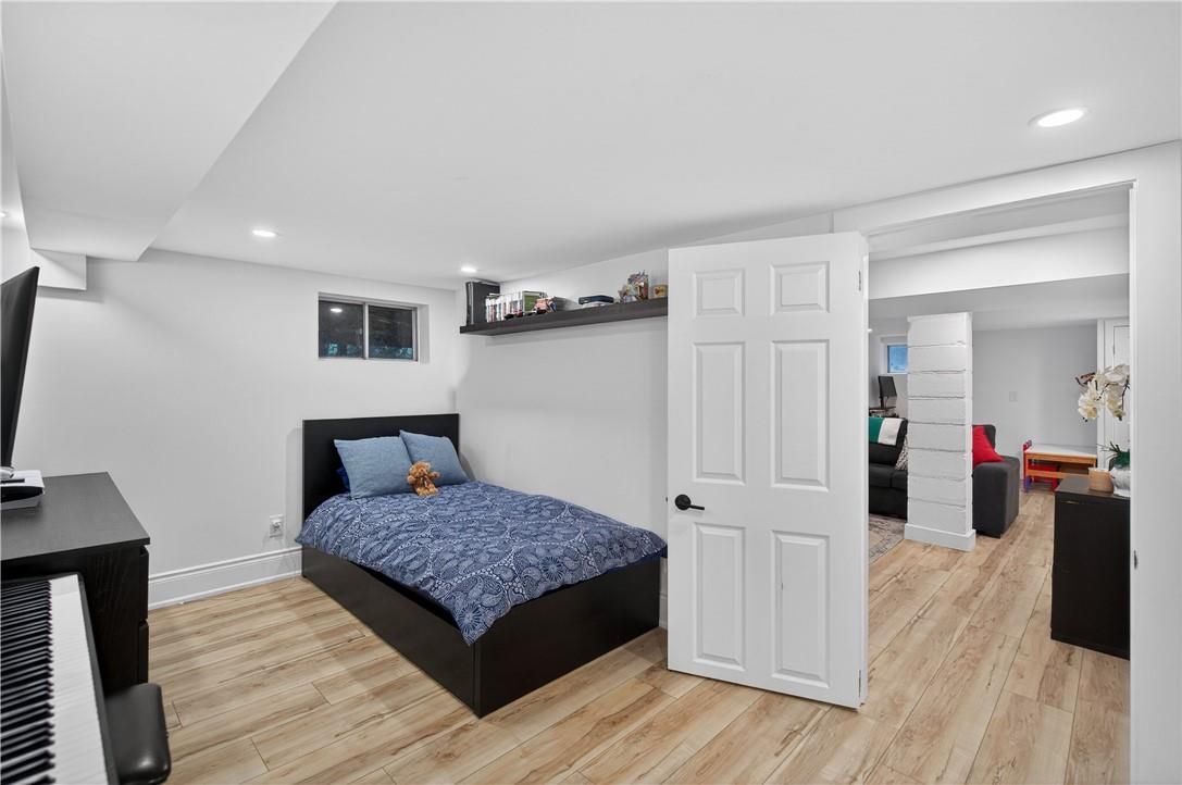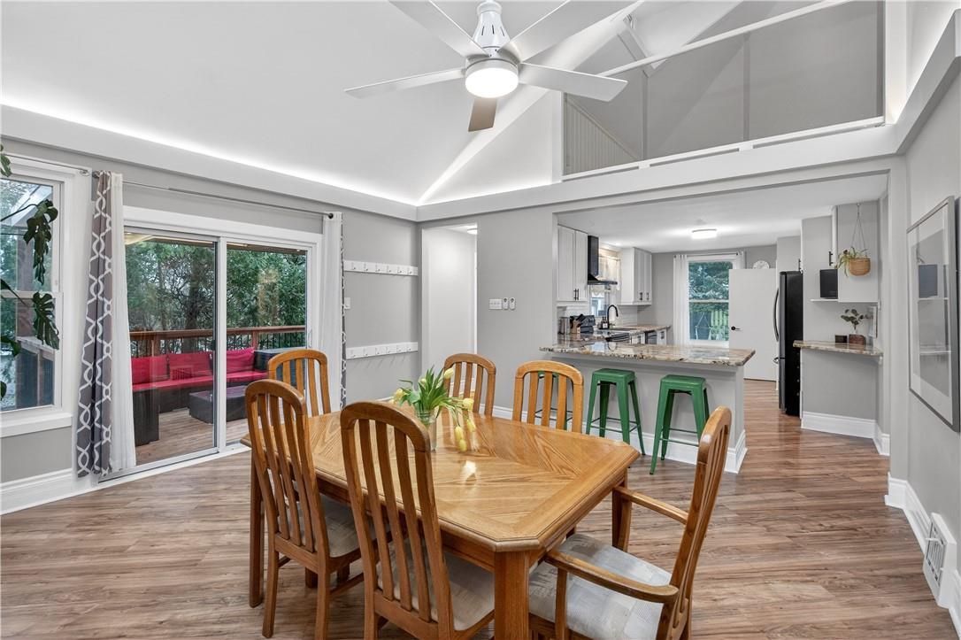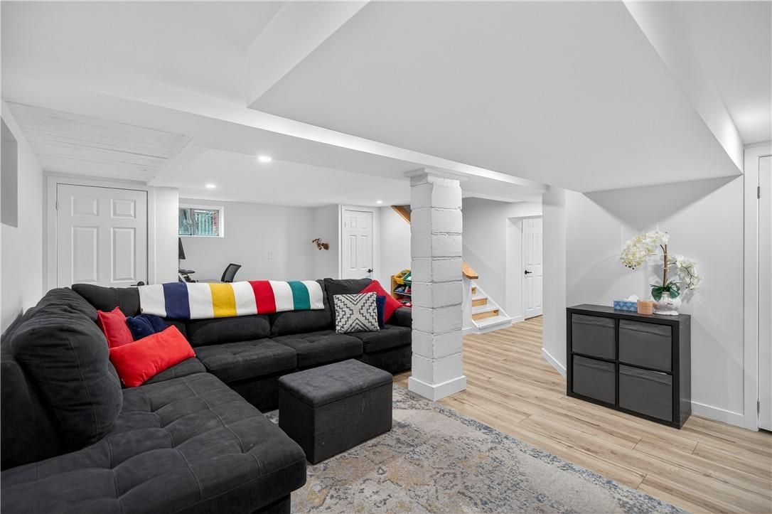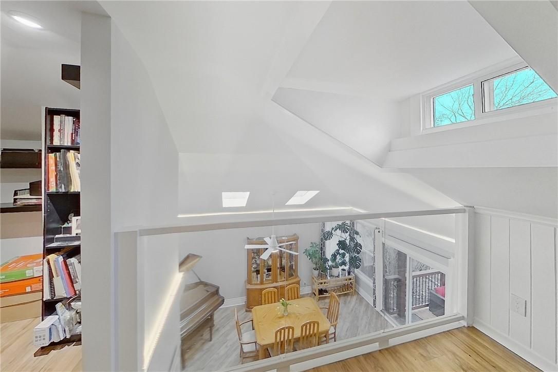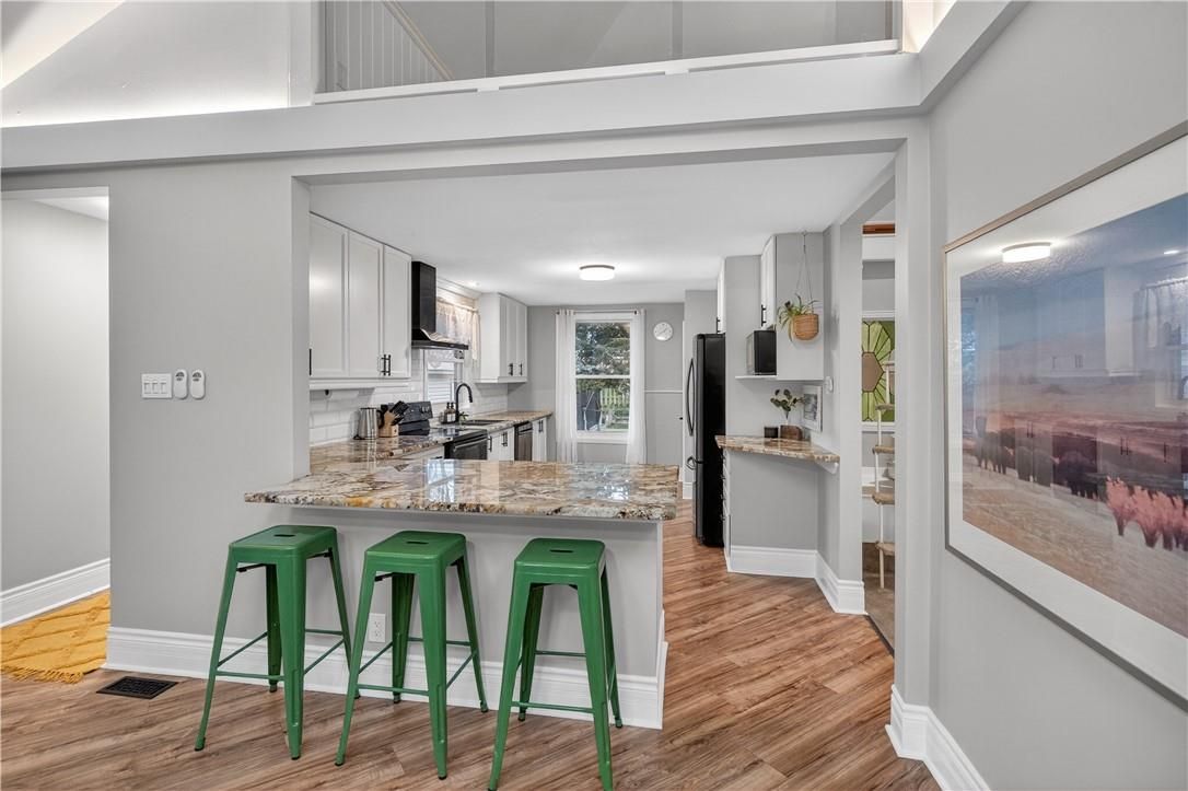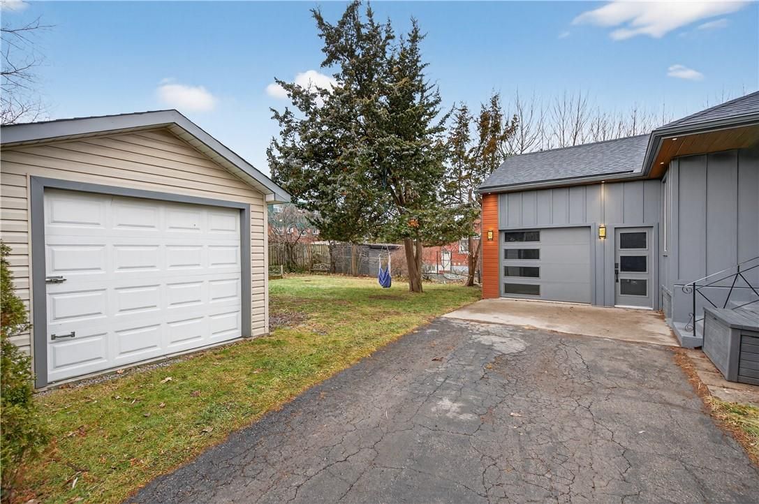 It's almost impossible to imagine that this 1.5 storey home is just seconds to Mohawk Rd, highways and amenities. Positioned on a 215 ft deep lot this reimagined family space is private, turn key, and one of a kind for the area. Updated since 2017, this property features a newer roof, furnace, AC, owned water heater, plumbing, wiring, siding, deck, all upgraded lighting, two new bathrooms, and a massive chef's kitchen. The open concept main floor is airy and inviting with Cathedral ceilings and skylights, adding to the drama of the glass rail loft. With over 30 linear feet of cabinetry, Brazilian stone counters, smudge proof Samsung appliances, and a double basin sink, this kitchen is made for families and includes a breakfast bar, bright windows, and recessed lighting. Also on the main floor find two generous bedrooms, and an exceptional five piece bath, fully renovated to include a standalone soaker tub, double sinks, standup shower with rain showerhead, and loads of storage, don't overlook the super deep linen closet! The fully finished basement was renovated in 2025 to accommodate two additional large bedrooms with windows and closets, along with a fresh three-piece bath. Interior waterproofing, loads of storage, easy access to systems, and a roughin to accommodate in-laws or a basement bar! There's more if you can believe it, upstairs find a fantastic loft, which has been used for a bedroom and office, with access to an attic over the garage just waiting for your imagination. Attached garage features indoor entry to the main home, plus an additional detached garage with a full garage door, plus a utility shed. This exceptionally mature lot has no neighbours in sight, fruit trees, a farmers garden, an above grade pool, parking for 20+ vehicles. The lot size may present interesting rezoning opportunities for the right buyer!
