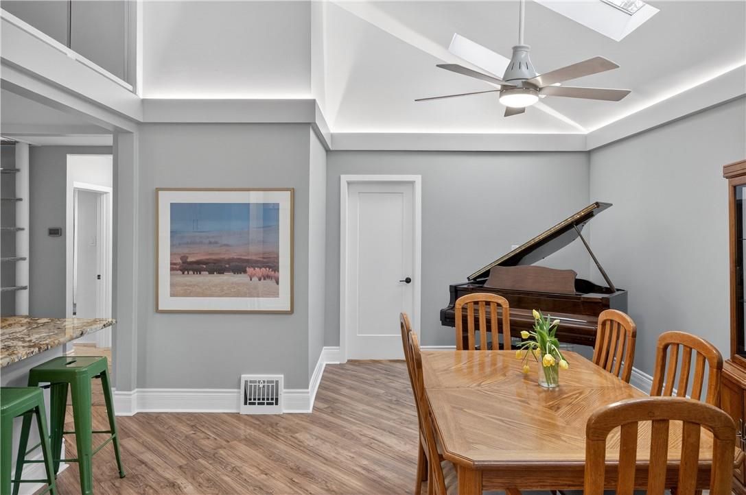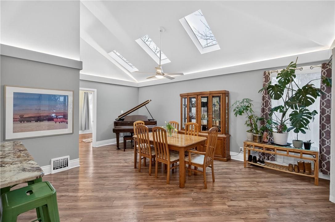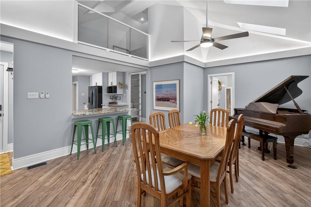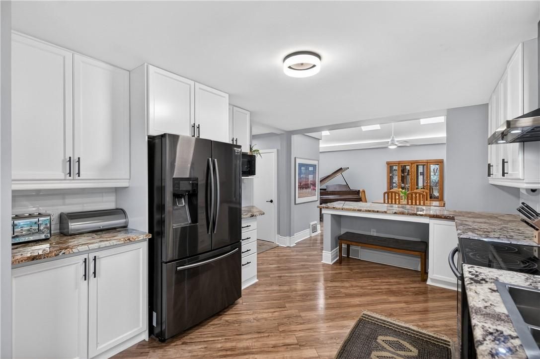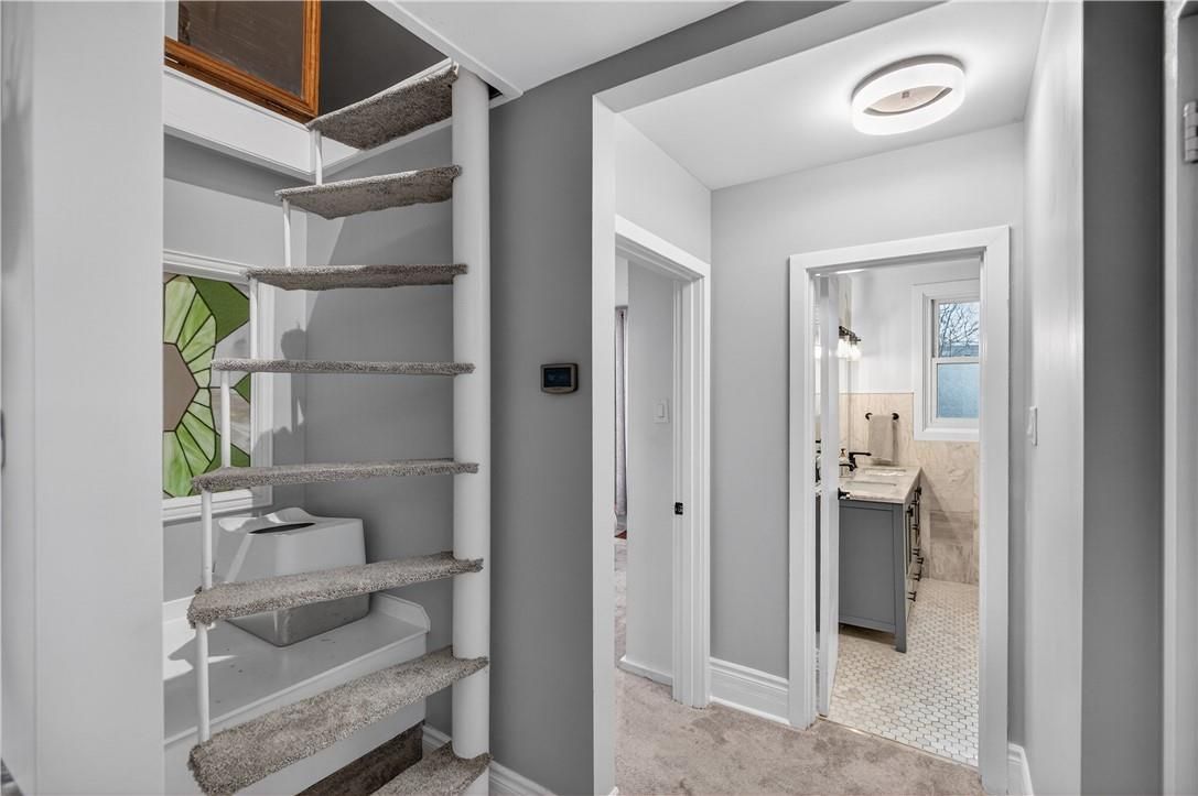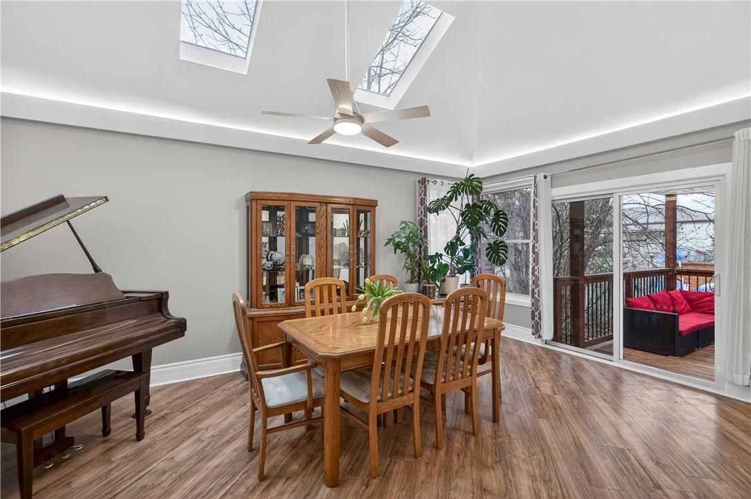 It's almost impossible to imagine that this 1.5 storey home is just seconds to Mohawk Rd, highways and amenities. Positioned on a 215 ft deep lot this reimagined family space is private, turn key, and one of a kind for the area. Updated since 2017, this property features a newer roof, furnace, AC, owned water heater, plumbing, wiring, siding, deck, all upgraded lighting, two new bathrooms, and a massive chef's kitchen. The open concept main floor is airy and inviting with Cathedral ceilings and skylights, adding to the drama of the glass rail loft. With over 30 linear feet of cabinetry, Brazilian stone counters, smudge proof Samsung appliances, and a double basin sink, this kitchen is made for families and includes a breakfast bar, bright windows, and recessed lighting. Also on the main floor find two generous bedrooms, and an exceptional five piece bath, fully renovated to include a standalone soaker tub, double sinks, standup shower with rain showerhead, and loads of storage, don't overlook the super deep linen closet! The fully finished basement was renovated in 2025 to accommodate two additional large bedrooms with windows and closets, along with a fresh three-piece bath. Interior waterproofing, loads of storage, easy access to systems, and a roughin to accommodate in-laws or a basement bar! There's more if you can believe it, upstairs find a fantastic loft, which has been used for a bedroom and office, with access to an attic over the garage just waiting for your imagination. Attached garage features indoor entry to the main home, plus an additional detached garage with a full garage door, plus a utility shed. This exceptionally mature lot has no neighbours in sight, fruit trees, a farmers garden, an above grade pool, parking for 20+ vehicles. The lot size may present interesting rezoning opportunities for the right buyer!