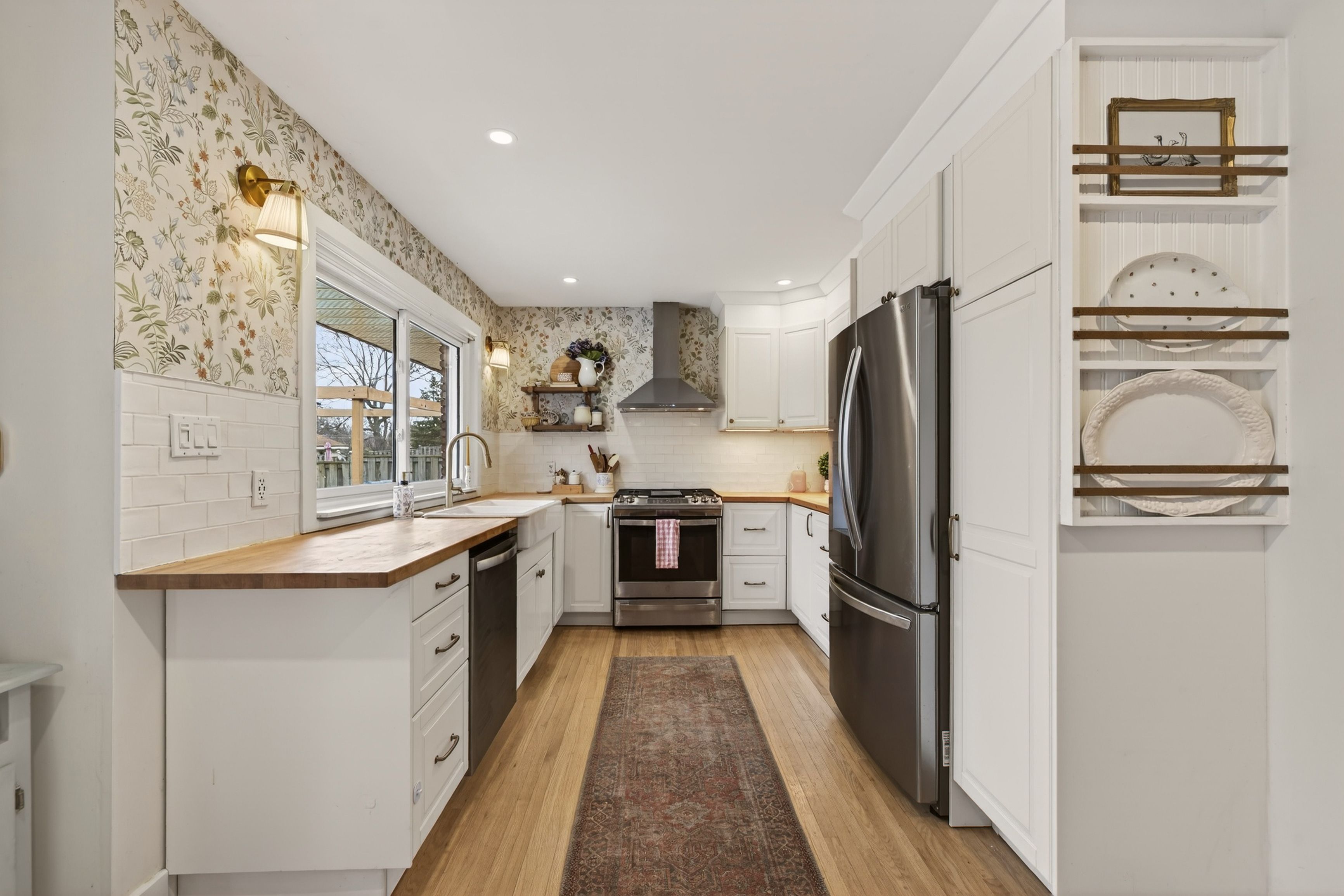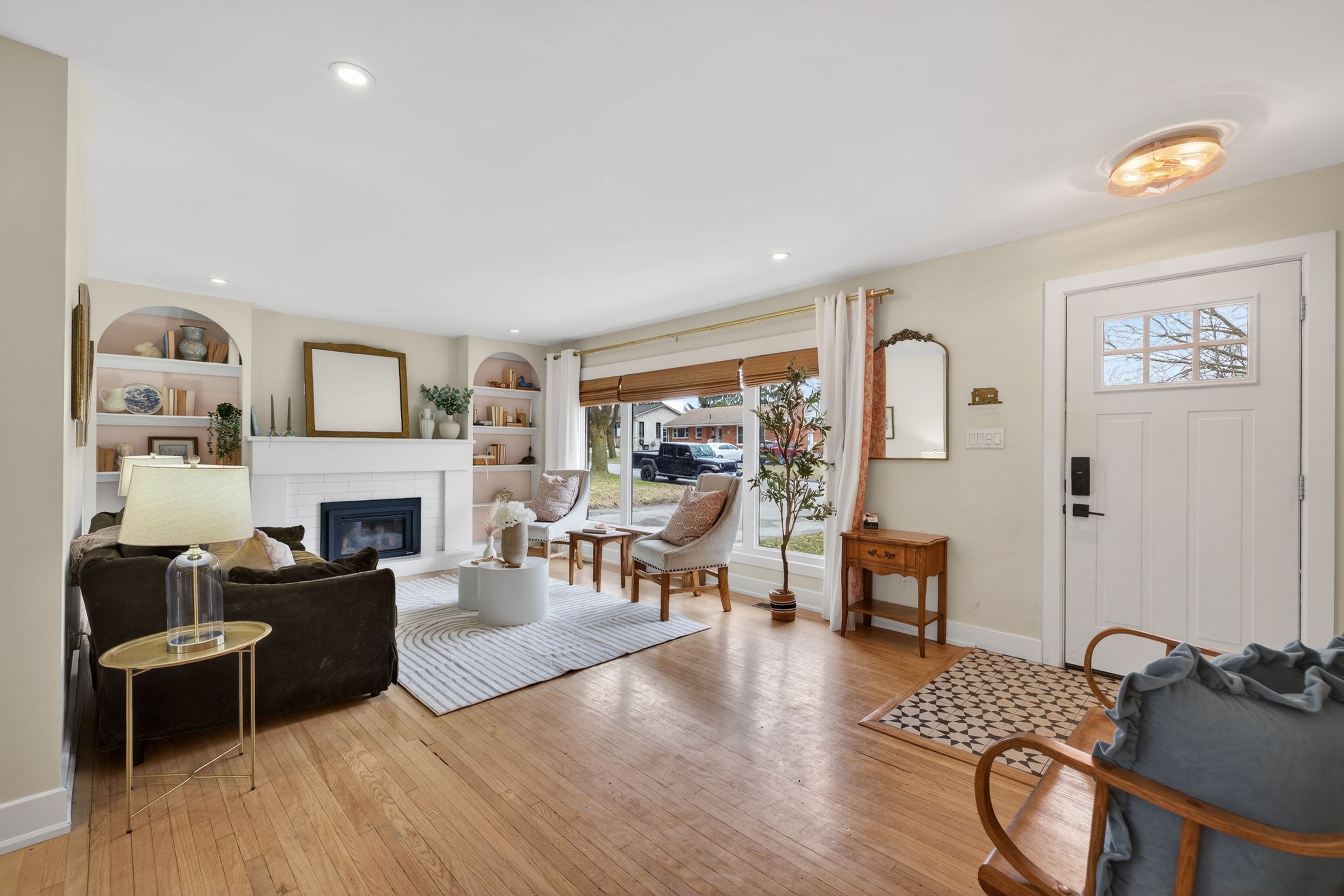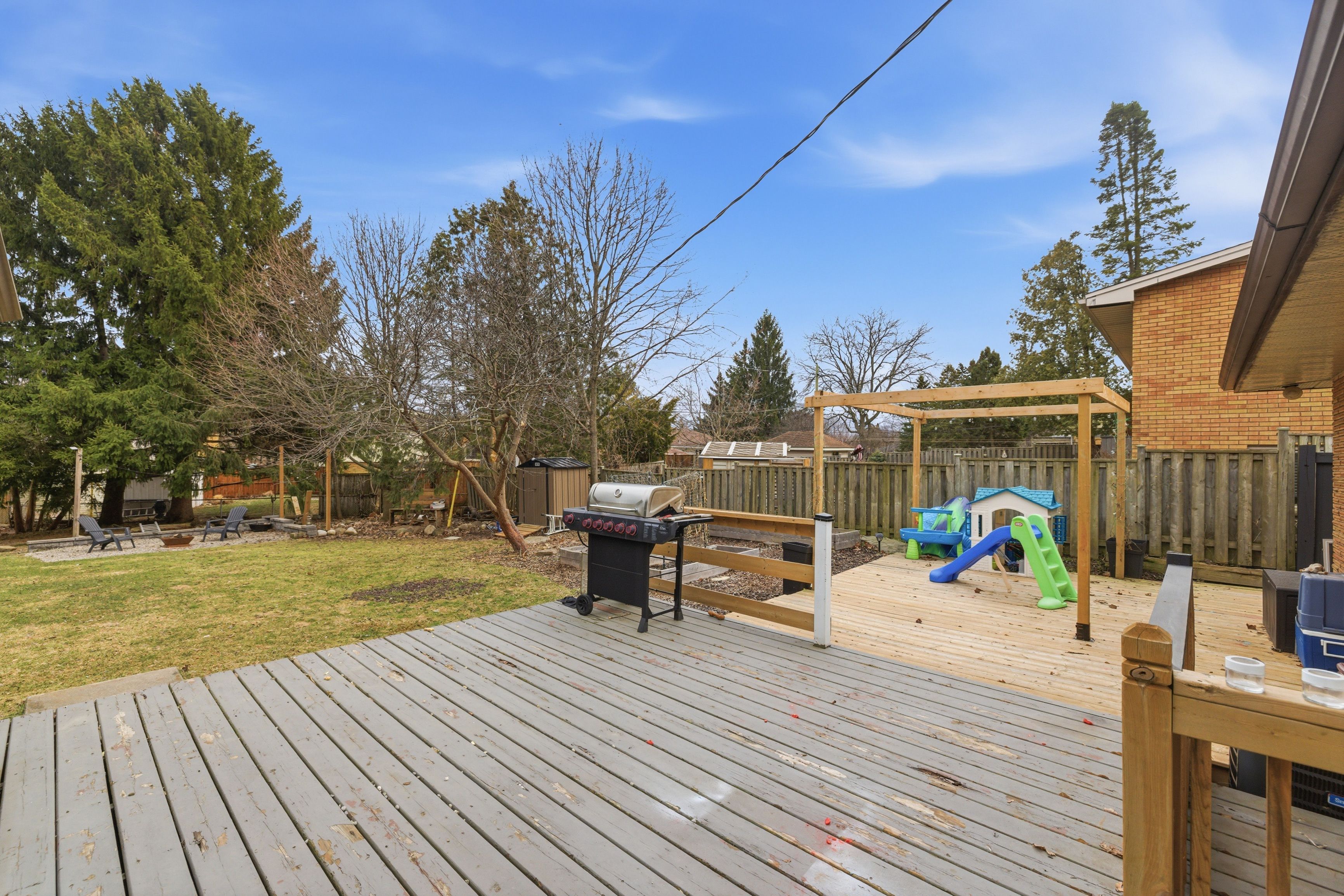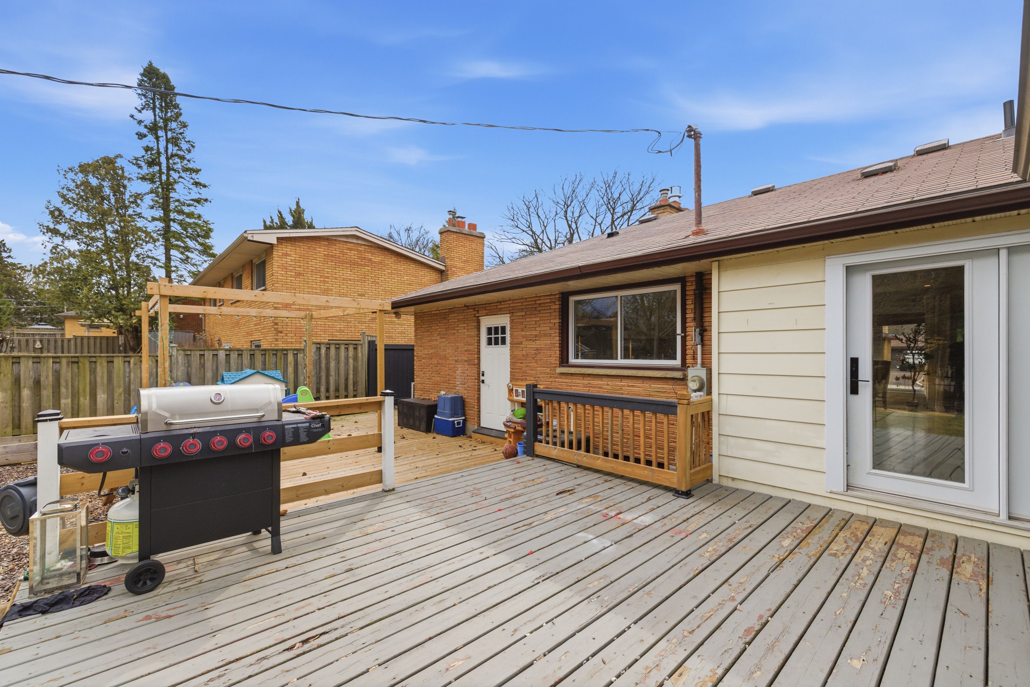 South East London presents 198 Buckingham Street, a beautifully updated brick bungalow that effortlessly blends stylish design with comfortable, practical family living. The inviting main level features refinished blonde hardwood flooring throughout and a bright, welcoming living room anchored by a stunning gas fireplace and charming arched built-in shelving on either side, creating a warm and elegant focal point. The thoughtfully designed U-shaped white kitchen offers stainless steel appliances, tasteful finishes, and a stylish wallpaper accent that adds a touch of personality and charm. The adjacent dining area features a custom built-in bench with storage and convenient patio door access to the backyard, creating the perfect setting for both everyday meals and effortless entertaining. The main floor also includes a convenient 2-piece powder room and three well-appointed bedrooms, including the spacious primary retreat complete with its own private 4-piece ensuite. The fully finished lower level expands the living space with a large, comfortable rec room featuring classic Billy bookcase built-ins, a generous fourth bedroom, a 3-piece bathroom, and ample storage, laundry, and utility space. Completing this impressive property is an attached single-car garage and a large, fully fenced backyard with a rear deck and pergola - ideal for relaxing evenings, summer barbecues, and outdoor entertaining. Ideally located just minutes to Highway 401, Victoria & Children's Hospitals, shopping, schools, parks, and scenic trails, this move-in-ready home offers an exceptional combination of style, comfort, and convenience. Furnace & A/C (2017 approx.)