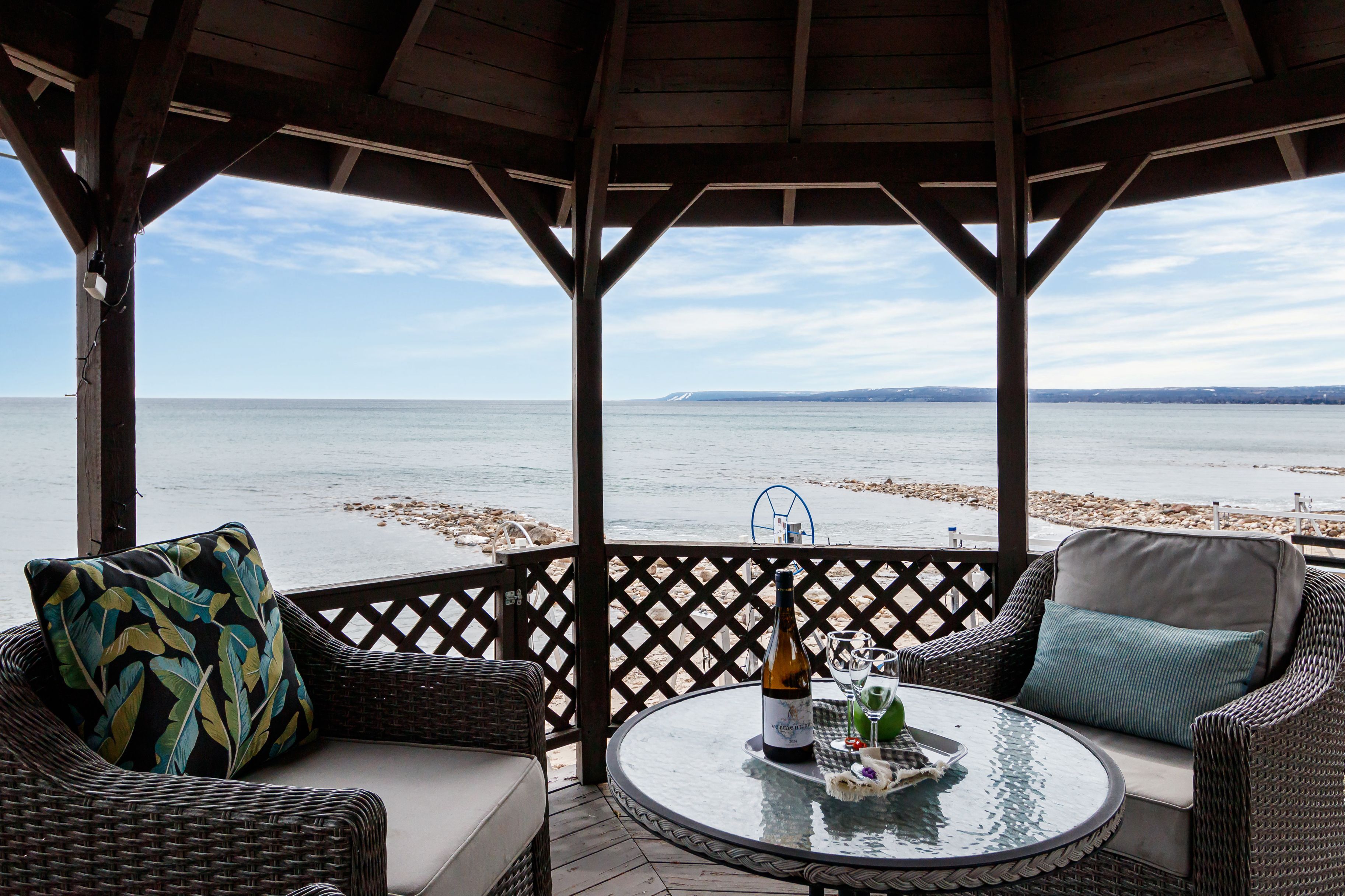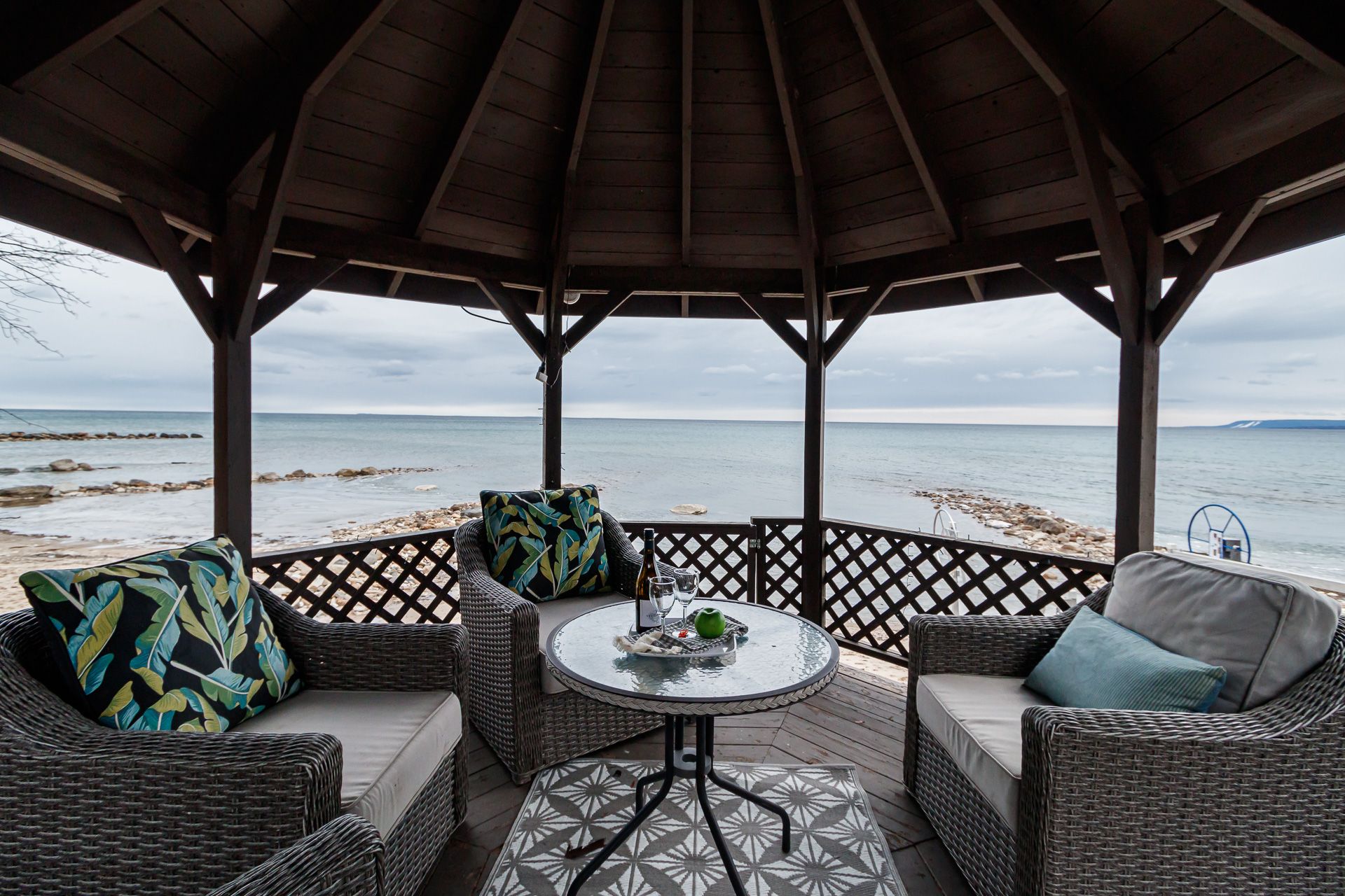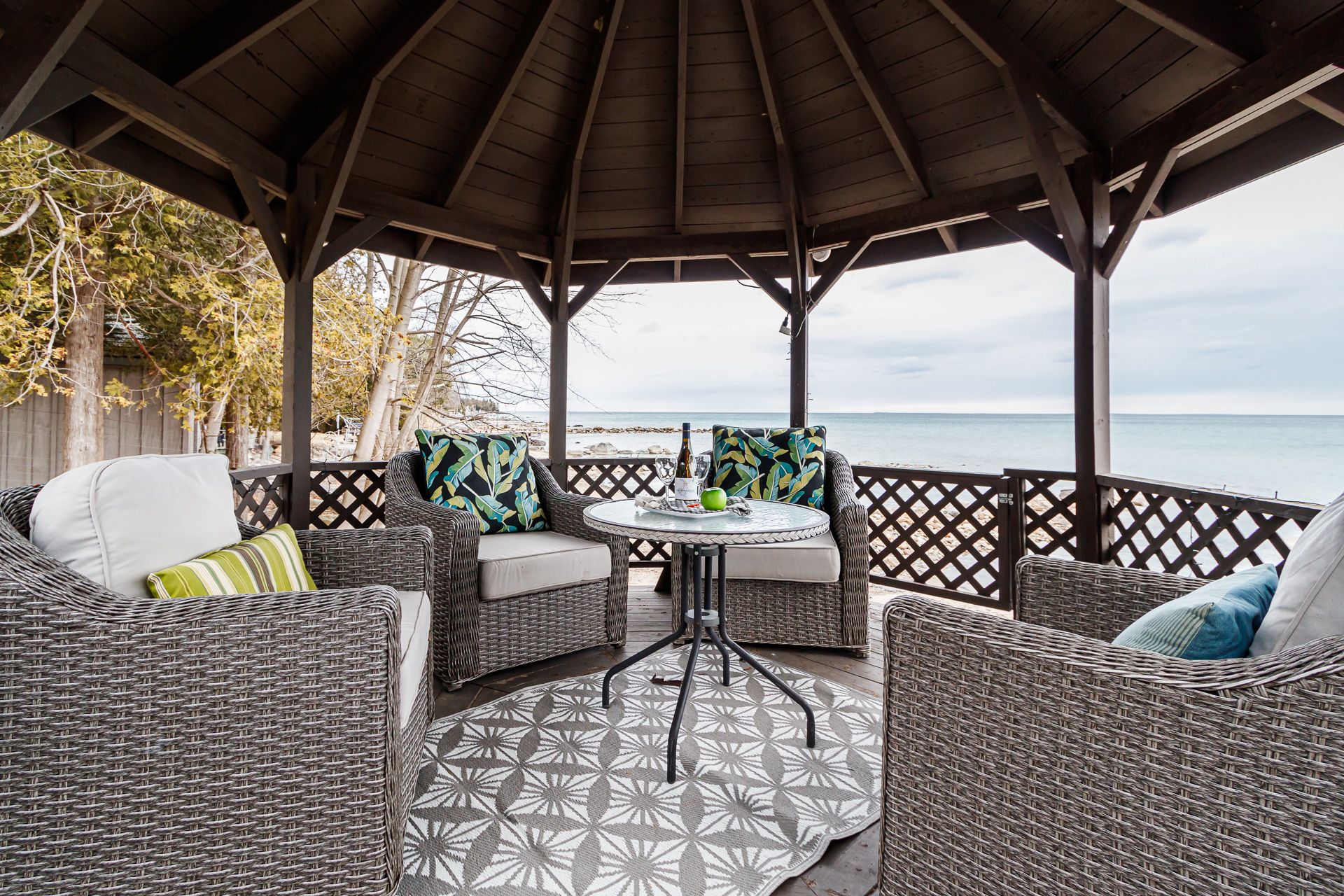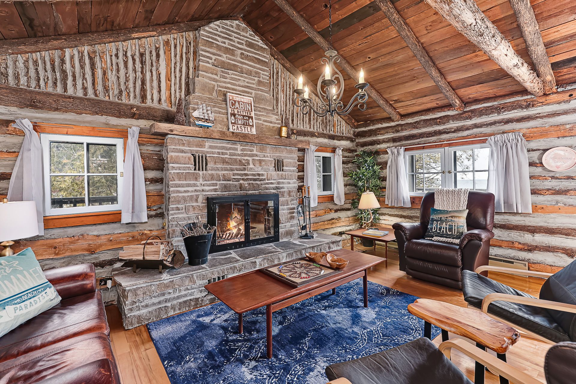 Adorable waterfront cottage on prestigious Cedar Avenue, offering breathtaking views of Georgian Bay and the Niagara Escarpment from Collingwood to Meaford and beyond. Built in 1985, this charming four-season retreat captures the feel of a classic Canadiana cottage while offering the comfort and convenience of year-round living. Spend your summer days on your private sandy beach, with crystal-clear water at your doorstep. Fish for rainbow trout from your dock, or enjoy peaceful evenings paddleboarding or kayaking along the shoreline, gazing down at striking underwater boulder formations. A short boat ride takes you to the harbours of Meaford or Thornbury for lunch, coffee, or ice cream. Inside, the home exudes warmth and character, centred around the original natural log great room featuring a historic signature dating back to 1925. Cathedral ceilings, maple flooring, a stone wood-burning fireplace, and skylights create a bright yet cozy, inviting space. The home is thoughtfully designed with two distinct yet connected living areas. The wing offers an upper bedroom off the main foyer, with a staircase leading to a charming lower bedroom and 2-piece bath-ideal for guests or family. The beautifully updated kitchen opens to a wraparound deck overlooking the Bay, perfect for entertaining or simply taking in the view. The lower level includes a spacious primary bedroom, full bathroom, and a comfortable family room with a wood stove and walkout to the terrace, gazebo, and waterfront-seamlessly blending indoor and outdoor living. Finished with a timeless board-and-batten exterior, the property is surrounded by perennial gardens and includes two storage sheds. A truly special waterfront getaway-where classic cottage charm meets four-season comfort. This property is not to be missed!