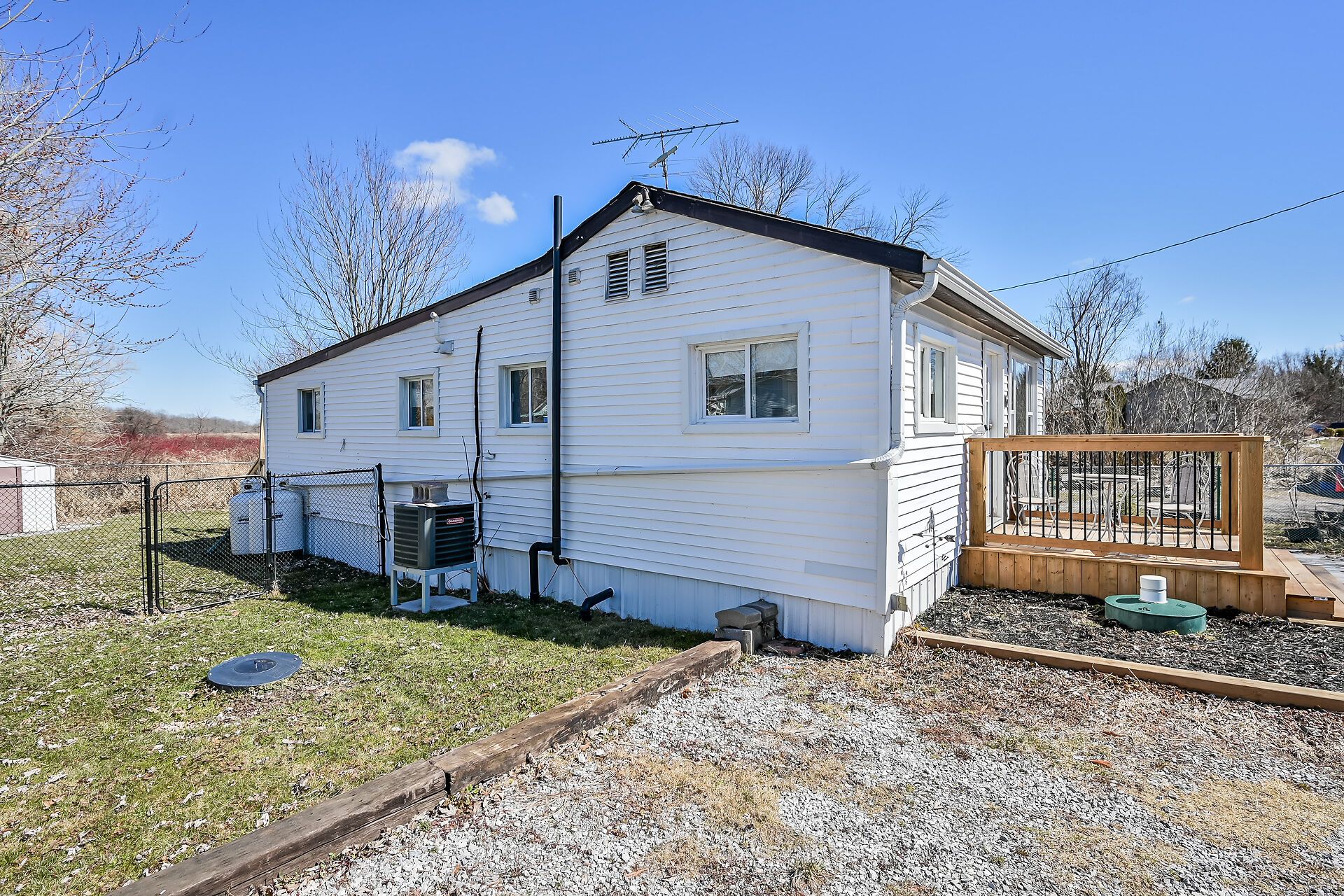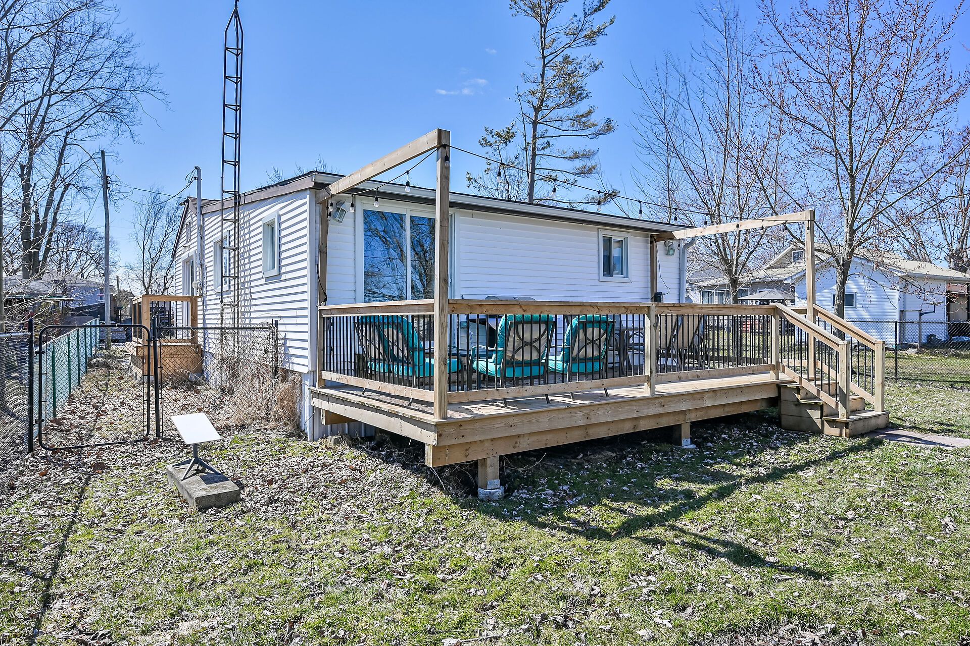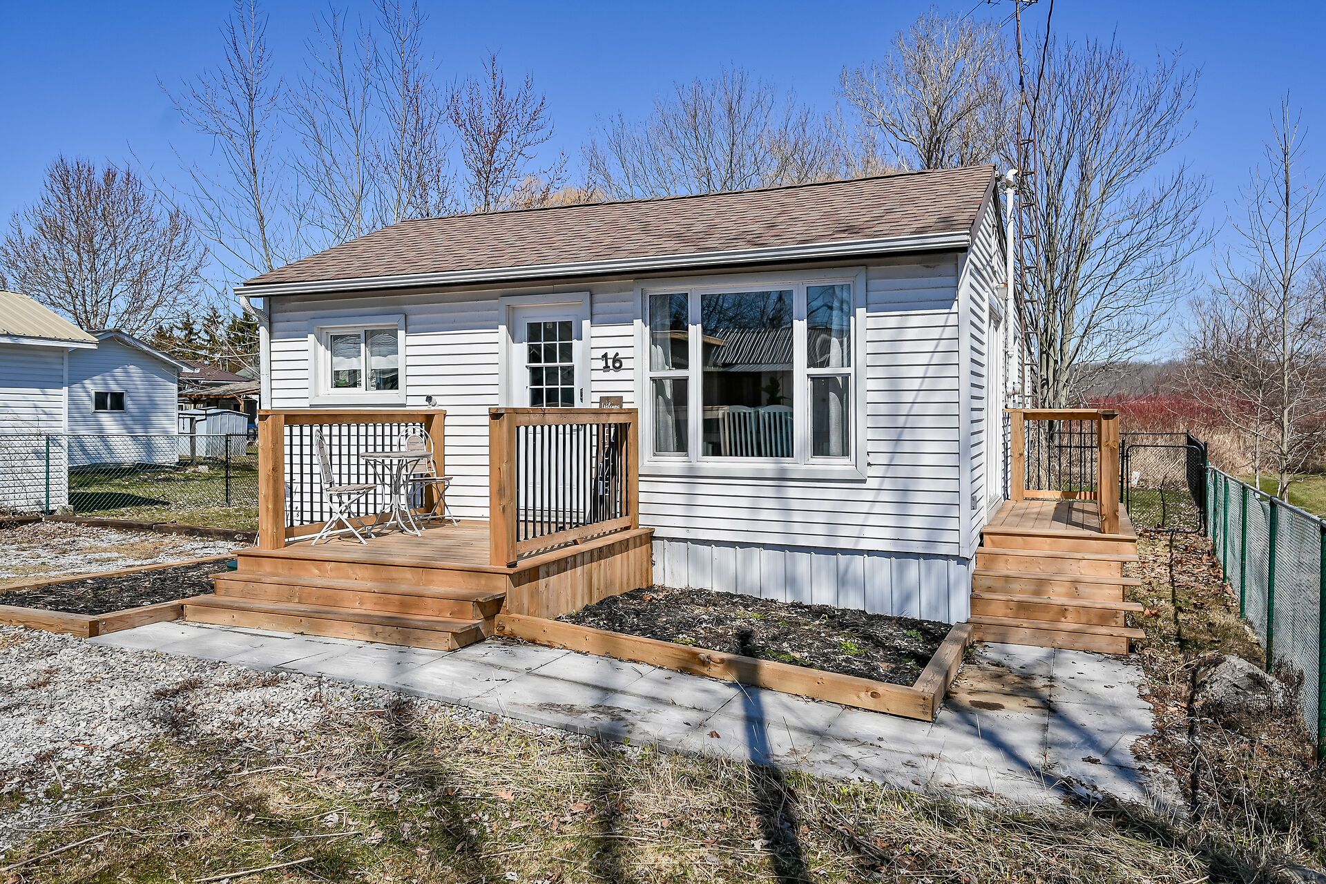 Experience the simplicity and serenity of Lake life in this fully renovated Lake Erie home. Undergoing an extreme makeover in 2022, this 950 sq. ft. residence features a brand-new interior including flooring, drywall, and a stylish kitchen and bathroom. Major infrastructure is already handled: the home was raised onto solid concrete piers, and boasts a newer roof (2018), all vinyl windows, new holding tank and cistern, plus propane-fired HVAC and central air. Two patio walk-outs to newly installed decks lead to a fully fenced yard backing onto serene marshland. Whether you're a first-time buyer or downsizing, this is a worry-free retreat with right-of-way access to the lake.