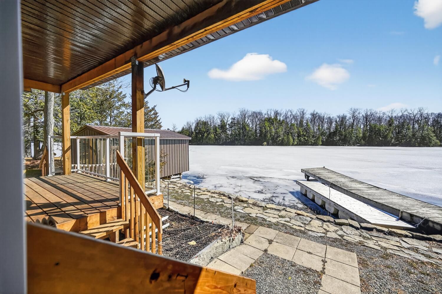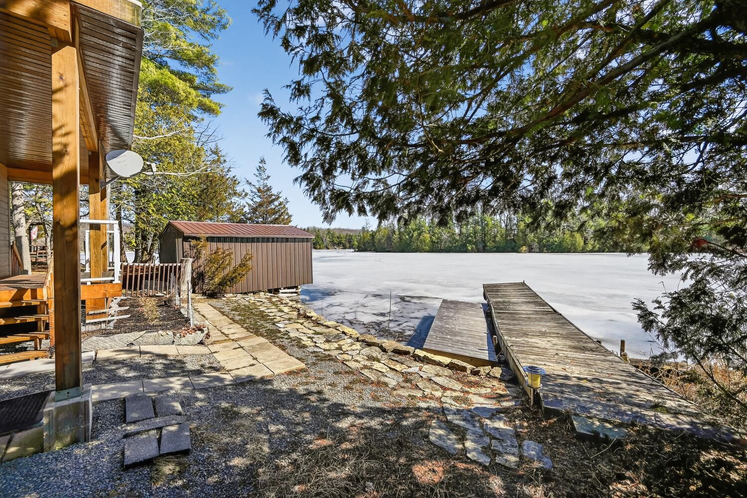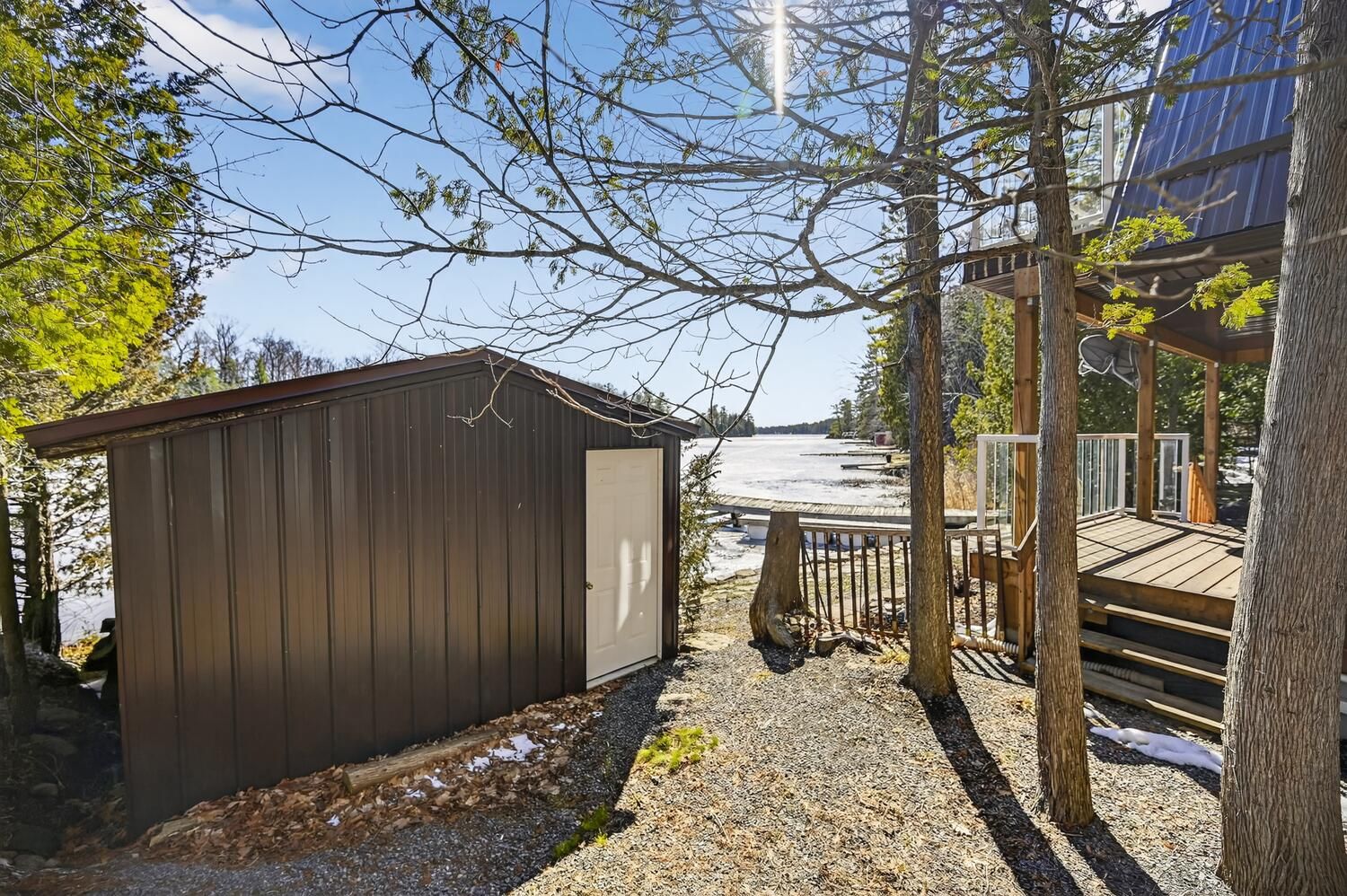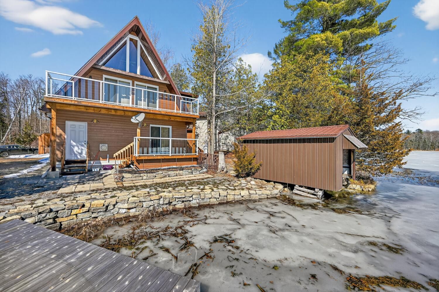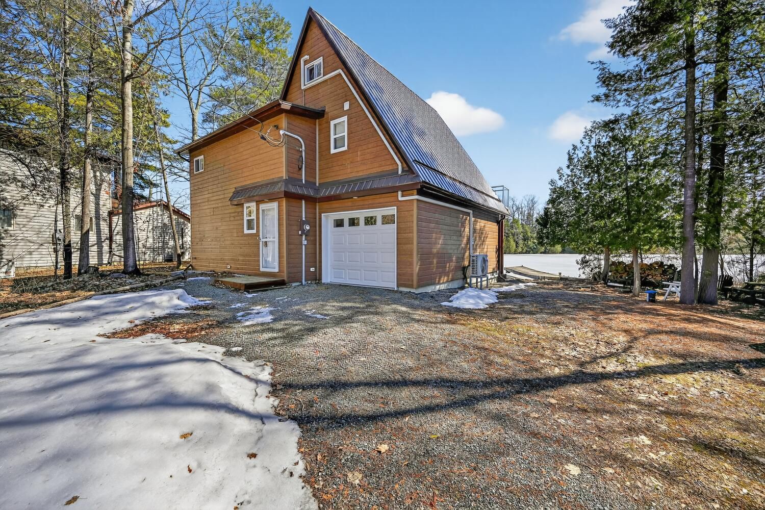 Escape to the pristine shores of Charleston Lake, one of Ontario's true crown jewel lakes, renowned for its crystal-clear waters, exceptional swimming, boating, and fishing. With multiple boat launches and two marinas nearby, this is lakeside living at its finest-perfectly positioned with easy access to two international bridges to the USA and just a 3.5-hour drive from Toronto. Set on a perfectly level lot with year-round access, this stunning waterfront property offers effortless enjoyment of lake life. Step right out to your direct shoreline access, complete with both fixed and floating docks-ideal for boating enthusiasts and those who love to soak up the sun by the water. Originally built in 1970 and thoughtfully renovated in 2017, the home was raised and enhanced with a new 10-block foundation, along with the addition of a heated and insulated single-car garage. Inside, this charming chalet-style home blends comfort and character, featuring 2 bedrooms plus a versatile loft space. The main floor is designed for convenience with a spacious primary bedroom offering a walk-in closet, private ensuite, and in-suite laundry. Upstairs, the open-concept living area showcases a bright eat-in kitchen with pantry, seamlessly flowing into the dining and family room, all with access to an elevated deck-perfect for entertaining or enjoying breathtaking lake views. A second deck off the primary bedroom provides a peaceful retreat to start or end your day. Additional features include an energy-efficient heat pump for heating and cooling, a 200-amp breaker panel, a 10KW Generac propane generator, drilled well, and concrete holding tank. The durable CanExel siding-crafted from a blend of wood and composite materials-offers long-lasting curb appeal with an approximate 40-year lifespan. Whether you're searching for a year-round home or the ultimate waterfront getaway, this exceptional Charleston Lake property delivers the lifestyle you've been dreaming of.
